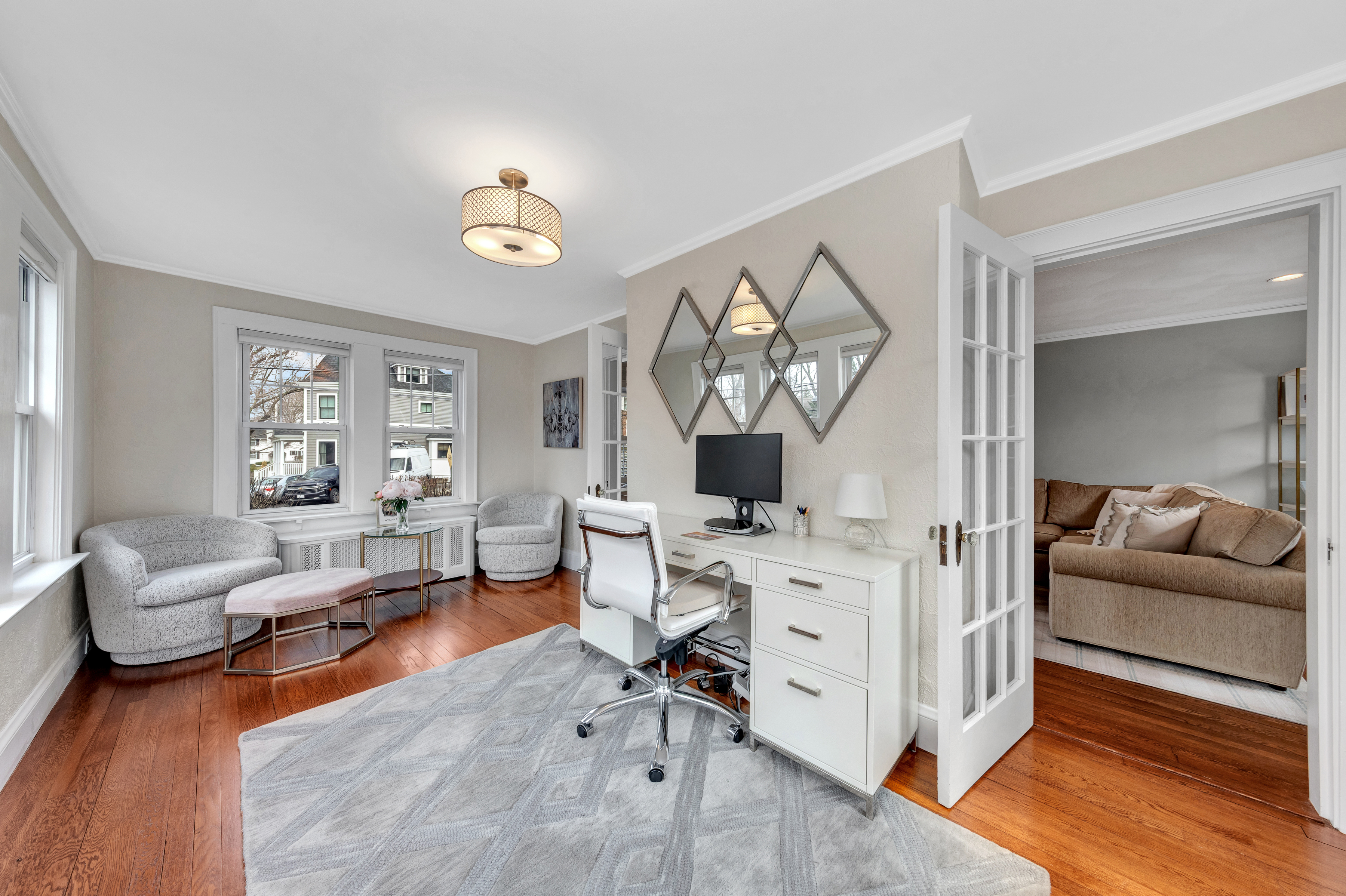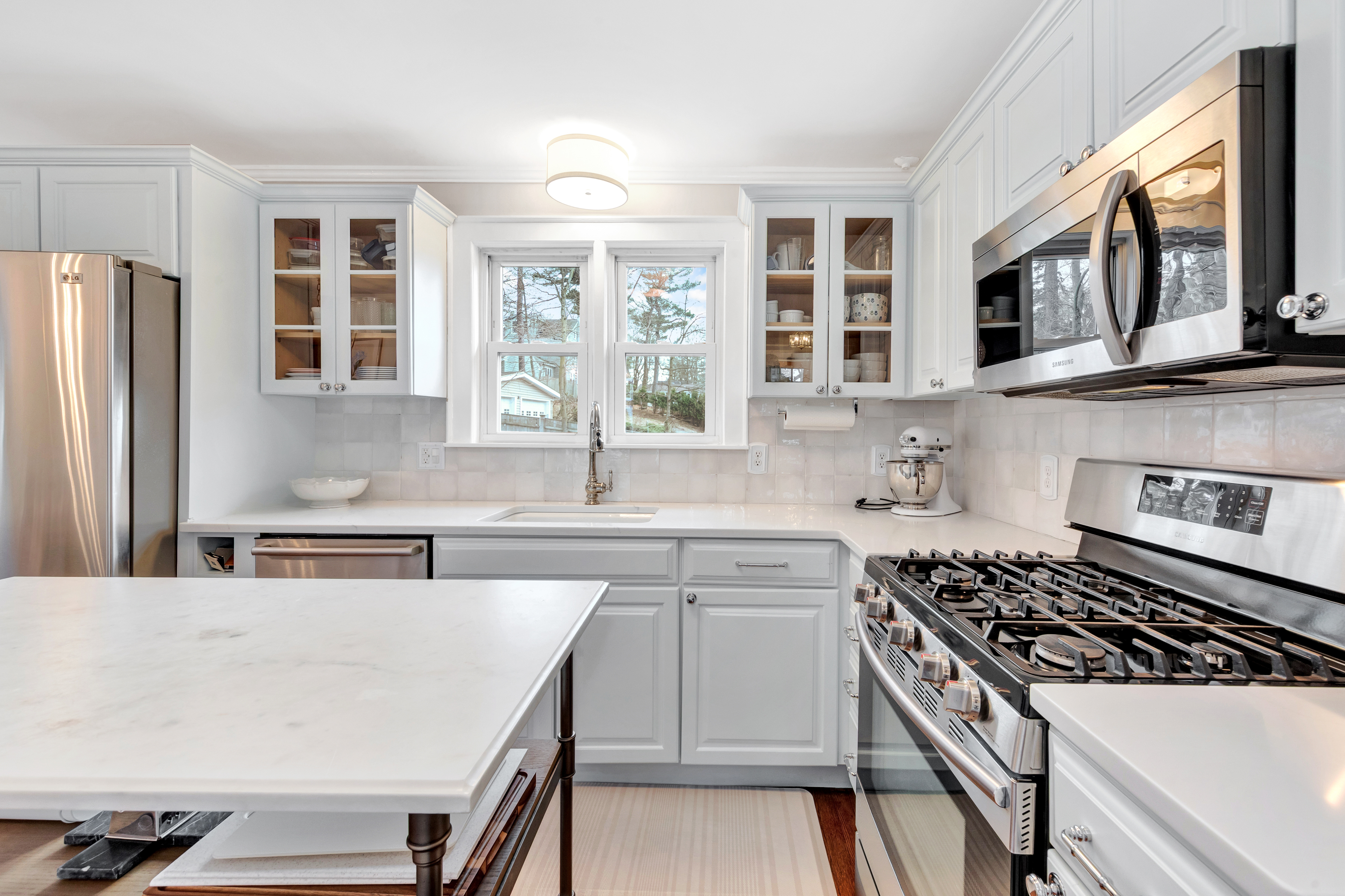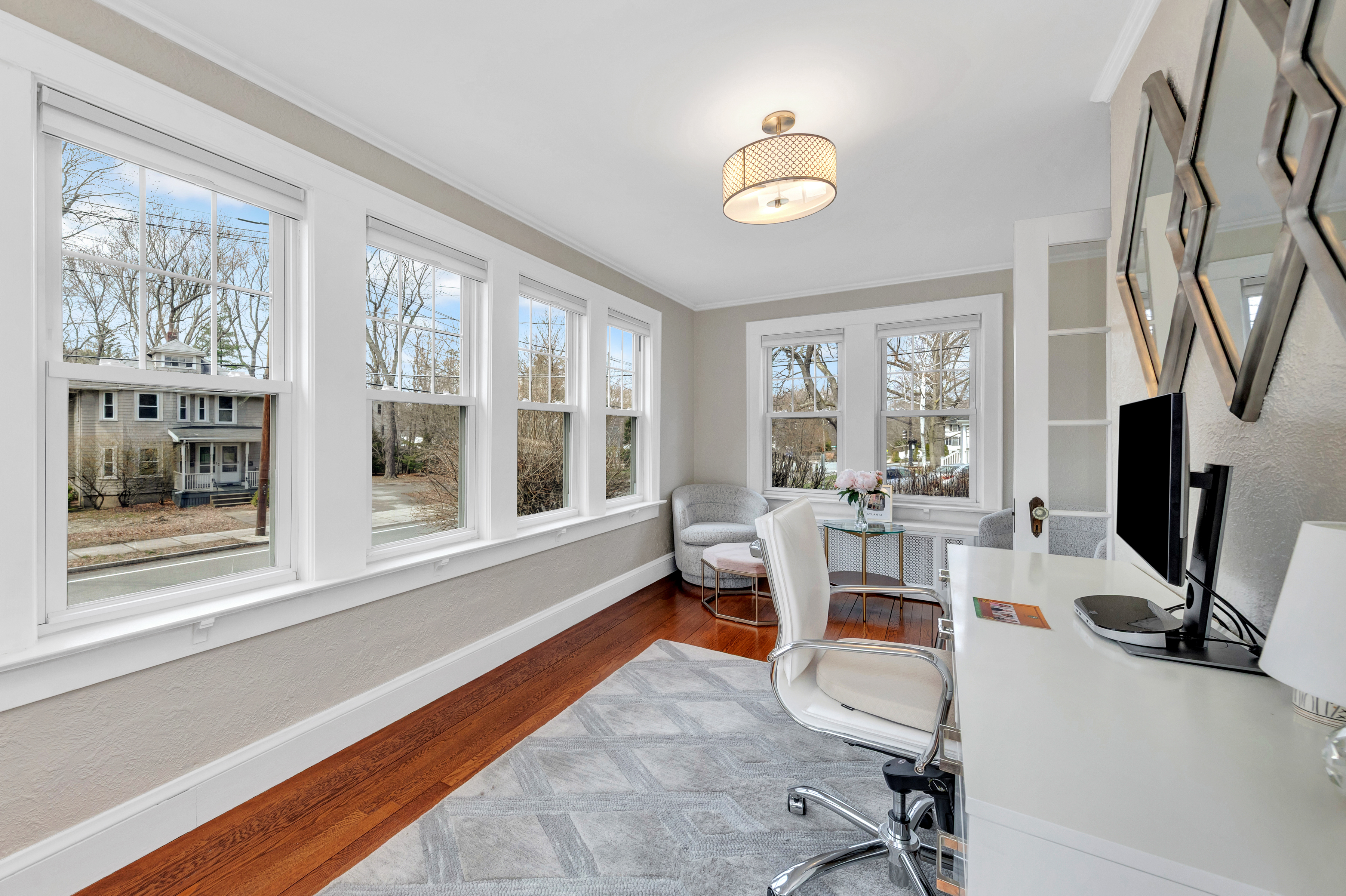 Oh, how beautiful life can be when lifestyle and location align! Imagine living just over a mile from the shops and restaurants in the Center, while also being able to stroll down the block to enjoy Leonard Field and the bike path? Stylish and chic, this quaint yet elevated gem was thoughtfully designed to preserve its original, nostalgic charm. Surprisingly spacious, the main level features a sunny front-to-back living room, dining room, and a truly beautiful sunroom/office. The updated kitchen with marble island and built-in breakfast nook connects beautifully to the outdoor space including the bluestone patio and fenced yard. Upstairs, appealing angles and peaks frame a front-to-back primary with customized closets and private deck, a fully tiled bath, + two additional bedrooms. Dreaming of more space? The finished lower level is perfect for occasional guests or playroom, + offers laundry and a pristine utility/mudroom! All in a neighborhood known for its friendly vibe, near the train, ask agent for updates!