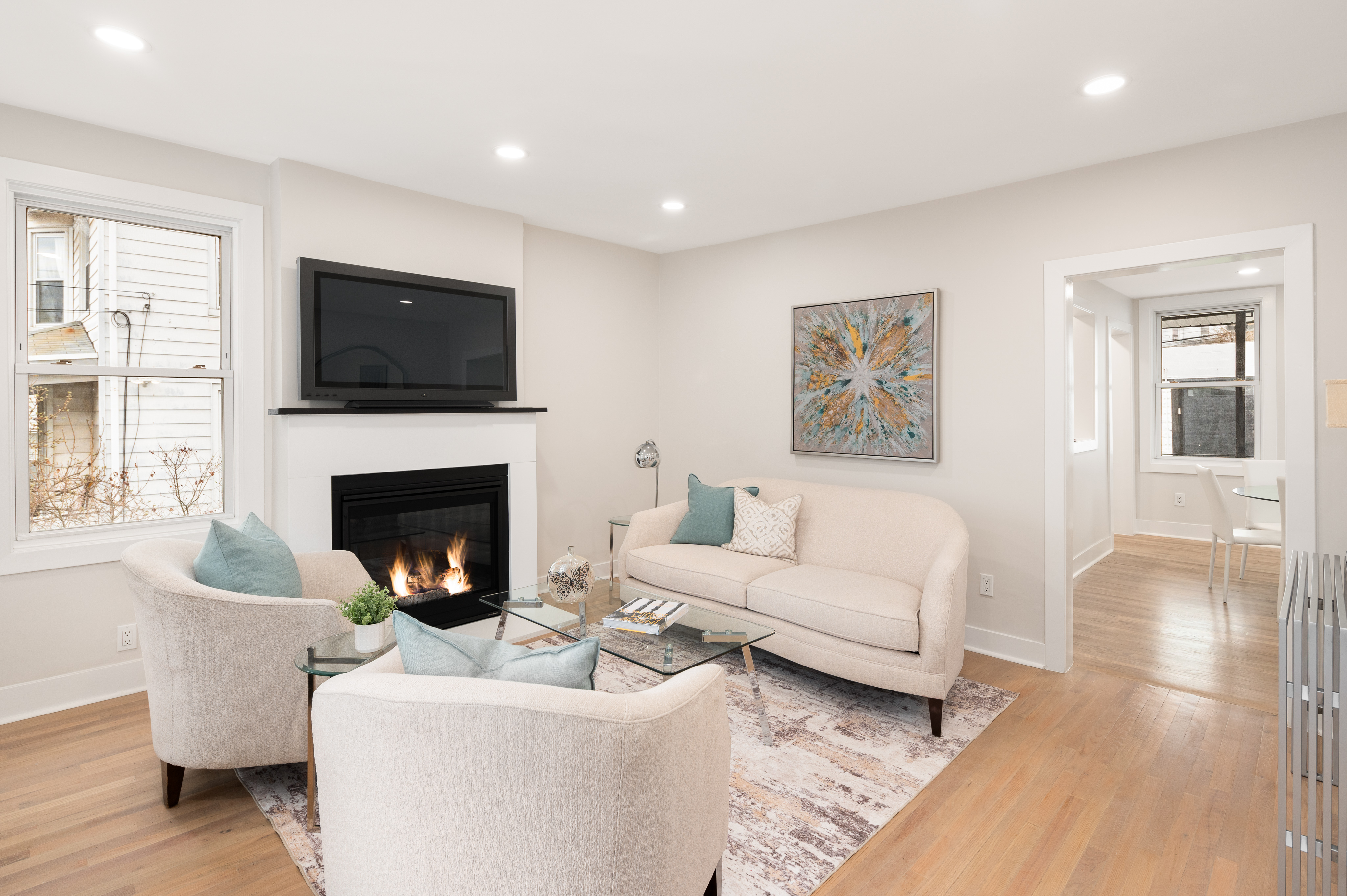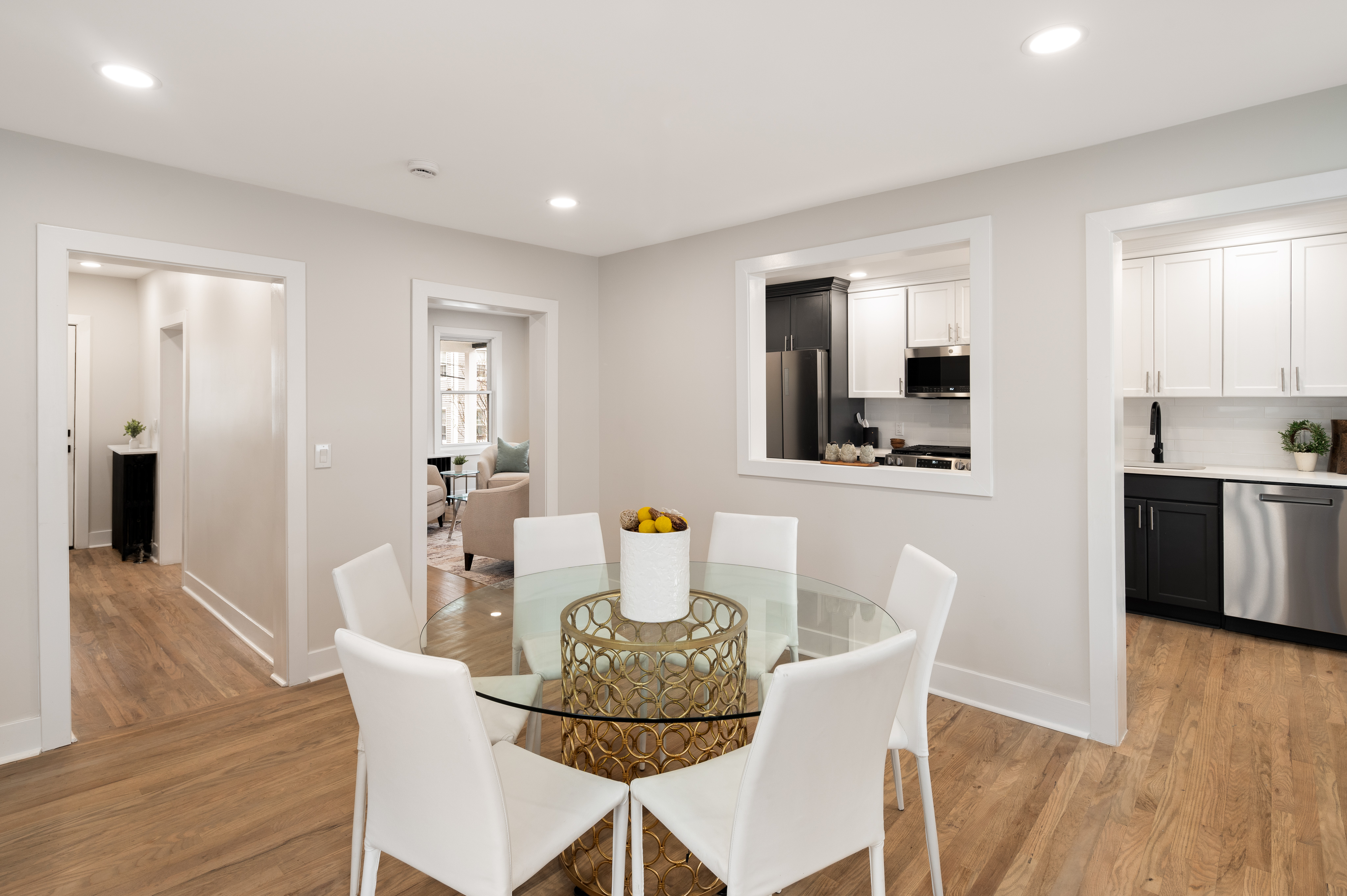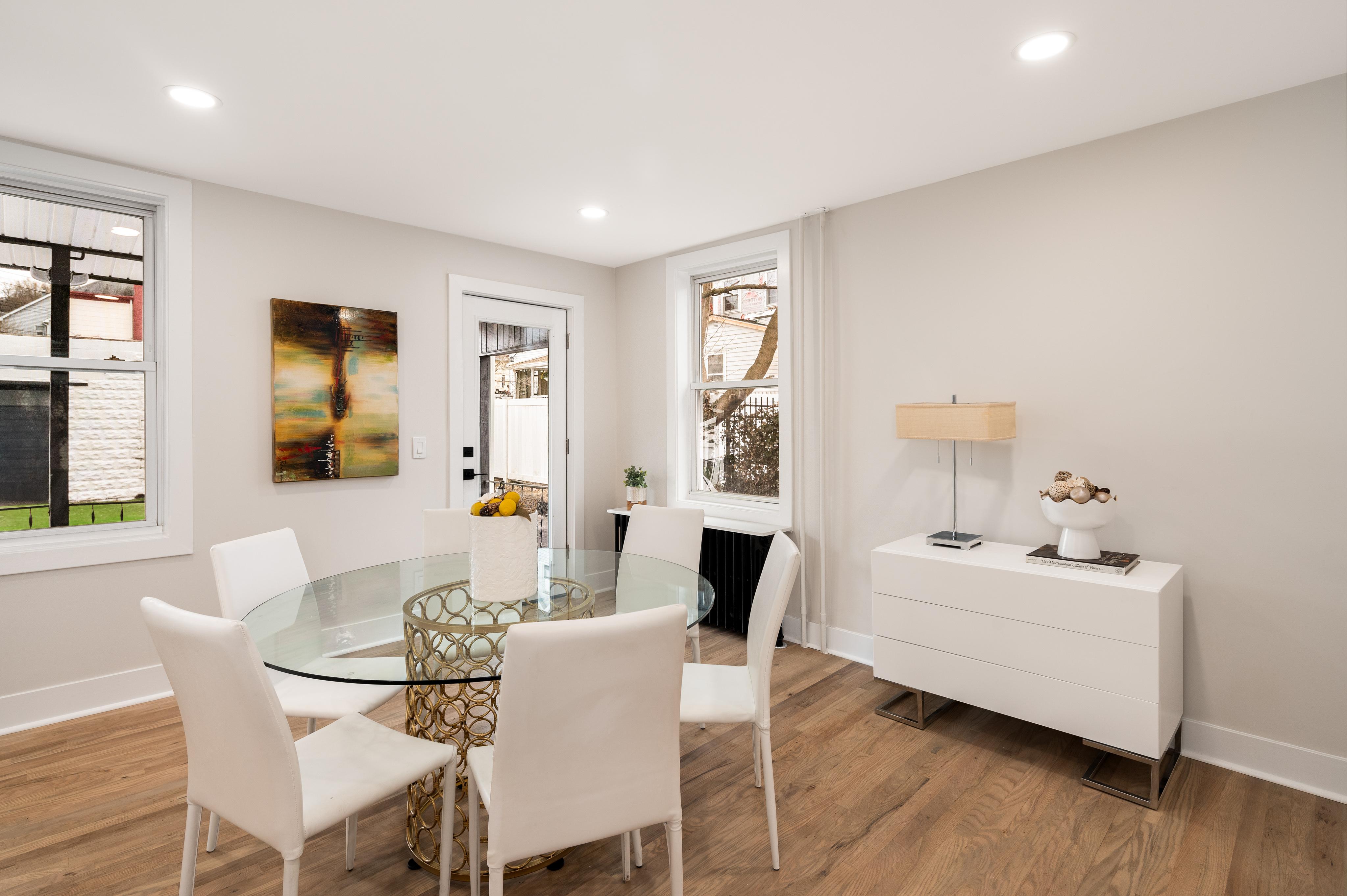 Up the staircase with its bespoke handrail, retire to any of the three fully remodeled bedrooms awash with light. The spa-like bathroom with its new porcelain tile, jetted tub, sink, and toilet is the ideal escape. Radiant paint and new doors, hardware, and lighting are showcased throughout.