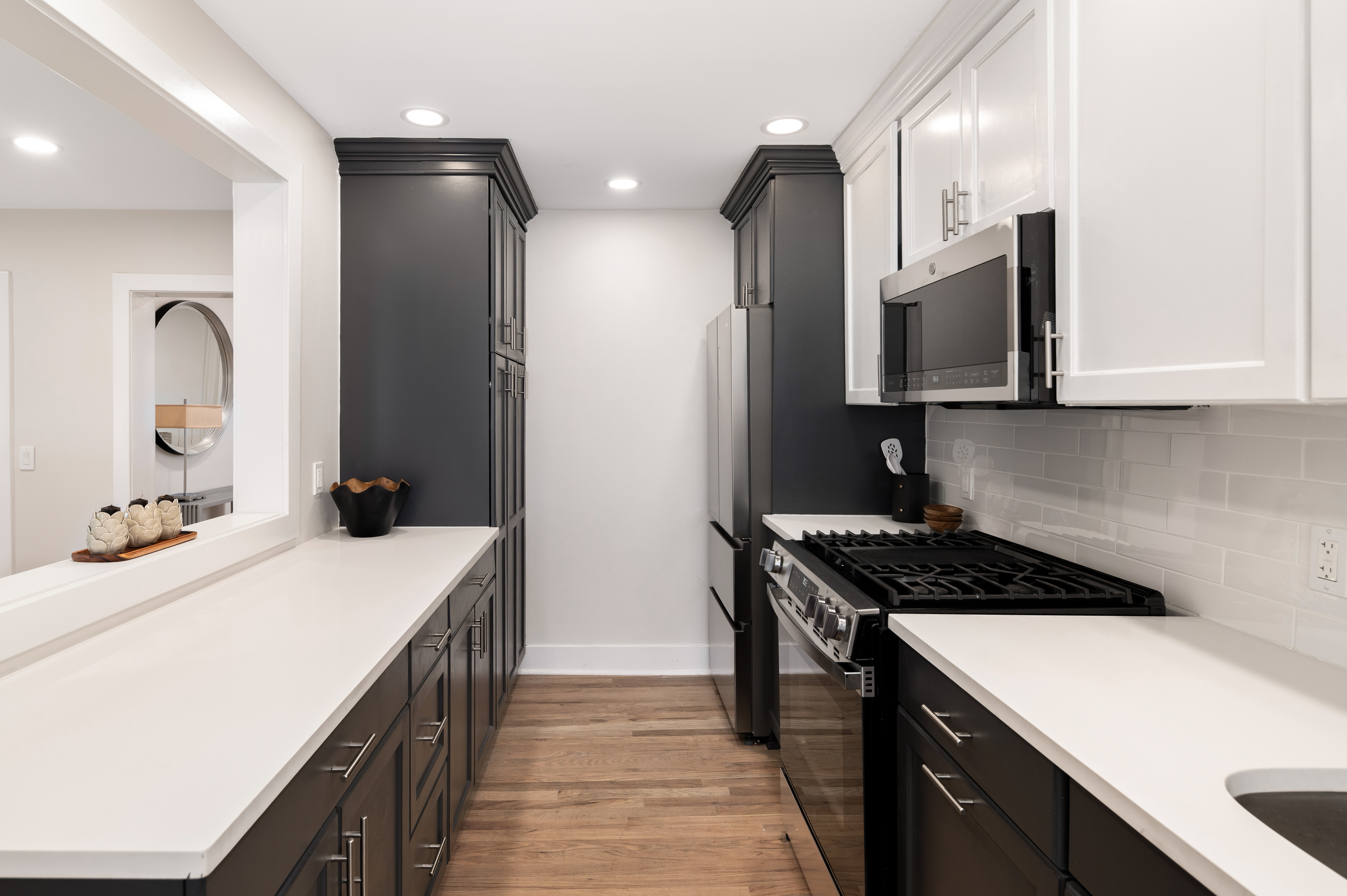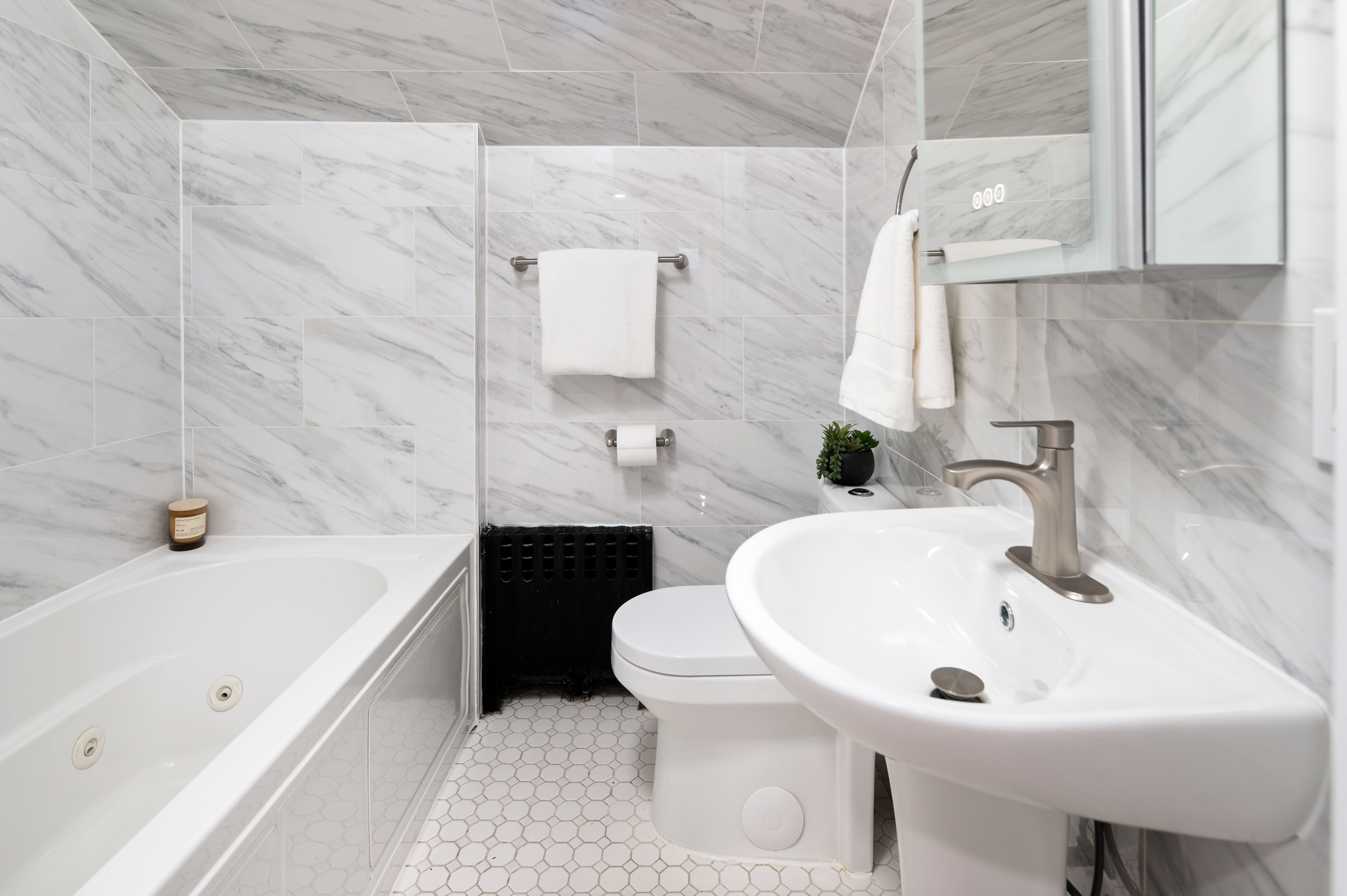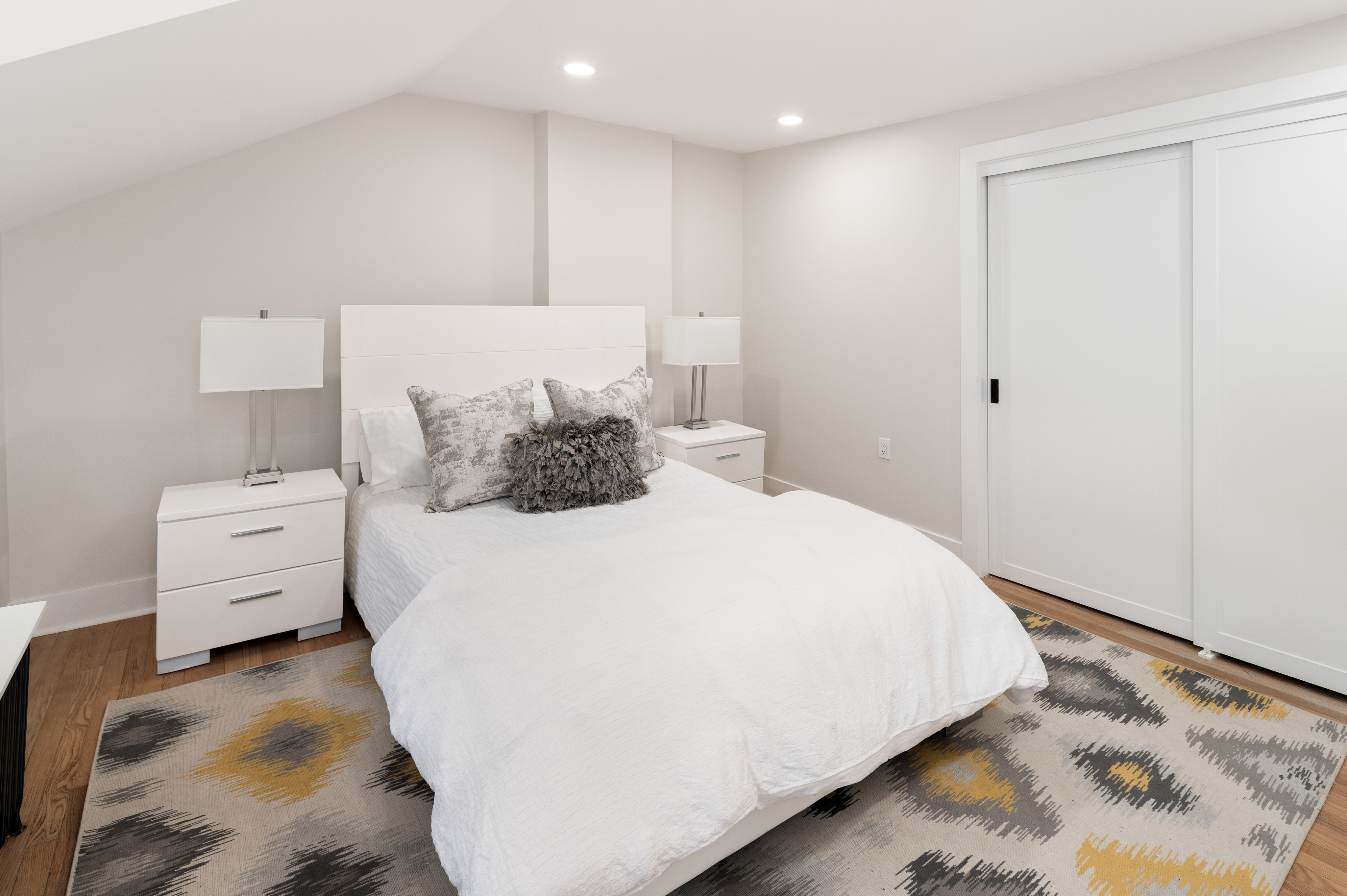 Up the staircase with its bespoke handrail, retire to any of the three fully remodeled bedrooms awash with light. The spa-like bathroom with its new porcelain tile, jetted tub, sink, and toilet is the ideal escape. Radiant paint and new doors, hardware, and lighting are showcased throughout.