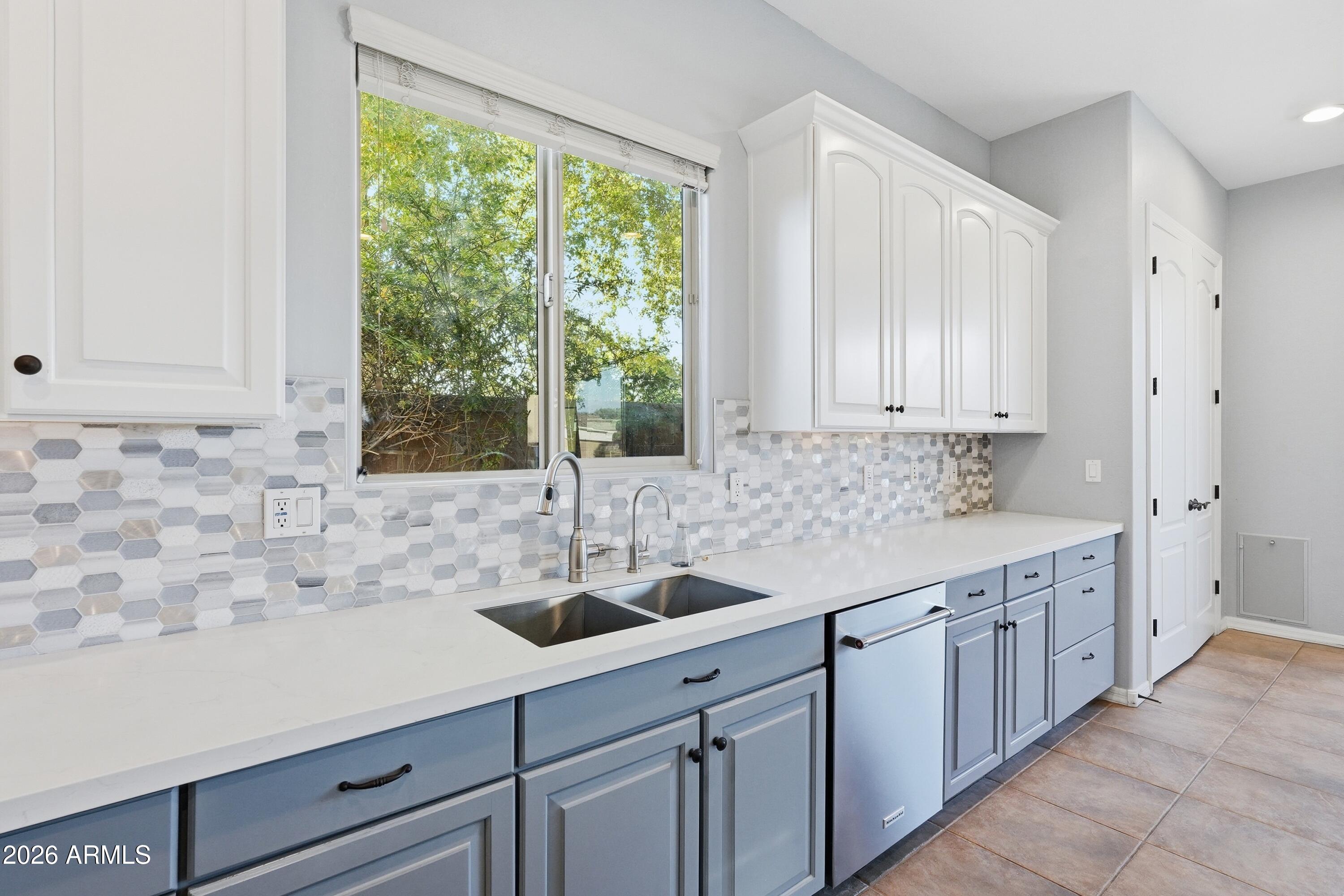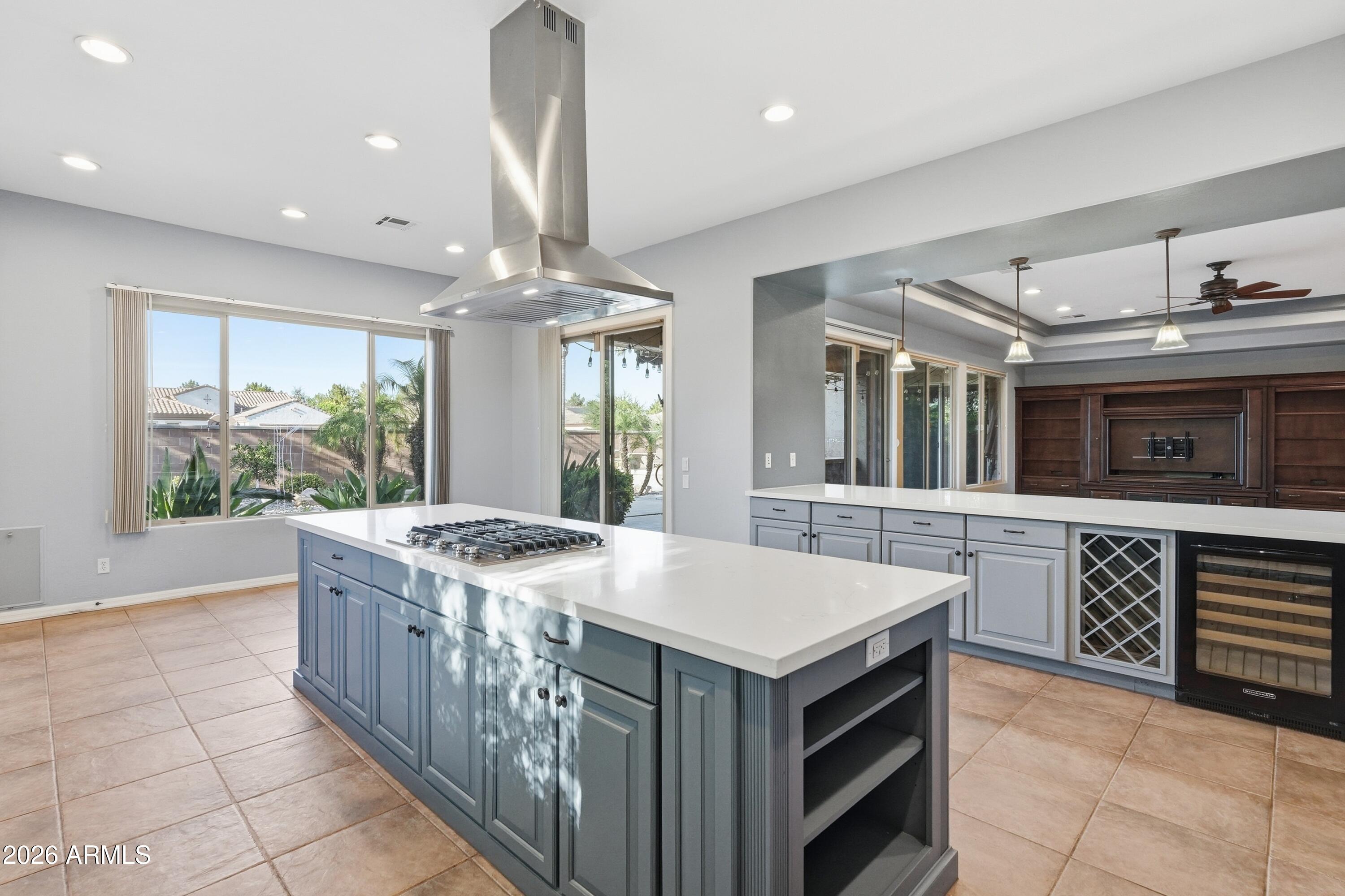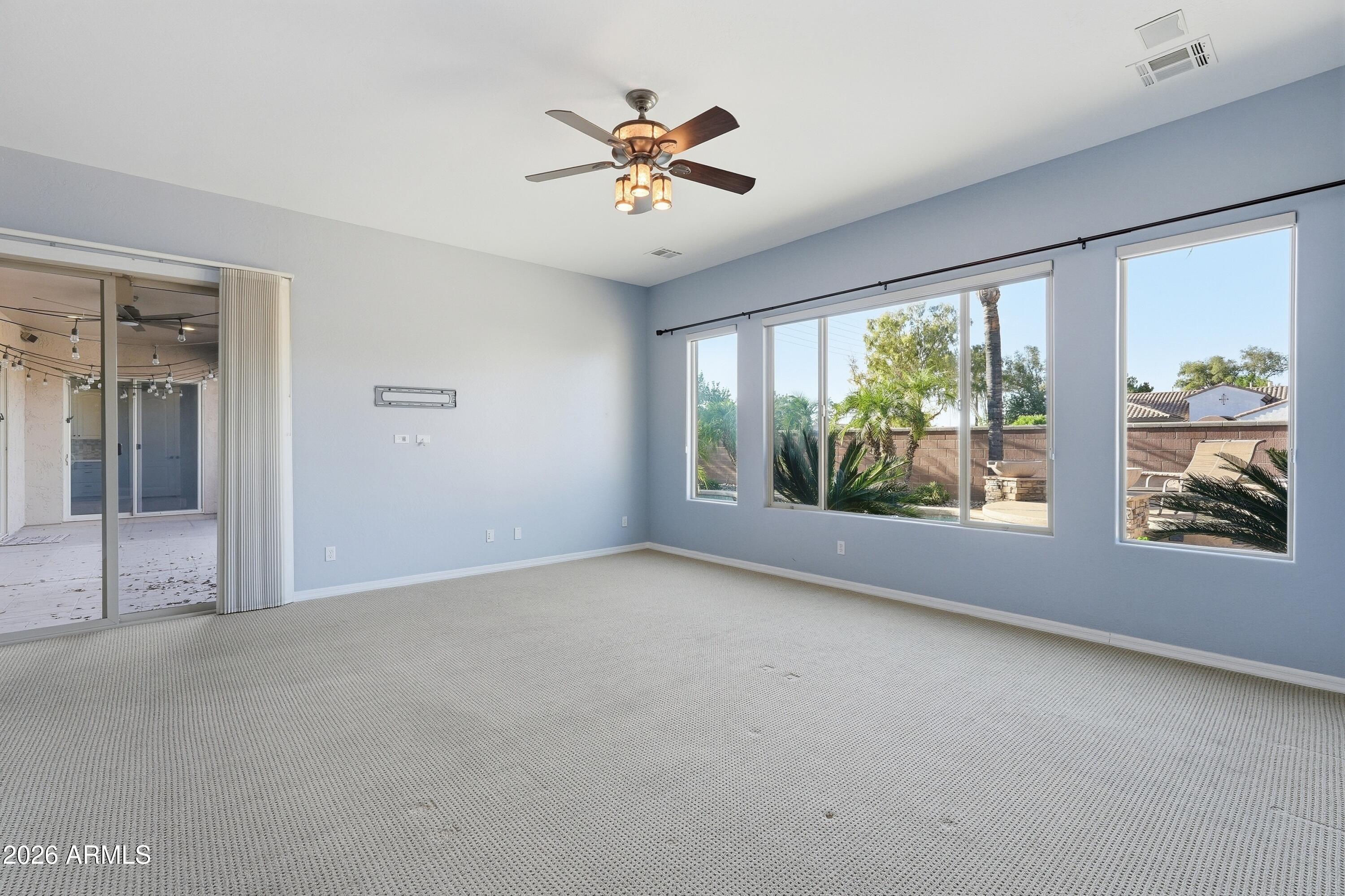 Basement!! Designed for the way people actually live this home delivers standout spaces for gathering relaxing and hosting. The 2021 kitchen remodel anchors the home with quartz counters upgraded appliances a gas line to the island a commercial style hood and wine fridge. The courtyard fireplace adds another warm inviting place to unwind while the finished basement expands the lifestyle with a custom bar theater setup guest space and room for a gym or game area. Outside the backyard feels like a private retreat with a pool new 2025 landscaping turf citrus trees fire pots and a mechanical awning for shaded evenings. Added perks like fiberoptic internet mini splits tankless hot water and 2022 HVAC make daily living even better. Every space feels built for comfort without giving up style. What sets this home apart even further is how well it fits real life beyond the main entertaining spaces. Set on a north south corner lot at the back of a cul de sac this property offers a more private feel and a lot position buyers consistently want. Located inside a gated community and surrounded by A+ public and charter schools in every direction it checks the boxes for both everyday function and long term appeal. The split layout gives the primary suite more separation while the office and secondary spaces create flexibility for work study guests or hobbies. Fresh paint in the basement and office keeps those areas feeling current. Built in living room cabinetry adds both style and function. An owned water softener reverse osmosis system and central vac make daily living easier. The epoxy garage floors and 240V outlet add utility and the updated sump pump adds another practical improvement.