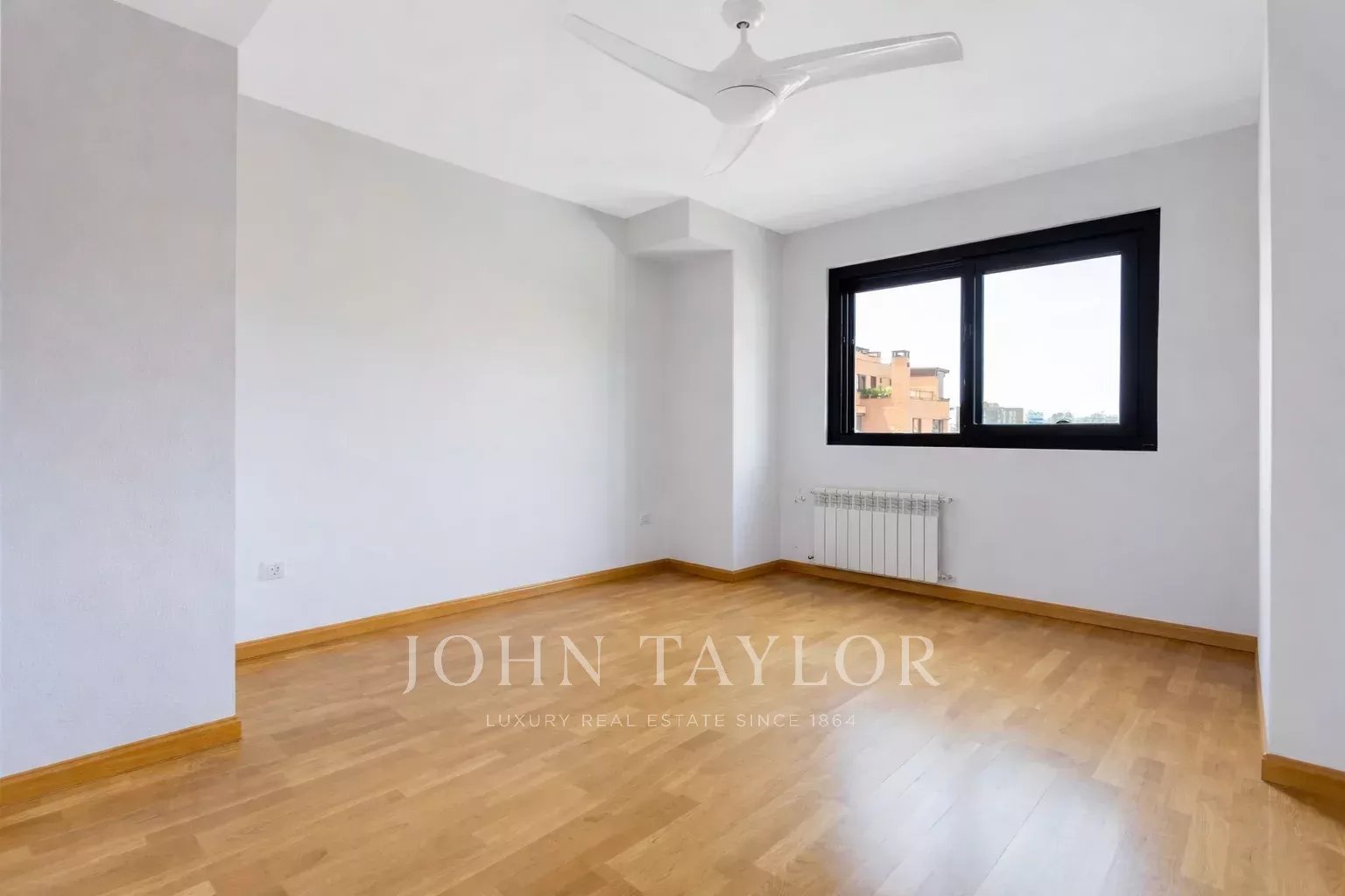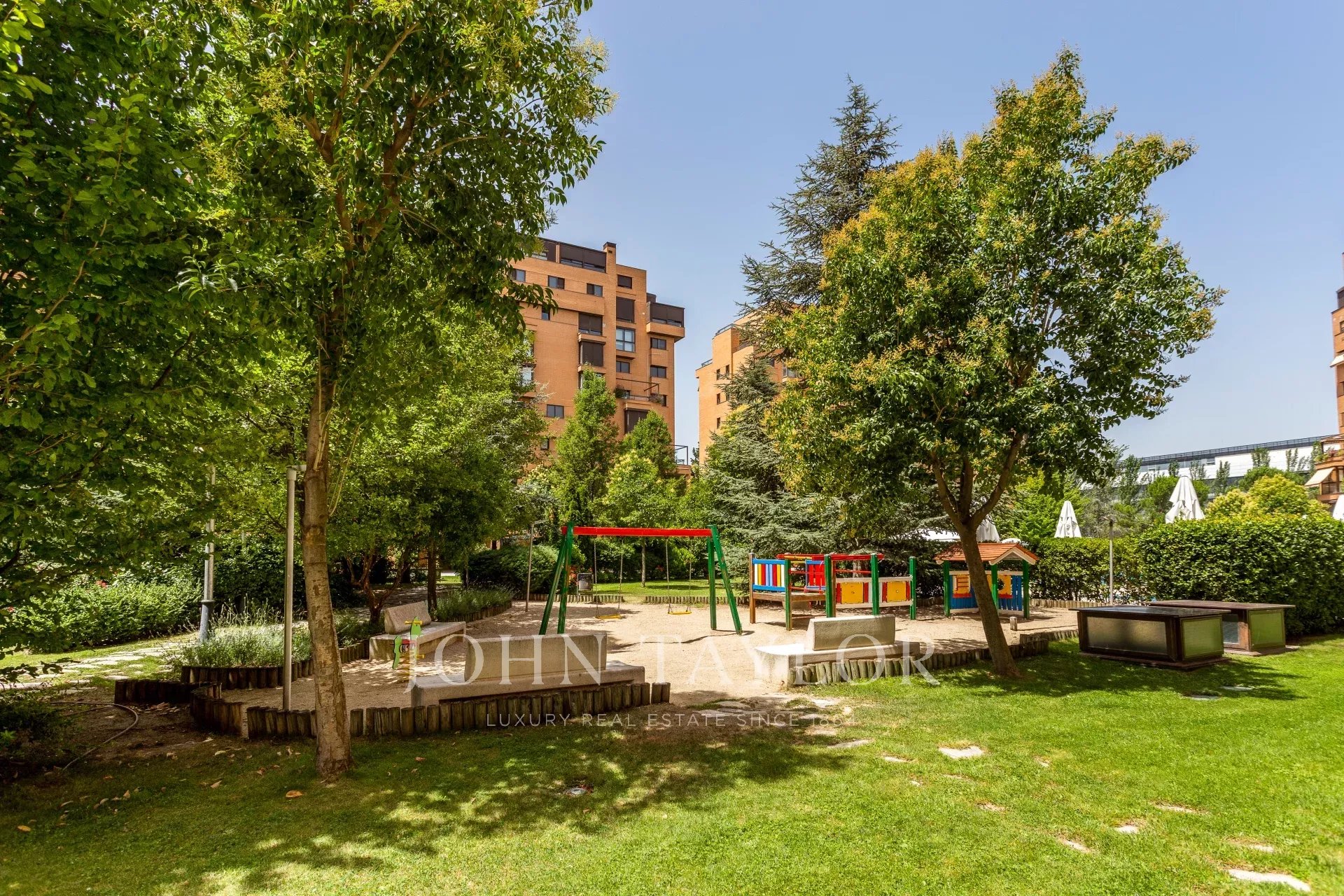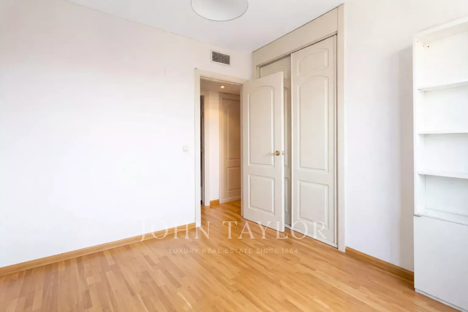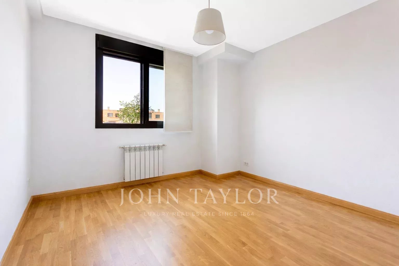 Duplex of 161m² built and 128m² useful, with 3 bedrooms, 2 bathrooms and 1 toilet, in a fantastic gated community in c / Agastia.The flat is distributed in entrance floor with hall with 1 built-in wardrobe, guest toilet, kitchen, laundry terrace and living-dining room. The whole property is exterior, except for the bathrooms, and has views to the communal garden, with southwest orientation.Upstairs there are two double bedrooms both with wardrobes sharing a bathroom and the master bedroom with en-suite bathroom.It has air conditioning, individual heating and hot water, oak flooring, white lacquered doors and double glazed aluminium windows. The flat is rented unfurnished and without electrical appliances except for the dishwasher. With two parking spaces and storage room.The apartment will be available from 1 JulyThe conditions for the rent are 1 month deposit and 2 months additional guarantee. Dogs are not allowed.The wonderful urbanization has large garden areas, swimming pool, gymnasium, paddle tennis court, playground for children and has 24 hour security. The area where it is located next to Arturo Soria street and its shopping centre, is a quiet area of homes in gated communities, in the district of Ciudad Lineal, in the neighbourhood of San Pascual.