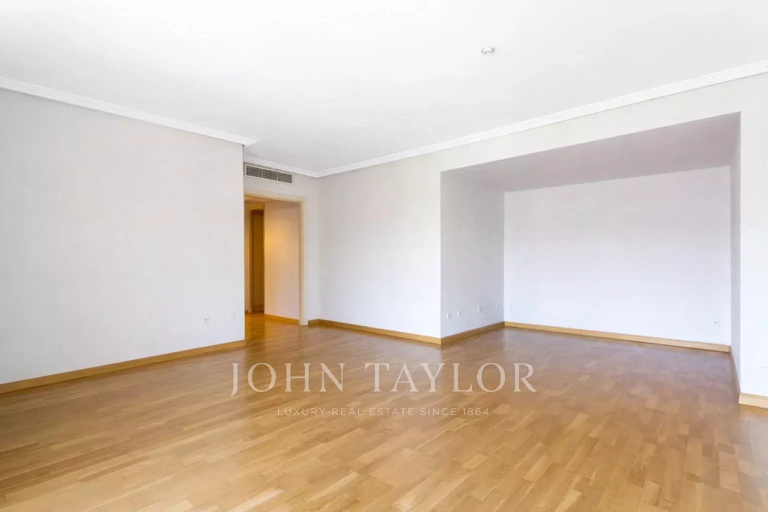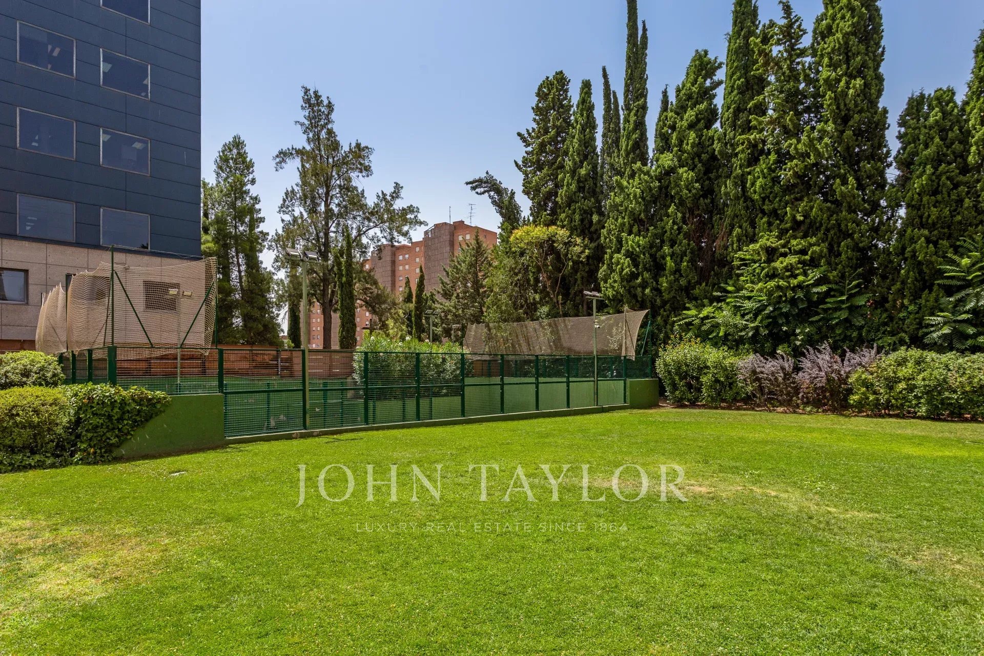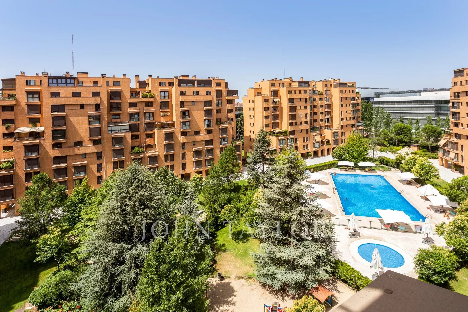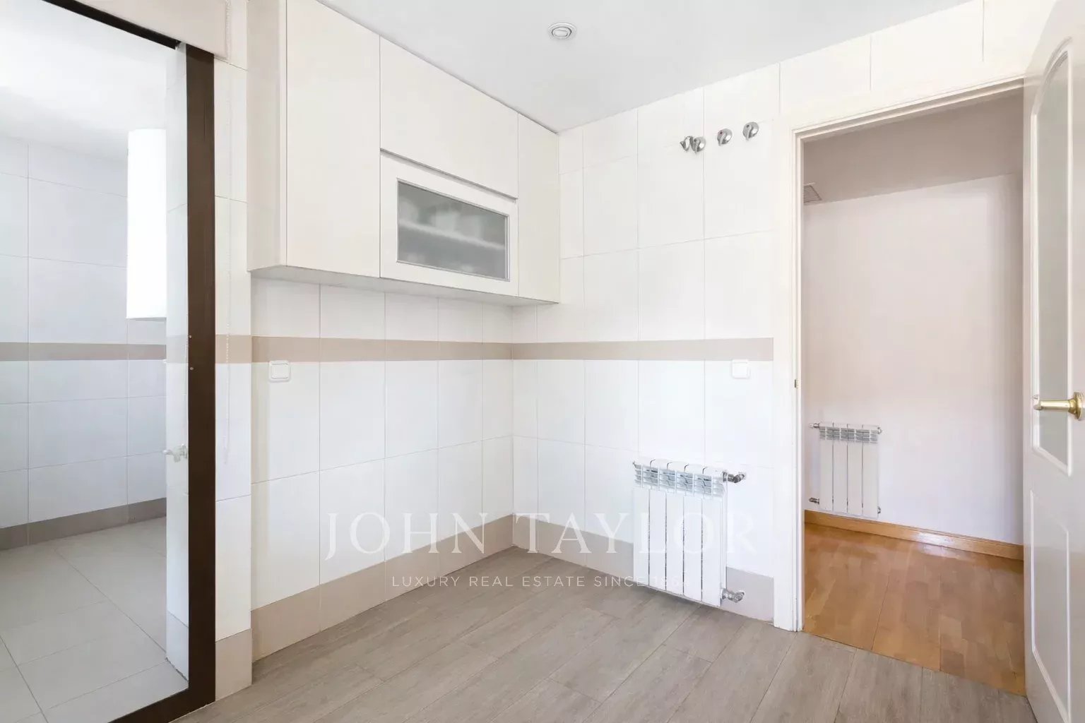 Duplex of 161m² built and 128m² useful, with 3 bedrooms, 2 bathrooms and 1 toilet, in a fantastic gated community in c / Agastia.The flat is distributed in entrance floor with hall with 1 built-in wardrobe, guest toilet, kitchen, laundry terrace and living-dining room. The whole property is exterior, except for the bathrooms, and has views to the communal garden, with southwest orientation.Upstairs there are two double bedrooms both with wardrobes sharing a bathroom and the master bedroom with en-suite bathroom.It has air conditioning, individual heating and hot water, oak flooring, white lacquered doors and double glazed aluminium windows. The flat is rented unfurnished and without electrical appliances except for the dishwasher. With two parking spaces and storage room.The apartment will be available from 1 JulyThe conditions for the rent are 1 month deposit and 2 months additional guarantee. Dogs are not allowed.The wonderful urbanization has large garden areas, swimming pool, gymnasium, paddle tennis court, playground for children and has 24 hour security. The area where it is located next to Arturo Soria street and its shopping centre, is a quiet area of homes in gated communities, in the district of Ciudad Lineal, in the neighbourhood of San Pascual.