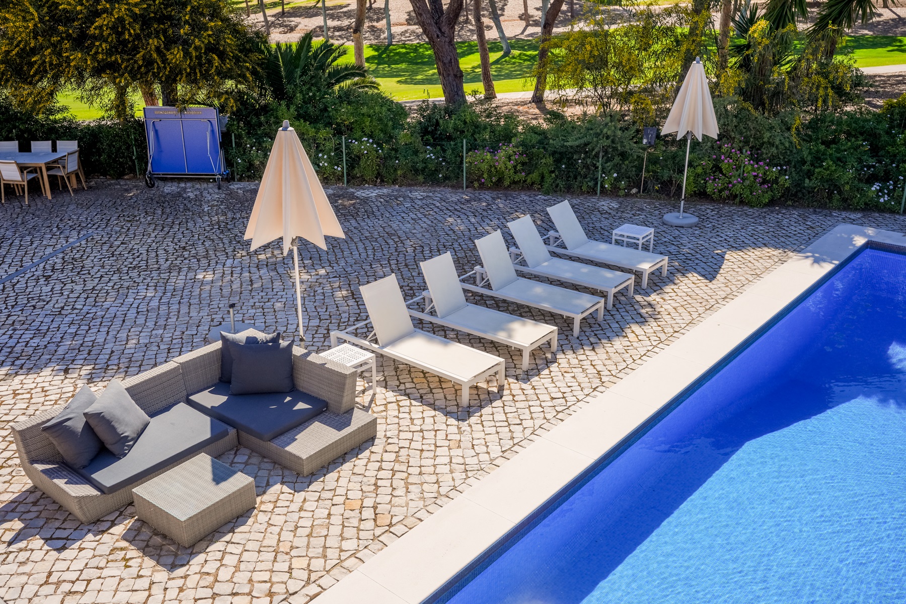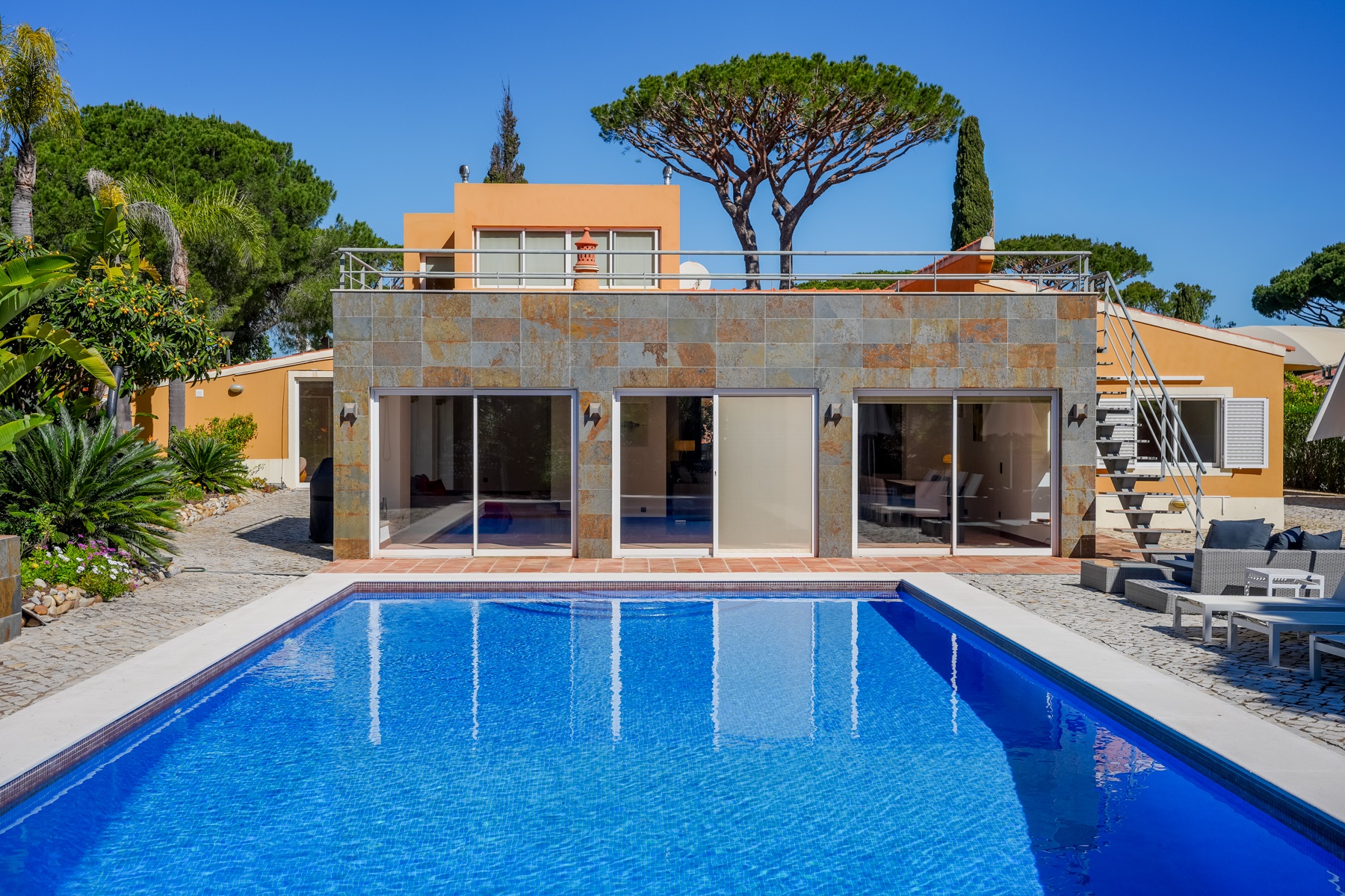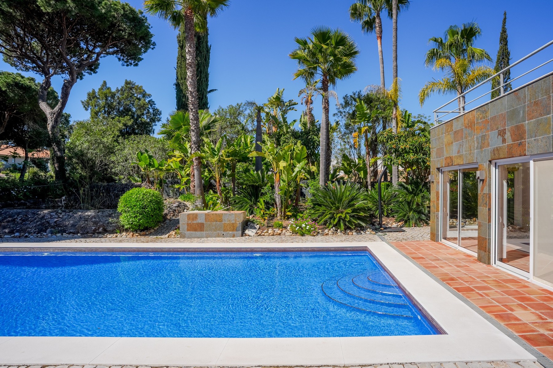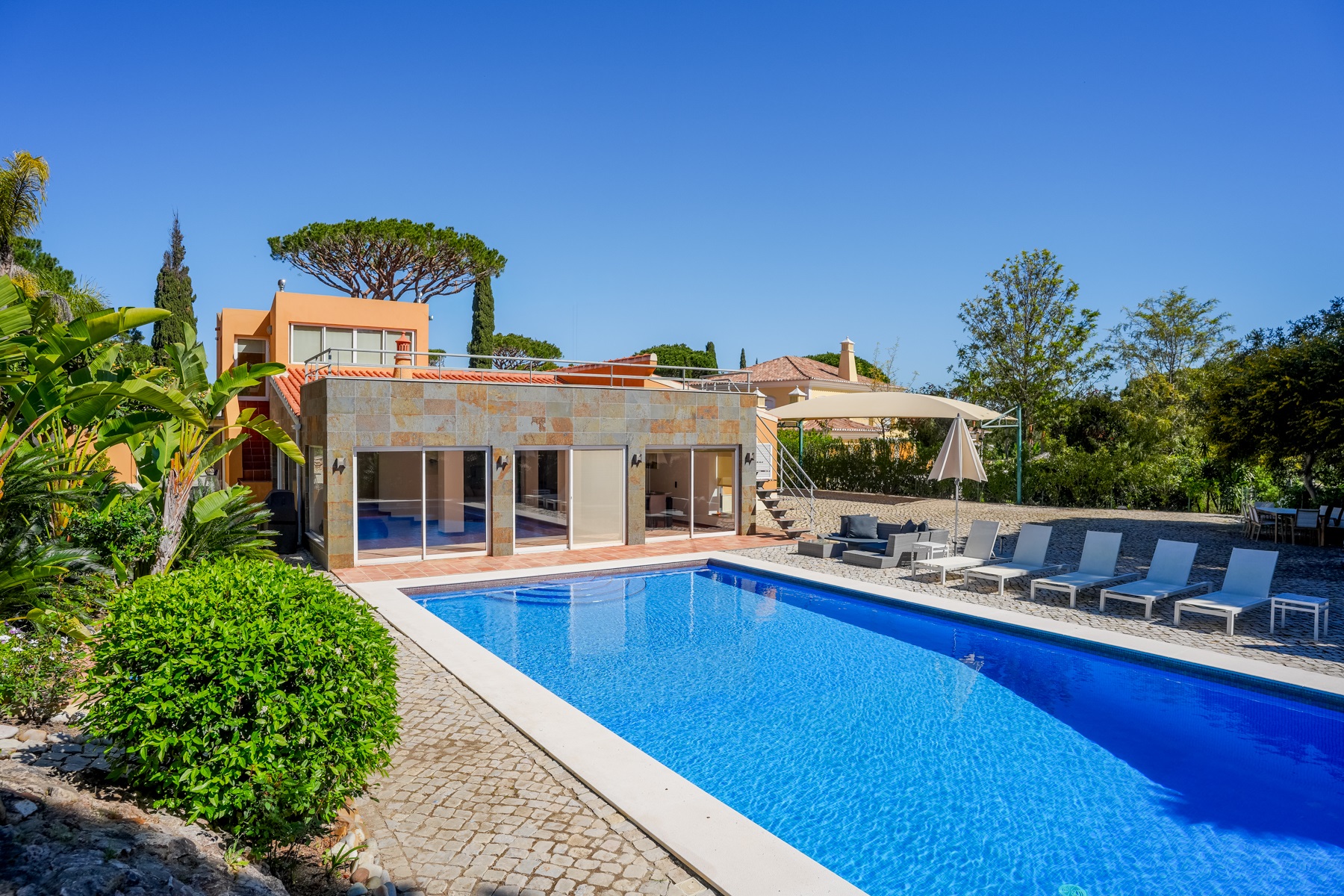 Discover a truly rare opportunity in Vilamoura: a magnificent villa with privileged views over the iconic Old Course golf course, one of the most prestigious both nationally and internationally. Located on an exclusive cul-de-sac, this property offers the perfect balance between centrality, absolute privacy, tranquility, and an exceptional natural setting. Built with great attention to detail, quality, and comfort, the villa combines contemporary elegance with timeless charm. Outside, enjoy a true private retreat: a spacious Portuguese cobblestone area, an inviting swimming pool, and a lush, beautifully landscaped garden, meticulously maintained. The various terraces and leisure areas have been designed to provide unique moments of relaxation and socializing, always framed by the surrounding greenery. In terms of comfort and energy efficiency, the property features natural stone flooring with underfloor heating, as well as a solar panel system for water heating—ensuring year-round comfort and sustainability. With its picturesque charm and solid construction, the villa offers 5 bedrooms, including 2 elegant suites. The spacious split-level living room, with large sliding doors, creates a seamless connection between indoor and outdoor spaces, flooding the interiors with natural light and providing direct access to the pool area. For added versatility and privacy, the property also includes an independent suite on the upper floor—ideal for guests, rental purposes, or additional living space. A unique property where luxury, prime location, and exclusivity come together to offer a truly distinguished lifestyle.