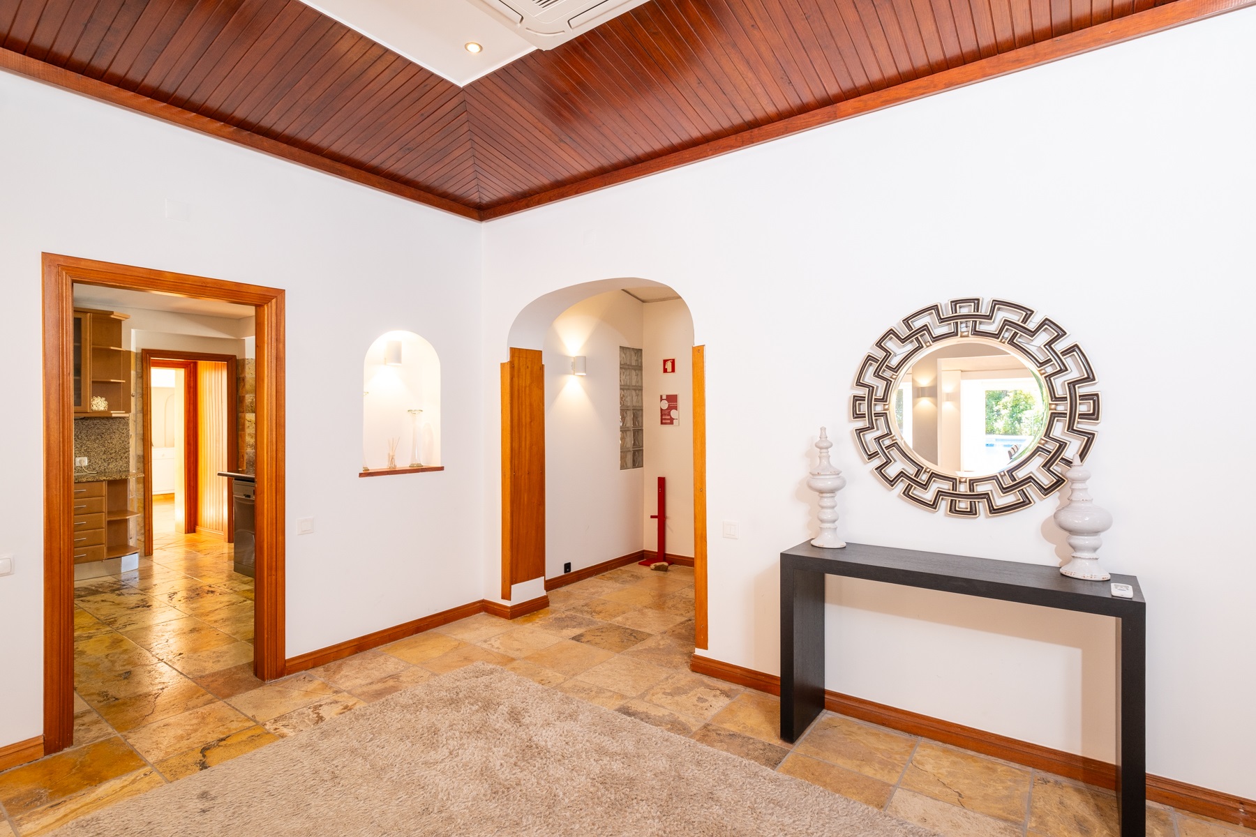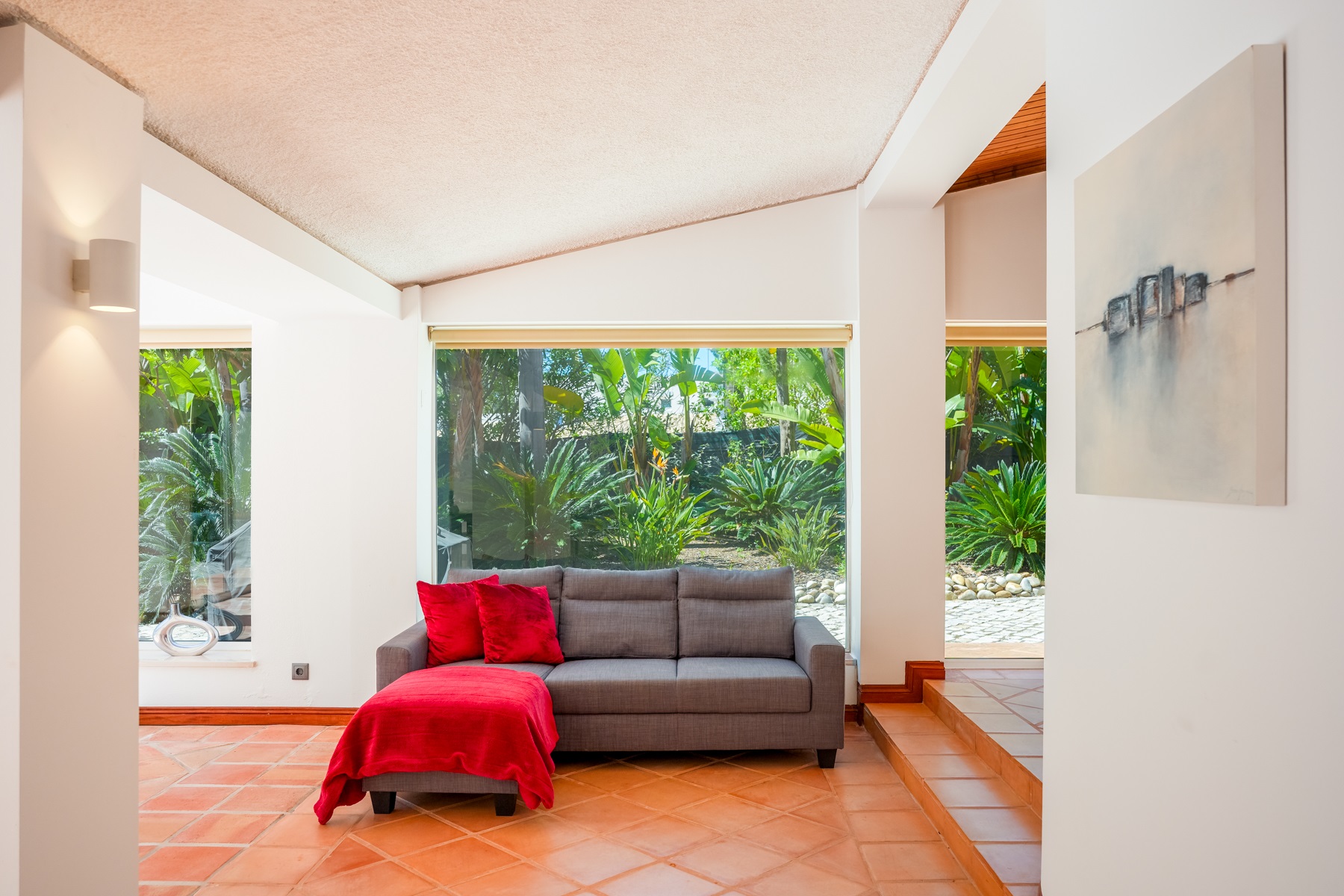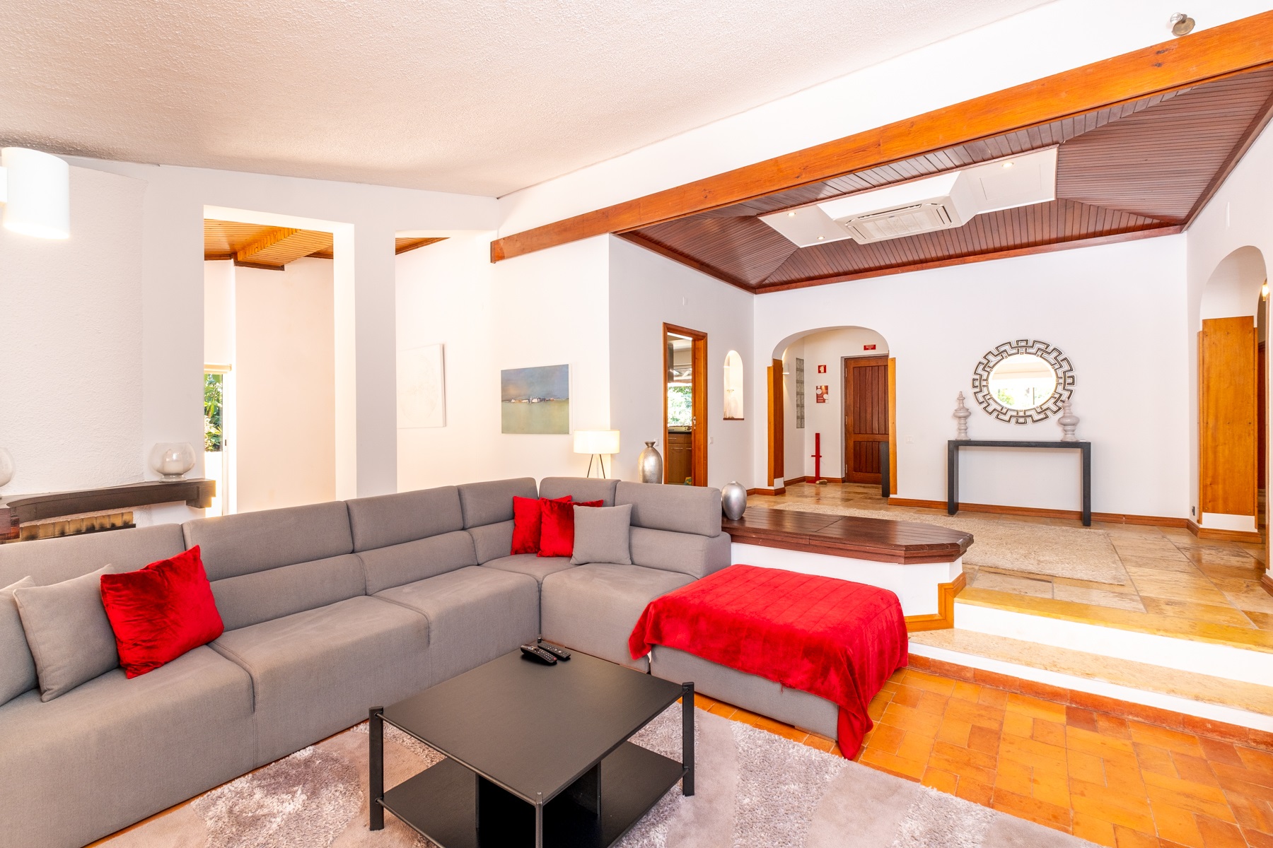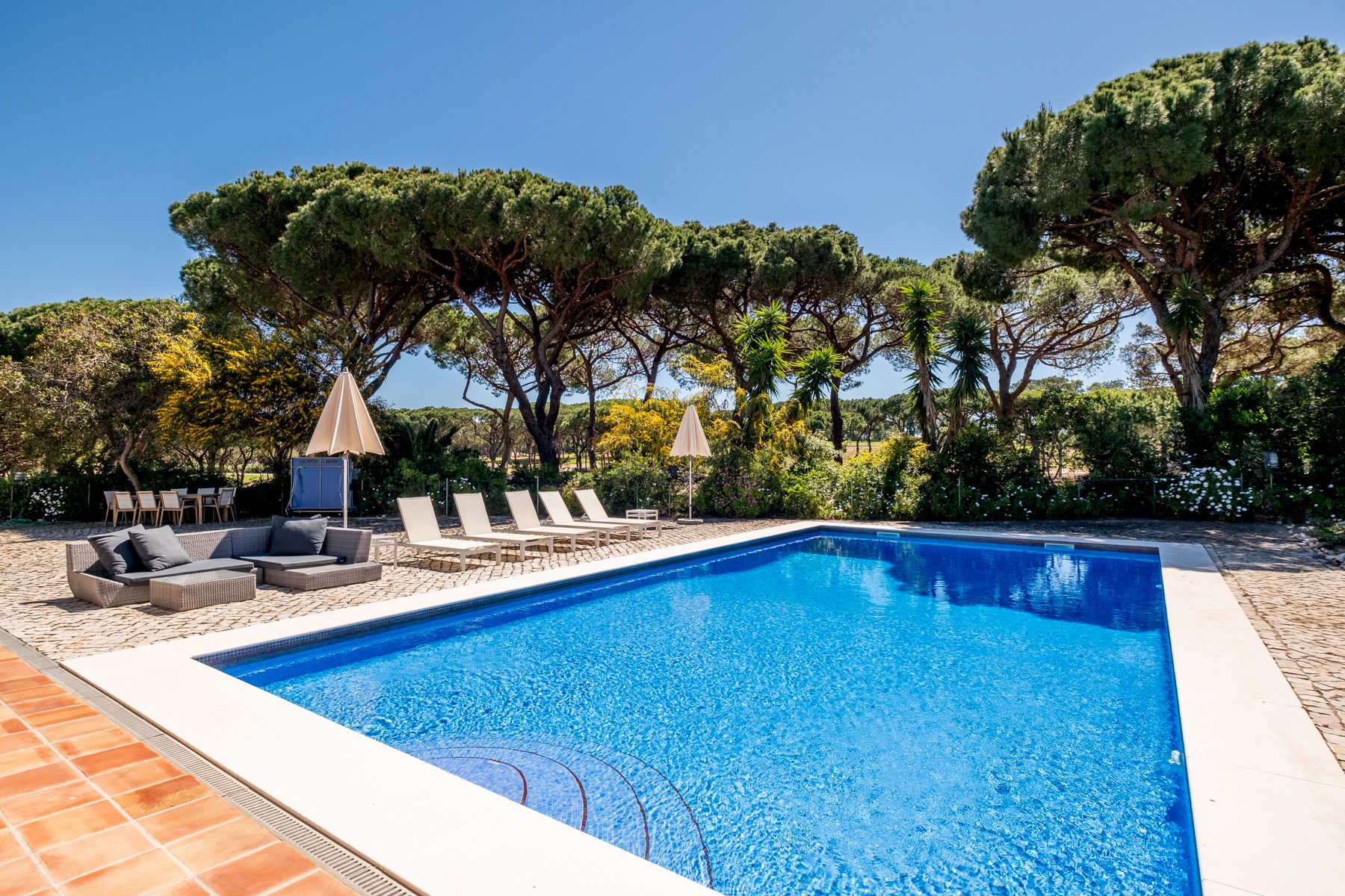 Discover a truly rare opportunity in Vilamoura: a magnificent villa with privileged views over the iconic Old Course golf course, one of the most prestigious both nationally and internationally. Located on an exclusive cul-de-sac, this property offers the perfect balance between centrality, absolute privacy, tranquility, and an exceptional natural setting. Built with great attention to detail, quality, and comfort, the villa combines contemporary elegance with timeless charm. Outside, enjoy a true private retreat: a spacious Portuguese cobblestone area, an inviting swimming pool, and a lush, beautifully landscaped garden, meticulously maintained. The various terraces and leisure areas have been designed to provide unique moments of relaxation and socializing, always framed by the surrounding greenery. In terms of comfort and energy efficiency, the property features natural stone flooring with underfloor heating, as well as a solar panel system for water heating—ensuring year-round comfort and sustainability. With its picturesque charm and solid construction, the villa offers 5 bedrooms, including 2 elegant suites. The spacious split-level living room, with large sliding doors, creates a seamless connection between indoor and outdoor spaces, flooding the interiors with natural light and providing direct access to the pool area. For added versatility and privacy, the property also includes an independent suite on the upper floor—ideal for guests, rental purposes, or additional living space. A unique property where luxury, prime location, and exclusivity come together to offer a truly distinguished lifestyle.