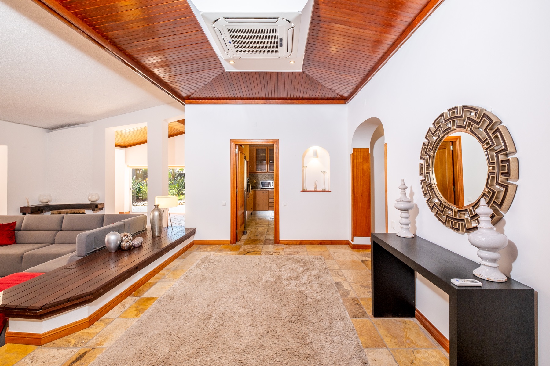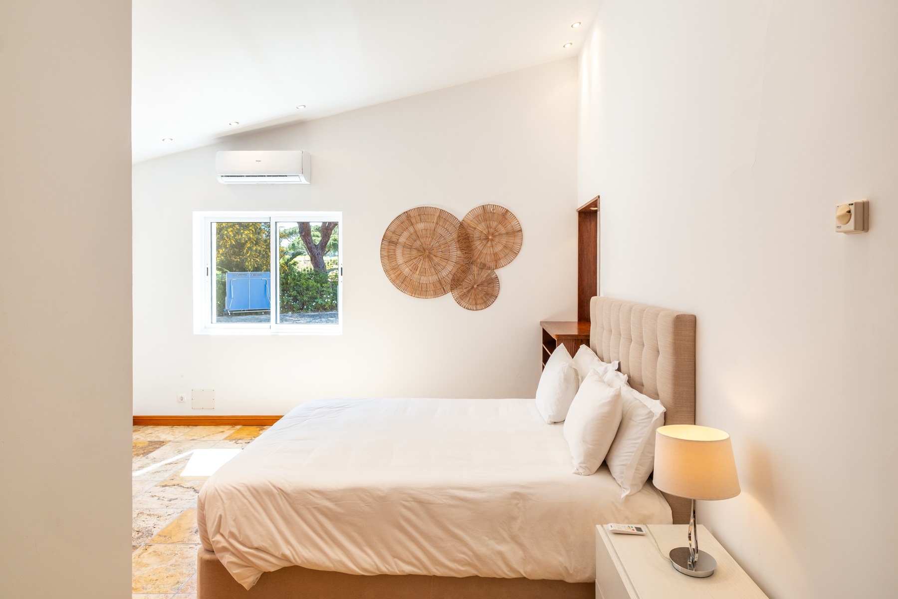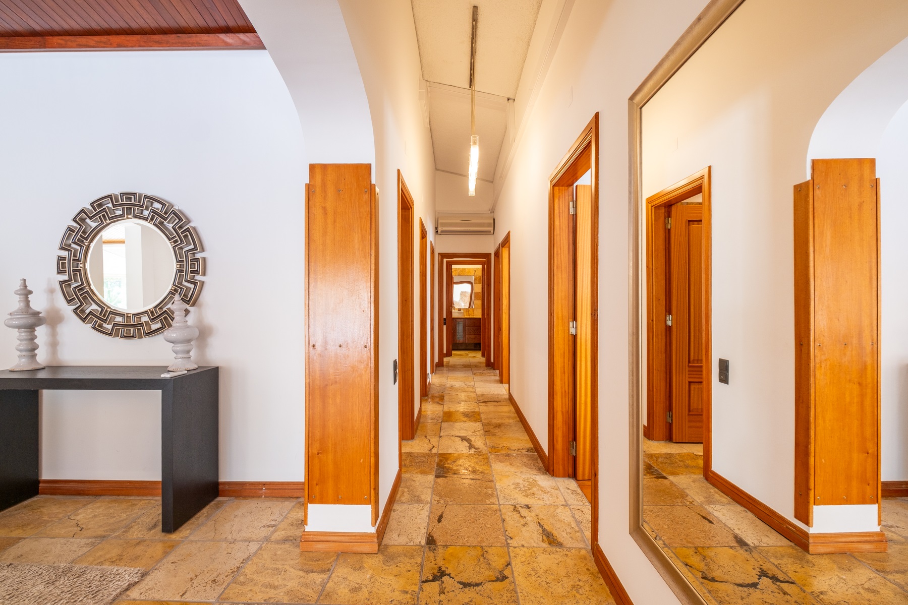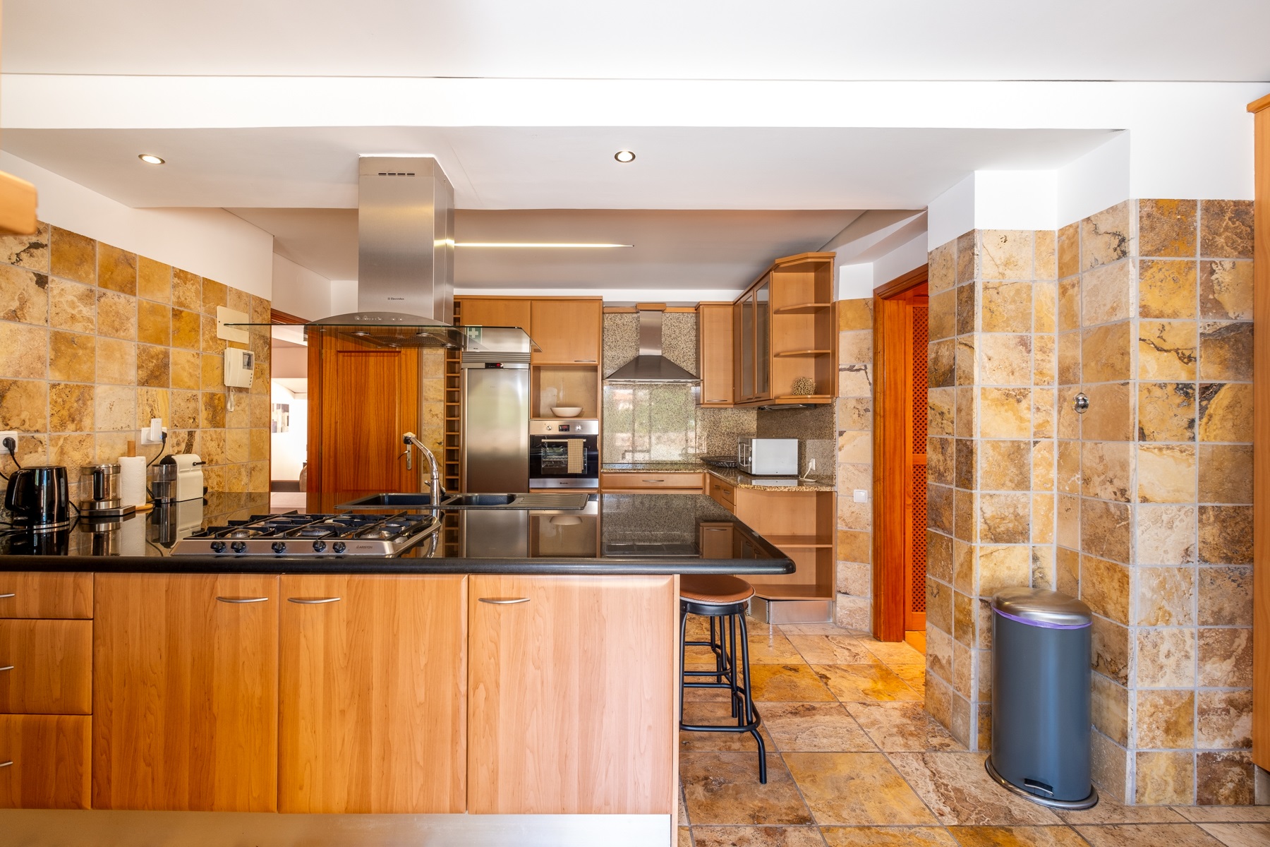 Discover a truly rare opportunity in Vilamoura: a magnificent villa with privileged views over the iconic Old Course golf course, one of the most prestigious both nationally and internationally. Located on an exclusive cul-de-sac, this property offers the perfect balance between centrality, absolute privacy, tranquility, and an exceptional natural setting. Built with great attention to detail, quality, and comfort, the villa combines contemporary elegance with timeless charm. Outside, enjoy a true private retreat: a spacious Portuguese cobblestone area, an inviting swimming pool, and a lush, beautifully landscaped garden, meticulously maintained. The various terraces and leisure areas have been designed to provide unique moments of relaxation and socializing, always framed by the surrounding greenery. In terms of comfort and energy efficiency, the property features natural stone flooring with underfloor heating, as well as a solar panel system for water heating—ensuring year-round comfort and sustainability. With its picturesque charm and solid construction, the villa offers 5 bedrooms, including 2 elegant suites. The spacious split-level living room, with large sliding doors, creates a seamless connection between indoor and outdoor spaces, flooding the interiors with natural light and providing direct access to the pool area. For added versatility and privacy, the property also includes an independent suite on the upper floor—ideal for guests, rental purposes, or additional living space. A unique property where luxury, prime location, and exclusivity come together to offer a truly distinguished lifestyle.