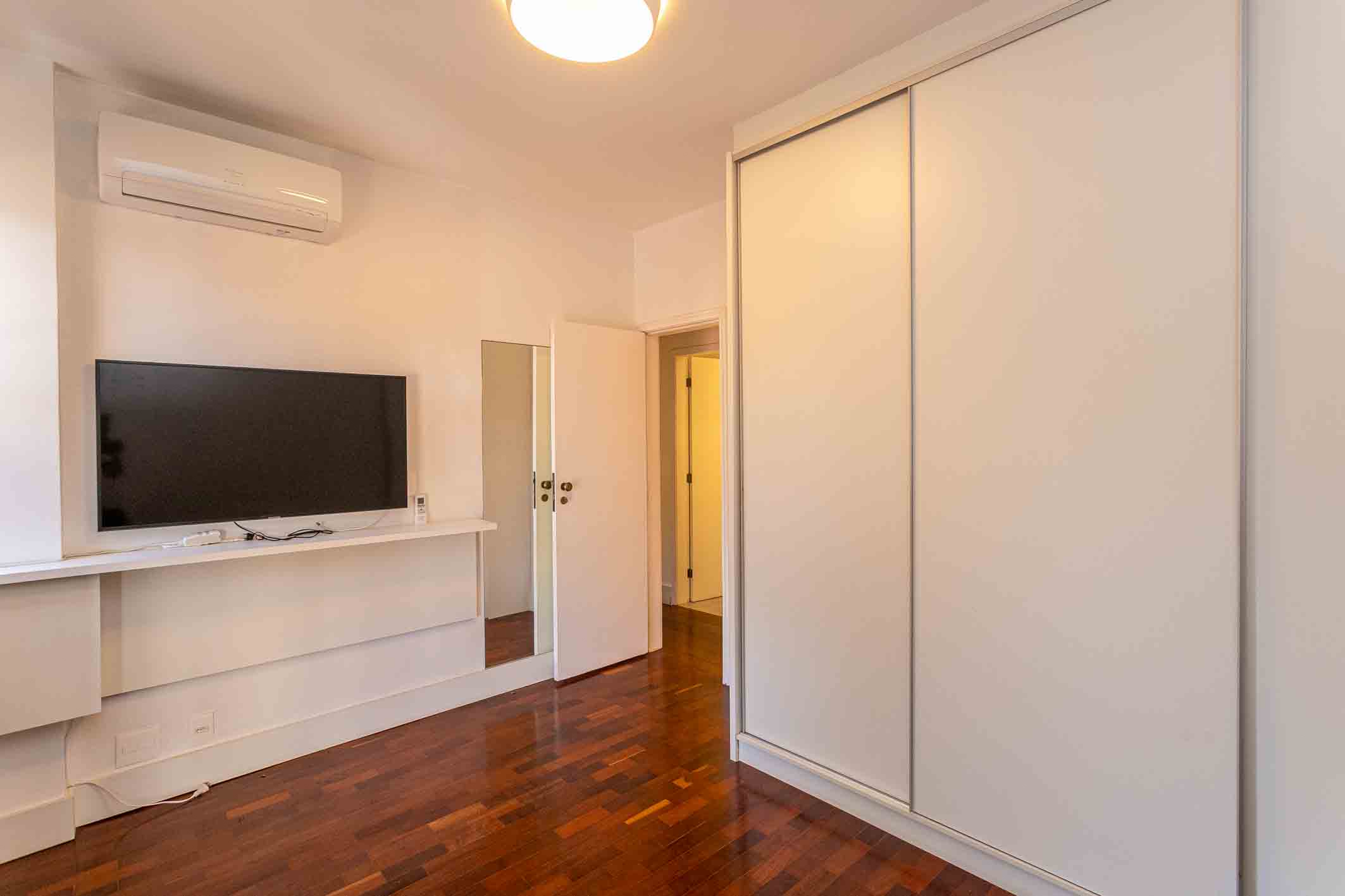 Located on a street with a guardhouse in Ipanema, within a well-managed building, this apartment offers security, privacy, and a privileged position in one of Rio de Janeiro’s most valued neighborhoods. The residence benefits from abundant natural light and consistent ventilation, with open and permanent views over the tree canopy, creating a quiet and pleasant atmosphere throughout the day. The layout comprises three bedrooms, including one suite, all with private balconies, custom cabinetry, and air conditioning, ensuring comfort and organization. The social area features a spacious and well-lit living room, seamlessly integrated with the rest of the apartment. The kitchen is functional and thoughtfully designed, with a central island that enhances circulation and everyday use. The property underwent renovation five years ago and is in excellent condition. The building offers elevators, a playground, and a party room, along with two deeded parking spaces—an important advantage in Ipanema.