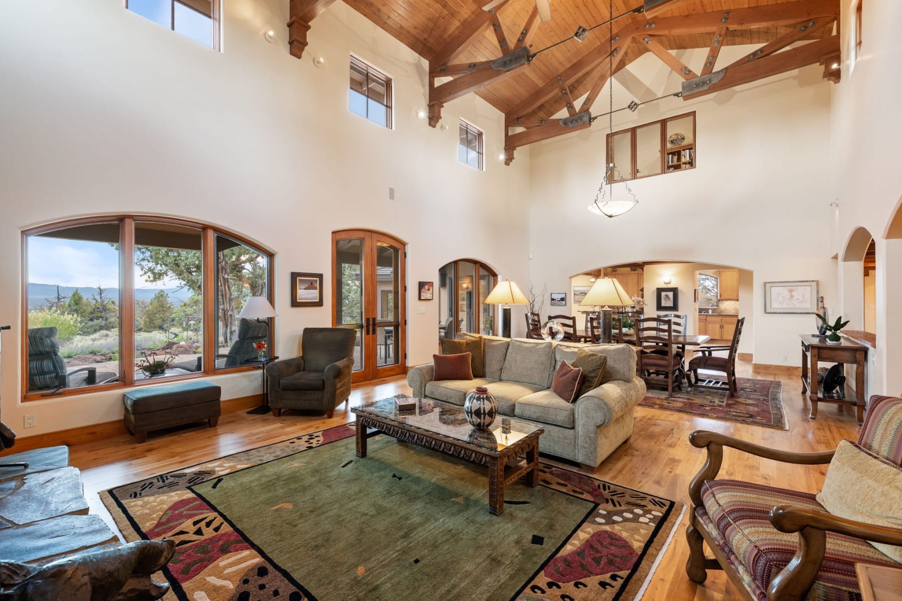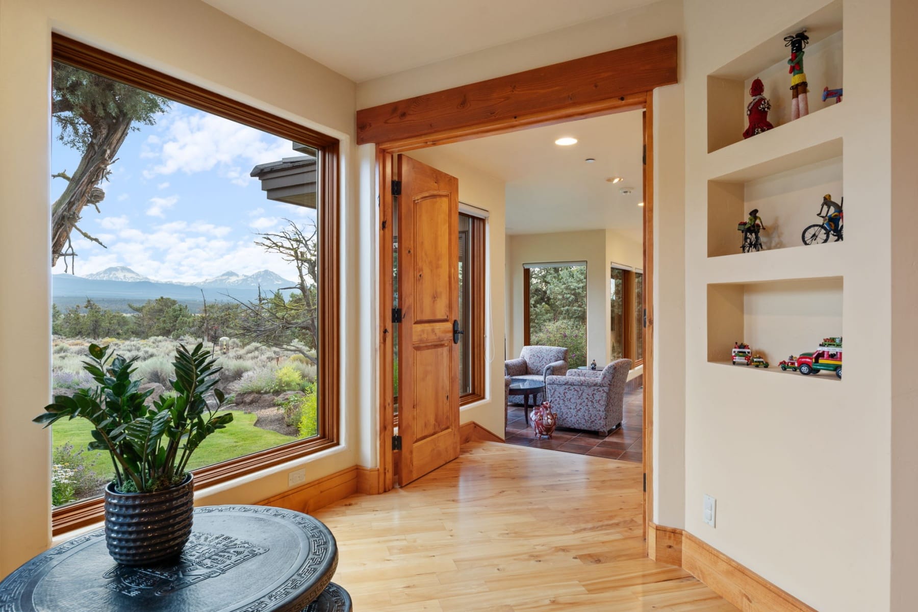 Truly unmatched quality, privacy and serenity in this timeless Sunwest Builders custom home between Bend and Sisters. Situated on almost 10 acres in the exclusive Grand Ridge neighborhood overlooking the Cascade mountains, its location offers access to all central Oregon has to offer. Home features predominantly single level living with mountains views from almost every room in the house. High ceilings, exposed beams and custom woodwork are just a few of the features highlighted this European styled masterpiece. Great separation of space with the main bedroom separated from the rest of the house. Main bedroom suite features workout room with sauna, a private patio with hot top, his and hers closets, a large walk-in shower and soaking tub. This property is a must see.
