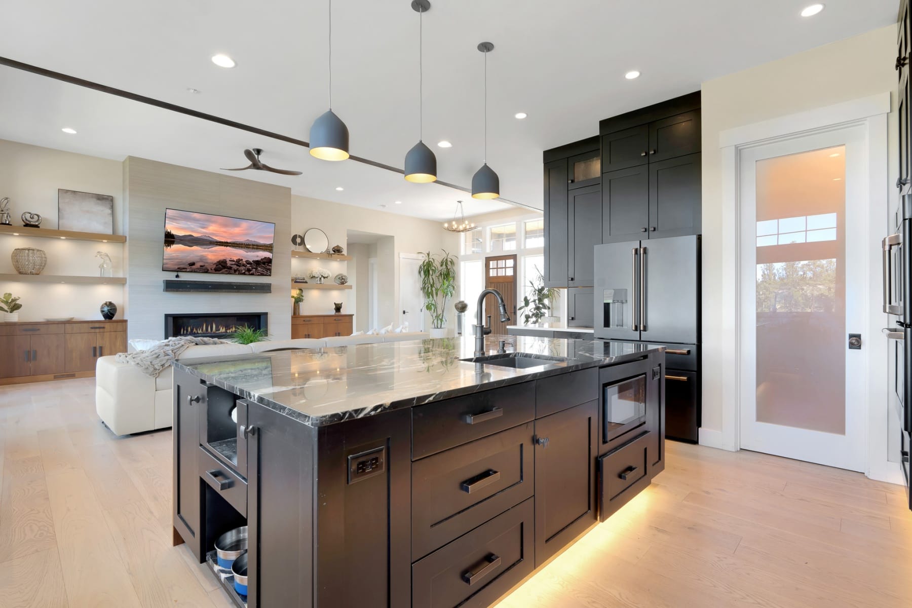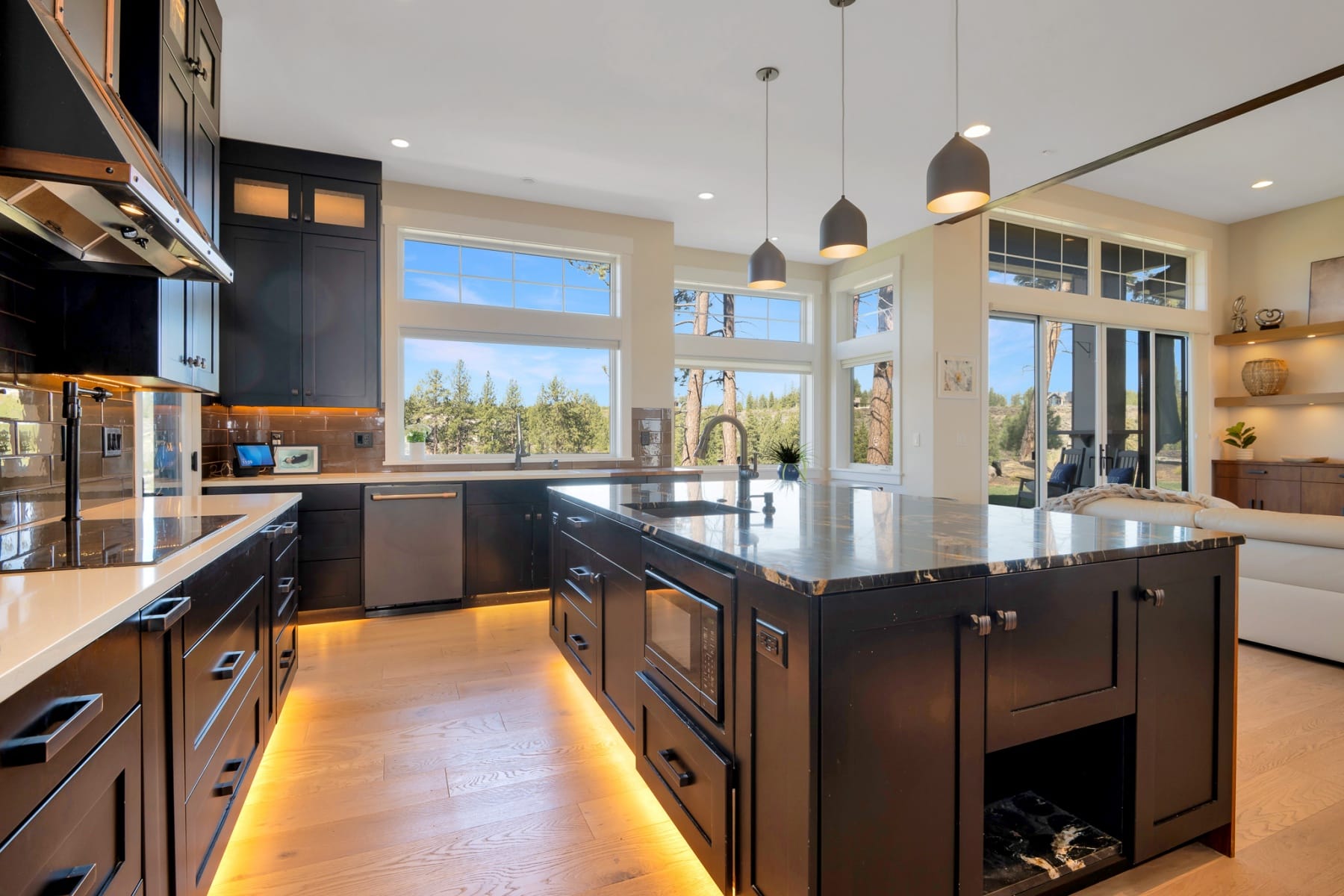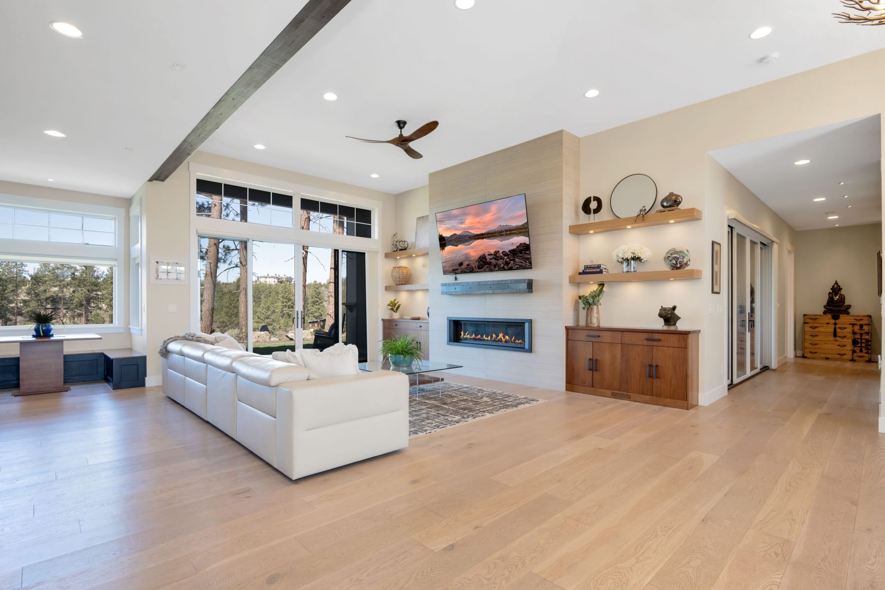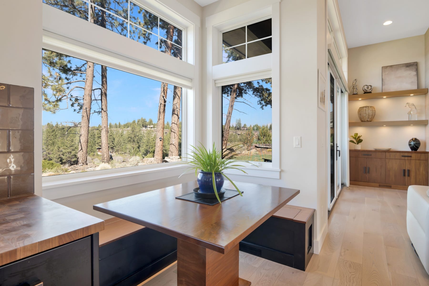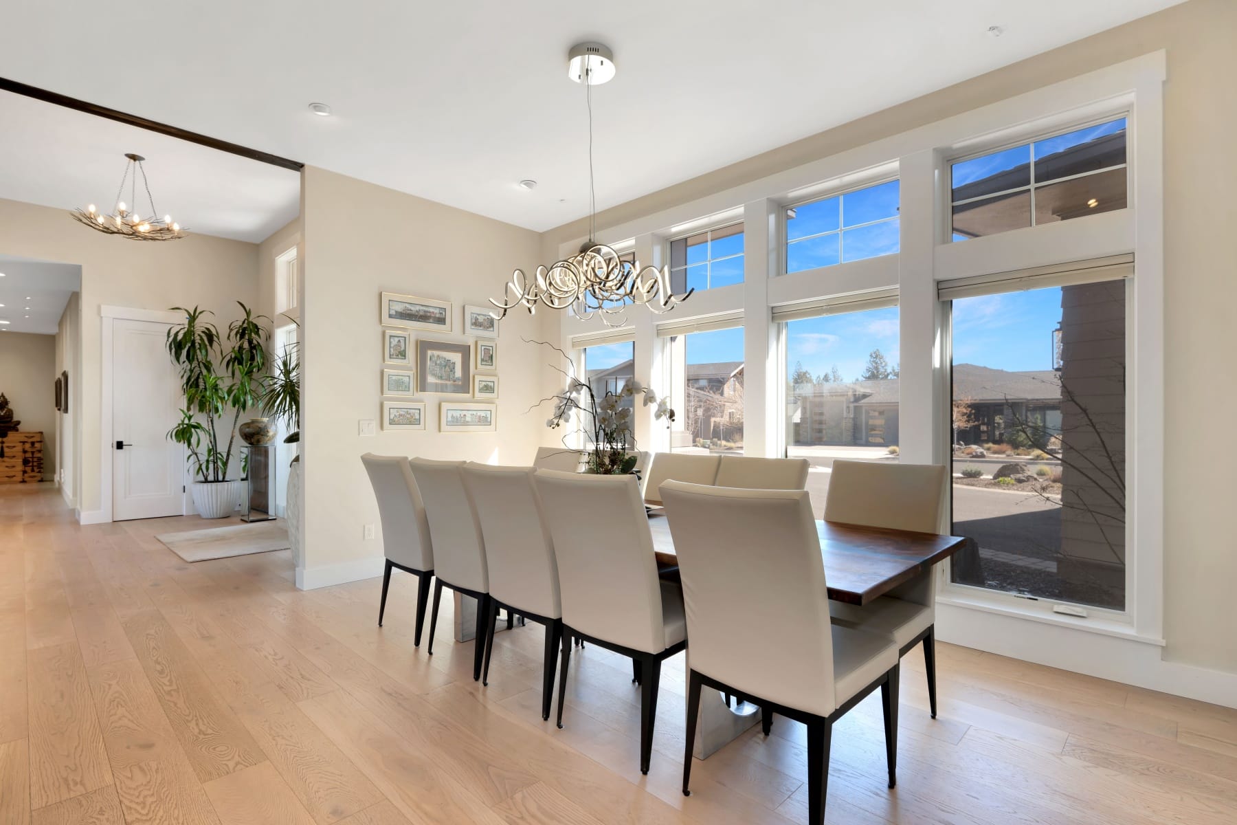 Set along a coveted stretch of the Deschutes River, this impeccably designed custom home is oriented to capture a rare dual perspective, looking upriver to the mountains beyond while also following the river as it bends and moves through the landscape below. Nearly every room is positioned to the water, creating a constant connection to light, movement, and season. Intentionally designed by Madrone Construction, the single-level home is both refined and highly livable, equally suited to entertaining and everyday ease. Spanning 3,493 square feet, the four-bedroom, 3.5-bath layout flows effortlessly between open gathering spaces and more private wings. The great room opens seamlessly to the outdoors, creating true indoor-outdoor living.A thoughtful mudroom, four-car garage, and private greenhouse add function, while the .37-acre homesite offers a sense of space and composure within River Vale, known for its quiet charm and access to trails and recreation.