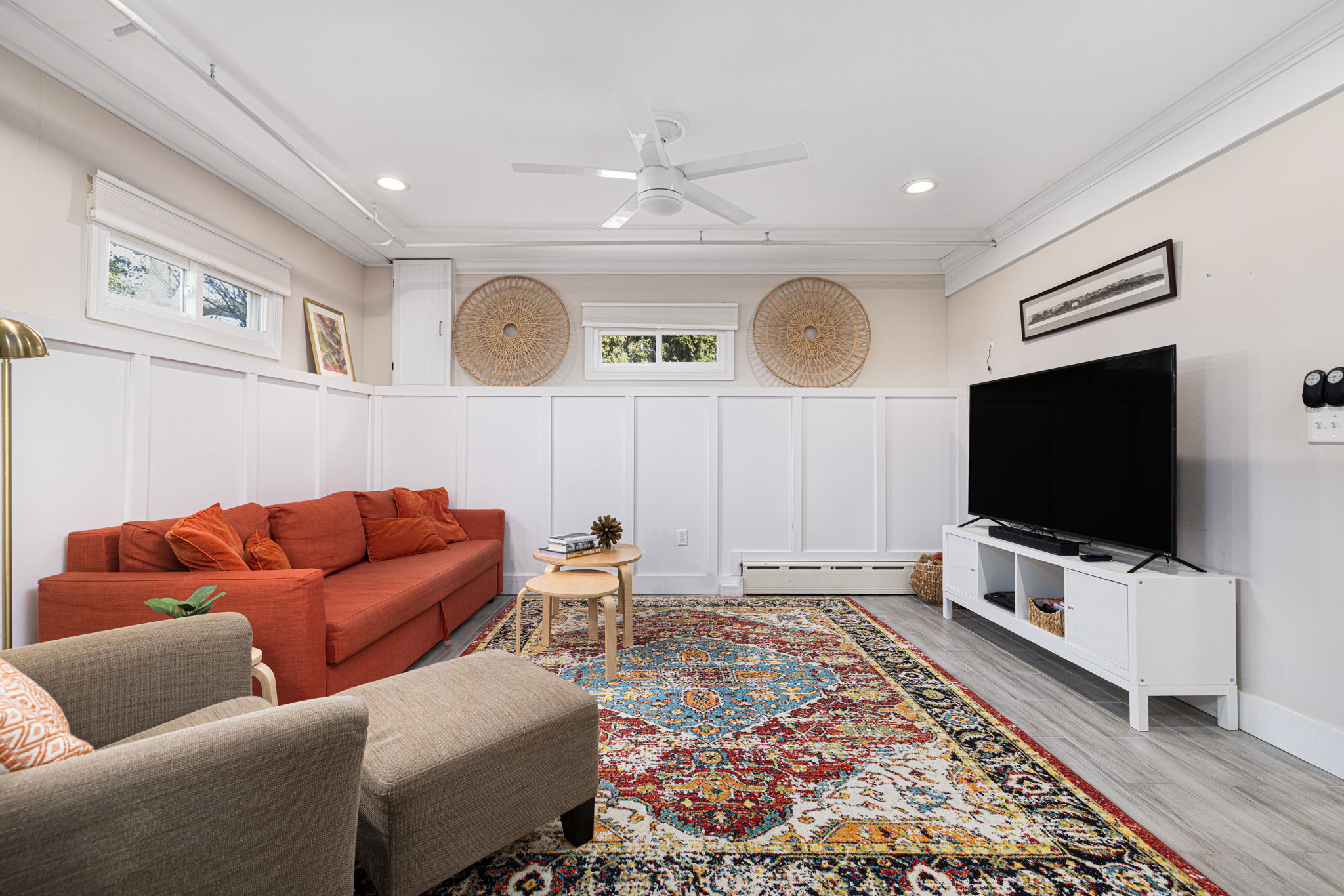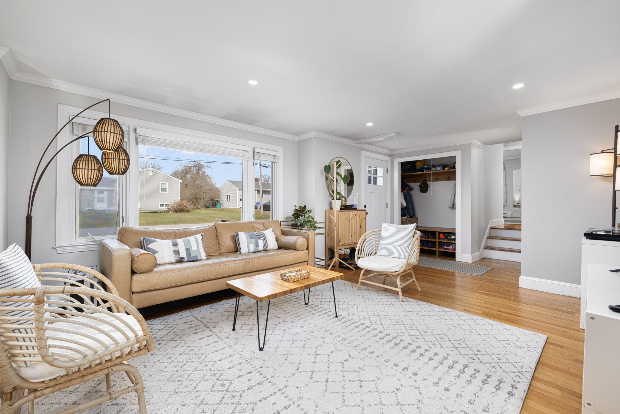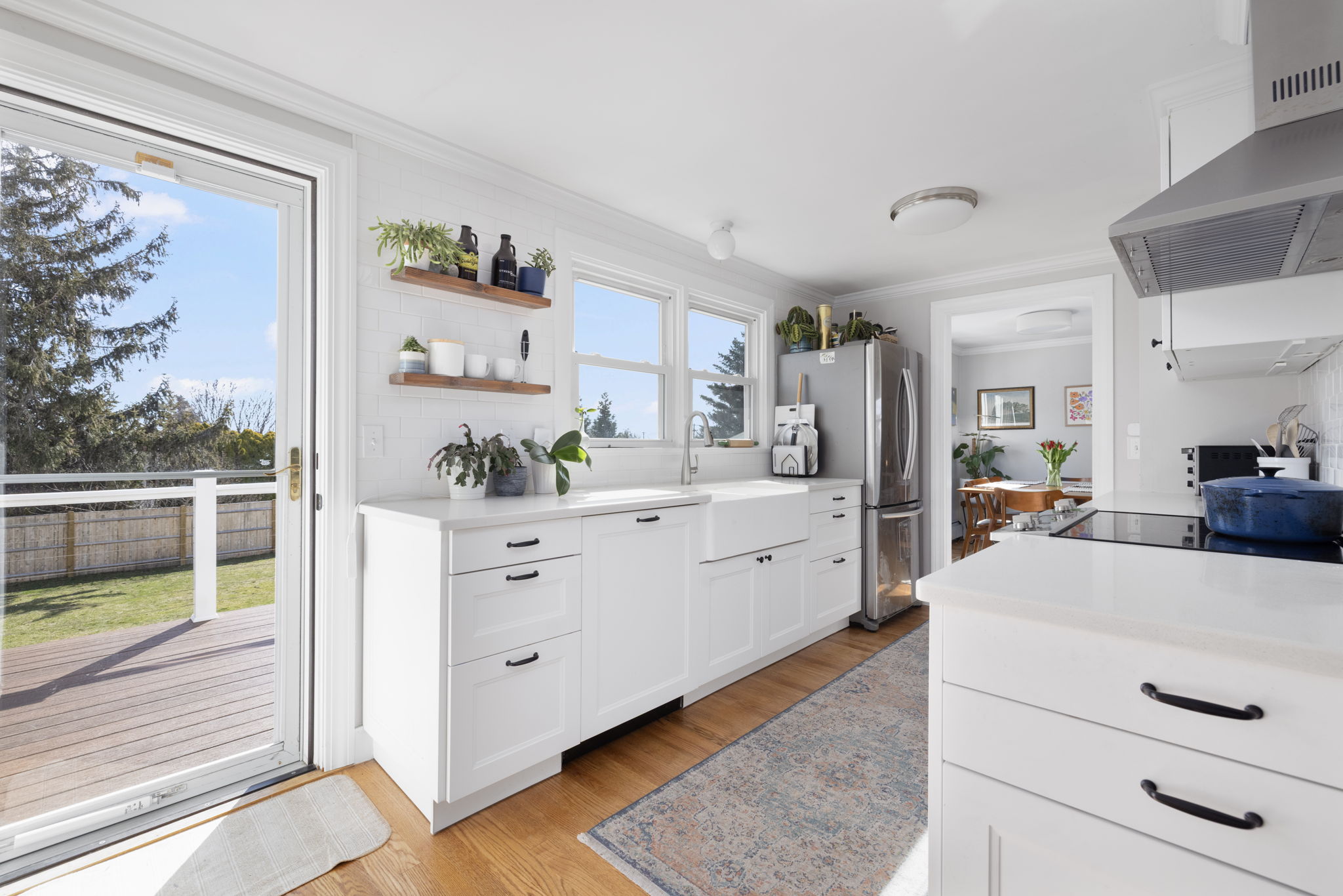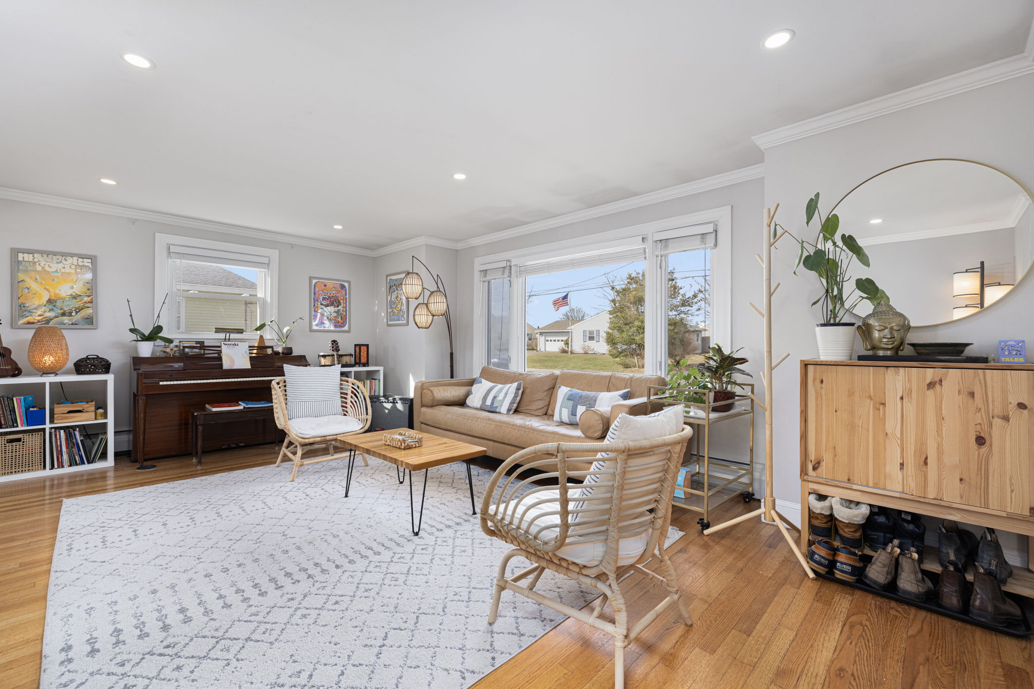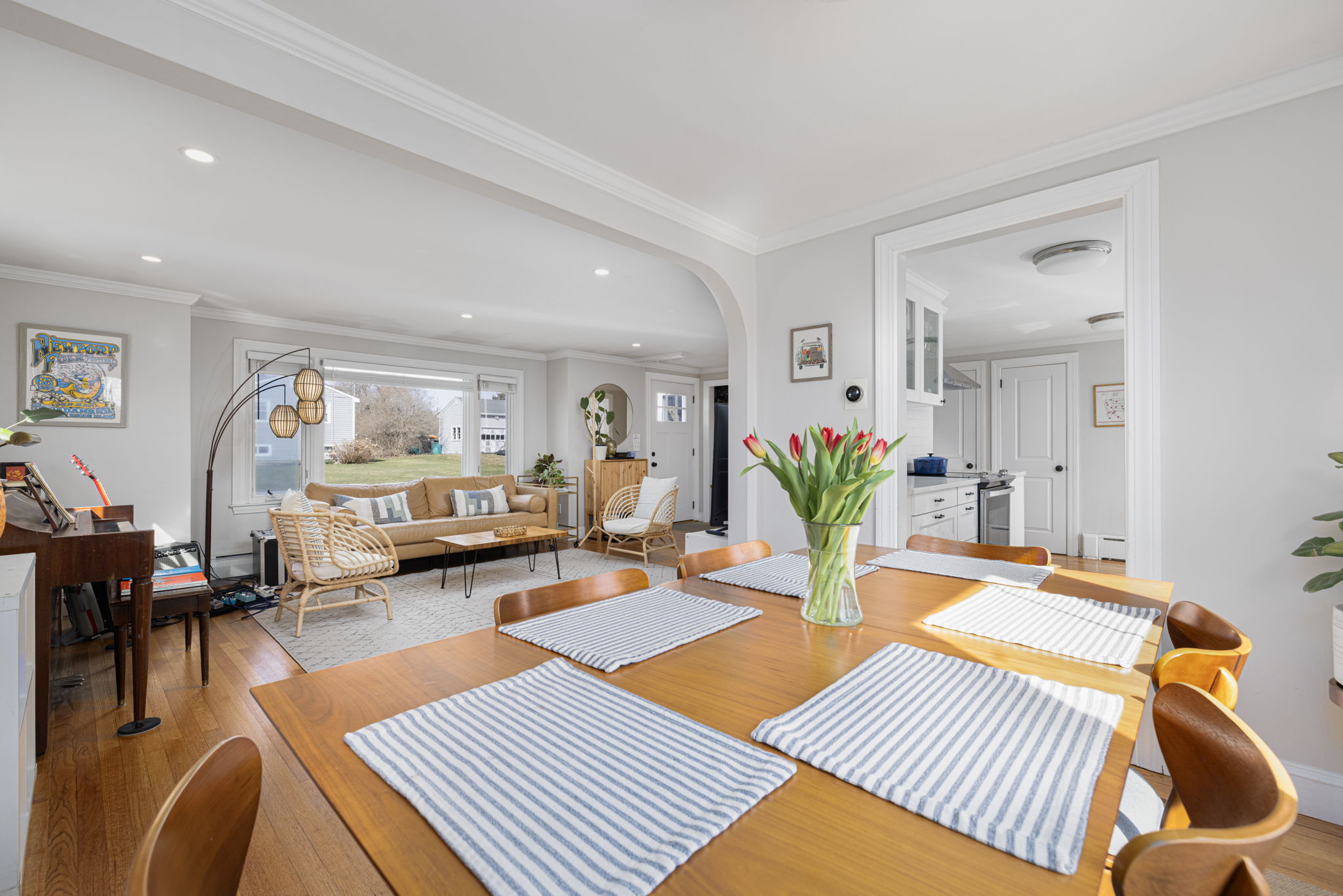 Nestled in an established Middletown neighborhood, this beautifully updated home blends thoughtful design with a bright, airy feel throughout. This lovely property offers a seamless open-concept living and dining area that flows effortlessly into a sun-filled, east-facing kitchen featuring ample storage. A short flight of stairs leads to the private bedroom wing, where 3 light-filled bedrooms share a stylish full bath, complemented by generous closet space. The finished lower level expands the living area with exceptional versatility, offering a spacious den, home office, full bath, laundry room, and flex space perfect for guest sleeping quarters. Outdoor living is equally inviting, with a large Trex deck capturing both morning and afternoon sun, overlooking a generous grassy, fenced-in yard complete with a shed, garden space, and an outdoor shower—perfect for coastal living. Additional highlights include driveway parking for 3+ vehicles and a one-car garage which is wired for an electronic vehicle charger.
