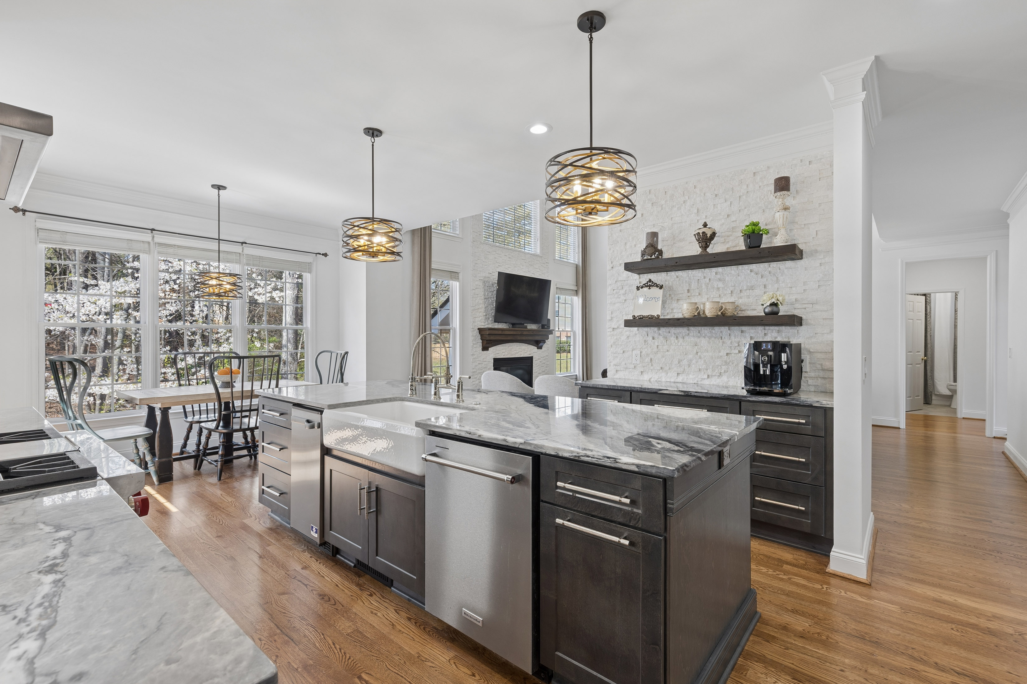 Exquisitely Renovated Home with Designer Finishes in Dallas, Georgia | Five Bedrooms | Five Full Baths | Finished Terrace Level Located within the Riverwood community, just minutes from the Cobb County line, this spacious home has recently undergone a $200,000+ designer-led reimagining, centered around a show-stopping gourmet kitchen. Thoughtful enhancements include a fully remodeled primary suite and bath, newly refreshed interiors, new carpet, refinished hardwood floors, and exterior enhancements. At the heart of the home, the kitchen is anchored by a Wolf range with matching vent hood and a striking Bali Blue quartzite center island. Custom cabinetry, a farmhouse sink, built-in ice maker, wine refrigeration, a dedicated scullery, and a fully built-out walk-in pantry deliver both function and visual impact. A beverage center is thoughtfully located within the butler's pantry. The main level is filled with natural light and features a dramatic two-story great room with fireplace and coffered ceiling. Kitchen, dining, and living areas connect seamlessly. Upstairs, the primary suite includes a separate sitting area with a built-in beverage station, custom closet build-outs, and a spa-like bath featuring dual vanities and a frameless glass walk-in shower. Generously sized secondary bedrooms include updated baths throughout. The finished terrace level adds exceptional versatility with a media/theater room, wet bar, fireplace, full bath, and flexible space ideal for guests, a home office, or recreation. Outdoor living is anchored by a covered, screened porch featuring an under-deck system and an integrated spa, creating a private year-round setting on beautifully maintained grounds. Additional highlights include a three-car side-entry garage with professionally finished epoxy flooring. Major system updates include an architectural shingle roof, upgraded Carrier HVAC systems, and a water heater. Community amenities include a clubhouse, junior Olympic-size pool, walking trails, playground, 30 pickleball courts, and direct access to Mount Tabor Park. Convenient access to shopping, dining, and major corridors enhances the location. Recently appraised and priced below appraised value (appraisal available upon request). The level of finish and attention to detail is immediately evident in person.