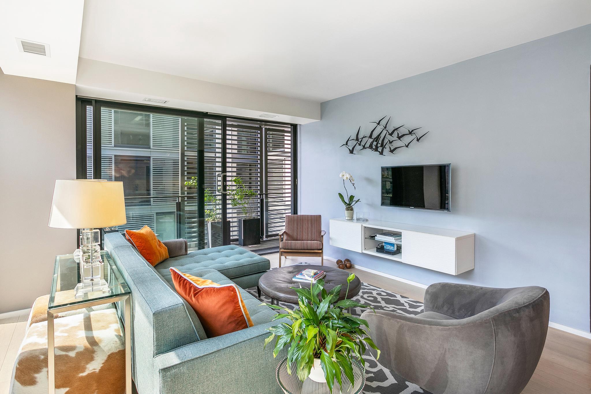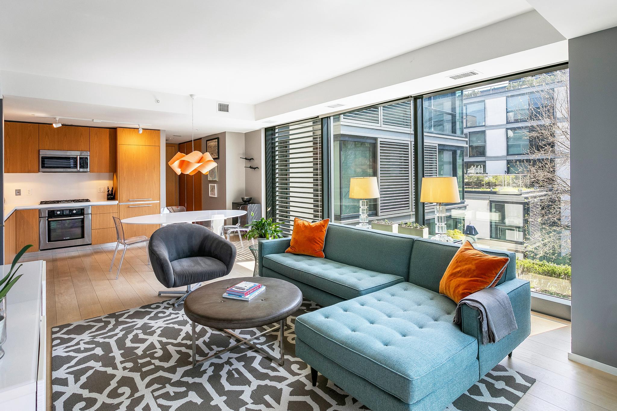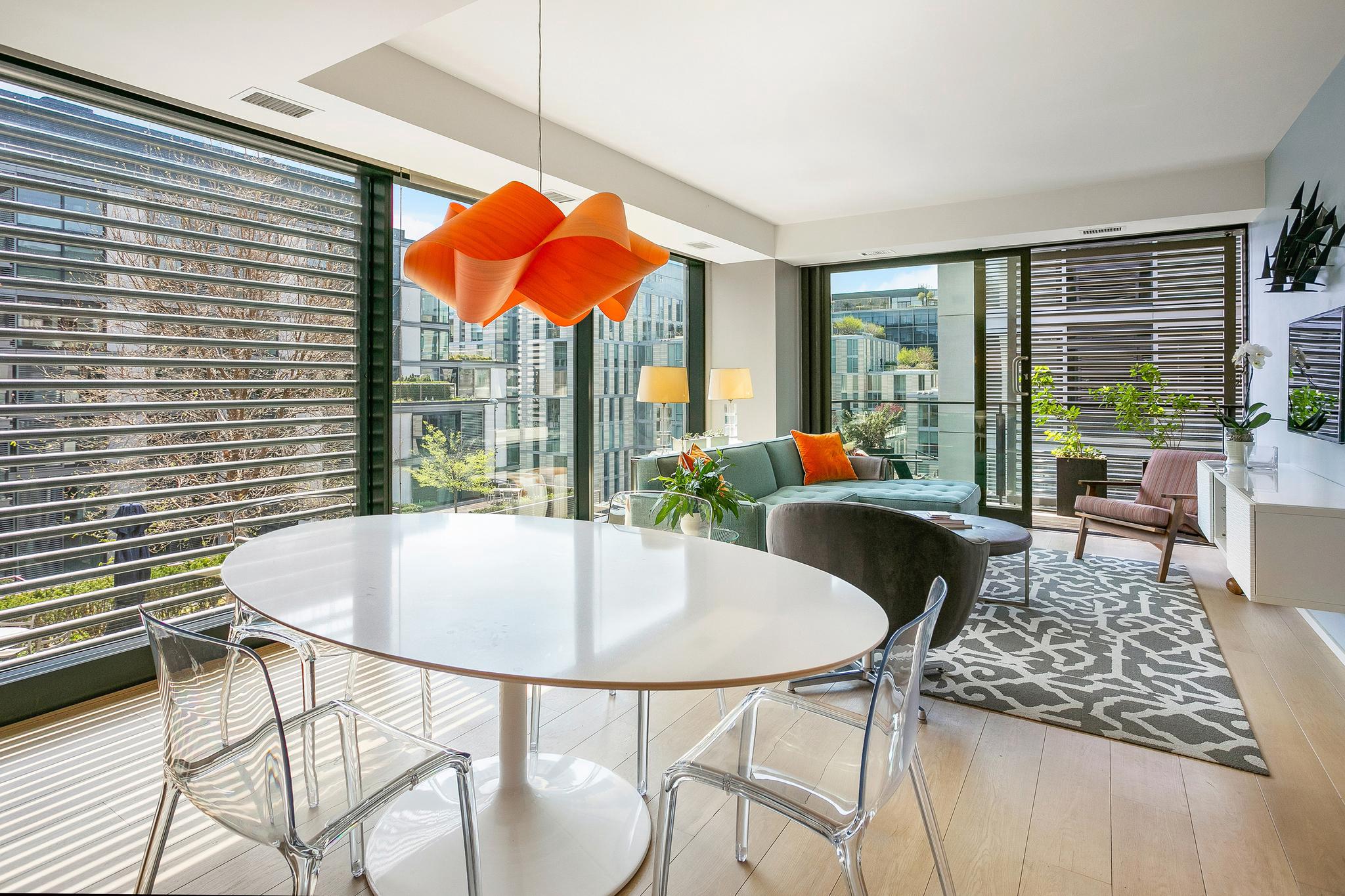 Experience elevated urban living in this exceptional corner two-bedroom, two-bath condominium at The Residences at CityCenter, designed by the renowned Foster + Partners. Floor-to-ceiling windows showcase serene views of multi-level terraces and green spaces, while a covered (83 sq ft) private balcony off the living area offers the perfect spot to unwind. Thoughtfully designed for optimal flow and comfort, the open layout is complemented by European white oak flooring throughout and a chef’s kitchen featuring Molteni cabinetry and premium appliances. Residents enjoy a full suite of luxury amenities, including concierge services, a state-of-the-art fitness center, a guest suite, rooftop parks with outdoor kitchens and lounge areas, private wine storage, a club room, a business center and a stunning roof top pool. Just outside, CityCenterDC offers world-class shopping, dining, and cultural experiences, with boutiques like Hermès, Dior, Louis Vuitton, Moncler, and David Yurman, along with top-tier restaurants, cafés, galleries, and museums. The home also includes secure garage parking with a dedicated electric vehicle charger and separate storage, completing this refined offering in the heart of Washington, DC.