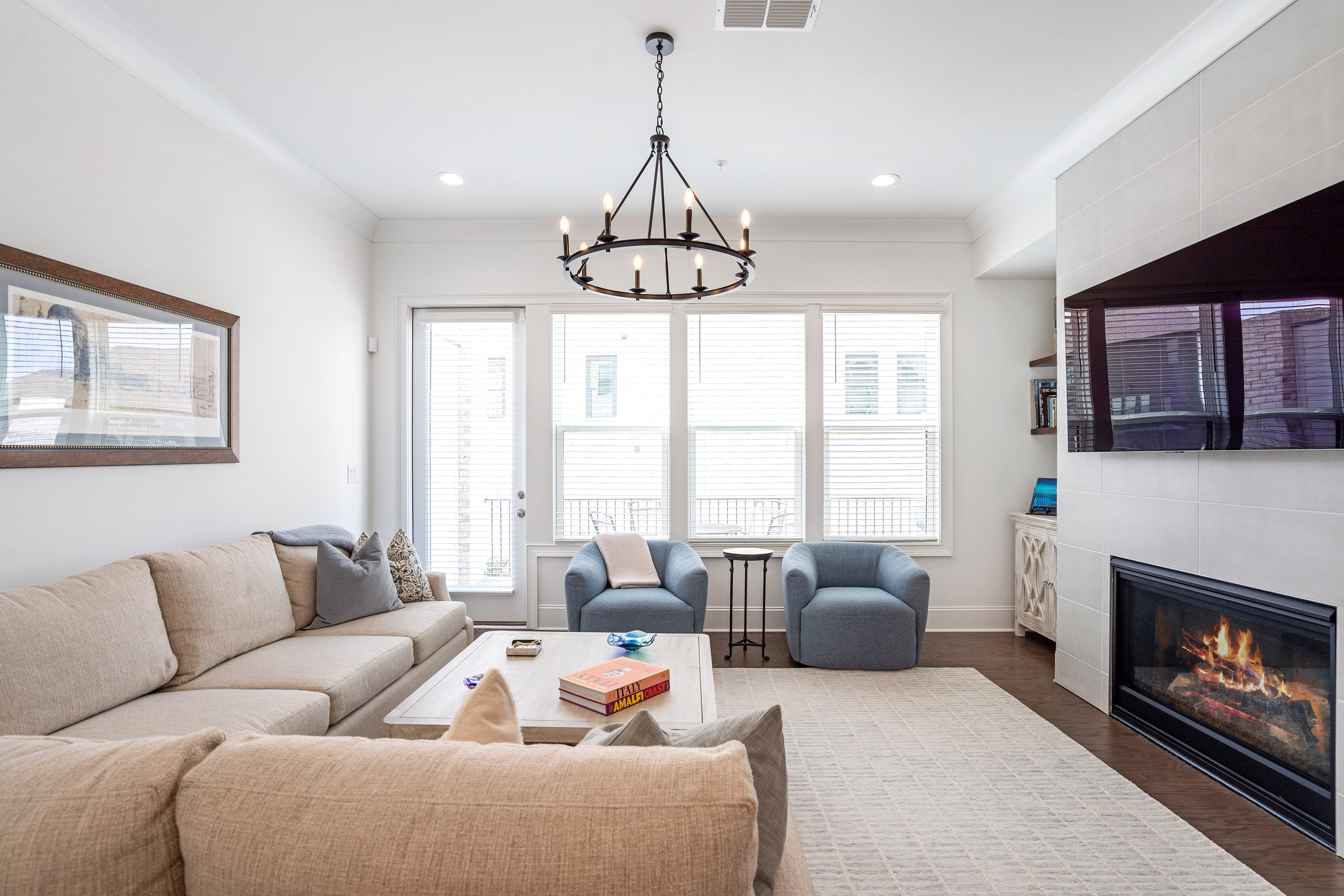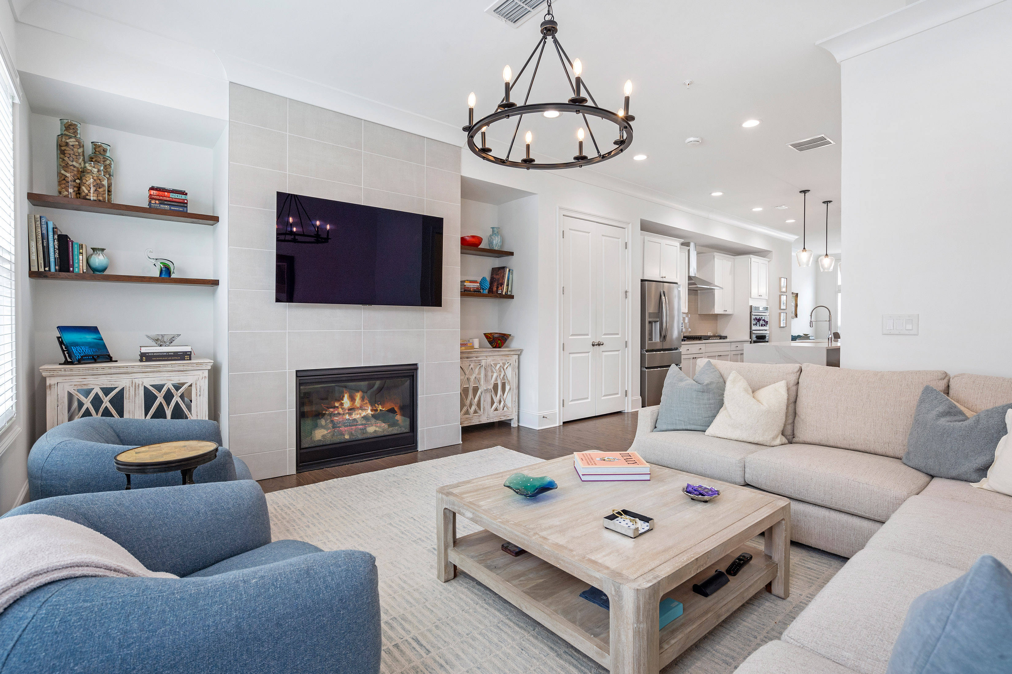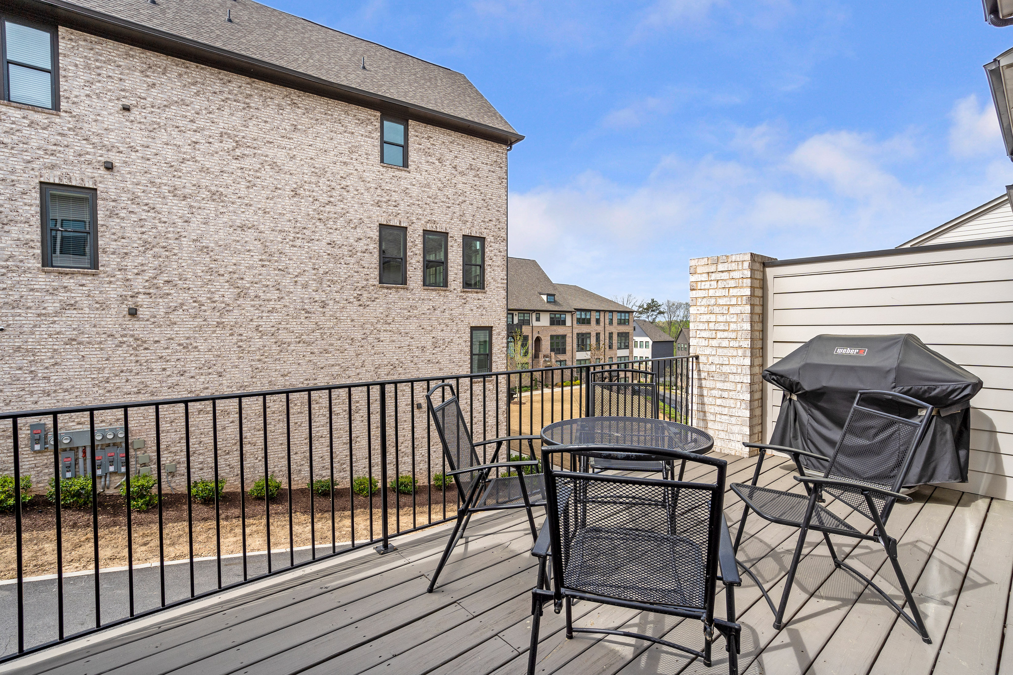 Positioned in one of Aria’s most sought-after settings, this exceptional residence offers a rare blend of privacy, sophistication, and effortless livability. Overlooking expansive green space, the home enjoys an extraordinary sense of openness, along with the convenience of true walk-in main-level living, guest parking just steps from the entrance, and the added distinction of a private driveway. The main level is designed for both elegant everyday living and effortless entertaining, with beautifully curated spaces that feel both refined and welcoming. At the heart of the home, the kitchen pairs modern style with thoughtful functionality, featuring Frigidaire appliances, custom cabinetry, an upgraded sink, designer lighting, and a striking waterfall-edge island that serves as both a centerpiece and gathering space. Filled with natural light, the open living area is anchored by a gas fireplace flanked by custom shelving and flows effortlessly onto a spacious deck, creating a refined indoor-outdoor connection. Hardwood floors, clean architectural lines, and carefully selected finishes bring warmth and sophistication to every space. Upstairs, the primary suite offers a serene retreat with a spa-inspired bath and a beautifully customized walk-in closet. A second en-suite bedroom on this level provides exceptional comfort and privacy for guests or family. The top floor expands the home’s versatility with a sophisticated media or lounge space, a full bath, and access to a private covered balcony—perfect for relaxed evenings or elevated entertaining. On the terrace level, a private bedroom suite offers remarkable flexibility for guests, a home office, fitness studio, or wellness space. Just off the garage, the entry area has been designed as a polished and functional drop zone for everyday organization. Additional highlights include elevator-ready construction, with the shaft currently serving as valuable extra storage, walk-in closets in every bedroom, and thoughtfully integrated storage solutions throughout. Every detail reflects a careful balance of luxury and practicality. All of this is set within the prestigious Aria community, where residents enjoy resort-style amenities including multiple pools, a state-of-the-art fitness center, clubhouse, and immediate access to upscale dining, shopping, and everyday conveniences. Meticulously maintained and enhanced well beyond the original build, this is a rare opportunity to own a truly distinguished home in one of Aria’s most desirable locations.