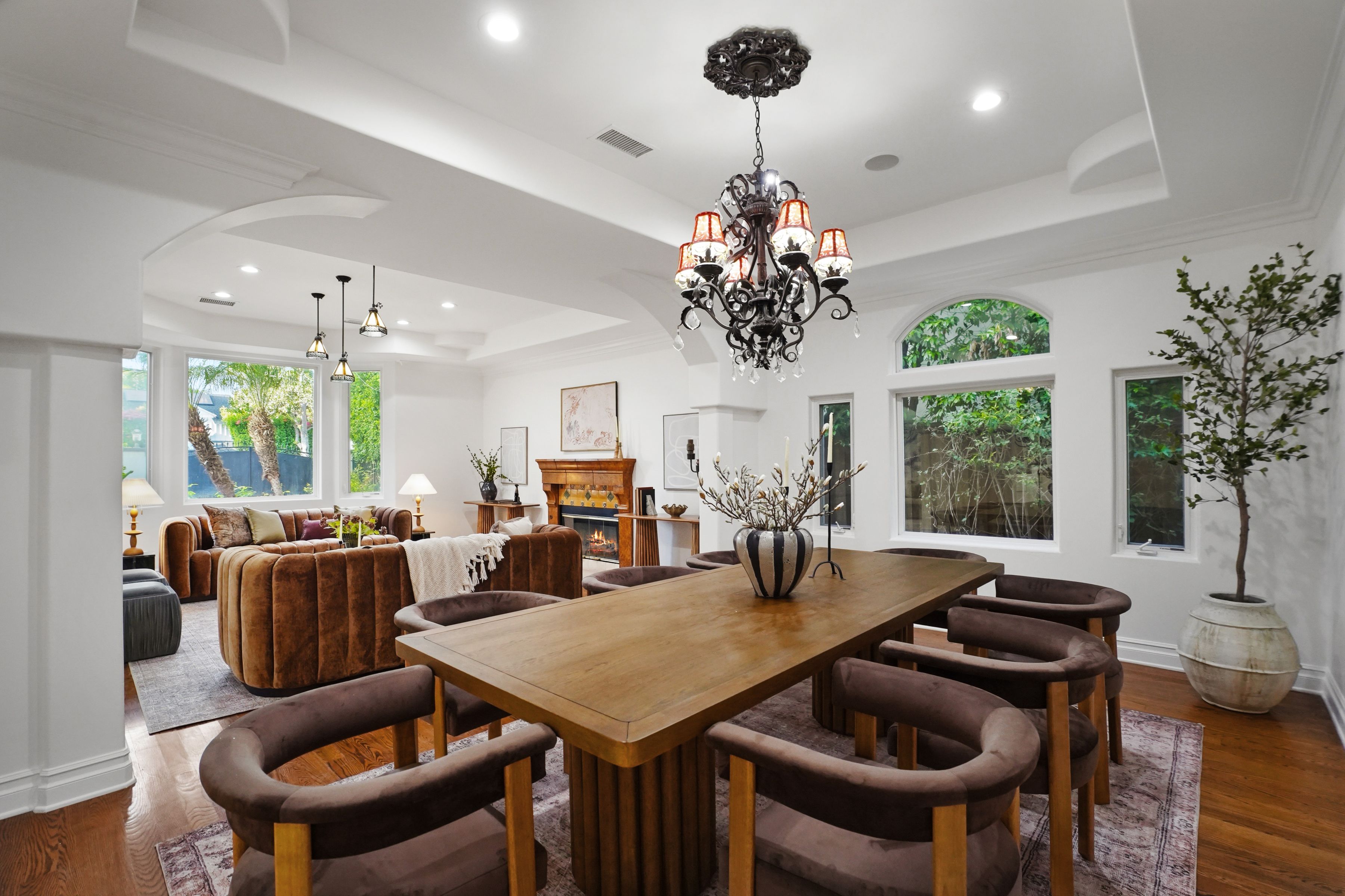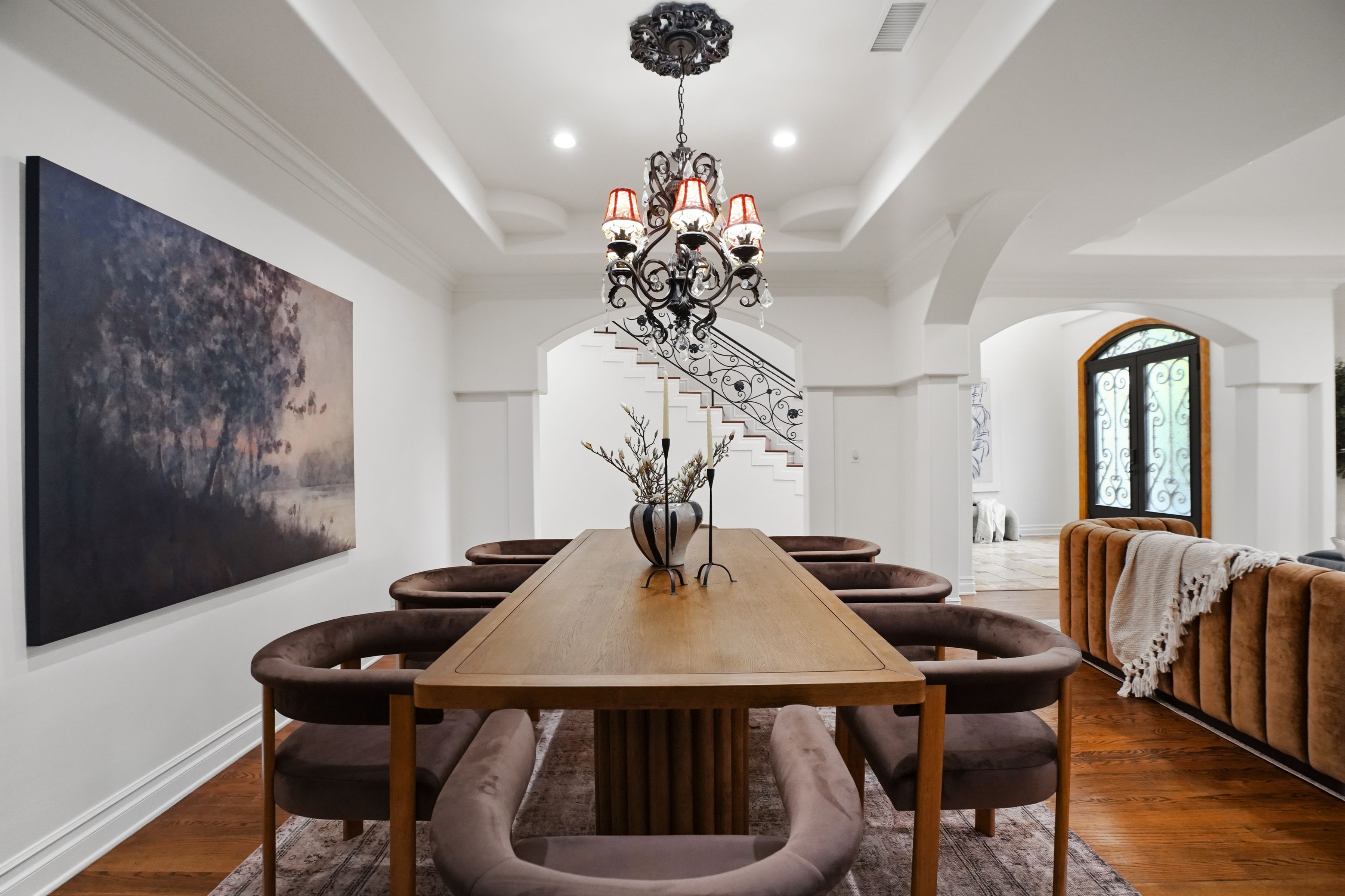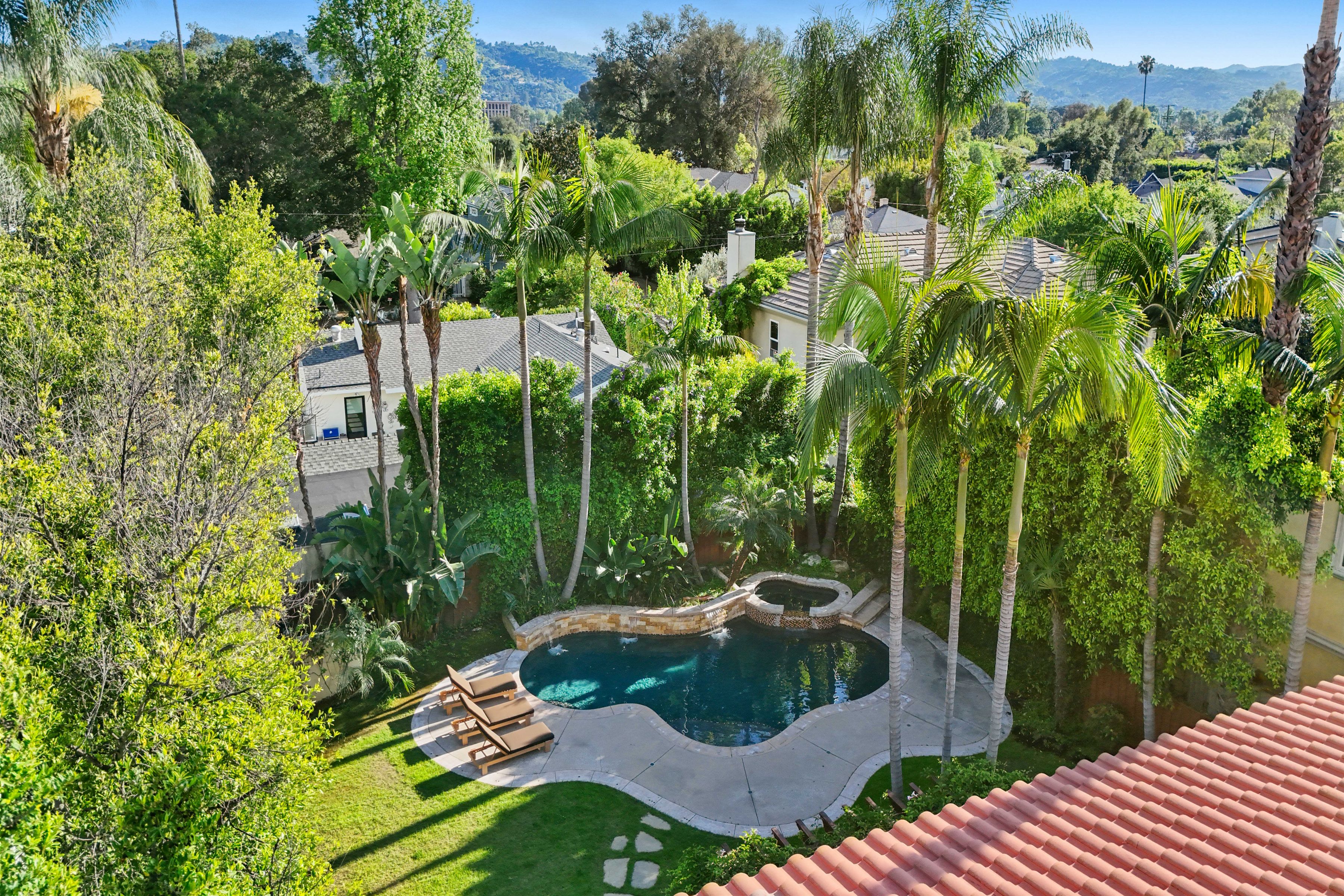 Welcome to La Buena Vida. A spectacular Spanish Mediterranean estate crowning a magnificent, ¼ acre lot in one of the Valley’s premier destinations. The home resides in divine harmony with its organic, verdant environment of towering trees and sprawling lawns. The gated and hedged exterior with circular drive offers extraordinary curb appeal with a finely manicured fusion of floral and greenery. Inside, a grand entrance with soaring ceilings introduces a unique symmetry of old-world elegance with modern world conveniences with styling distinctive and comfortable; romantic and refined. Exemplifying bespoke craftsmanship at every turn, rich, luxurious elements reference classic design with a flexible floorplan offering gracious transition from room to room. Rich wood and travertine flooring grace the living areas. Baths are dressed in fine tile, lighting, and fixtures. Ideal for entertaining, the expansive dining room lends itself ideally to both formal and informal gatherings of all sizes and occasions. Style, form, and function unite in the epicurean kitchen, anchored by an Imperial professional grade range with three sinks, two dishwashers and center island. Glass atrium doors bring the outdoors in revealing an extraordinary, private oasis where an array of dining and lounging patios, full service outdoor kitchen and BBQ, fireplace, pool, and spa with baja bench and flowing waterfalls, and sprawling lawn embody the coveted California lifestyle of endless al fresco leisure. The ideal venue for warm, relaxed poolside lounging by day, cool, intimate gatherings, and lavish entertaining under the stars by night. Five bedrooms and bonus room with five baths including a lux primary suite with private patio round out the comfortable accommodations. Located in the Riverside Charter School District and just moments from the beloved Sherman Oaks Rec Center and Hazeltine Park, houses of worship and all the best of what acclaimed Sherman Oaks has to offer. Welcome.
