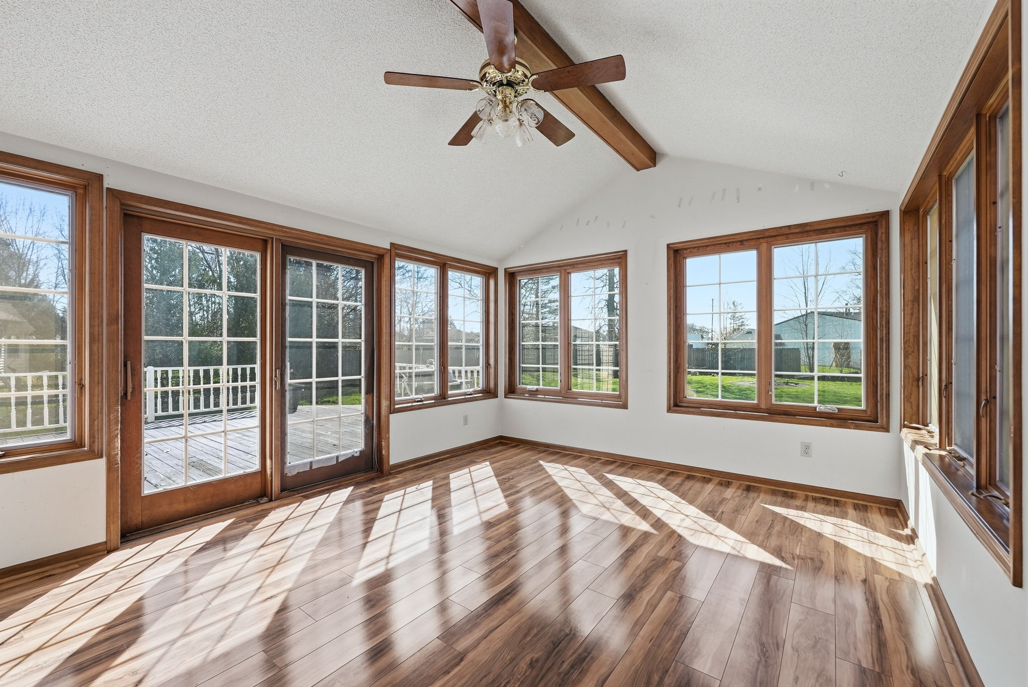 Space, setting, & opportunity all come together in this 4 bedroom home on a finished basement in Leo Schools, set on a massive lot in Oak Pointe! From the moment you arrive, the stately curb appeal & covered front porch make a strong first impression. Inside, the main floor offers incredible flexibility with multiple living areas, including a dedicated office, front family room, & formal dining space that flows seamlessly into the kitchen. The kitchen features an island, pantry, gas range, all other appliances included, & opens to a cozy breakfast nook & spacious living room. Here you’ll love the floor-to-ceiling brick fireplace flanked by built-ins & large bay windows that flood the space with natural light. A dedicated laundry room with utility sink completes the main level. Upstairs, the expansive primary suite offers two walk-in closets & an en-suite with dual vanities, garden tub, & walk-in shower. Three additional bedrooms share a full bath. The finished basement provides even more living space, along with a large unfinished area ideal for storage. The 2+ car garage includes an additional rear bay, perfect for lawn equipment, tools, or extra storage. Enjoy the 4 seasons room year round, or step out onto the oversized deck overlooking the huge backyard filled with mature trees, an ideal setting for relaxing or entertaining! This home offers incredible space & potential, and has been priced to reflect an opportunity for cosmetic updates, allowing you to make it your own while building instant equity. Located in the desirable Oak Pointe subdivision with convenient access to Parkview Regional Medical Center, shopping, dining, & I-69, this is one you don’t want to miss!