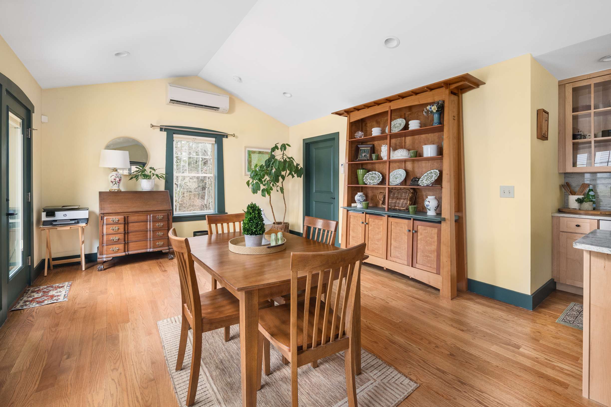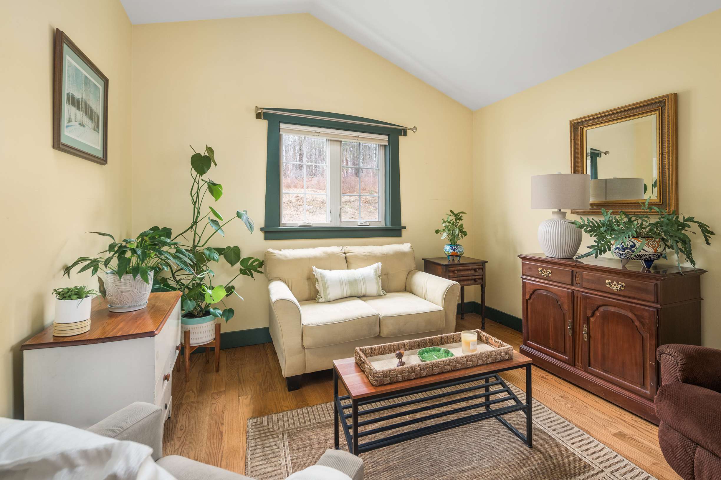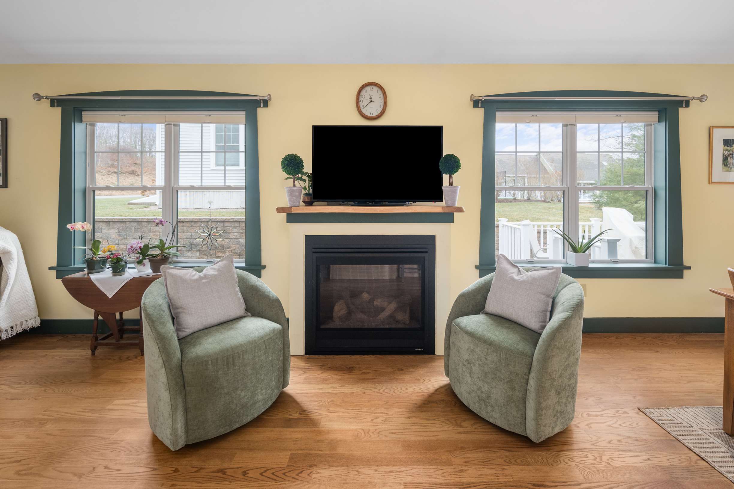 Rare offering at one of Southern Maine's most desirable 55+ communities in Eliot. The Village at Great Brook offers its residents a peaceful setting minutes to thriving downtown Portsmouth along with area shops and restaurants. This 2-bedroom, 2 bath one-level condo has been impeccably maintained and features a flexible open-concept floor plan. The inviting living room features vaulted ceilings and gleaming hardwood floors. The open sitting area features a cozy gas fireplace and the well-appointed kitchen with granite countertops and center island along with the adjacent dining room with a door to the side deck provide ample room for entertaining guests. The spacious primary bedroom offers a walk-in closet, laundry and an en-suite full bath with shower. The guest bedroom, additional full bath, mudroom with custom built-ins and the one-car attached garage make this the perfect space for year-round or seasonal living. Enjoy beautifully maintained grounds and a vibrant community too.