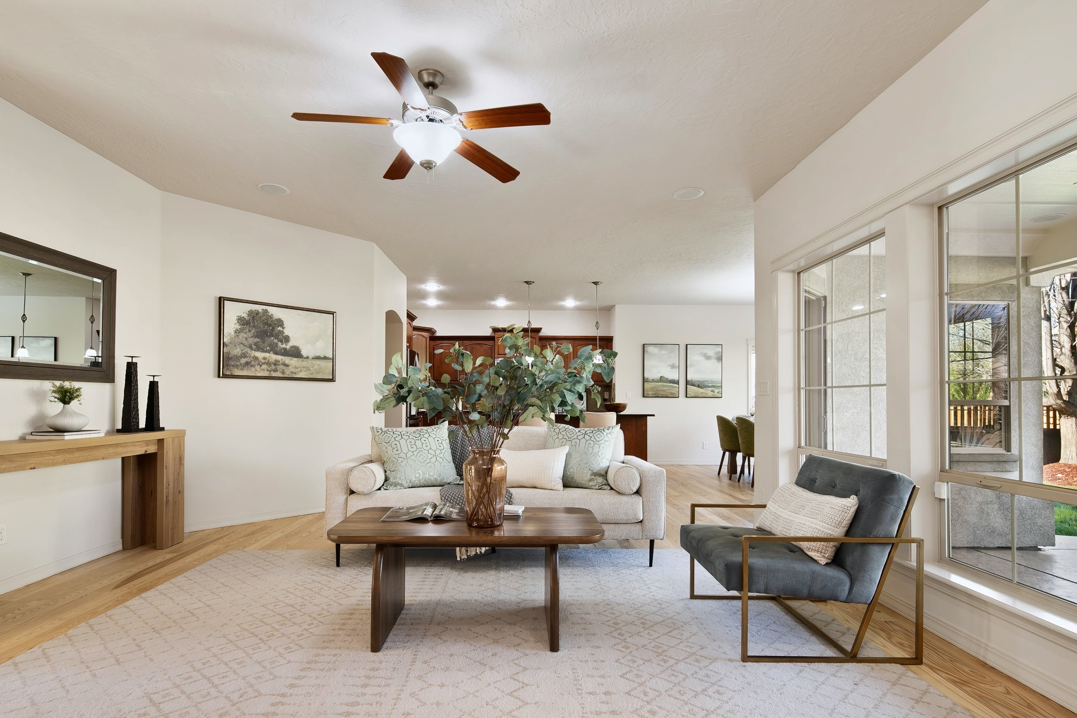Experience the pinnacle of craftsmanship in this custom-built stucco estate, originally designed and built as the builder’s personal residence. The versatile floor plan is a masterclass in design, perfectly suited for multi-generational living or a premier work-from-home lifestyle. The main level features a sprawling primary suite and two additional bedrooms joined by a Jack-and-Jill bath, while the sun-drenched living areas flow seamlessly into an open kitchen with updated LG appliances. Upstairs, discover the ultimate entertainment hub: a massive lounge with a full kitchen and pantry—perfect for game days or cinema nights. A private detached casita off the entry courtyard offers a secluded guest suite or ADU. Beyond the aesthetics, enjoy peace of mind with a recently upgraded $22k premium high-efficiency HVAC system featuring UV air filtration and humidifier, new 2024 roof. Your private oasis awaits out back with a covered patio, gas firepit, and hot tub. Live the Hidden Springs lifestyle with trails and community amenities at your doorstep.