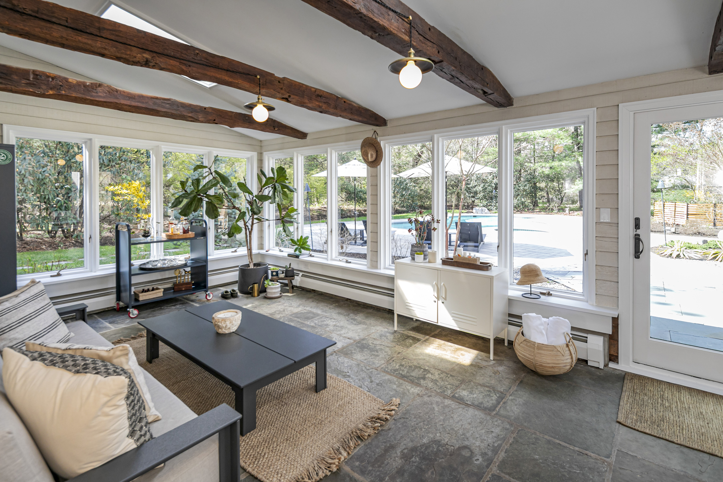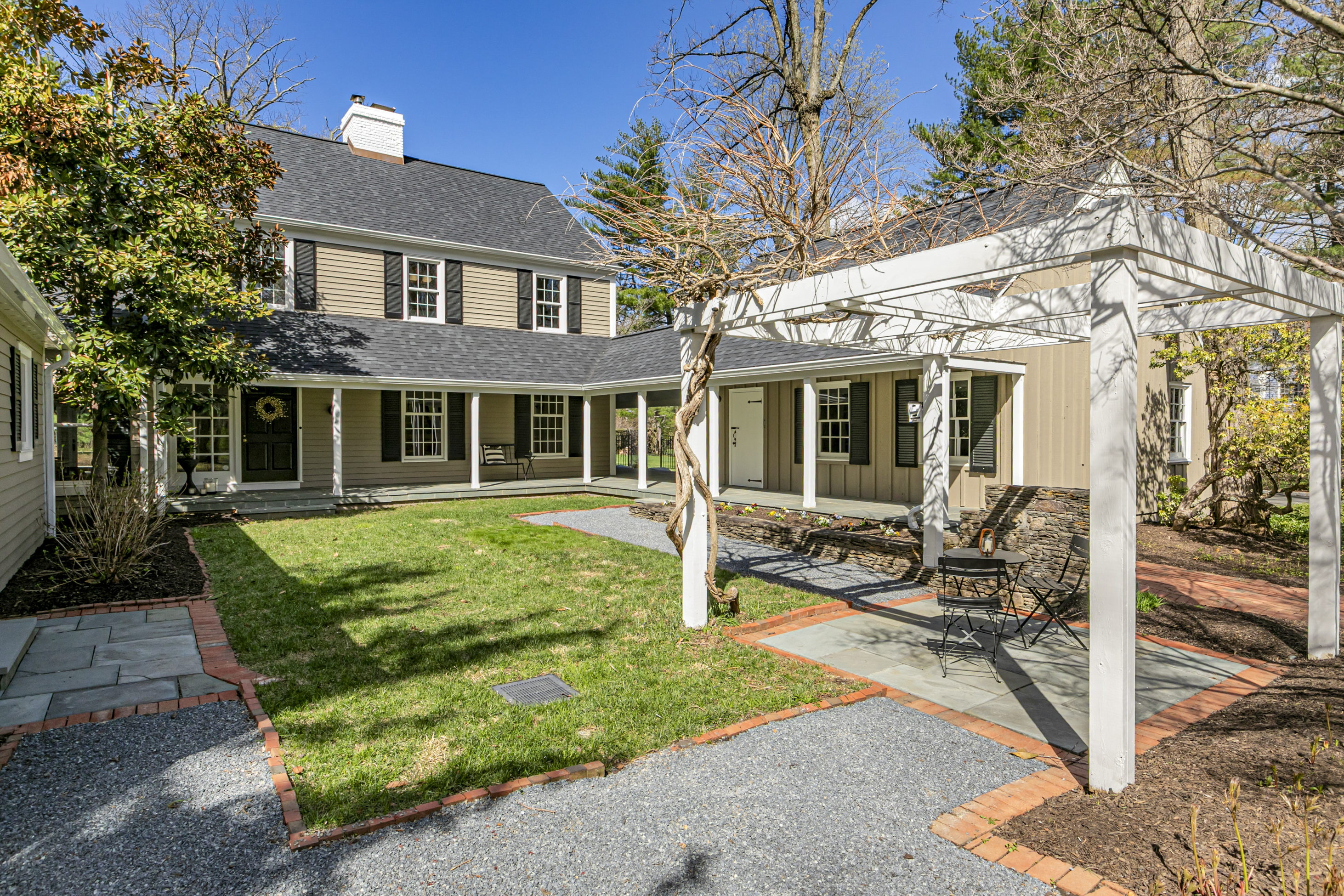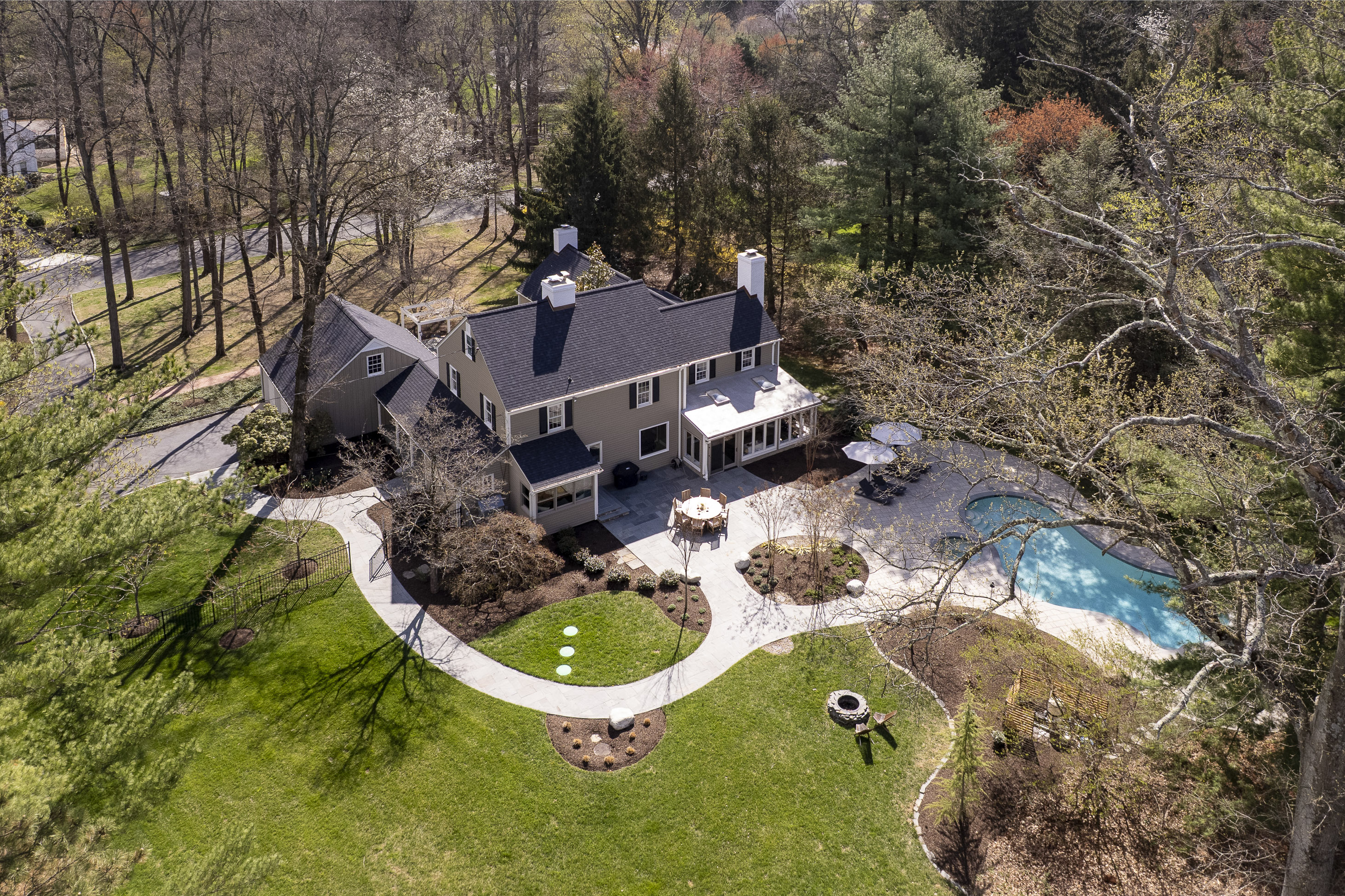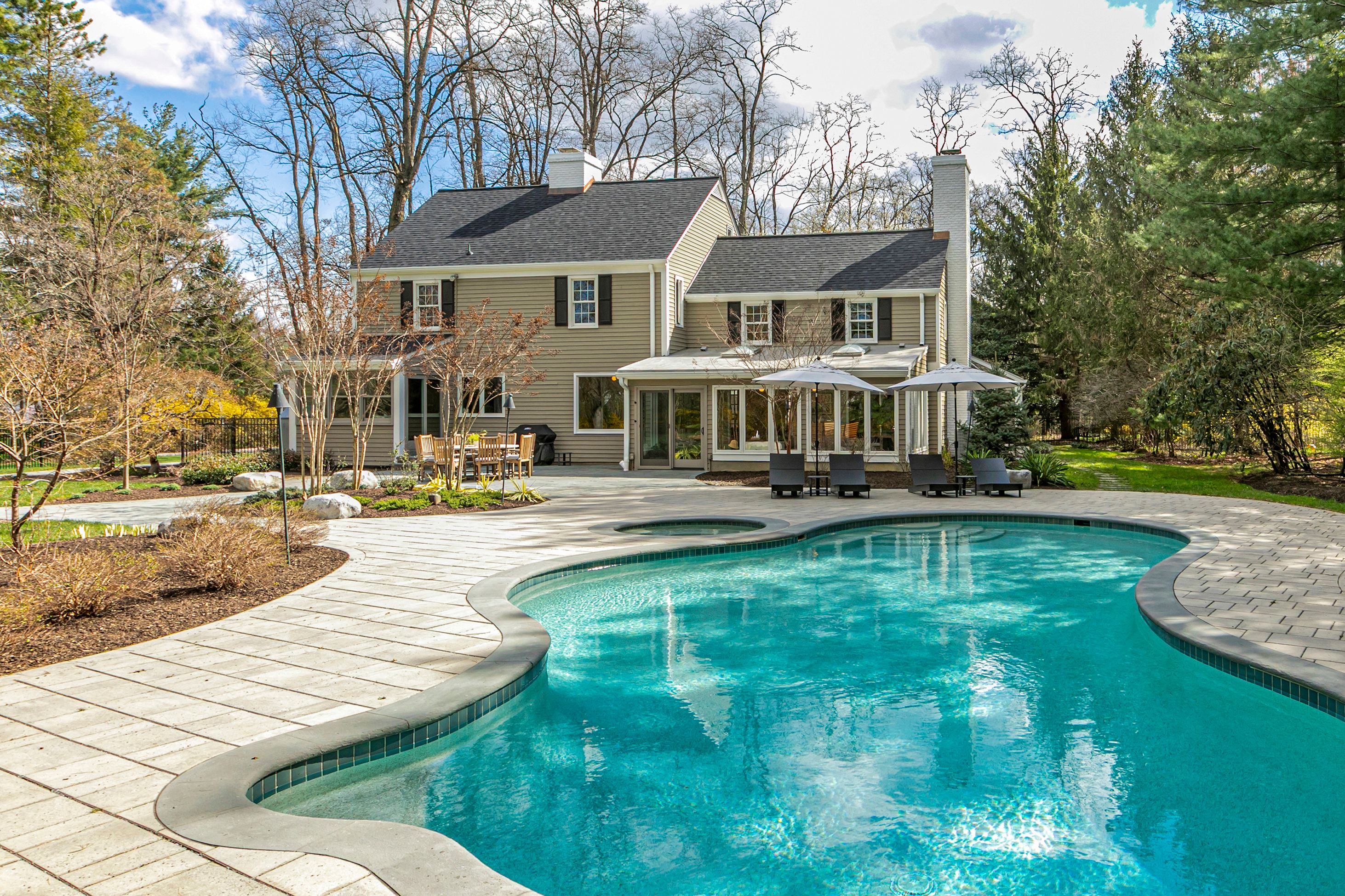 The 1.4-acre grounds surrounding this expanded William Thompson-designed home are just as captivating as the character-rich interiors. A new bluestone patio and walkways lead to a completely renovated free-form pool and spa. Specimen plantings and flower-draped arbors further enhance the big fenced yard and front courtyard, complete with a trickling stone fountain. Inside, refinished hardwood floors brighten up the living spaces, beginning with the family room, where a big brick fireplace makes a warm and inviting statement. Dressed in stylish steely blue, the kitchen is equipped with premium appliances by Thermador and Bosch. Pull up a seat at the island, get comfortable in the sunny breakfast nook or host meals in the dining room, where a new picture window perfectly showcases the beautiful backyard. The great room with a new high-efficiency wood stove flows out to the stone-floor sunroom with hand-hewn beams and skylights overhead. Continue past a wet bar and powder room to the unexpectedly show-stopping first floor main suite. Separate bathrooms and walk-in closets are the ultimate luxury and a volume tray ceiling clad in wood is grand, yet relaxed, soaring over a fireplace and French doors. Upstairs, three more full baths with brand new white quartz countertops serve four sizable bedrooms. In addition to a new roof and gutters, new water heater and softener, fresh paint inside and out, and meticulous maintenance to every system, the house is plumbed and ready for future conversion to natural gas. All the tranquility of a country home nestled within an established neighborhood, 5 miles from downtown Princeton and less than 3 miles from quaint Hopewell Borough, with selection of top schools in every direction.