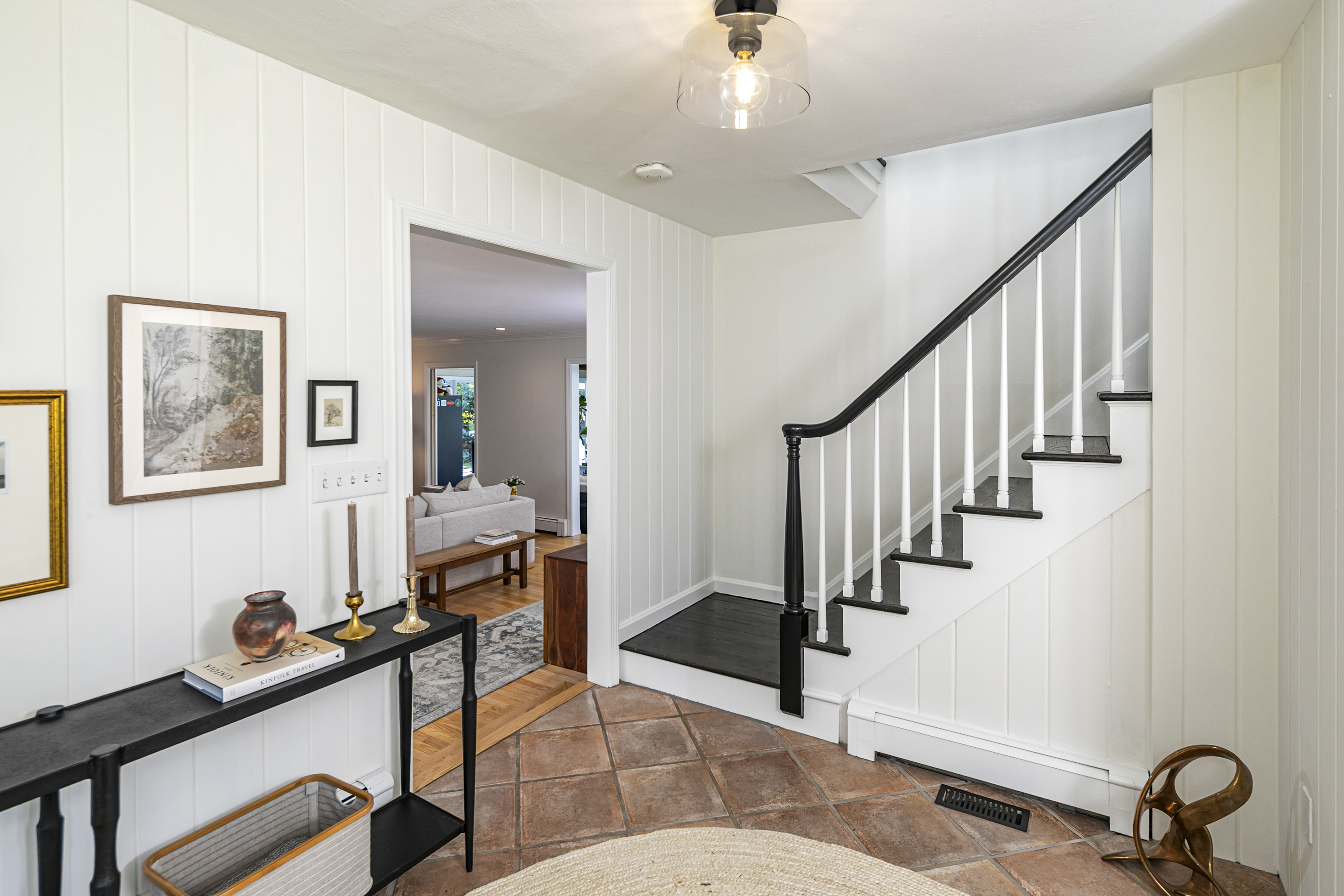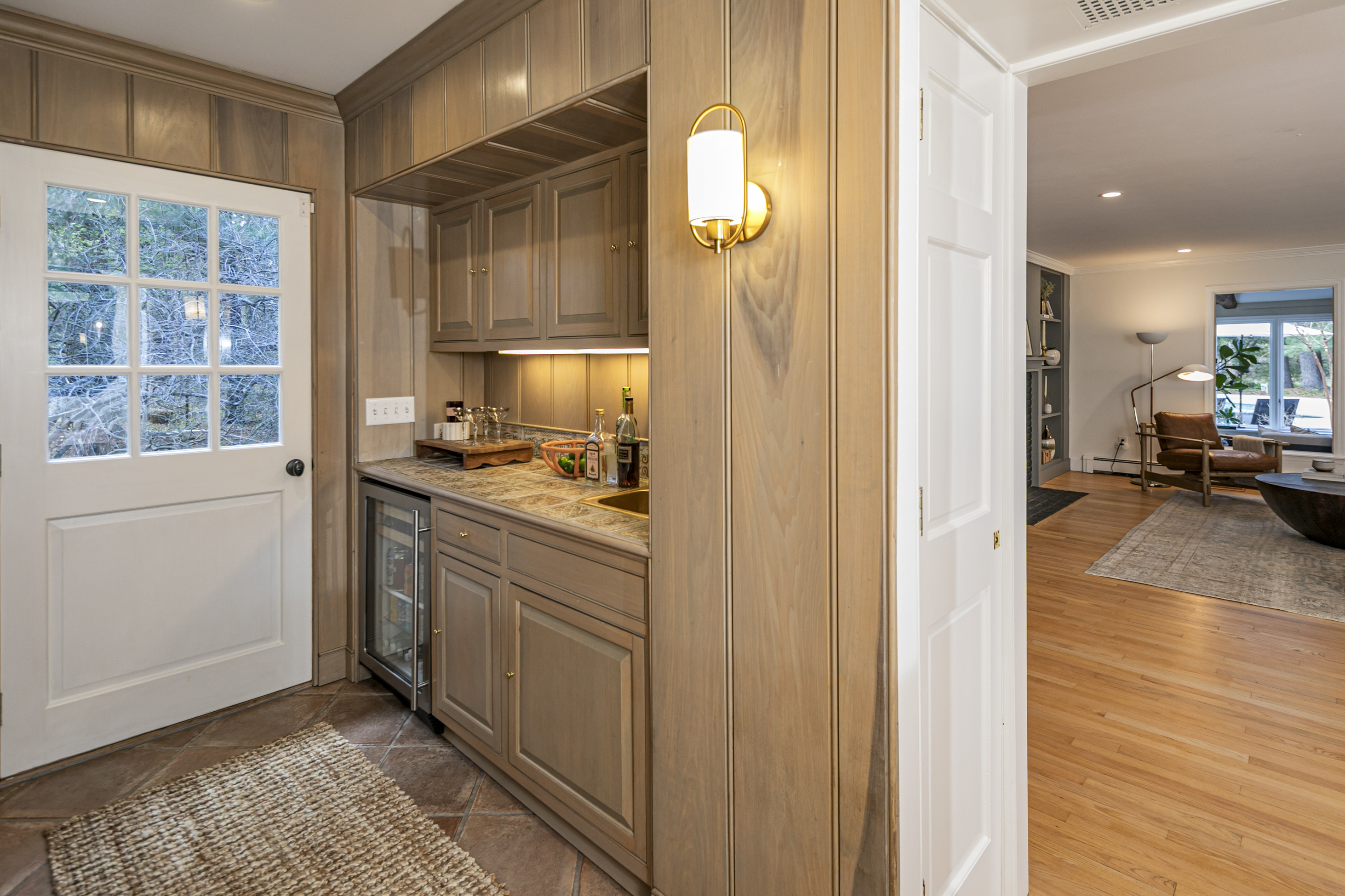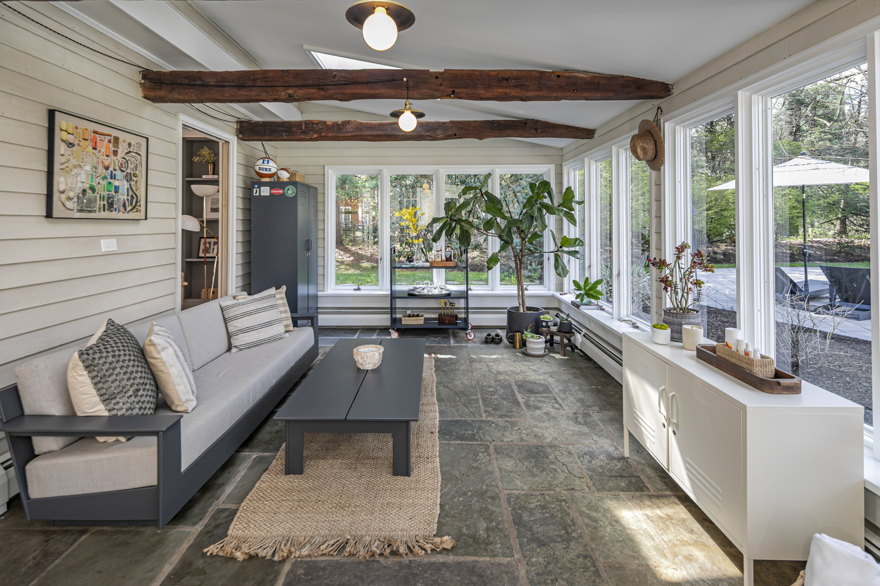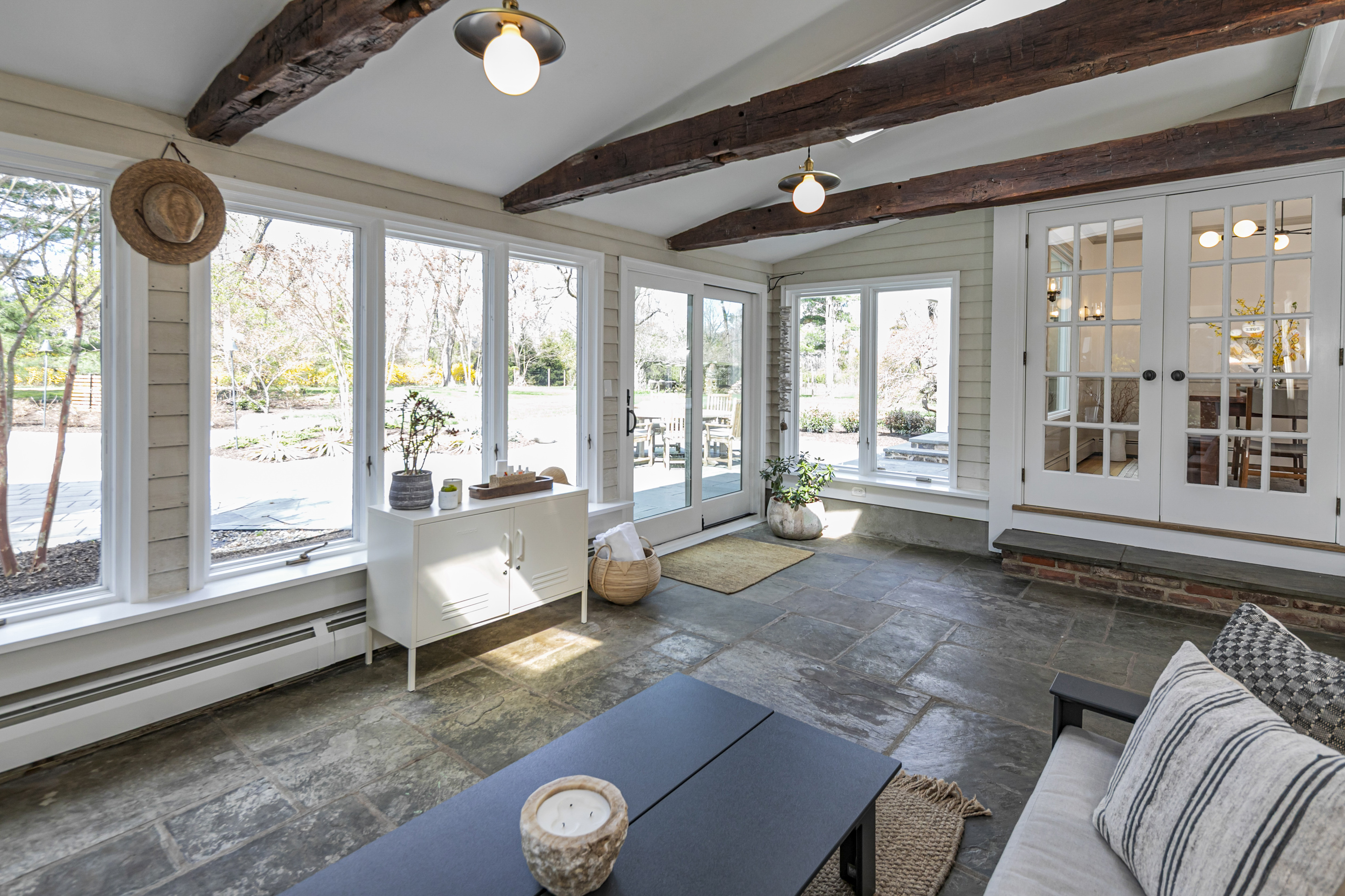 The 1.4-acre grounds surrounding this expanded William Thompson-designed home are just as captivating as the character-rich interiors. A new bluestone patio and walkways lead to a completely renovated free-form pool and spa. Specimen plantings and flower-draped arbors further enhance the big fenced yard and front courtyard, complete with a trickling stone fountain. Inside, refinished hardwood floors brighten up the living spaces, beginning with the family room, where a big brick fireplace makes a warm and inviting statement. Dressed in stylish steely blue, the kitchen is equipped with premium appliances by Thermador and Bosch. Pull up a seat at the island, get comfortable in the sunny breakfast nook or host meals in the dining room, where a new picture window perfectly showcases the beautiful backyard. The great room with a new high-efficiency wood stove flows out to the stone-floor sunroom with hand-hewn beams and skylights overhead. Continue past a wet bar and powder room to the unexpectedly show-stopping first floor main suite. Separate bathrooms and walk-in closets are the ultimate luxury and a volume tray ceiling clad in wood is grand, yet relaxed, soaring over a fireplace and French doors. Upstairs, three more full baths with brand new white quartz countertops serve four sizable bedrooms. In addition to a new roof and gutters, new water heater and softener, fresh paint inside and out, and meticulous maintenance to every system, the house is plumbed and ready for future conversion to natural gas. All the tranquility of a country home nestled within an established neighborhood, 5 miles from downtown Princeton and less than 3 miles from quaint Hopewell Borough, with selection of top schools in every direction.