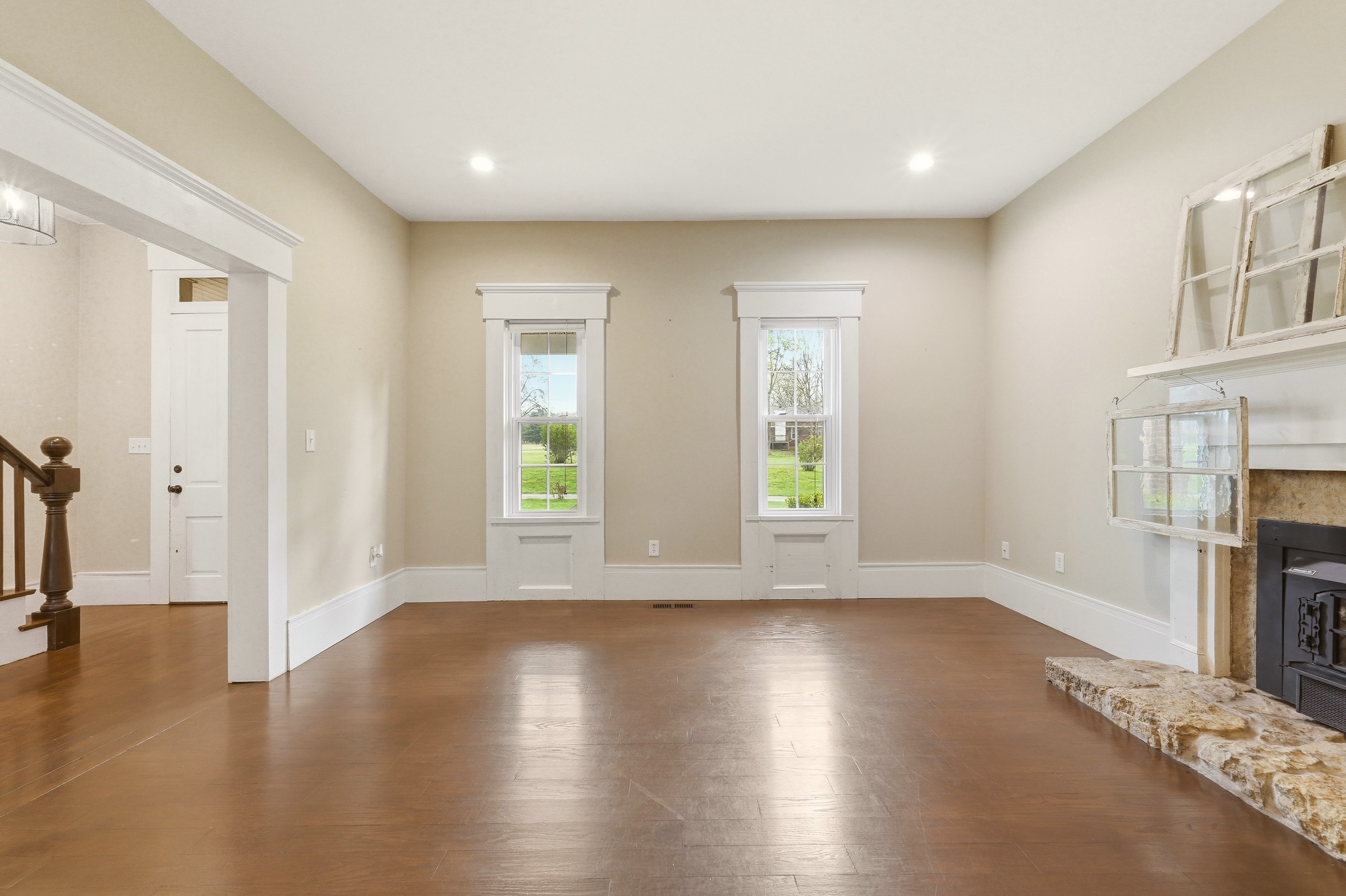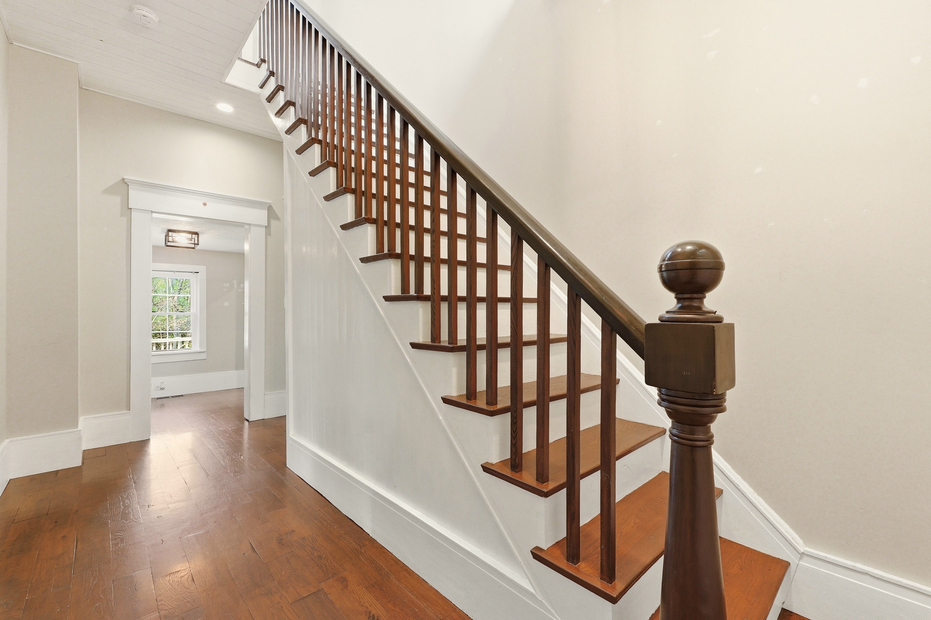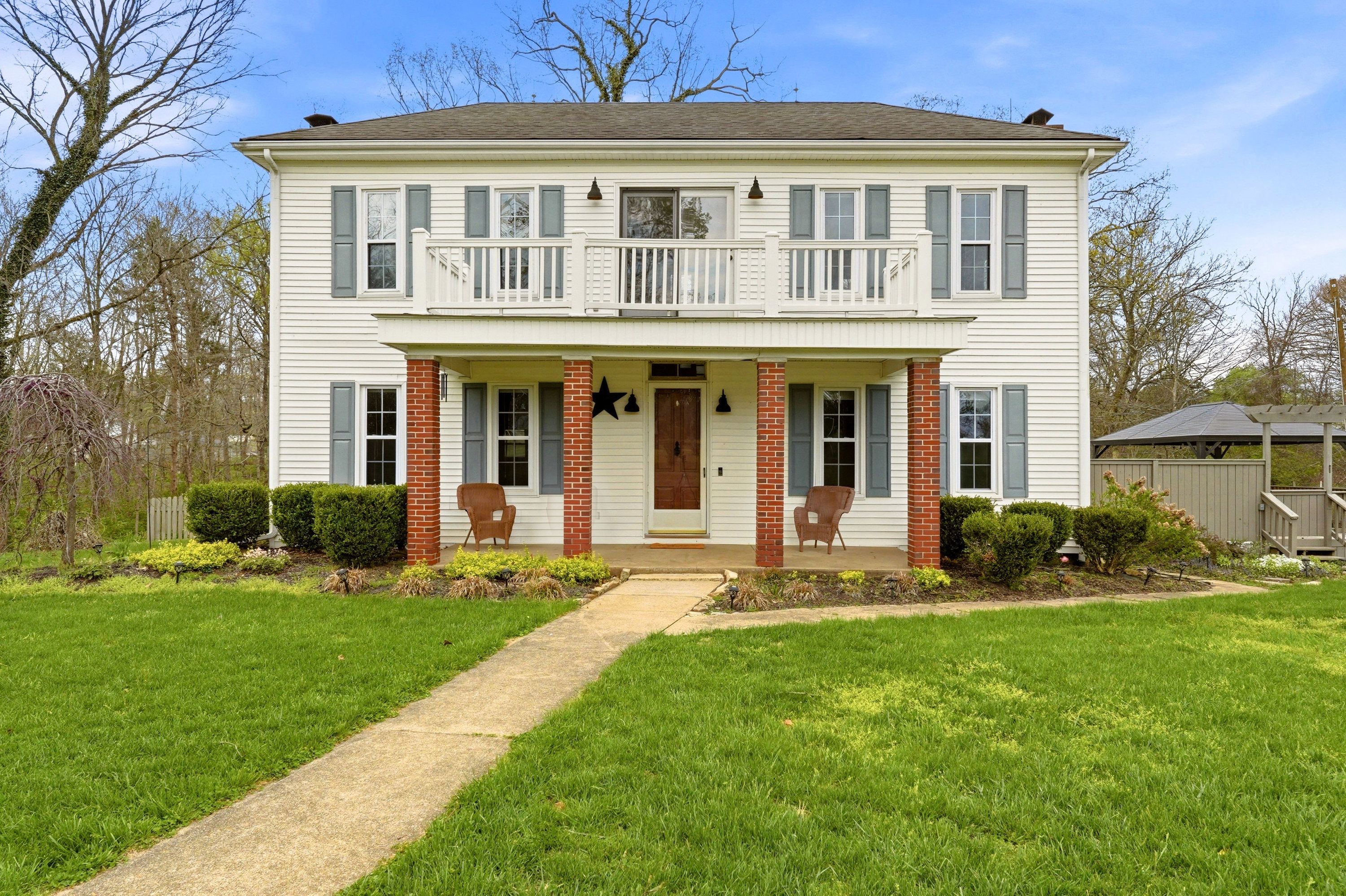 Originally built in 1870, this updated traditional home is situated on just over four park-like acres. This picturesque property features mature landscaping, established perennial gardens, a barn with attached carport, and the scenic Wales Run Creek, complete with waterfalls, running along the entire Southwest boundary offering a peaceful and private setting. Step onto the covered front porch and into a welcoming entryway where timeless character meets thoughtful restoration. Original architectural details including the restored staircase, shiplap accents, wide baseboards, and custom window headers blend seamlessly with modern updates. Just off the entry, a spacious living room invites you to relax by the wood-burning fireplace, while the spacious kitchen and gathering area serve as the heart of the home. This beautifully updated space features granite countertops, subway tile backsplash, stainless steel appliances, a farmhouse sink, updated cabinet fronts, and a large center island with a concrete countertop. Recessed lighting adds a bright, modern touch. Step out to the south exit of kitchen into a fully fenced side yard overlooking the creek or enjoy the four seasons room and ample deck space on the north side of kitchen. The main home offers 3 bedrooms and 2 full bathrooms, including a convenient first-floor primary with two closets. Upstairs, you'll find 2 additional bedrooms and a newly renovated modern full bath with an abundance of light. A charming balcony atop the front porch offers an ideal spot for morning coffee with Northeast views perfect for summer sunrises. Adding exceptional value and versatility is the updated barn. The first floor includes a bathroom and has roughed-in plumbing for a future kitchen area. Upstairs, a large recreation room/event space opens to an oversized deck with sweeping views of the property, perfect for entertaining or simply enjoying the peaceful surroundings. The barn is also equipped with an EV charging connection. Whether you're looking for space to spread out, entertain, or simply enjoy the beauty of nature, this unique property offers the perfect blend of charm, function, and modern updates. Located approximately 1 mile from Wesbanco Ampitheater & Mount Washington Sports Complex & playground area.