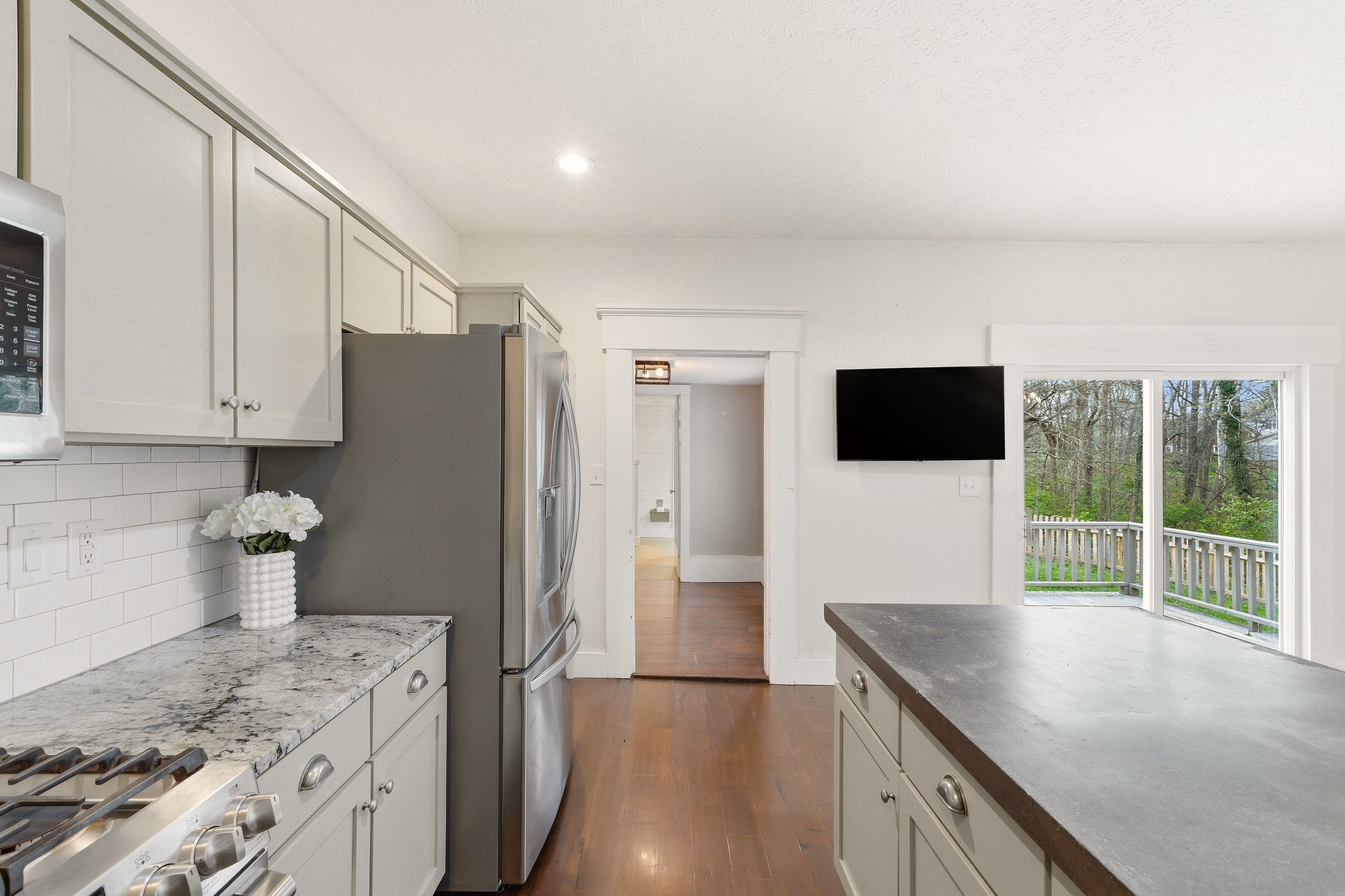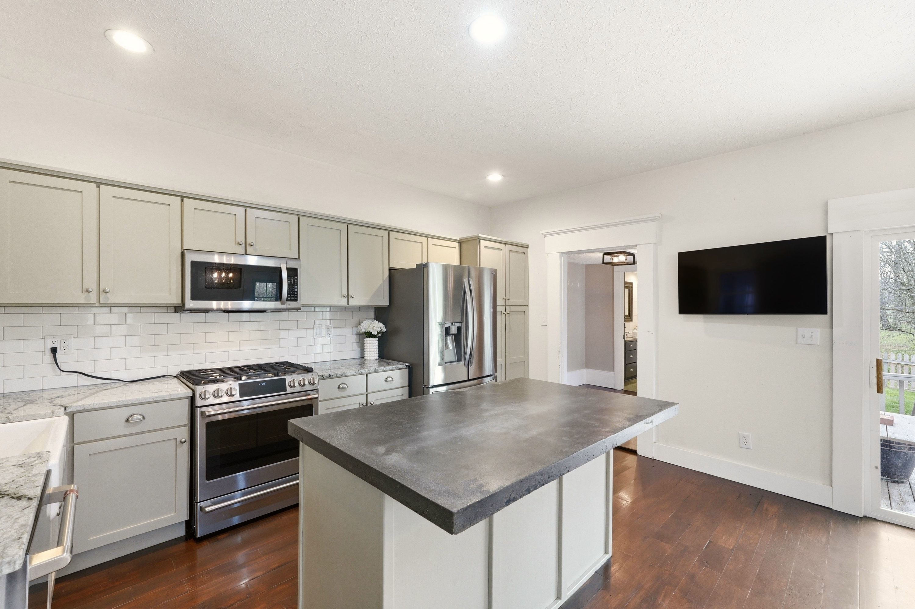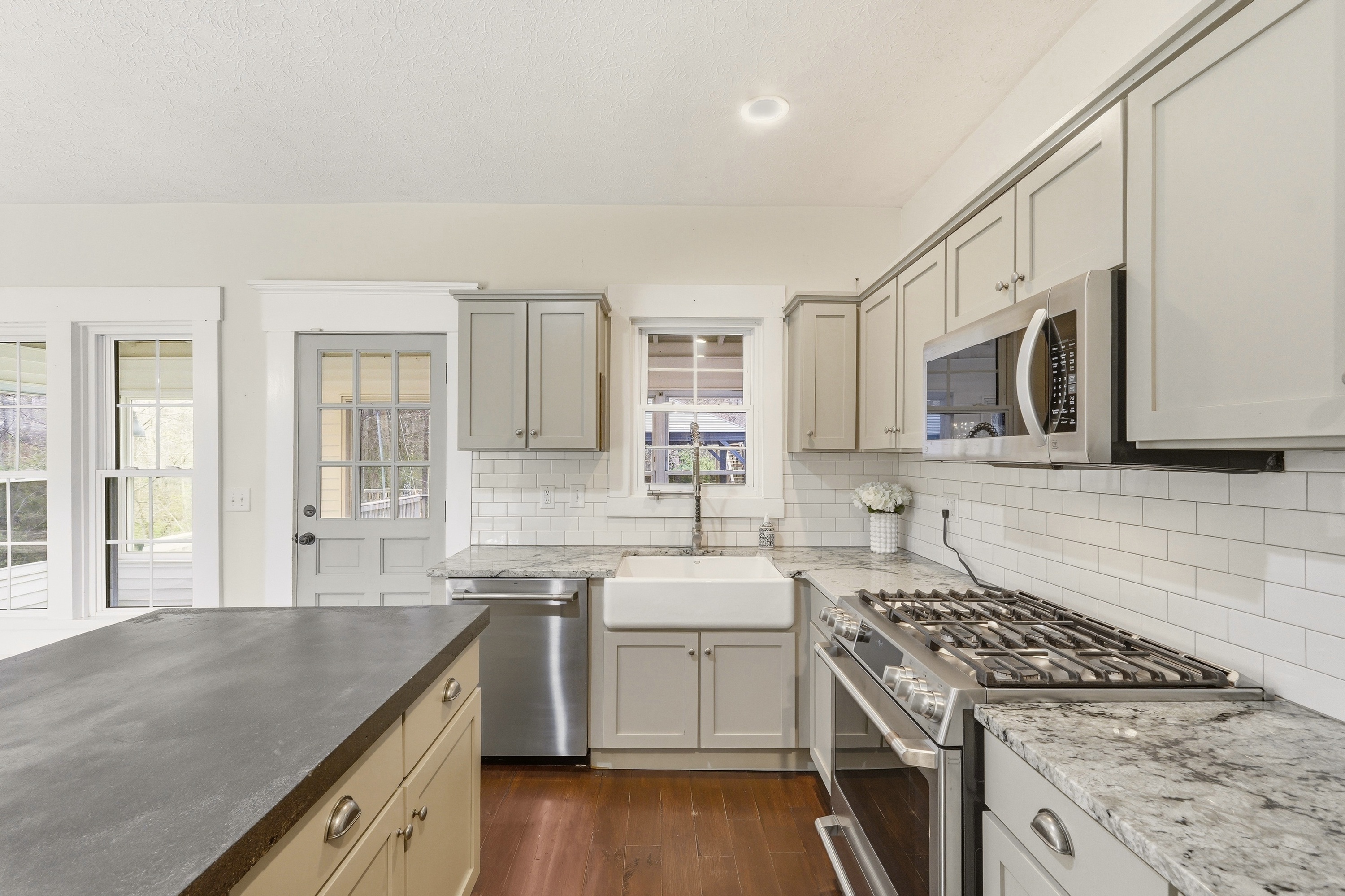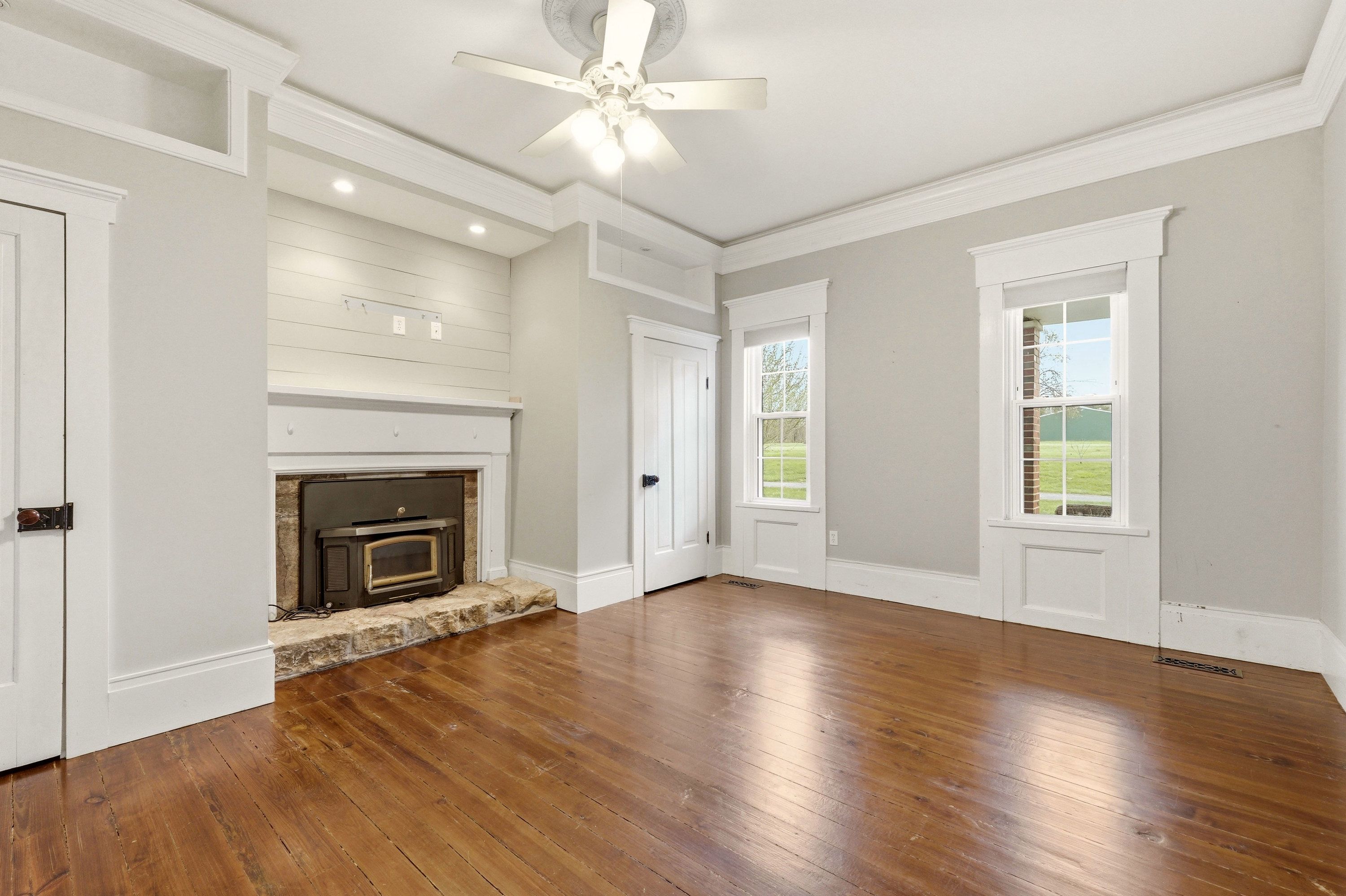 Originally built in 1870, this updated traditional home is situated on just over four park-like acres. This picturesque property features mature landscaping, established perennial gardens, a barn with attached carport, and the scenic Wales Run Creek, complete with waterfalls, running along the entire Southwest boundary offering a peaceful and private setting. Step onto the covered front porch and into a welcoming entryway where timeless character meets thoughtful restoration. Original architectural details including the restored staircase, shiplap accents, wide baseboards, and custom window headers blend seamlessly with modern updates. Just off the entry, a spacious living room invites you to relax by the wood-burning fireplace, while the spacious kitchen and gathering area serve as the heart of the home. This beautifully updated space features granite countertops, subway tile backsplash, stainless steel appliances, a farmhouse sink, updated cabinet fronts, and a large center island with a concrete countertop. Recessed lighting adds a bright, modern touch. Step out to the south exit of kitchen into a fully fenced side yard overlooking the creek or enjoy the four seasons room and ample deck space on the north side of kitchen. The main home offers 3 bedrooms and 2 full bathrooms, including a convenient first-floor primary with two closets. Upstairs, you'll find 2 additional bedrooms and a newly renovated modern full bath with an abundance of light. A charming balcony atop the front porch offers an ideal spot for morning coffee with Northeast views perfect for summer sunrises. Adding exceptional value and versatility is the updated barn. The first floor includes a bathroom and has roughed-in plumbing for a future kitchen area. Upstairs, a large recreation room/event space opens to an oversized deck with sweeping views of the property, perfect for entertaining or simply enjoying the peaceful surroundings. The barn is also equipped with an EV charging connection. Whether you're looking for space to spread out, entertain, or simply enjoy the beauty of nature, this unique property offers the perfect blend of charm, function, and modern updates. Located approximately 1 mile from Wesbanco Ampitheater & Mount Washington Sports Complex & playground area.