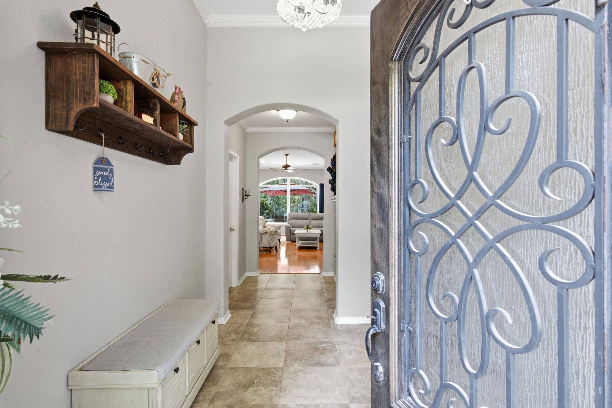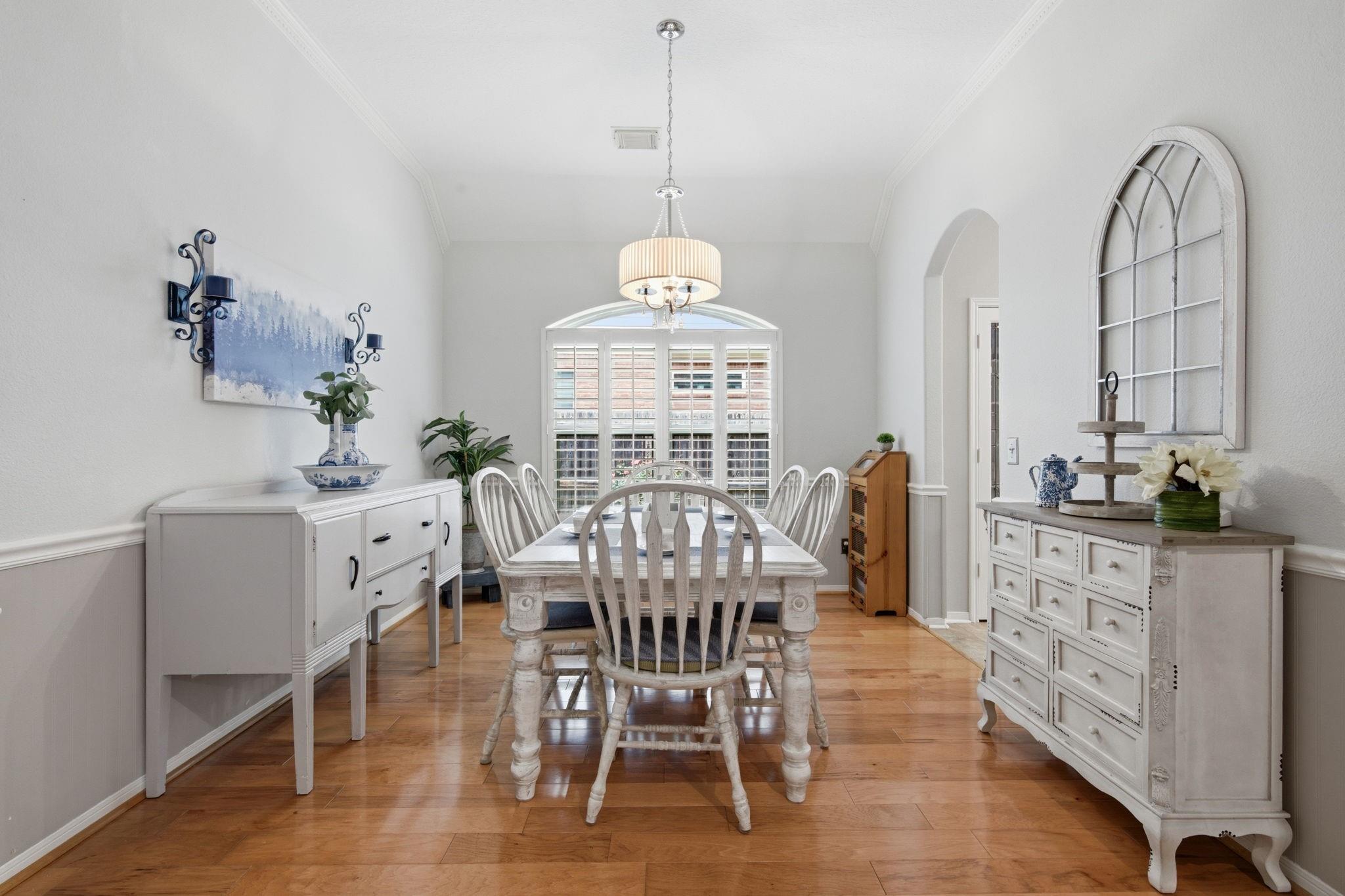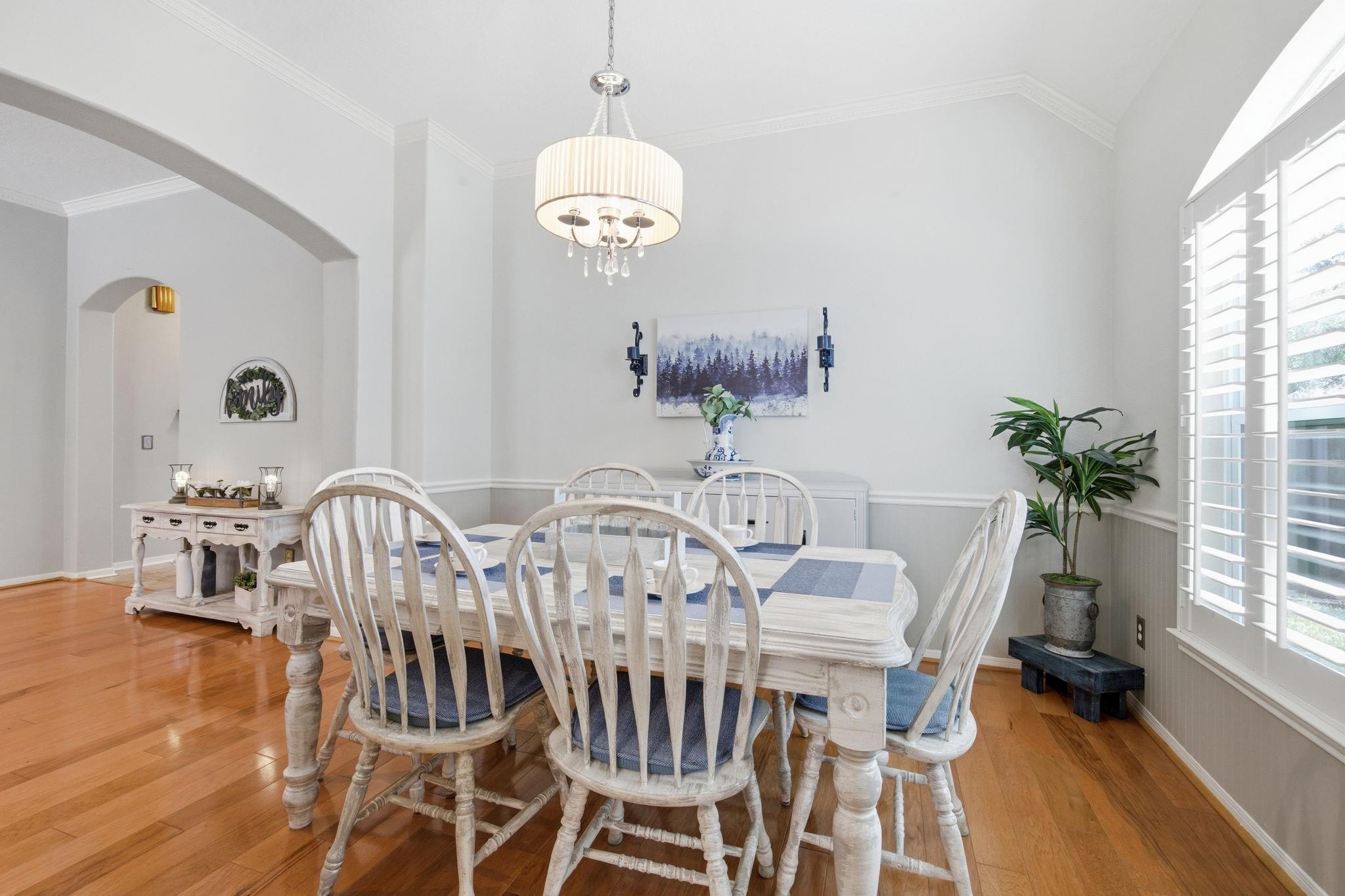 Welcome to this stunning single-story 4 bed, 2 bath home in Alden Bridge! Featuring a sparkling pool & spa, new roof, attic insulation, tankless water heater, generator, and pool heater - all updated in 2023. Enjoy vaulted ceilings, crown molding, wood & tile flooring (no carpet), decorative arches, and an open floorplan. The tropical backyard oasis includes a pool, spa, and waterfall, with a wrought iron fence overlooking a serene greenbelt. Meticulously maintained and full of charm, this home is a must-see! Don't miss the open house on Sat 4/11 from 1-4pm. Backs onto peaceful forested greenbelt for added tranquility.