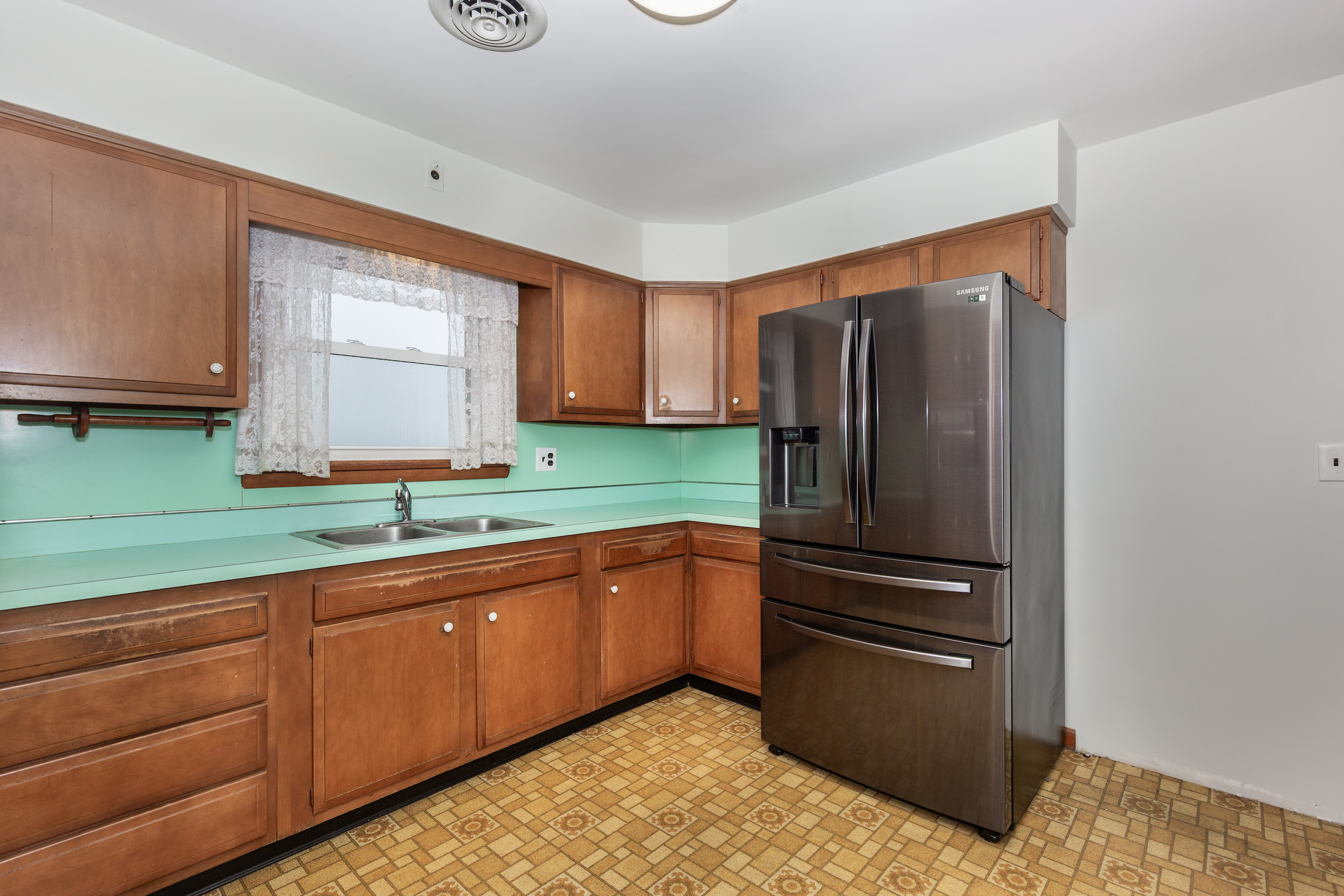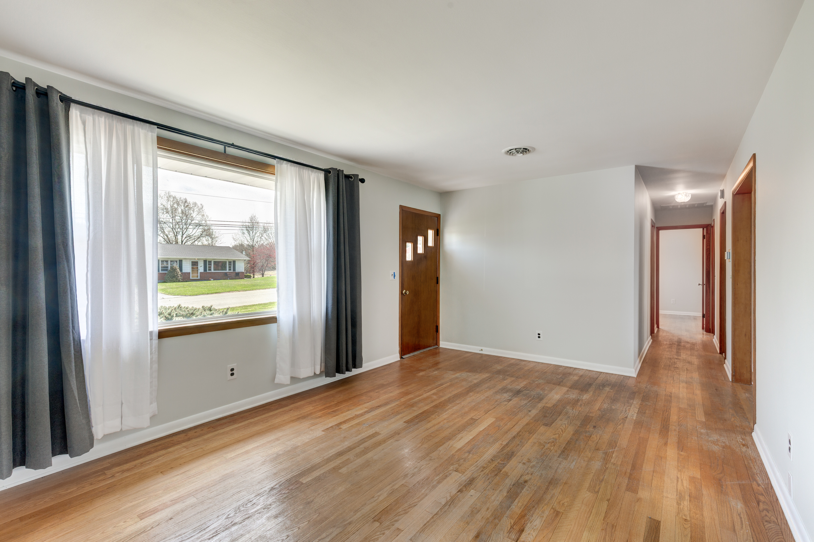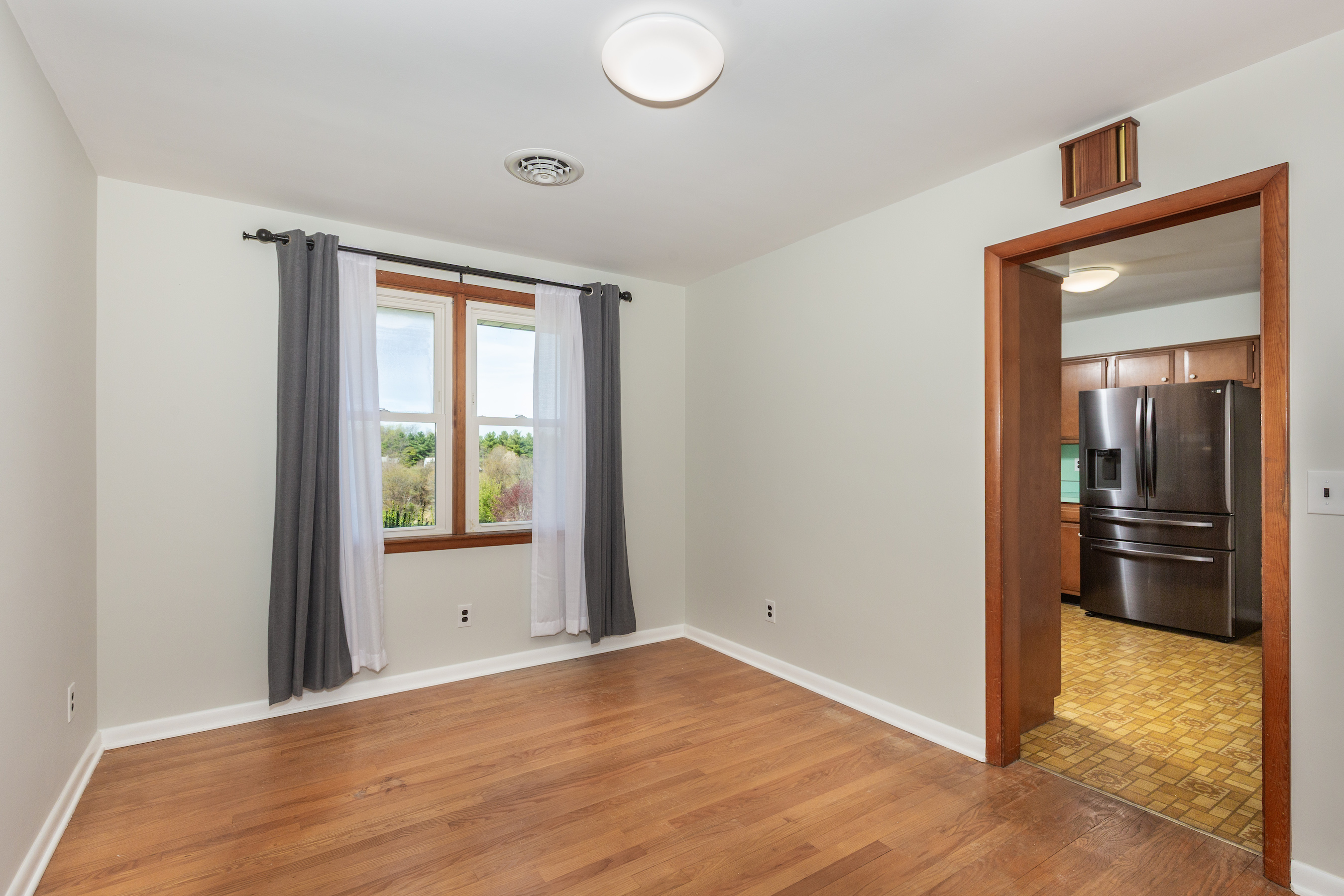 The beautifully remodeled main bathroom is sure to impress, while the hardwood floors in the living room, dining room, and all three bedrooms add warmth and timeless appeal. Fresh neutral paint mostly throughout the upper level (2026), along with several newer windows, creates a bright and inviting atmosphere that most buyers will appreciate. The kitchen offers a charming retro feel, giving you the perfect opportunity to update and design it in your own personal style — and the refrigerator has been recently replaced.