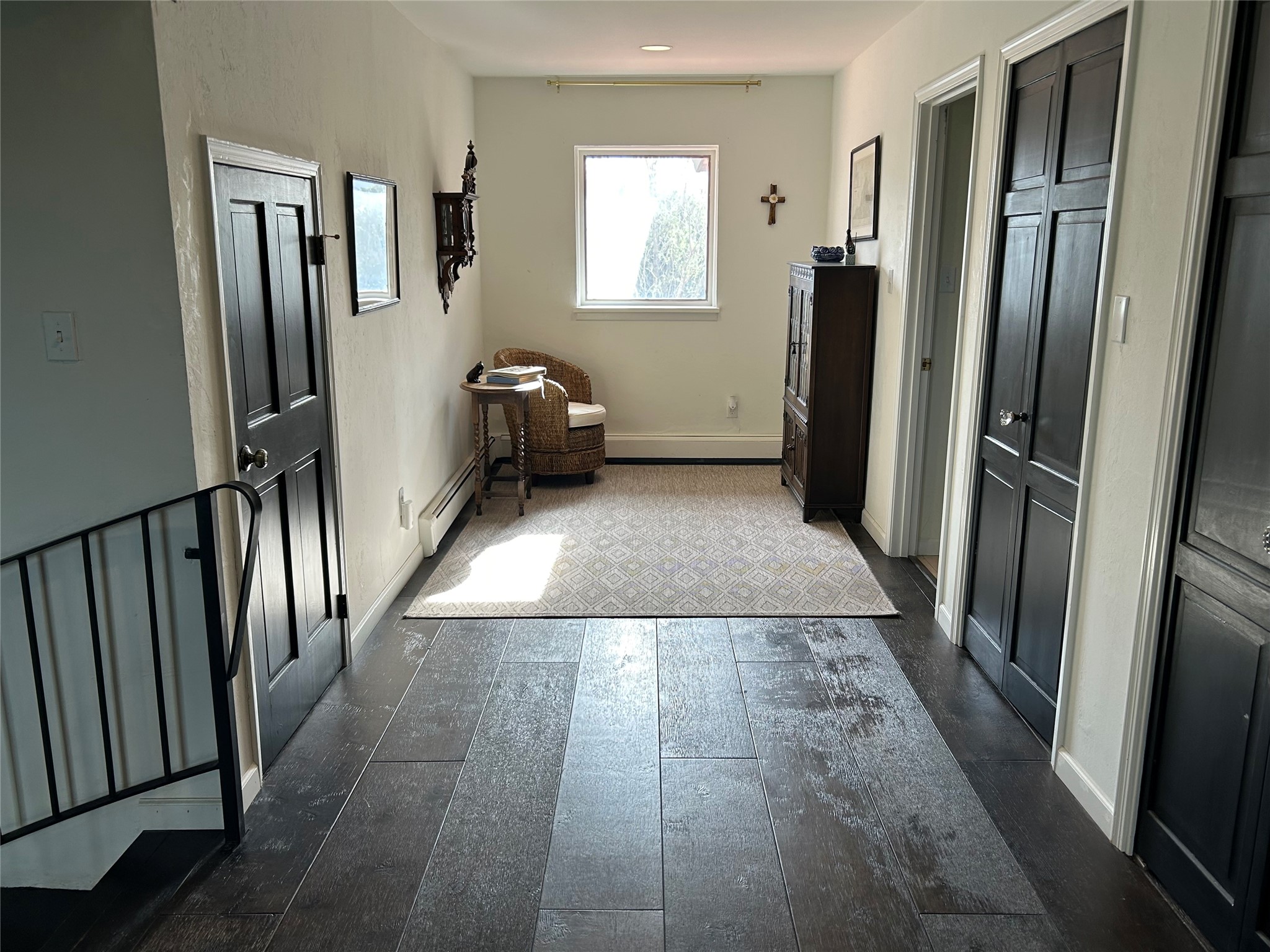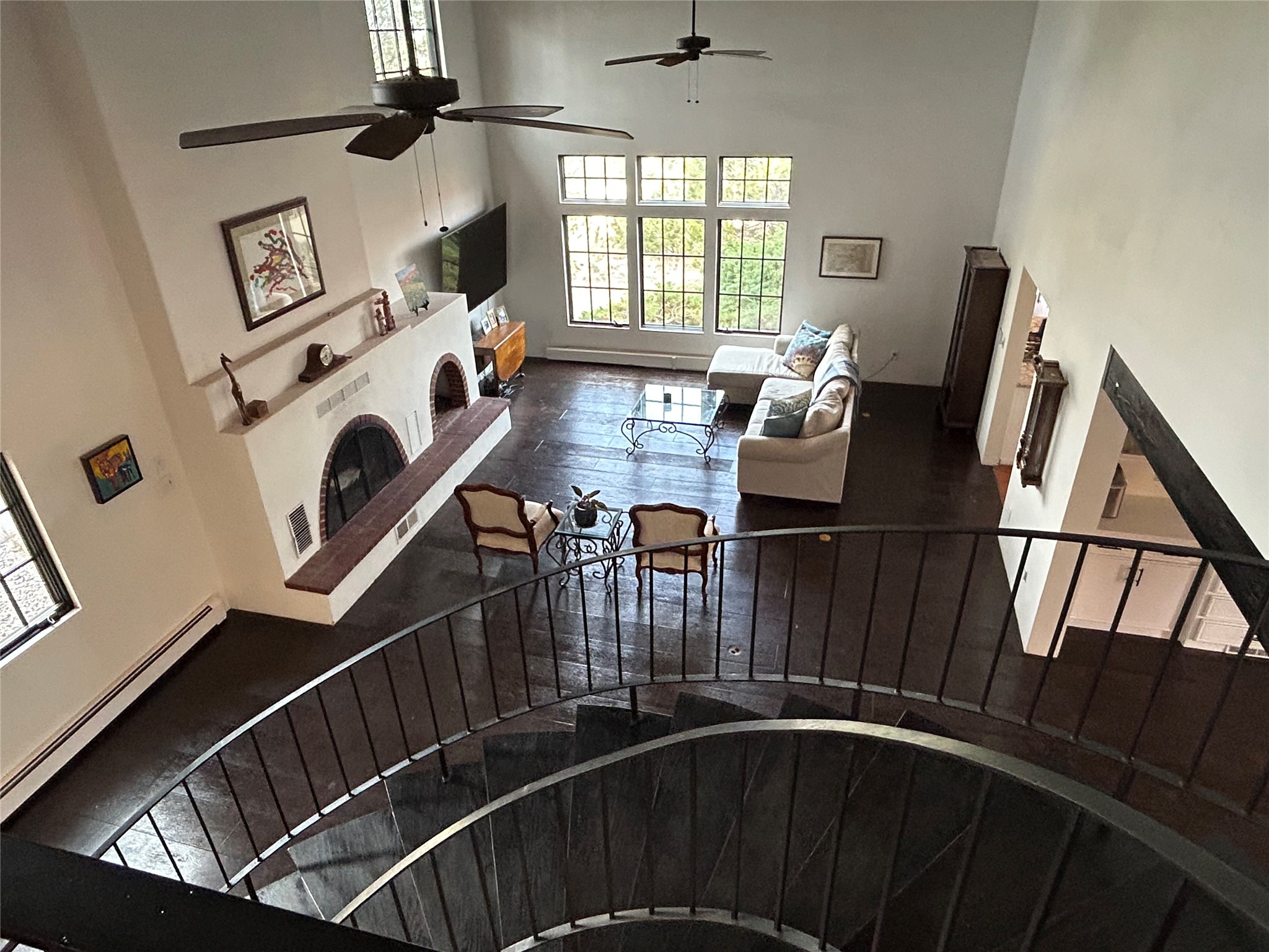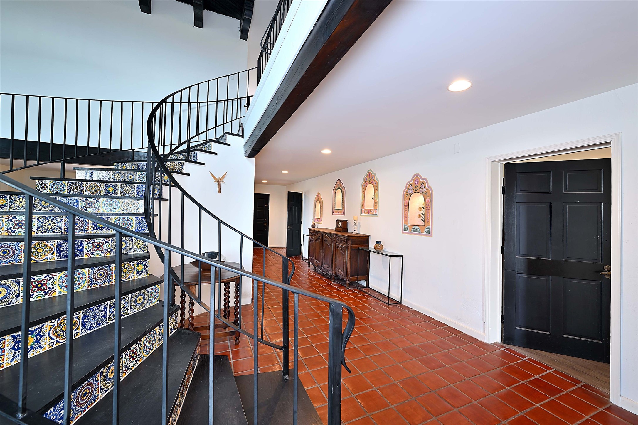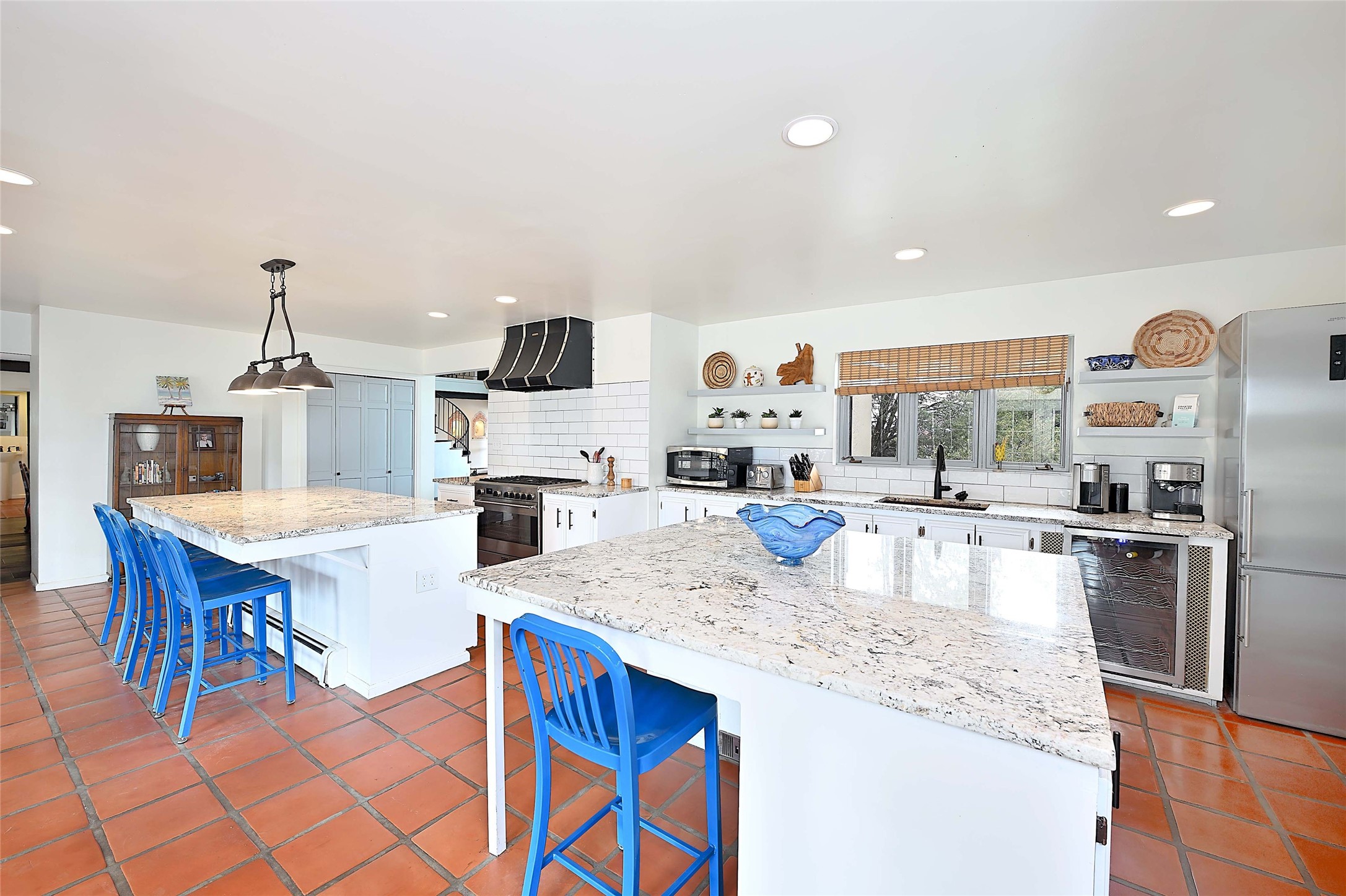 Tucked at the end of a quiet lane, this expansive 2.5-acre property offers privacy and sweeping views with the convenience of being within ten minutes to shopping, schools and the Plaza. With over 4,300 square feet, 5 bedrooms, and 4 bathrooms, there’s room to spread out while still feeling connected. The heart of the home is a generous recently remodeled kitchen designed for gathering, complete with a walk-in pantry and space that flows easily for everyday living or entertaining. A large laundry room off the kitchen connects to the expansive garage. The lower level features a large primary suite with a kiva fireplace, a spacious, recently renovated, master bathroom with a shower and a bathtub, and dual walk-in closets. An additional bedroom or office is also on the lower level. Upstairs features 3 bedrooms, 2 bathrooms, a western-facing sunroom with gorgeous Jemez and sunset views, and a spacious attic for storage. The living room features beautifully carved corbels and beamed 20-foot ceilings. Wide plank wood flooring pairs beautifully with the wood-burning fireplace, creating a cozy, inviting atmosphere year-round. Thoughtful features like baseboard hot water heat and central evaporative cooling provide comfort in every season. Outside, enjoy the expansive back portal off the kitchen, recently reseeded lawn and wide-open space with endless possibilities and views of the Sangre de Cristo Mountains—all with no HOA and no Santa Fe mansion tax. This home comes partially furnished, and includes a 90-inch, wall-mounted Sony TV in the living room, an outdoor TV on the back portal, Teak furniture on the back portal, and various antique pieces throughout. Whether you’re looking for quiet mornings, sunset views, or room to grow, this property delivers a lifestyle that feels both grounded and expansive.