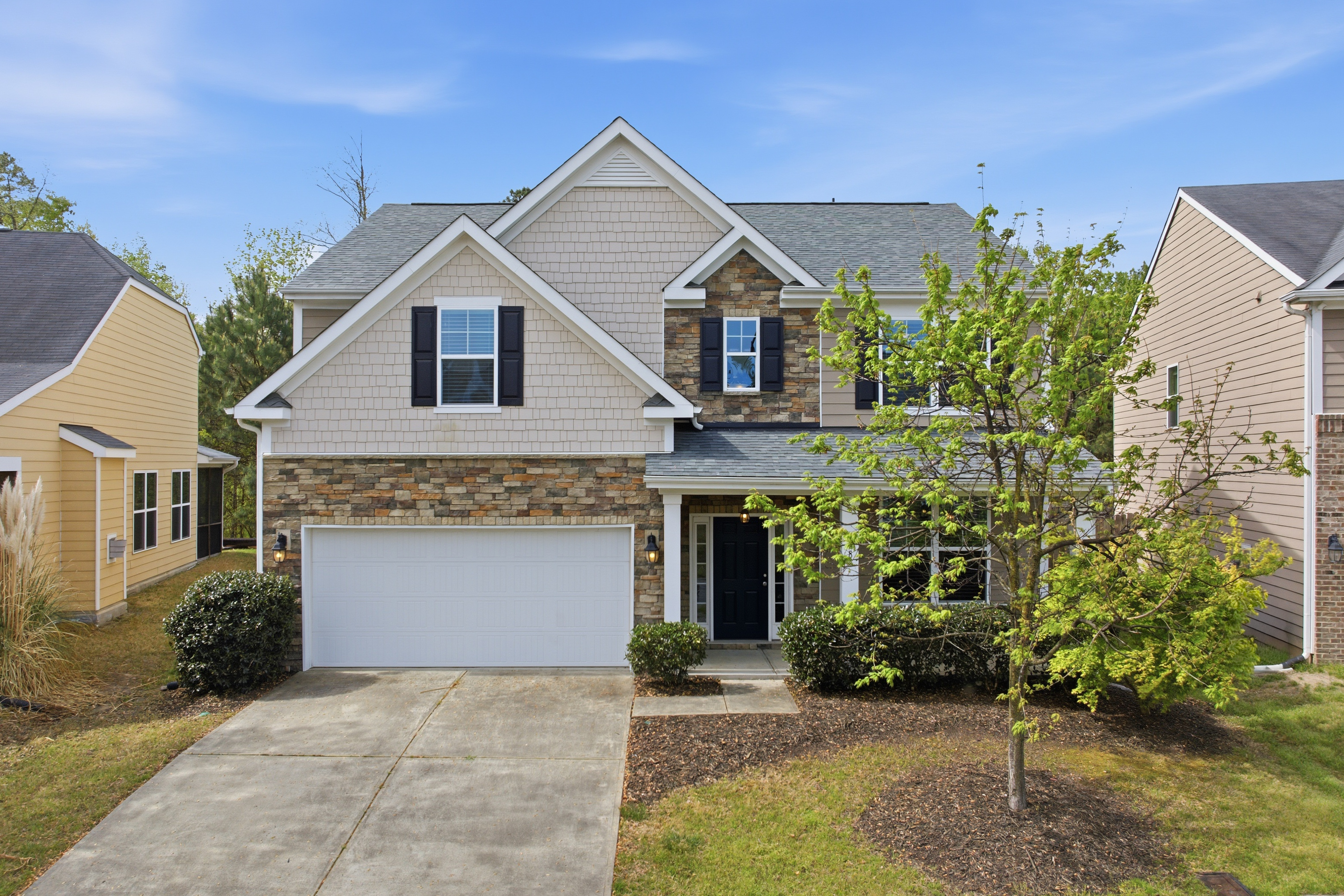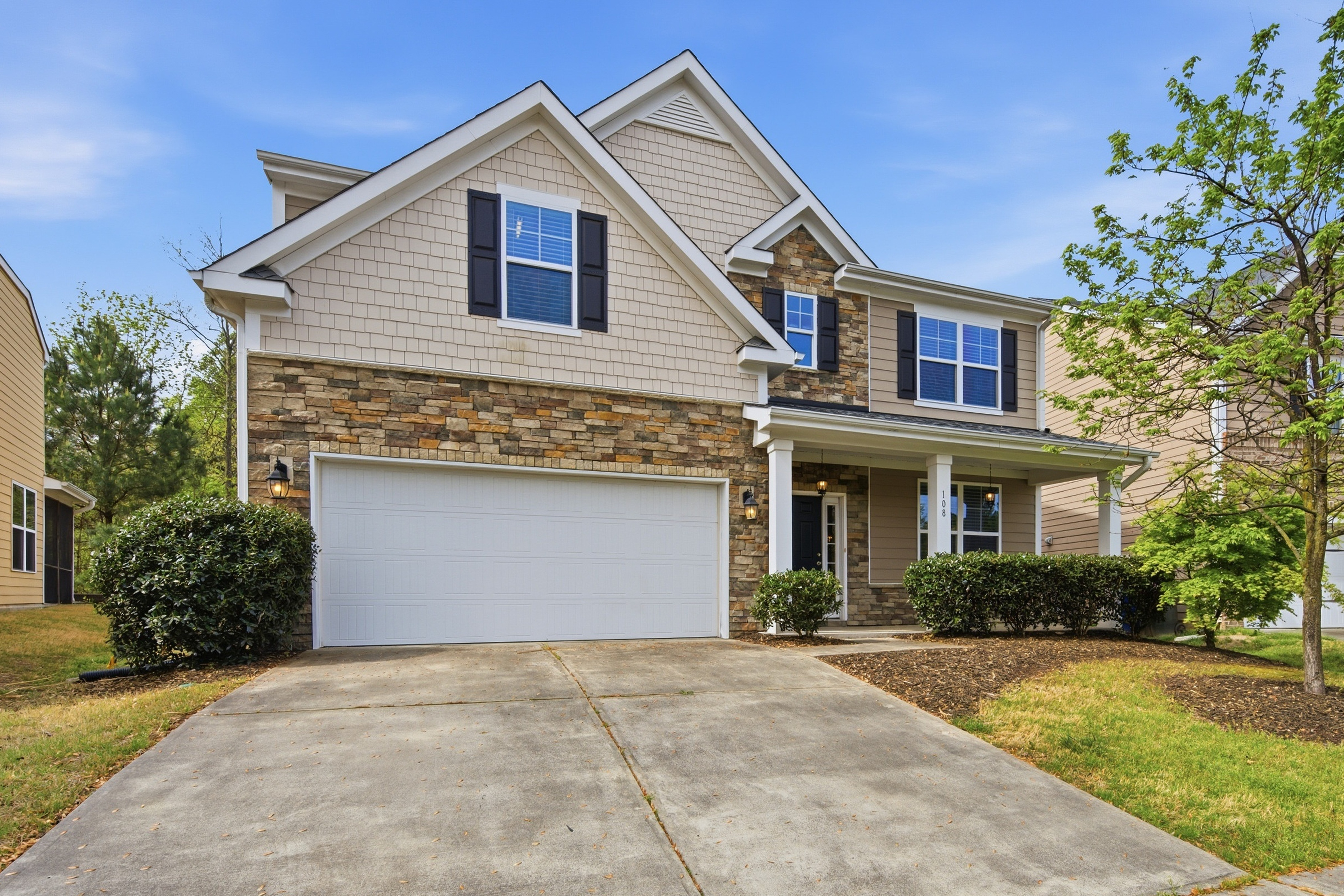 Tucked at the end of a quiet cul-de-sac in Ashton Hall, 108 Glenview offers a rare blend of privacy, space, and convenience. Backing to a serene wooded buffer and featuring a fenced backyard, the setting creates a peaceful retreat while remaining close to the neighborhood pool and amenities. The home's exterior presents beautifully with a blend of stone veneer and fiber cement shake and siding, giving it a timeless yet transitional presence.Inside, a welcoming two-story foyer sets the tone, complemented by fresh interior paint and engineered wood flooring. A formal living room sits to the right of the entry and transitions seamlessly into the dining room--ideal for both everyday living and entertaining. From there, the home opens into the kitchen and main living area, anchored by a charming breakfast nook positioned in front of sliding glass doors.The kitchen is both functional and inviting, featuring granite countertops, beautiful wood cabinetry, and a layout that connects effortlessly to the living spaces. The breakfast area leads directly to the screened porch and patio, extending the living experience outdoors and overlooking a large, flat backyard with a private wooded backdrop.Upstairs, a spacious loft offers flexible living space, perfect for a secondary lounge, office, or play area. The primary suite is thoughtfully positioned for privacy and features a tray ceiling, a well-appointed bath, and two generous walk-in closets. Two additional bedrooms offer ample space and natural light, supported by a shared full bath, creating a well-balanced three-bedroom, two-and-a-half-bath layout.Ashton Hall residents enjoy a recently updated clubhouse complete with a gathering space, kitchenette, fitness room, and an upper-level game area. Outdoors, the community tennis court and pool complex includes both an adult pool and a children's pool with a playground. Not to mention a beautifully finished clubhouse that's perfect for entertaining, with a fitness center and upper-level game room, creating a true neighborhood lifestyle. Recent updates include a new architectural shingle roof and new garage door springs for the two-car garage, offering both peace of mind and functionality.Ideally located in Durham with quick access to Highway 70, this home offers easy connectivity to RTP, Brier Creek, and Raleigh-Durham International Airport. From performances at DPAC to Durham's growing dining scene, everything the Triangle has to offer is within reach. A quiet setting, a functional layout, and a connected location -- this is a home that lives well on every level.