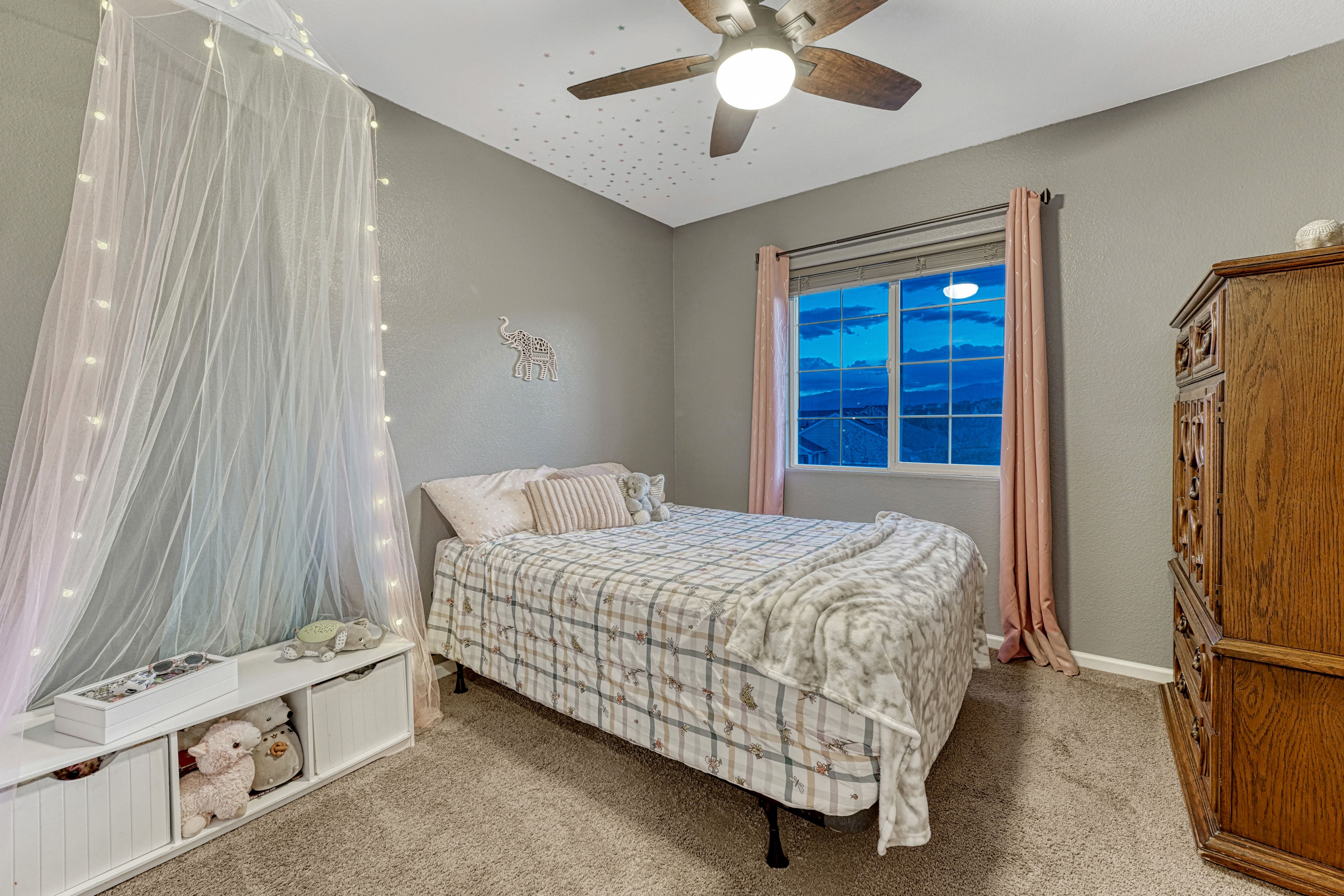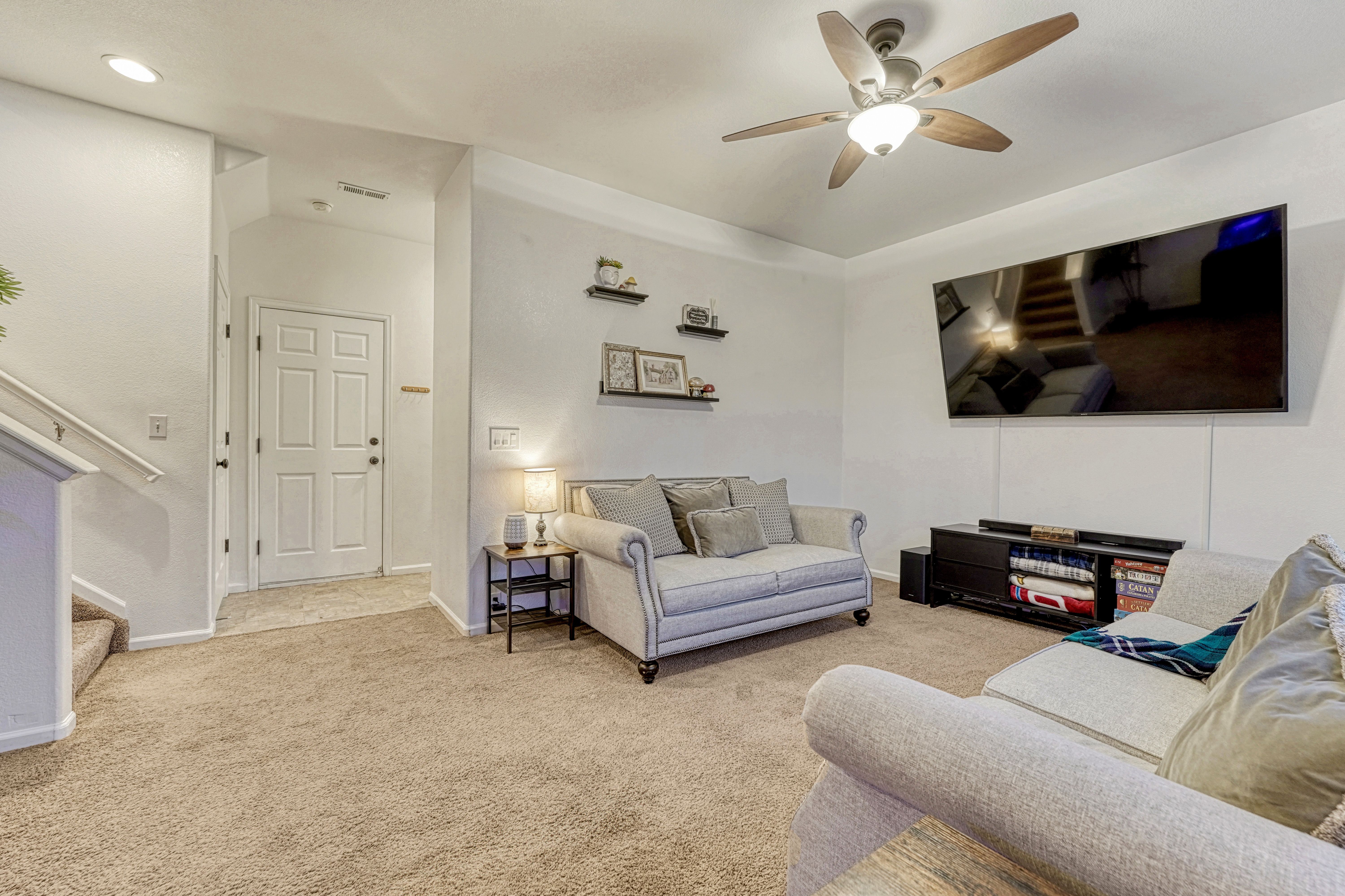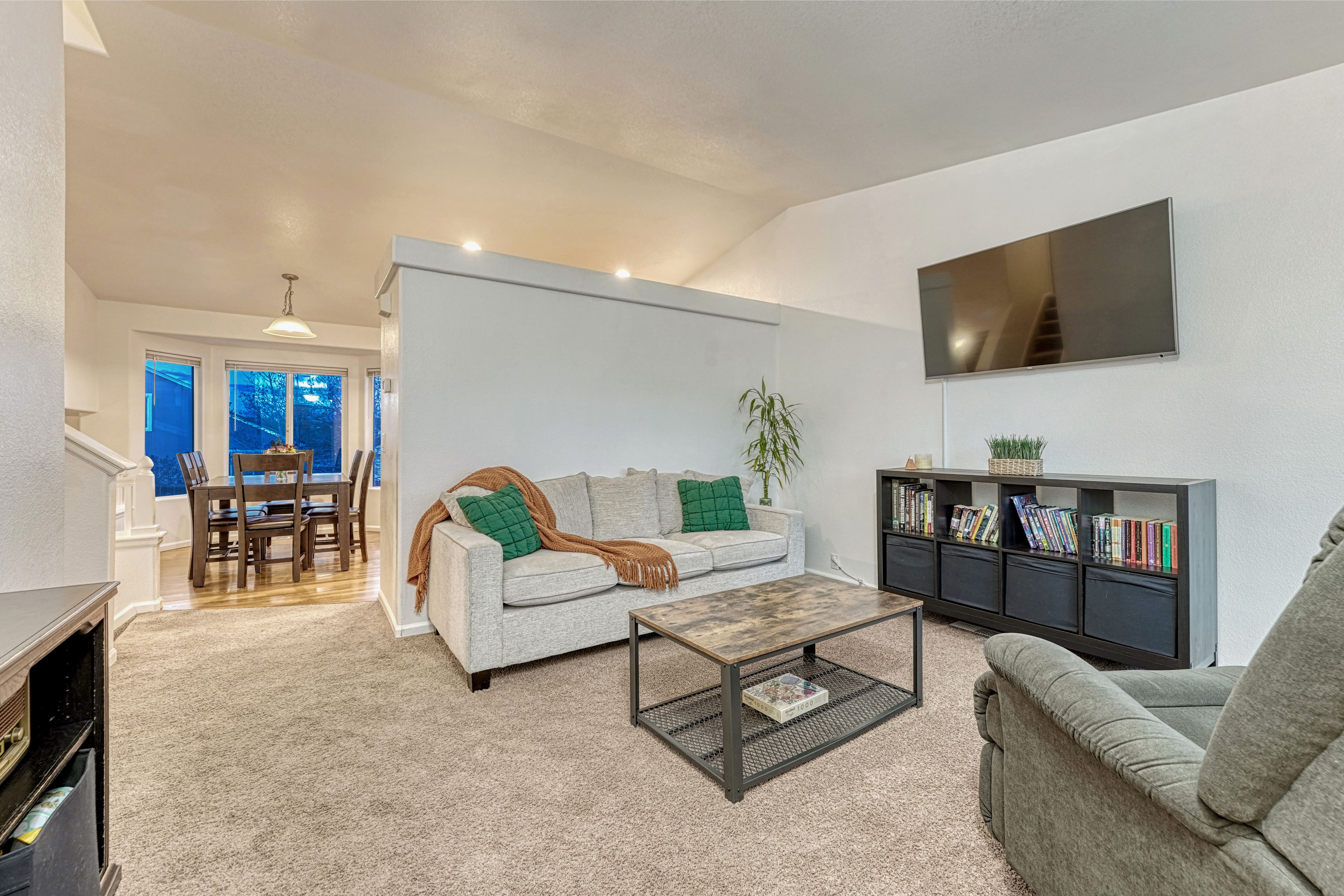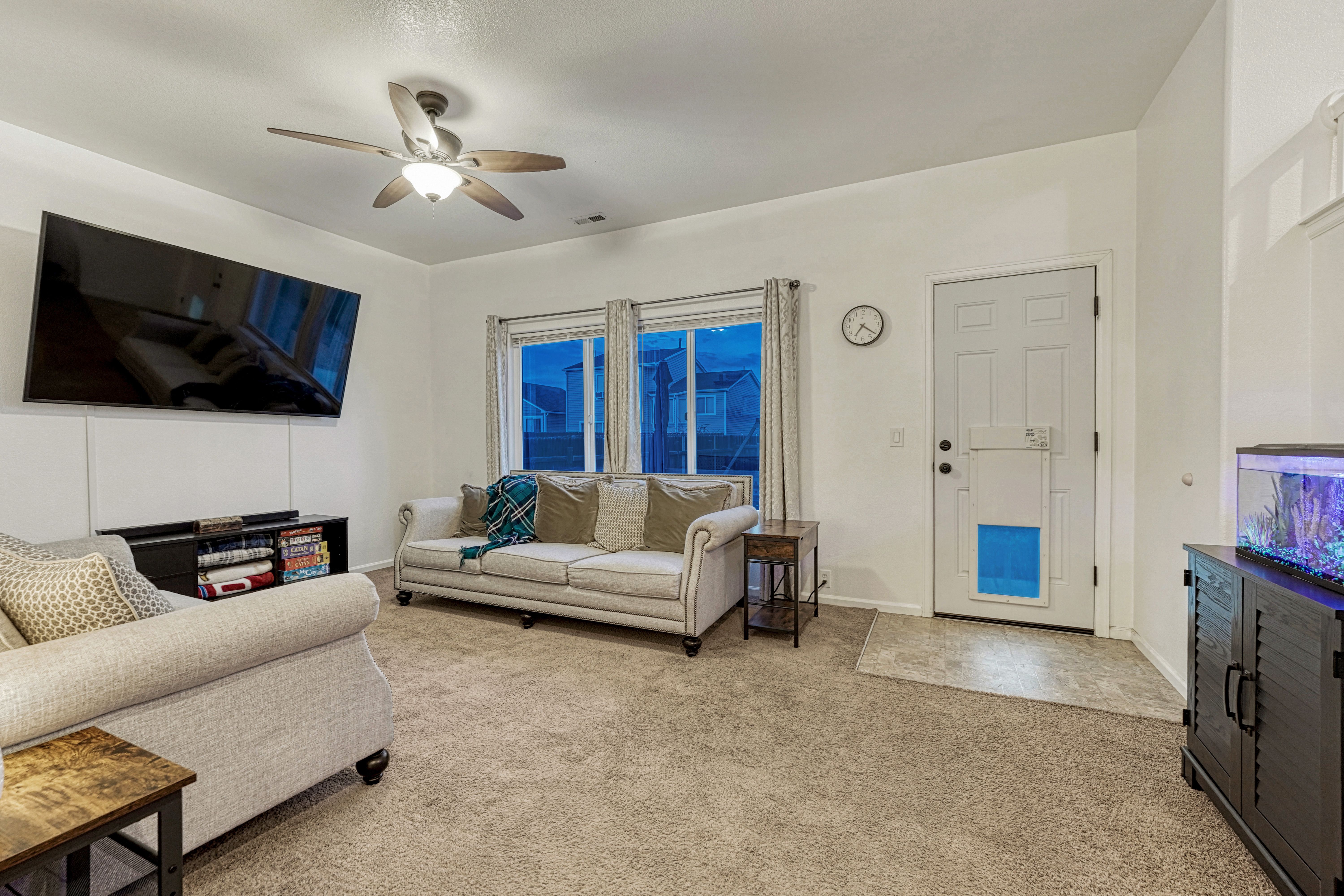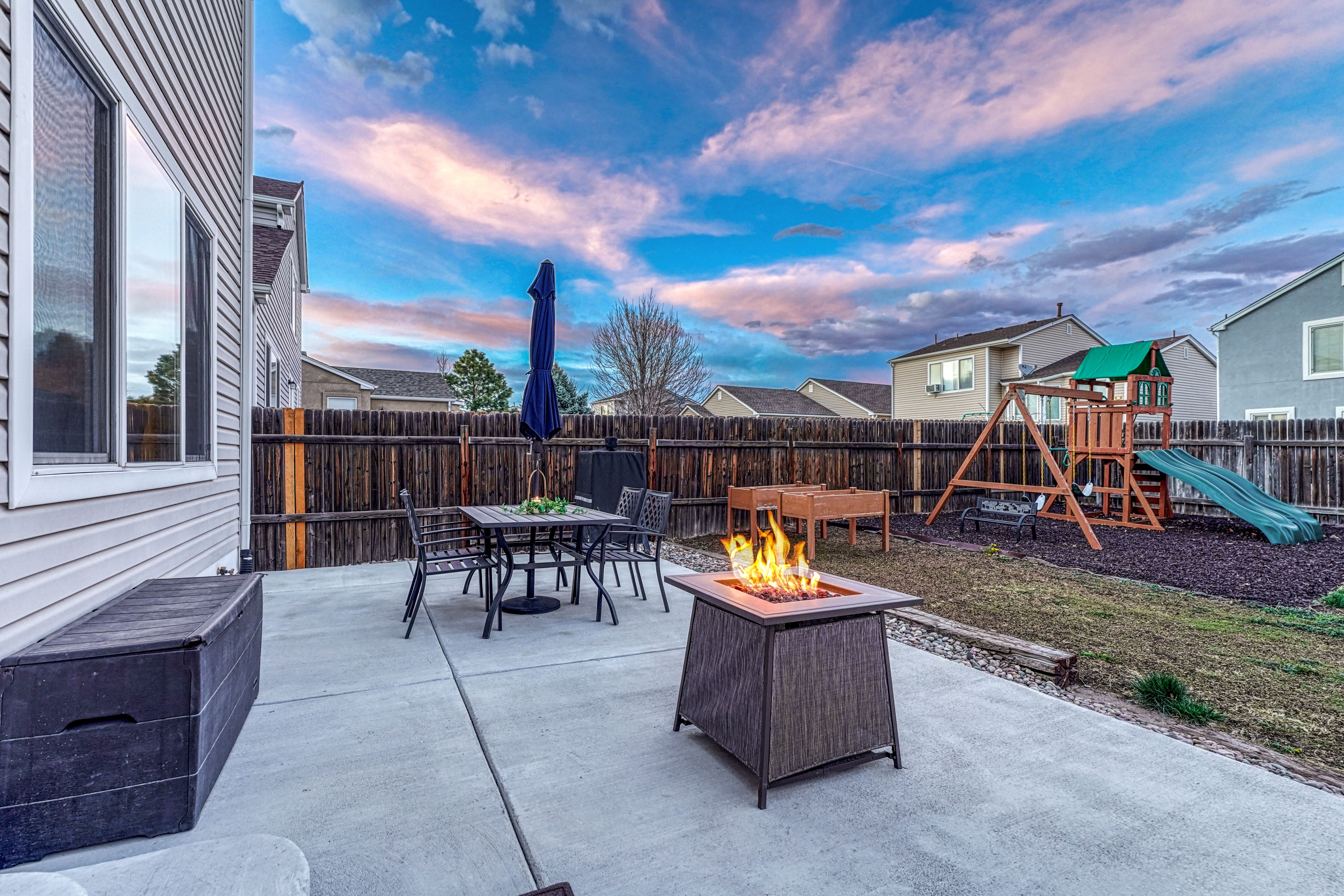 Welcome to this inviting home in the desirable Stetson Hills area, conveniently located near the Powers Blvd corridor. With multiple flexible living spaces, this home offers a layout that adapts easily to a variety of lifestyles. The main level features the kitchen, dining, and living rooms with vaulted ceilings, hardwood flooring in the kitchen and dining space, and a bay window that brings in great natural light. The kitchen includes a pantry, stainless steel appliances, and ample cabinet and counter space. Upstairs, the primary suite offers dual closets and a private bath, along with two additional bedrooms and a full bathroom. The lower level provides a cozy family room, a convenient half bath, and access to the two-car garage. The unfinished basement offers plenty of storage and the opportunity to expand, with space for a future conforming fourth bedroom, office, playroom, or home gym. Outside, the backyard is fully fenced and includes a swing set, along with a newer concrete patio and walkway for added convenience. Additional features include paid solar panels to help reduce utility costs, air conditioning, Pikes Peak mountain views, and a low quarterly HOA that includes trash service. A mounted TV, outdoor playset, and patio table and chair set are also included, adding extra value and convenience. This home offers a solid layout, great location, and the chance to make it your own. Come take a look and imagine the possibilities!