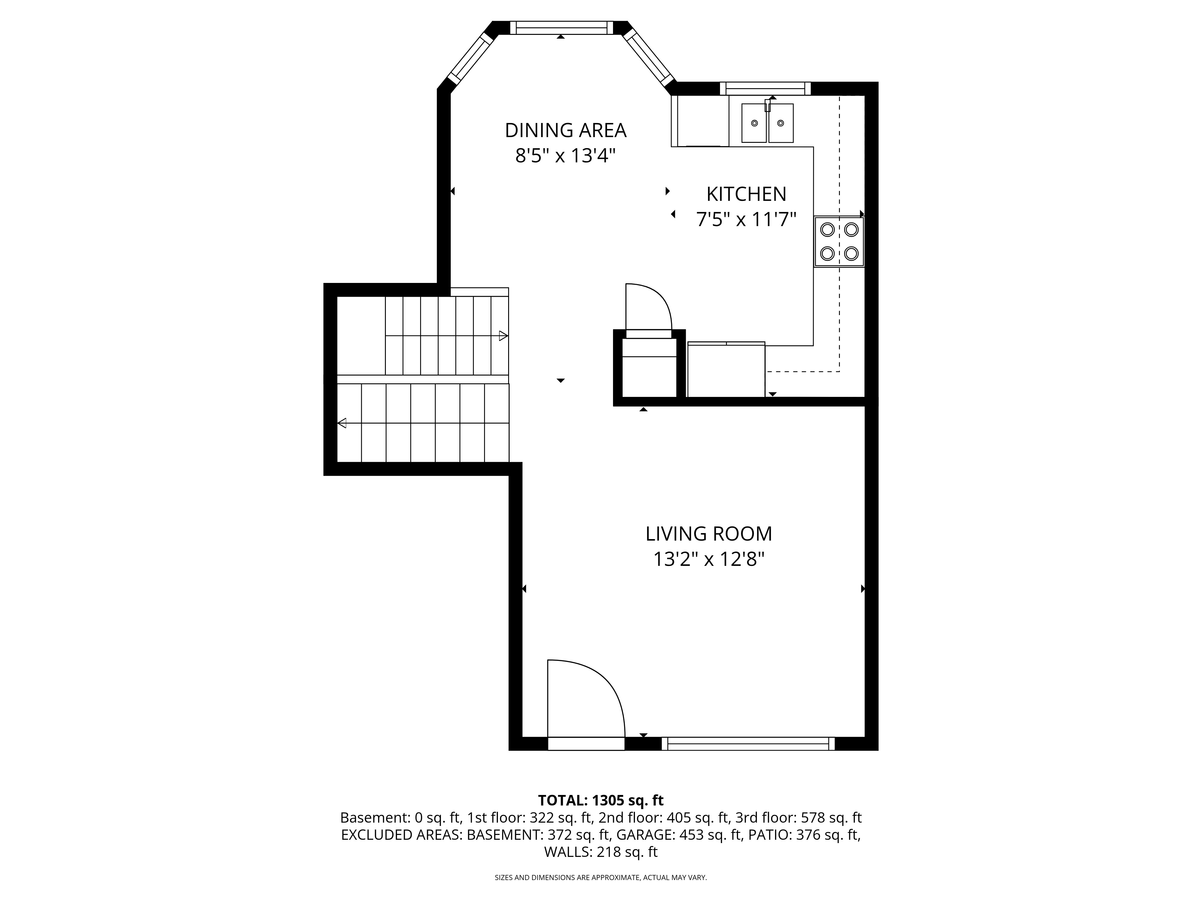 建筑面积 : 1,382 ft² / 128 m²