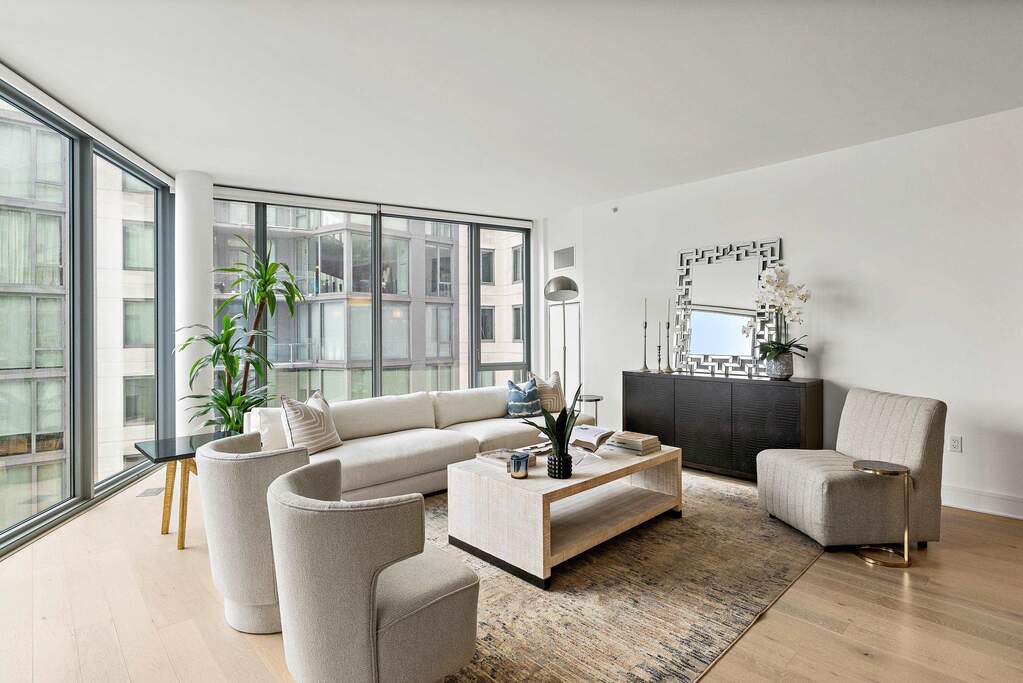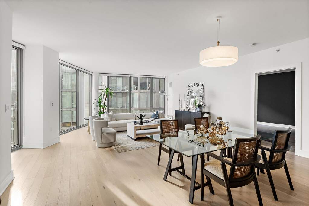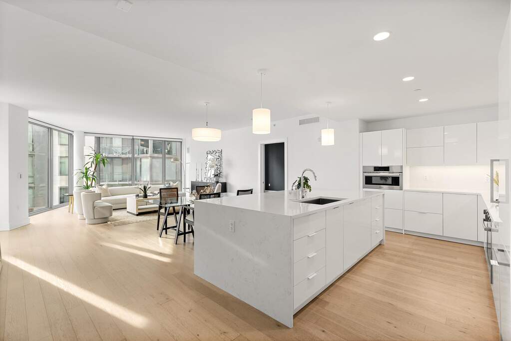 Introducing an exquisite home featuring unique full-panel glass floor-to-ceiling windows, offering stunning protected panoramic views of Midtown and Downtown Manhattan to the southeast! This stunning residence boasts a high-end kitchen equipped with custom Italian Pedini cabinetry, generous Aspen quartz stone countertops with a waterfall edge, and a Bosch appliance package, including a Thermador built-in refrigerator, ideal for cooking enthusiasts. Pamper yourself in two luxurious en-suite bathrooms with Carrara marble floors and walls, custom Italian Pedini vanities topped with quartz countertops, and Moen faucets complemented by luxurious rain shower heads. The spacious bedrooms offer ample closet space, and the entire home is adorned with beautiful oak flooring throughout. Modern Restoration Hardware lighting fixtures and the convenience of in-unit laundry complete the package. Residents enjoy exceptional 40,000 SF of resort-style amenities, including a 24/7 concierge, multiple resident lounges, an infinity pool, a 6,000 sq. ft. fitness center with a yoga studio, aerobic studio, and weight room, two saunas, a thoughtfully designed play area for children, two landscaped community decks with fire pits and BBQs, all overlooking The Greatest City in The World. Benefit from an estimated 1% tax abatement through 2038