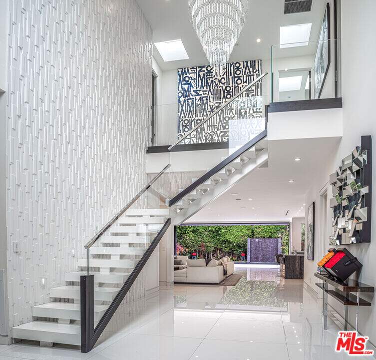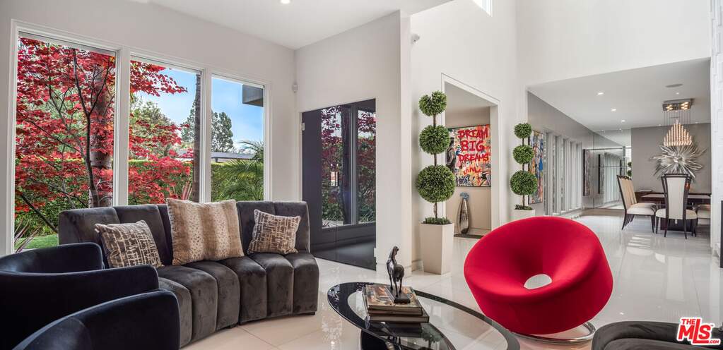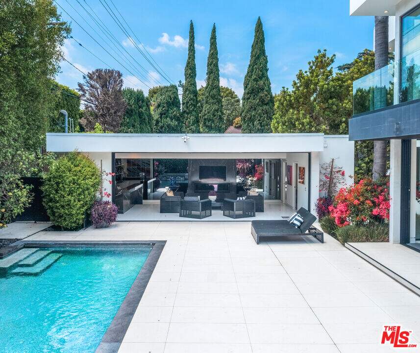 STUNNING MODERN MASTERPIECE IN PRIME BEVERLY HILLS FLATS *Custom-built by the current owners, this architectural showpiece is the epitome of modern luxury living. Designed with a dramatic open-concept layout, the home features soaring ceilings, a striking floating staircase, expansive gallery-style walls perfect for art display, and curated designer furnishings throughout. Enjoy elegant formal living and dining rooms, a chef's kitchen that opens seamlessly into an oversized family room with a sleek bar, ideal for entertaining. Glass doors lead to a beautifully landscaped yard with a sparkling pool, creating the perfect indoor-outdoor flow. The residence includes **six spacious bedrooms**, with **four located upstairs**, including a luxurious **primary suite** featuring a spa-inspired bath. A maid's room** is conveniently located off the kitchen. Equipped with state-of-the-art **smart home technology**, including **Control4 and Lutron systems**, this gated estate offers the utmost privacy, complete with a circular driveway and secure entry. Also included is a**beautifully furnished, separate guest house**, perfect for visitors or extended stays. All of this is just a short distance from the world-class shopping and dining of **Rodeo Drive* **. Offered fully furnished.**