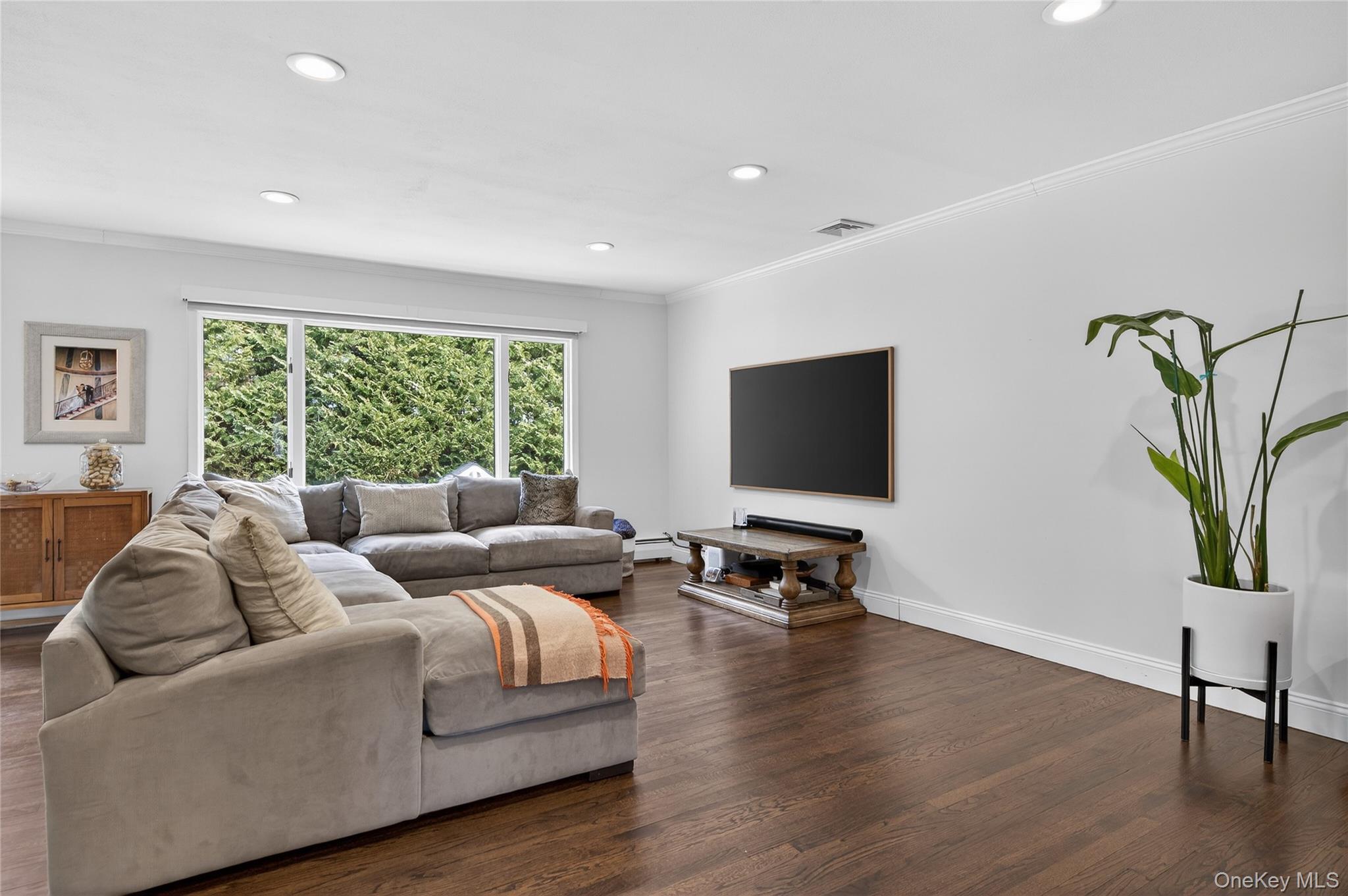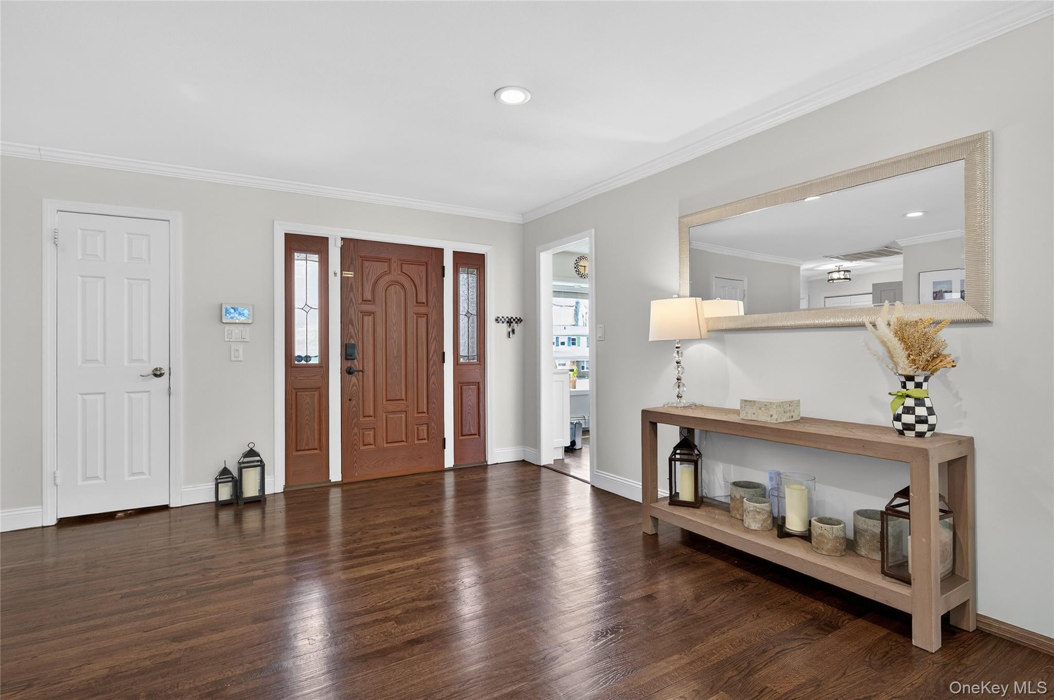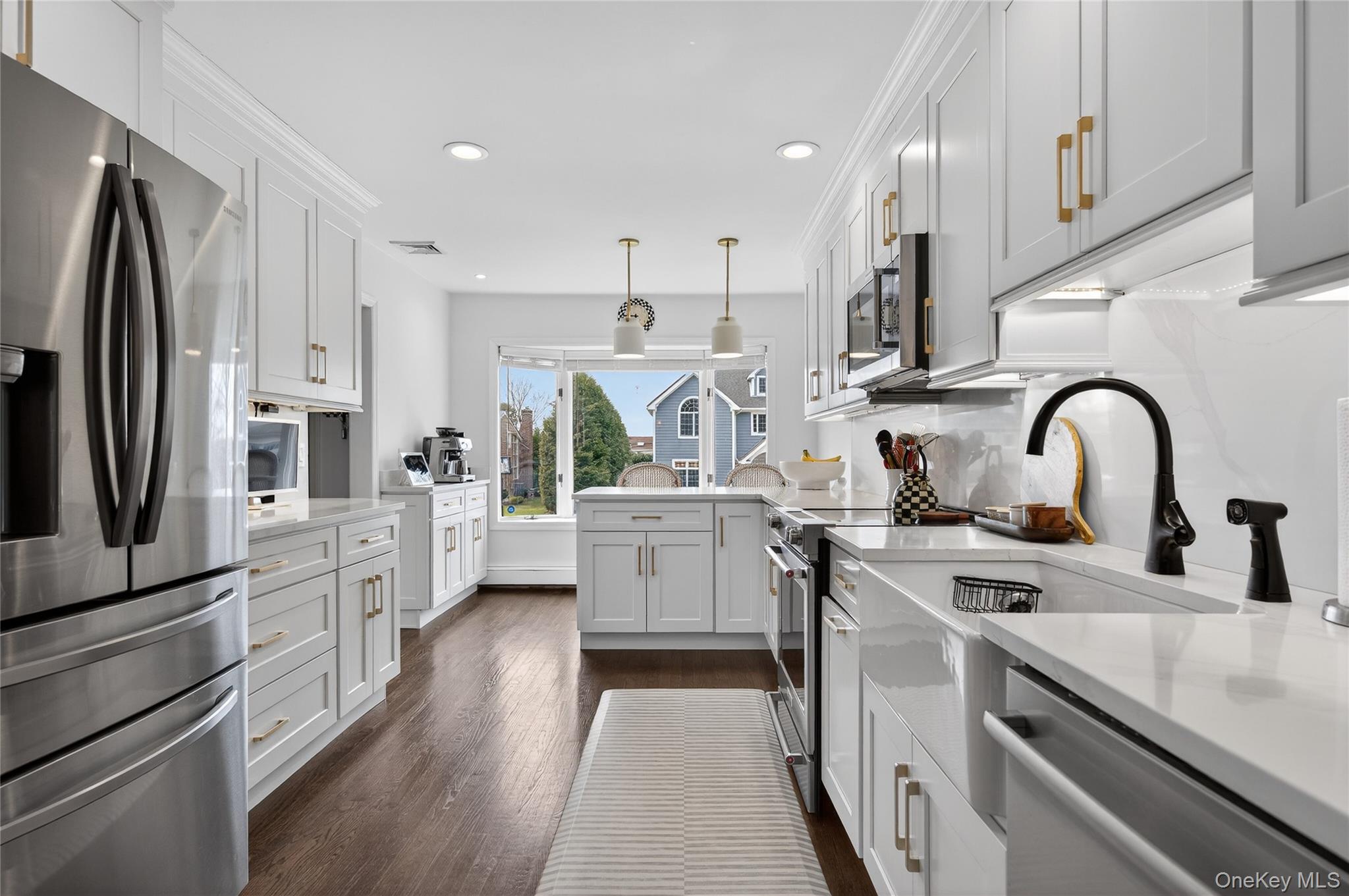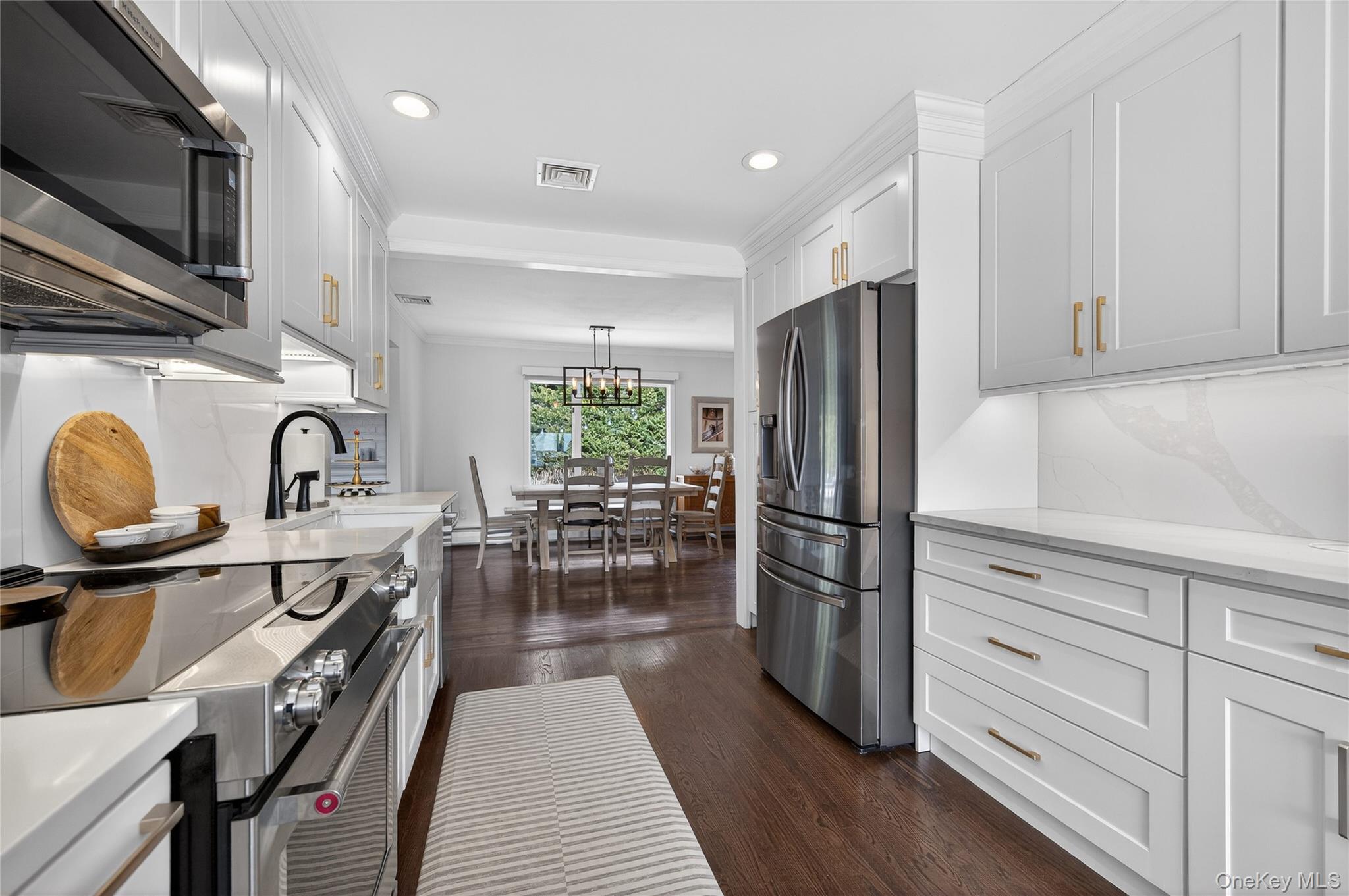 Welcome to this beautifully renovated ranch in the heart of East Norwich located within the desirable Forest Estates Pool Community. From the moment you arrive this home impresses with its magnificent curb appeal. The front of the residence features stunning stonework and customized pavers that guide you to the inviting entryway, while newer vinyl siding enhances the sides and rear of the home. A renovated two-car garage includes brand new garage doors and durable epoxy flooring. Inside the home has been freshly painted and showcases newly finished flooring along with beautiful wood floors throughout. The all new European-style kitchen is a standout, featuring stainless steel appliances, sleek white quartz countertops, and modern finishes perfect for everyday living and entertaining. The home offers a fantastic layout with an oversized L-shaped living room open to dining area ideal for gatherings, as well as a warm and inviting family room with a fireplace, new picture windows, and sliding doors that lead to the private backyard. Mechanical blinds add convenience and comfort in select areas. The spacious primary bedroom features a full ensuite bath and customized closets. Two additional generously sized bedrooms and built-in-closets throughout the home provide excellent storage. In total, the residence offers three bedrooms and three full baths. The finished basement expands the living space with a home office, large recreation area, full bathroom, cedar closets, and abundant storage. A spacious laundry area includes a Samsung washer and dryer and provides direct access to the renovated two-car garage. Additional features include central air conditioning, three-zone heating; 1st floor is baseboard and radiators, basement is radiators. The property sits on a 101x105 lot and offers a beautifully private backyard, fully fenced, a seven-zone sprinkler system and perfect for relaxing and entertaining. With low taxes and exquisite condition throughout, this move-in ready home is truly a must see. Pool dues $450 per year.