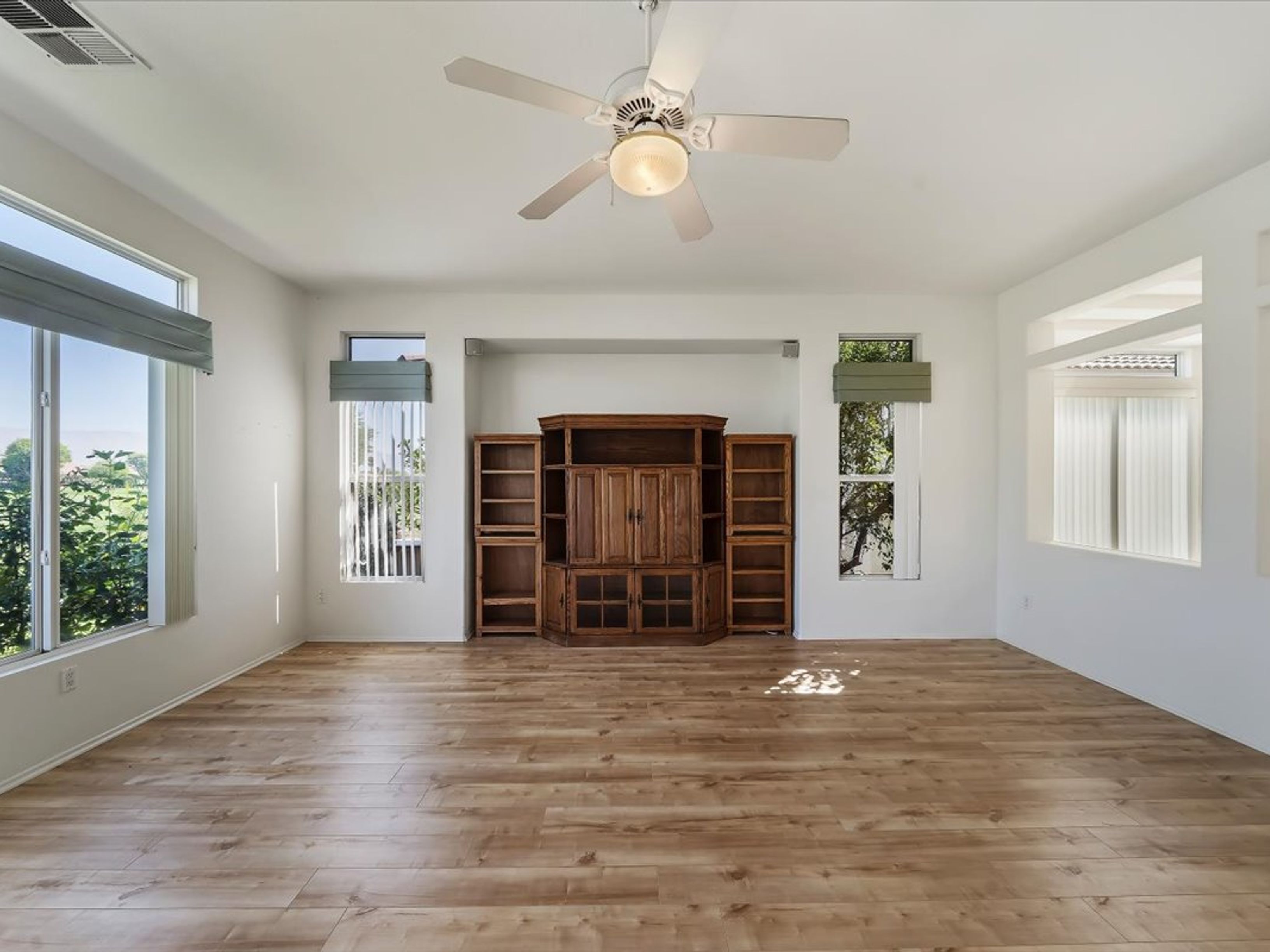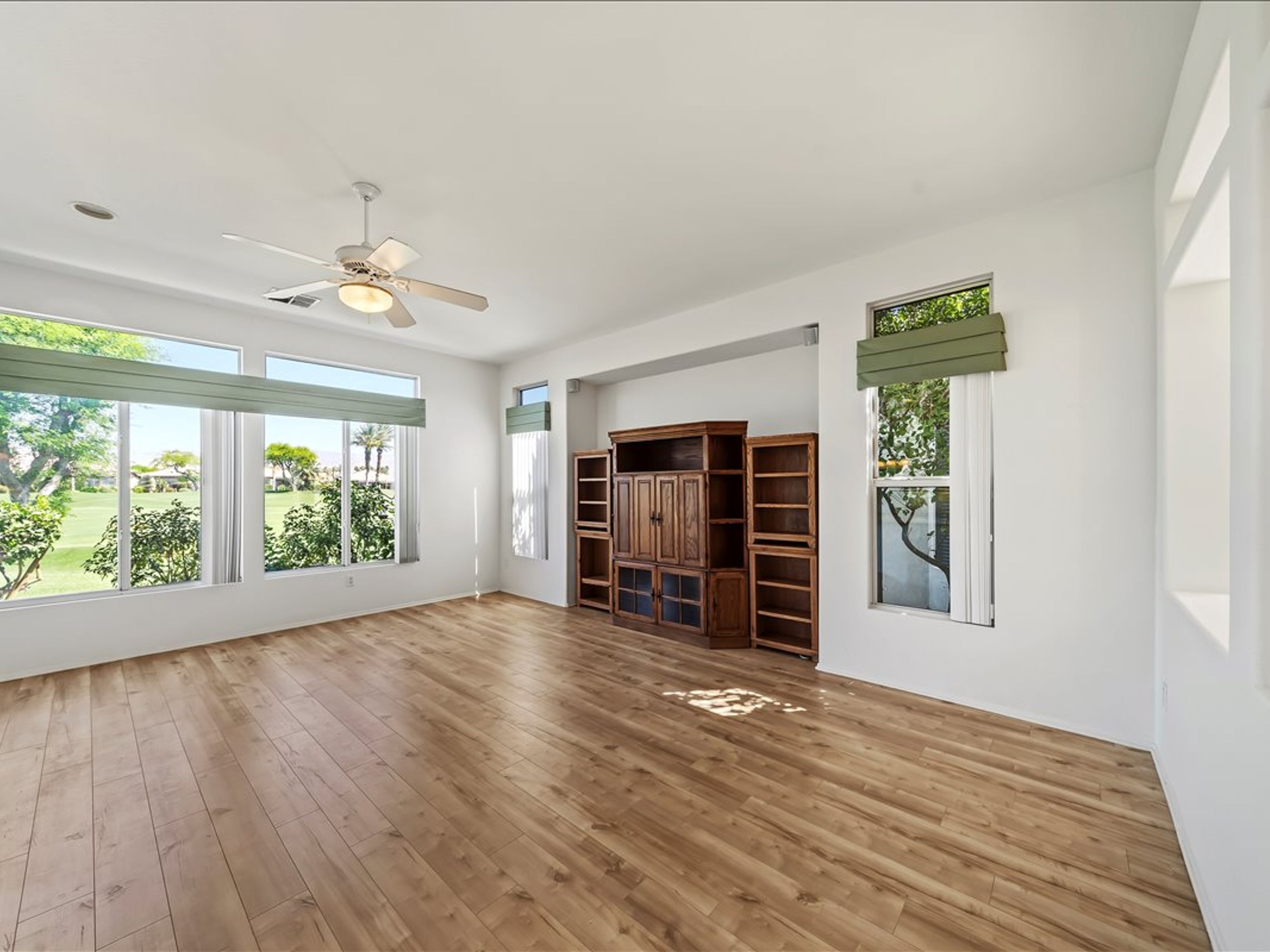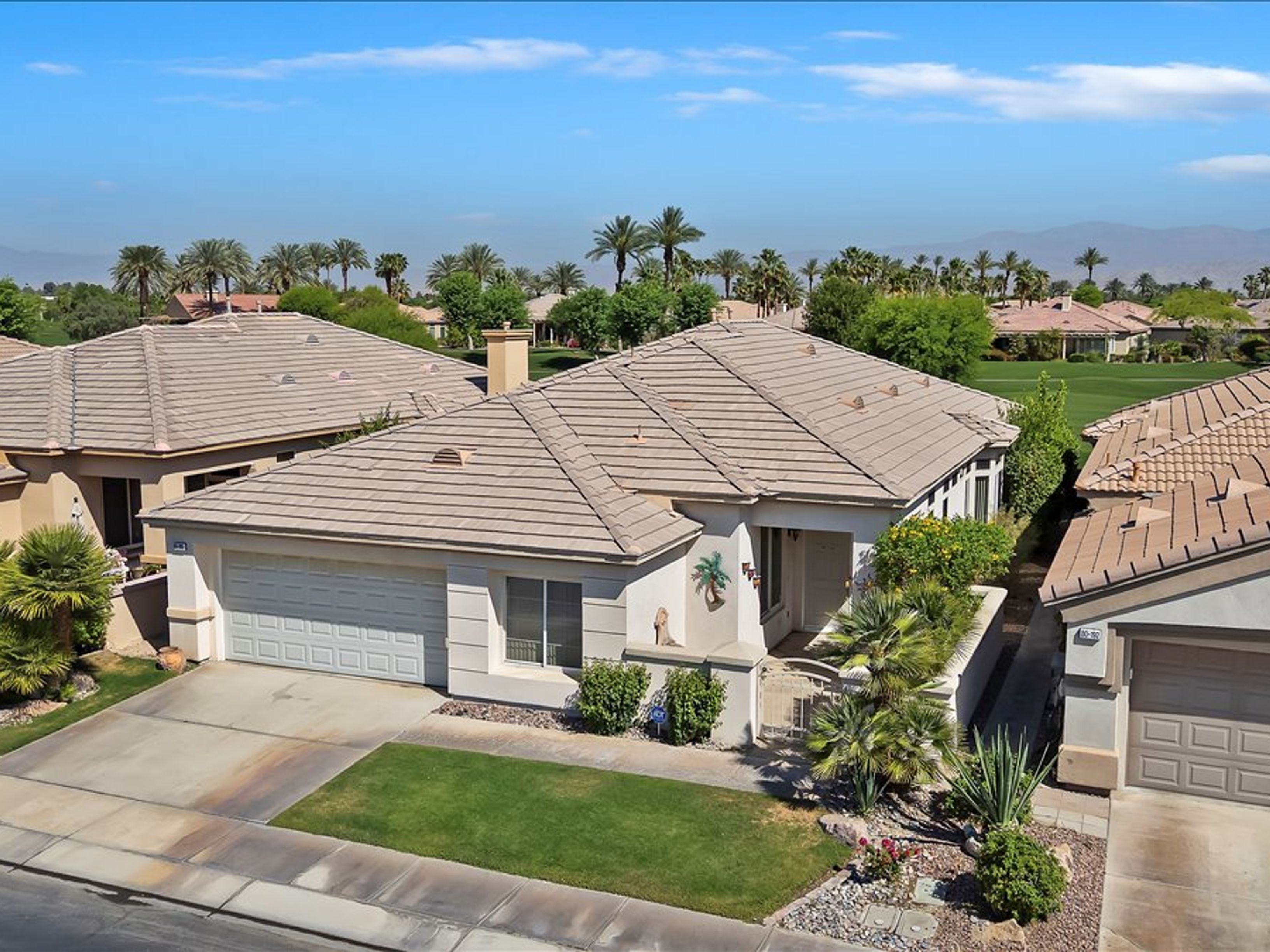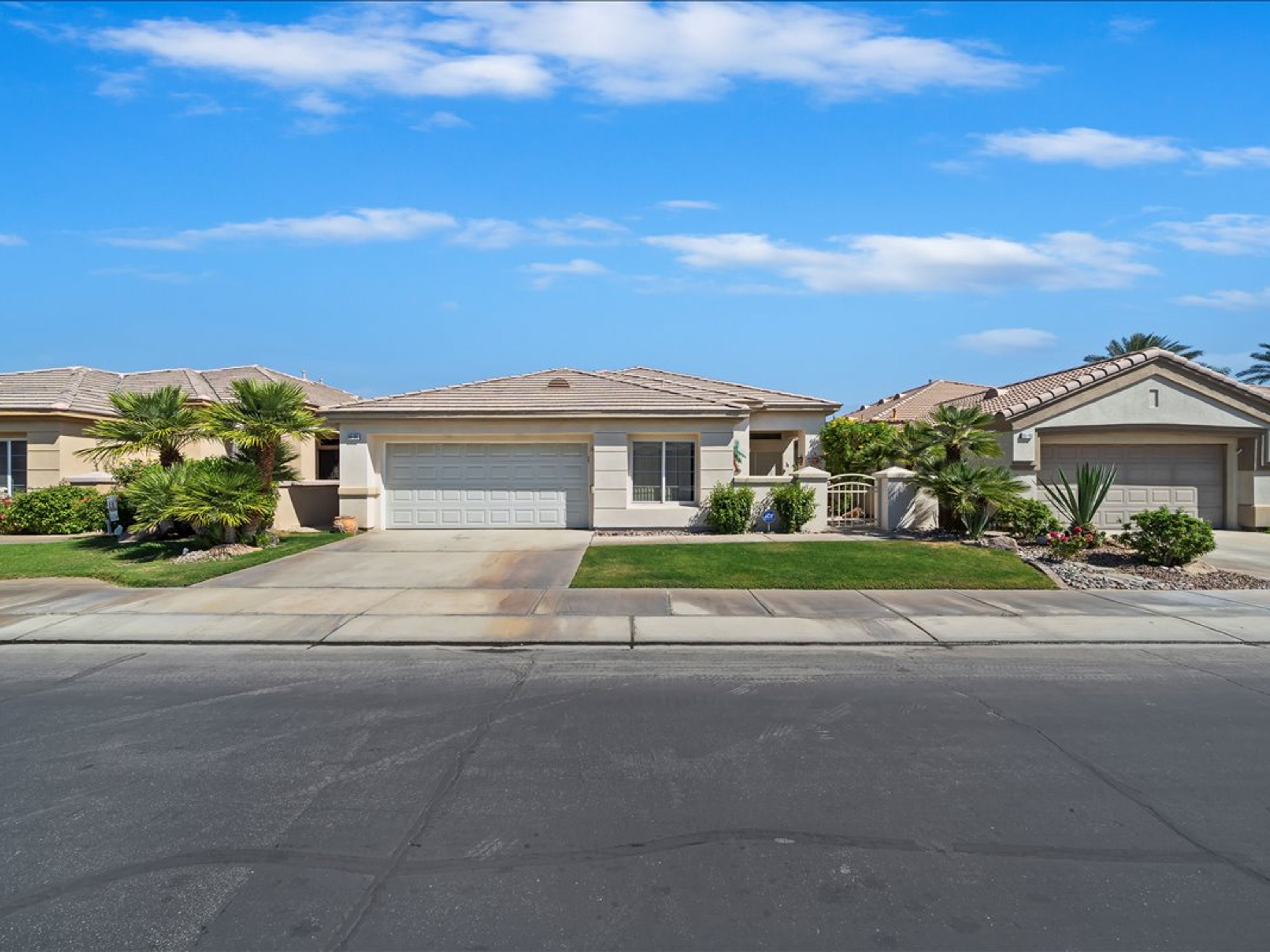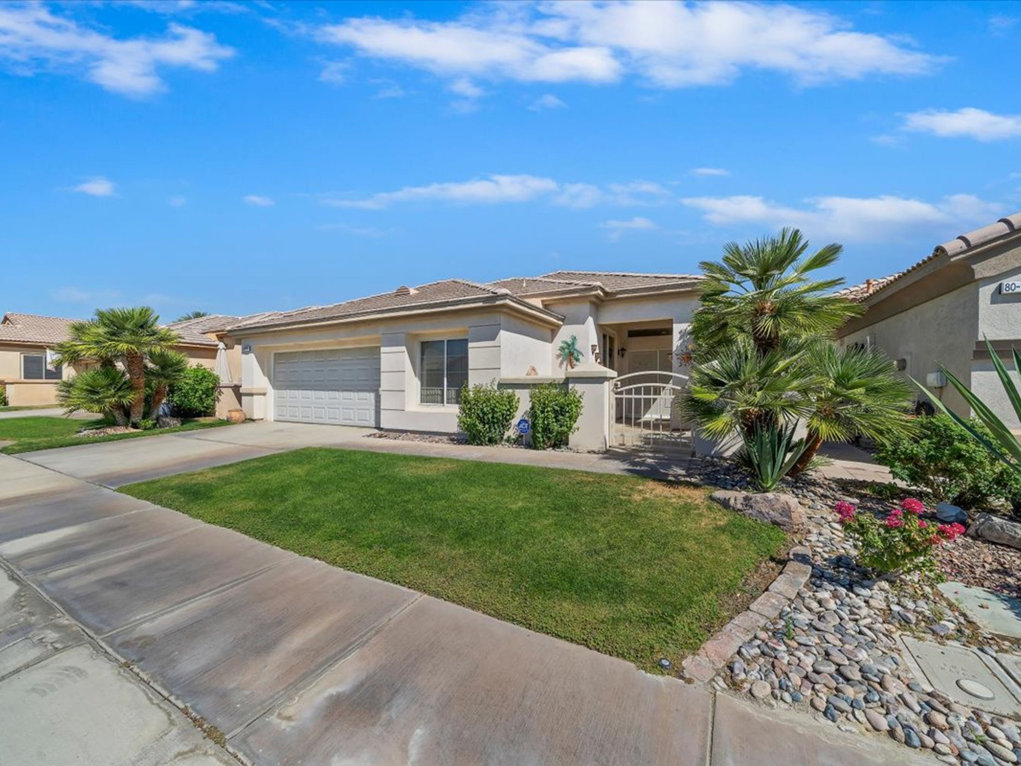 Introducing 80190 Royal Birkdale Dr. Positioned along the 17th fairway in Heritage Palms Country Club, this home offers beautiful golf course, lake, and mountainviews in one of the desert’s most active 55+ communities. Located within the highly sought after Heritage Palms, a popular active adult community, this home alsoenjoys a prime location with close proximity to the clubhouse and amenities. This popular and well designed Southampton floor plan features 2 bedrooms, 2bathrooms, and a versatile den, offering a layout that is both functional and inviting. The den includes an Original Murphy bed, making it an ideal space for a thirdguest bedroom, office, or hobby room. The home has been well maintained over the years and is move-in ready, while offering a great opportunity for a buyer toupdate and personalize to their own style. Vaulted/coffered ceilings and large windows bring in natural light, creating a bright and open feel throughout. Thespacious layout includes both formal and casual living areas, providing flexibility for everyday living and entertaining. The kitchen opens to the main living spaces,while the rear patio captures sweeping fairway views with a peaceful setting enhanced by the golf cart path being located on the opposite side of the fairway foradded privacy. A private courtyard entry adds charm and curb appeal, and the garage offers additional utility with built in storage and space for a golf cart, which isincluded in the sale. The primary suite features generous space, walk in closet, double sink vanity, shower and bathtub. Residents of Heritage Palms enjoy achampionship golf course, clubhouse, fitness center, indoor and outdoor pools, tennis, pickleball, and a vibrant social scene all conveniently located nearby. This isan exceptional opportunity to create your ideal desert retreat.