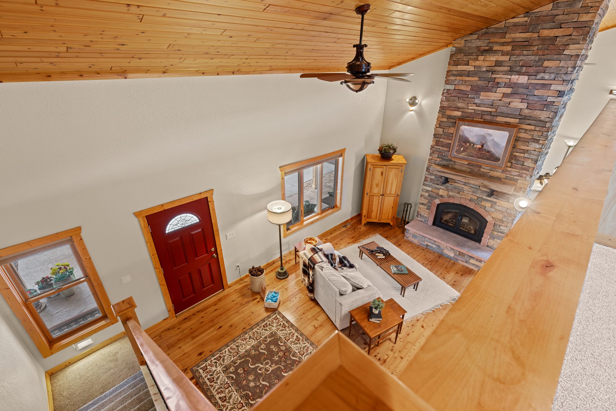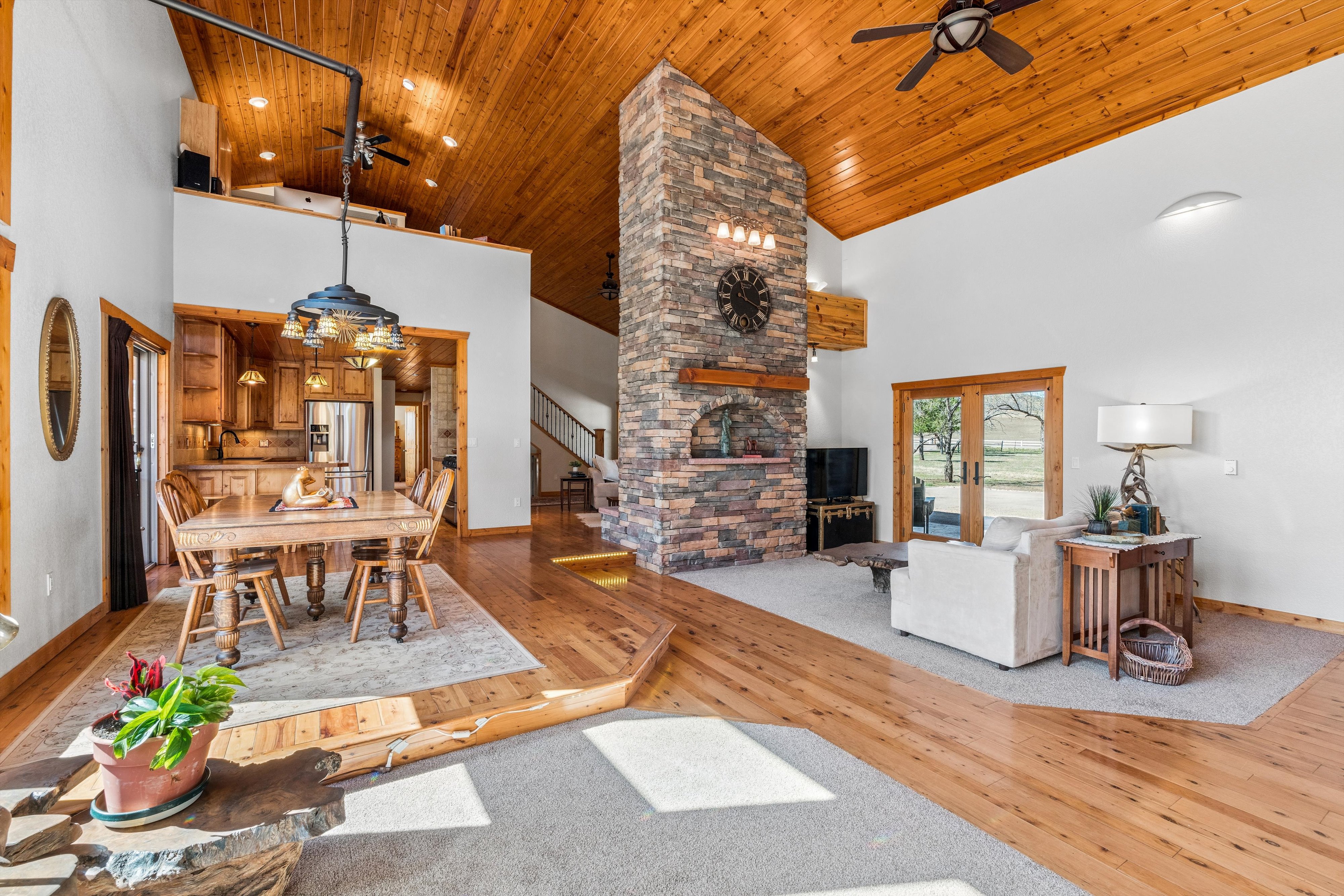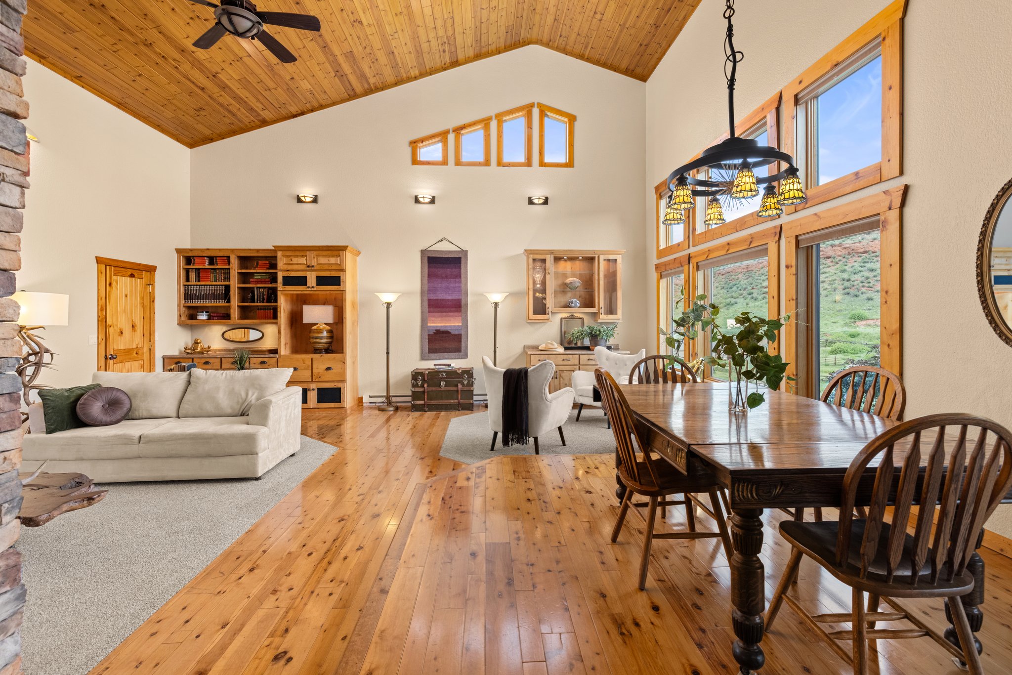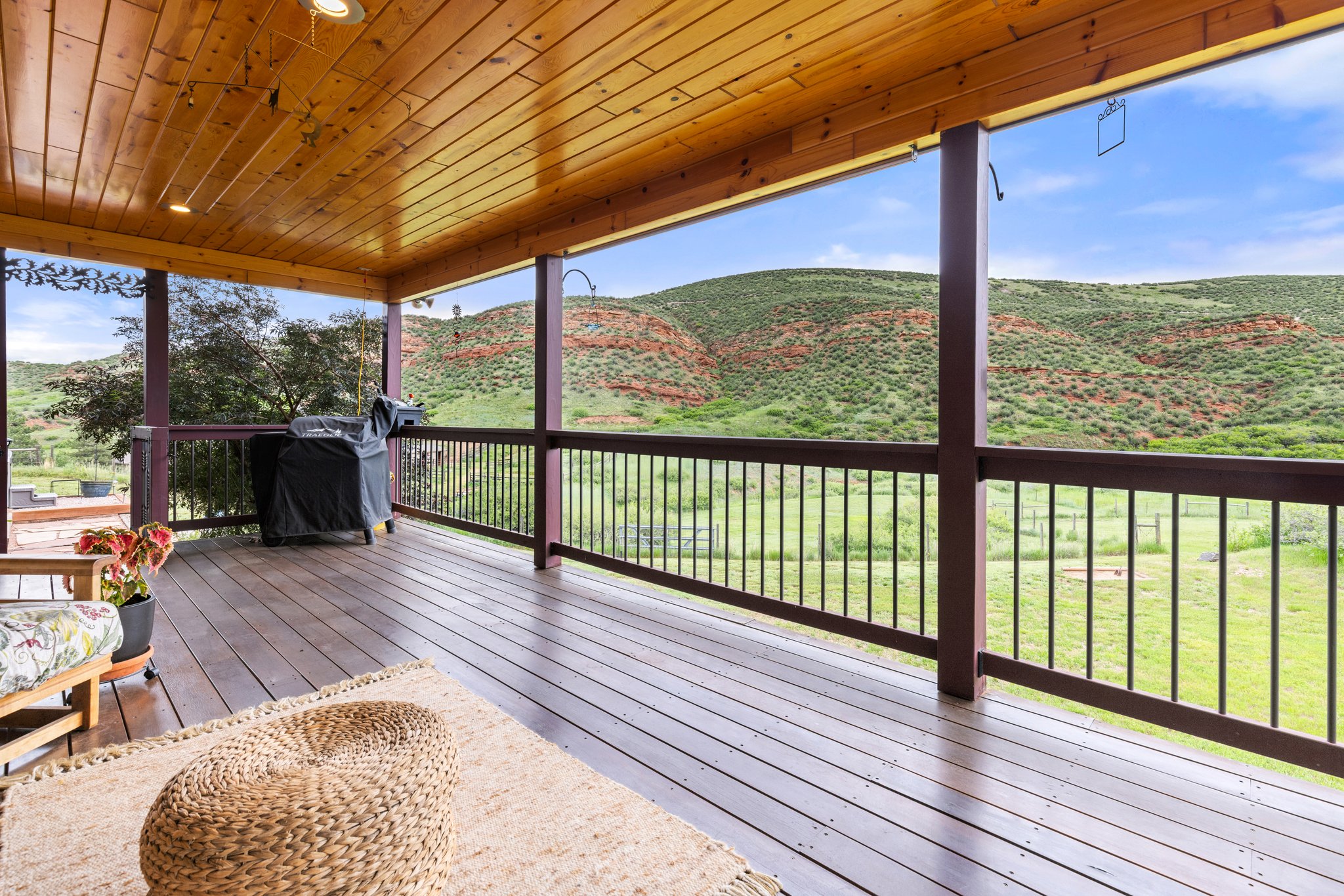 Welcome to your private Colorado retreat, perfectly positioned among the breathtaking Red Bluffs. Set on 20 expansive acres just minutes from the sparkling waters of Carter Lake, this custom-built four-bedroom, three-bath home offers a rare blend of luxury, privacy, and versatility. Step inside to an open-concept layout designed for both everyday living and effortless entertaining. Soaring ceilings and expansive picture windows flood the home with natural light, showcasing rich wood finishes, stunning views, and a hand-crafted double-sided stone fireplace that anchors the main living spaces. The gourmet kitchen is a true centerpiece, featuring stainless steel appliances, beautiful cabinetry, and ample space to gather. Whether hosting or enjoying a quiet evening at home, the seamless flow between kitchen, dining, and living areas creates a warm and inviting atmosphere. Designed with flexibility in mind, the walk-out basement offers a fully equipped private apartment with its own entrance-ideal for multigenerational living, guests, or income potential. Outdoor living shines with an oversized covered patio, perfect for entertaining or simply soaking in the peaceful surroundings and sweeping landscape. The oversized three-car garage provides plenty of room for vehicles, toys, and gear, plus an unfinished studio space above-ready for your vision. With zoning that allows for a secondary residence, this property presents endless opportunities-build a guest home, create a workshop or barn, or expand your investment potential. Whether you're searching for a serene escape, room to grow, or a home that offers unmatched flexibility, this exceptional property delivers it all-just a short drive to Estes Park and Rocky Mountain National Park.
