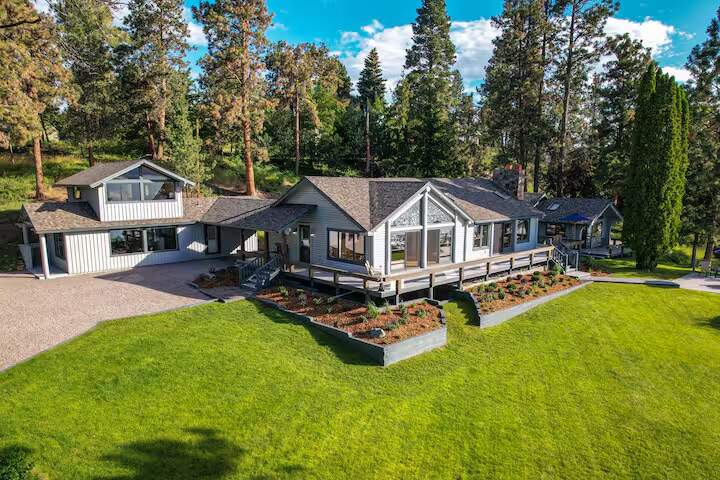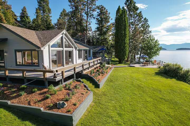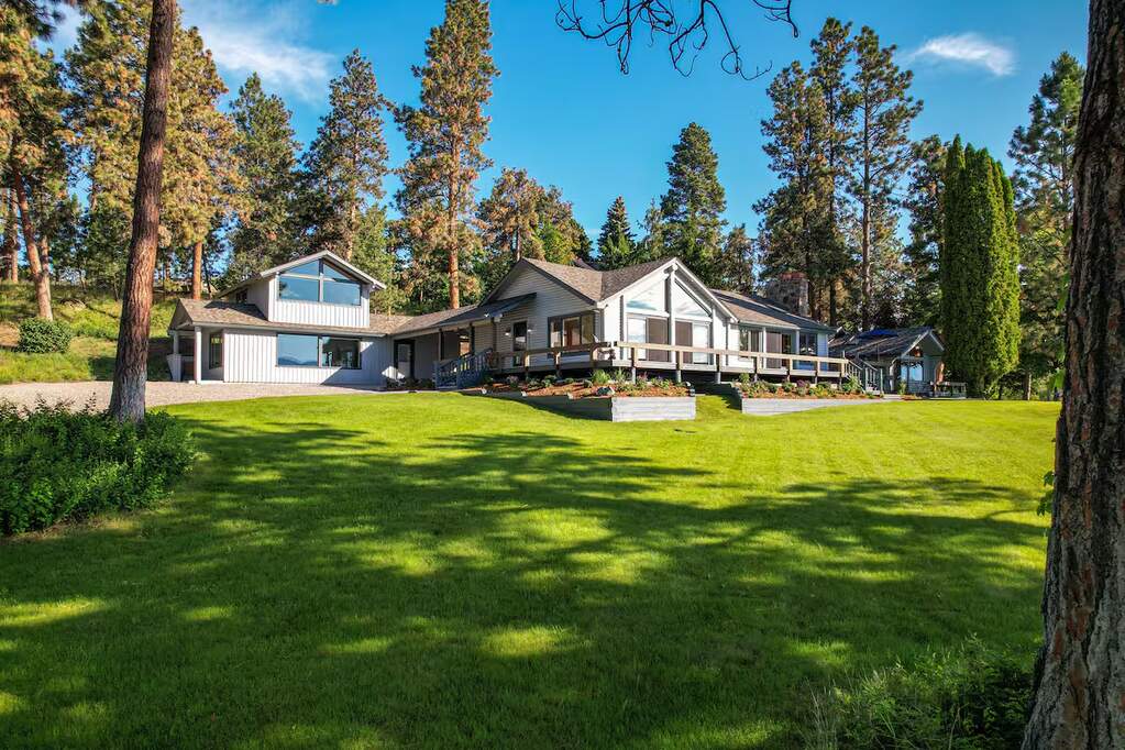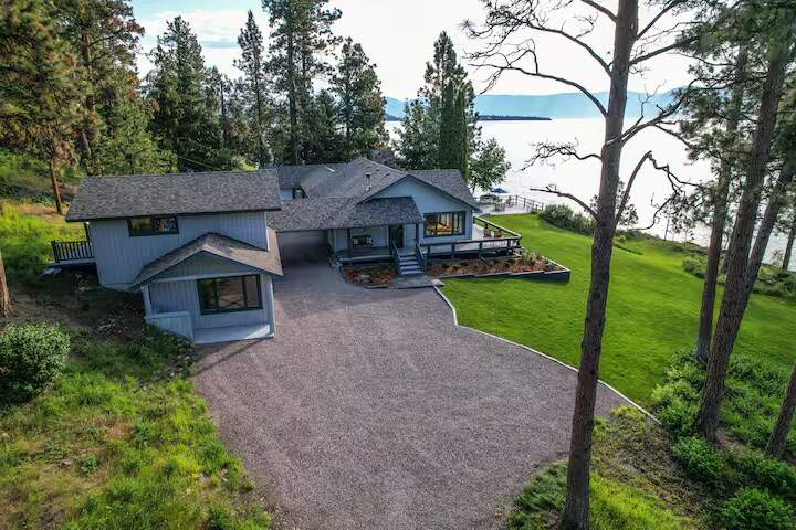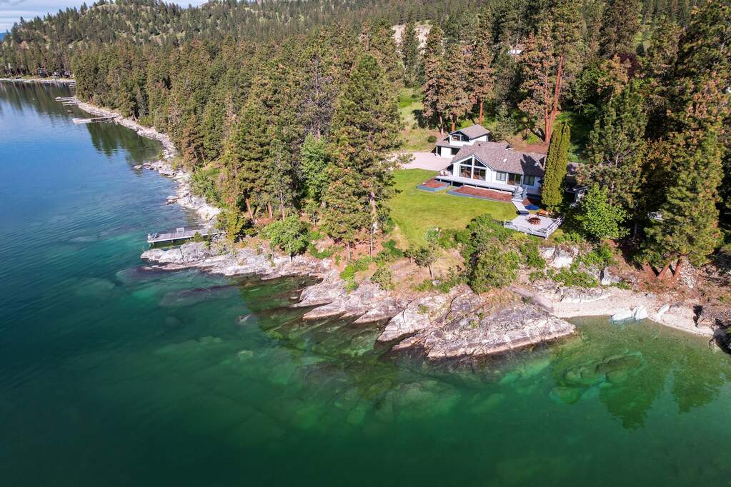 This rare Flathead Lake property in Northwest Montana, offers secluded privacy on an expansive 5.4 acres, with 700 feet of accessible lakefront with breathtaking views of Wild Horse Island and the Mission and Swan Mountains. The historic, original main cabin has been updated and expanded while maintaining the lake cabin charm. It is complemented by a detached, private guest cottage and a 2 level guest house, nestled in a natural pine forest, all just steps from the home. The large lot provides plenty of space to create a secluded retreat or develop a premier waterfront estate. Whether you choose to enjoy the existing setup or build your dream home, this unique property offers endless possibilities in a stunning lakeside setting. Don't miss the opportunity to own a slice of Montana paradise!