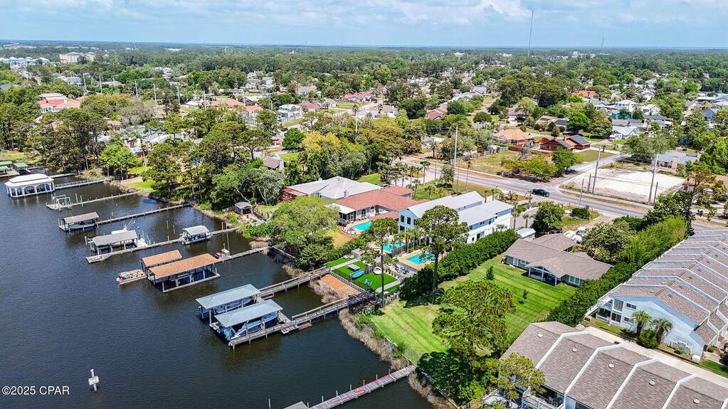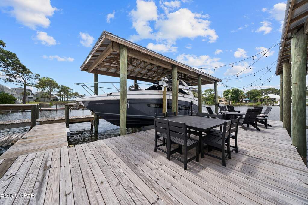 Experience the ultimate boater's lifestyle on Grand Lagoon in Panama City Beach, where this beautifully furnished 4-bedroom, 3.5-bath waterfront home offers deep water access and a private dock with lift just minutes from the Gulf of Mexico and Shell Island. Designed for those who love life on the water, the property features a 14' x 40' covered boathouse and a 16,000-lb boat lift, making it effortless to spend the day cruising, fishing, or enjoying waterfront dining throughout the area. Inside, the 2,800-square-foot residence offers spacious living areas ideal for hosting family and friends. The open layout flows seamlessly to the outdoor living spaces, where spectacular lagoon views create a stunning backdrop for everyday living and entertaining. Step outside to your private backyard retreat featuring a heated saltwater pool, expansive patio, firepit area, and fully fenced yard--perfect for gatherings, sunset evenings, or relaxing after a day on the water. This newer construction home also includes lush landscaping, a two-car garage, and ample parking, offering both functionality and comfort for full-time living or a luxurious coastal getaway. Ideally located near local marinas, waterfront restaurants, shopping, and Northwest Florida Beaches International Airport (ECP), this home combines convenience with one of the most sought-after boating locations in Panama City Beach. The 2023 Regal 33XO (34', twin Yamaha 300 outboards, approx. 30 hours) may be purchased separately. Buyer to verify all measurements and information. Convenient to fine and casual dining, shopping, and just a short distance to the ECP airport. Call for more information on this impeccable waterfront home! Boat house is approx 14' wide x 40' long. Boat does not convey with property but can be purchased outside of sale. All data and dimensions to be verified by buyer.
