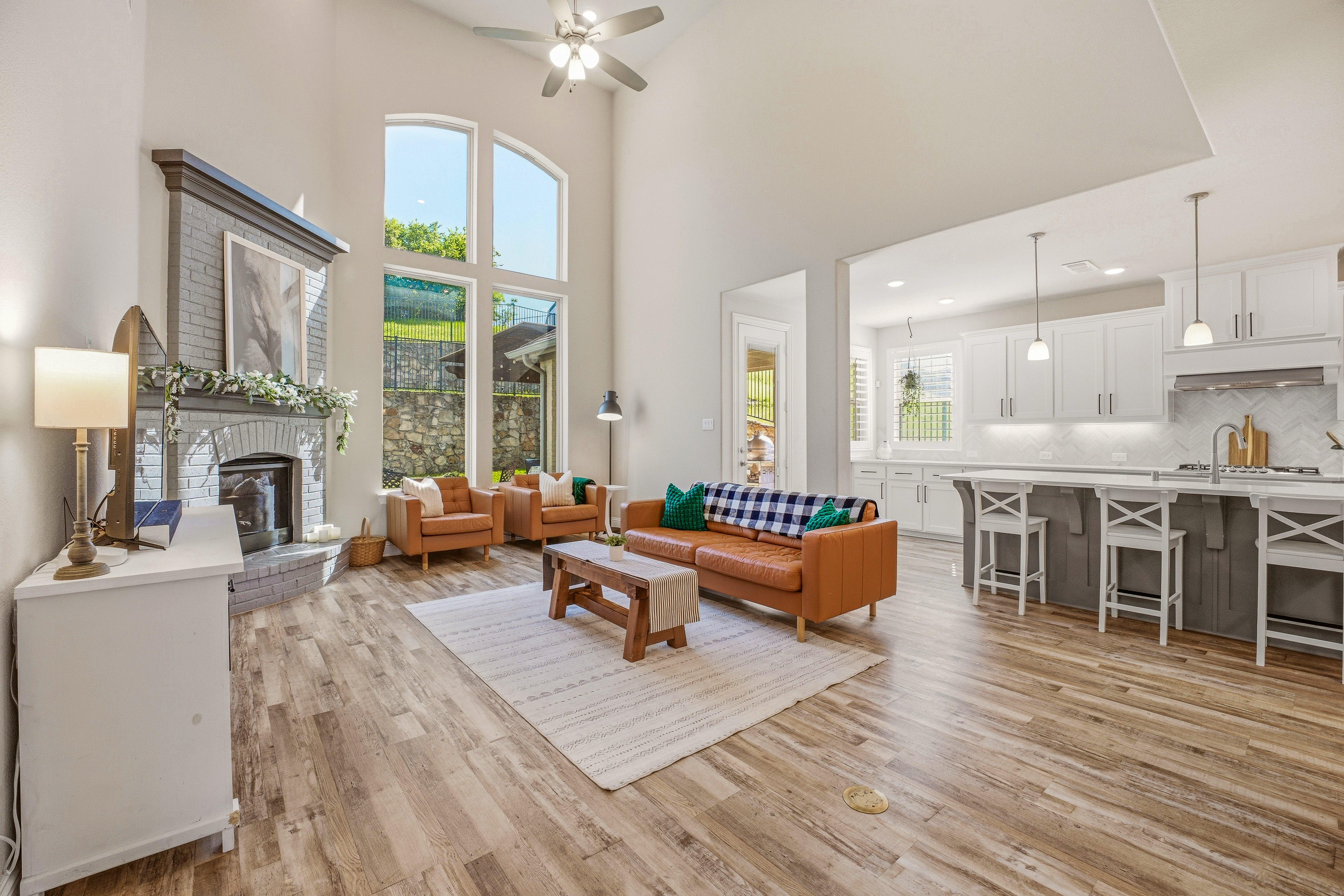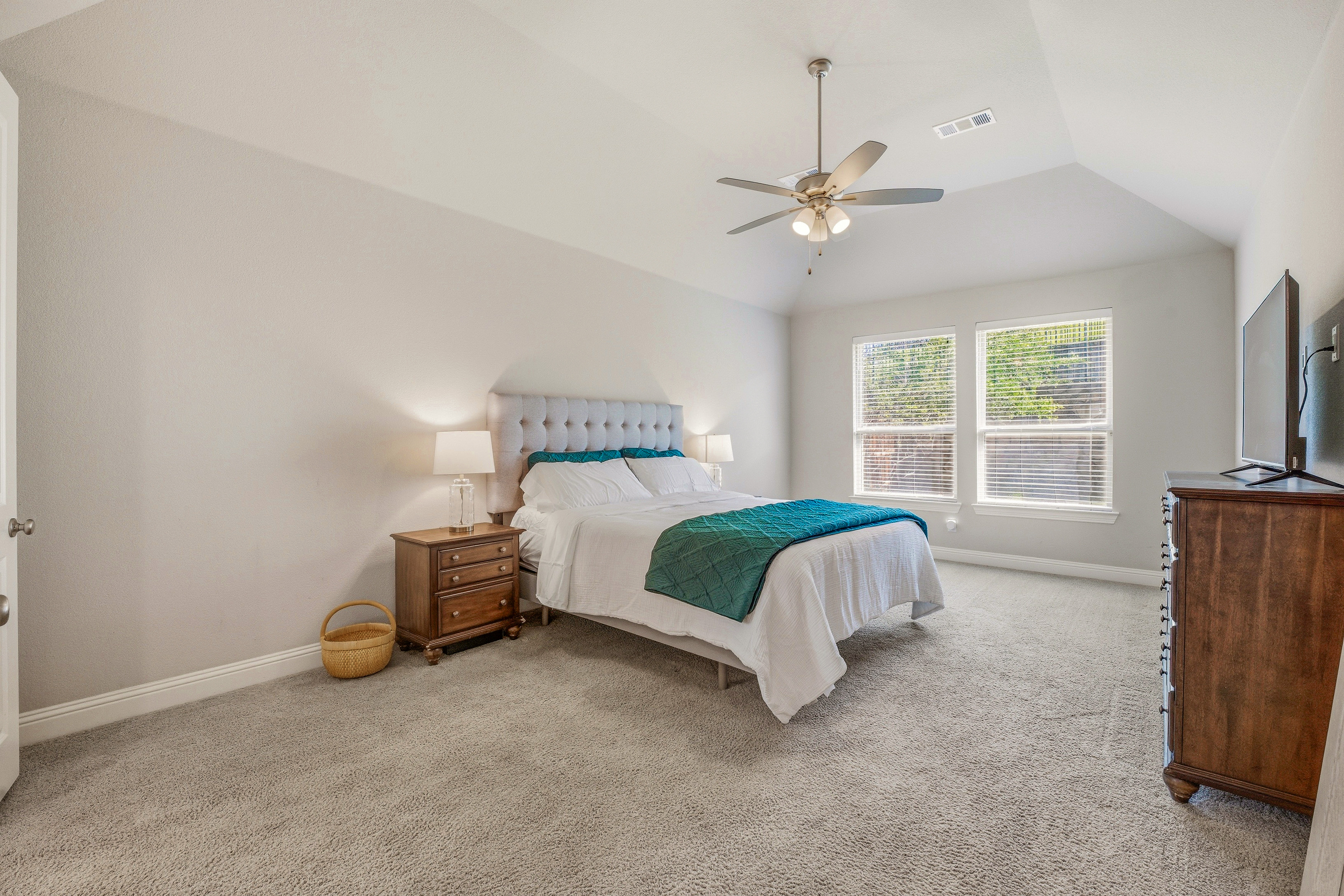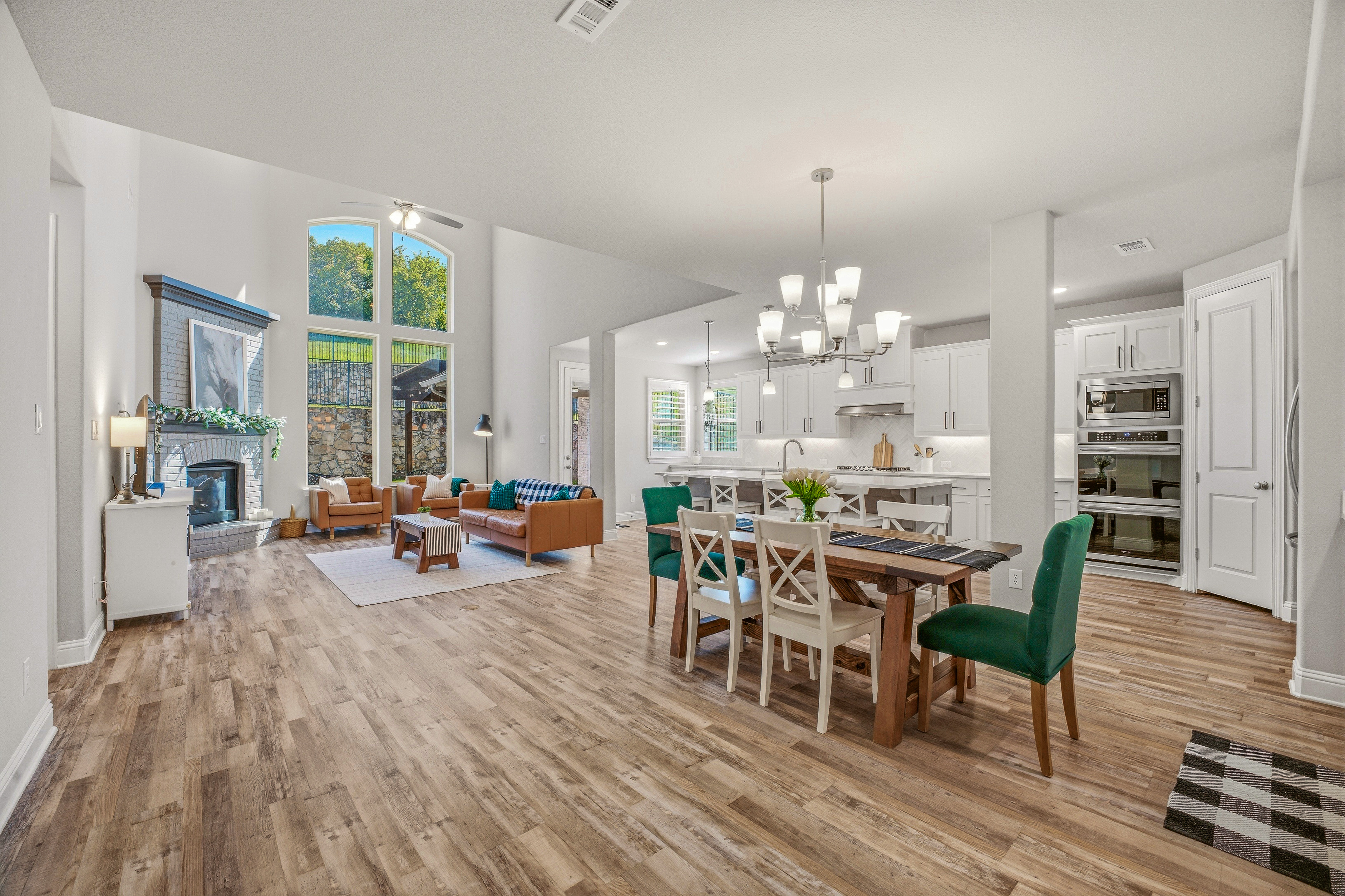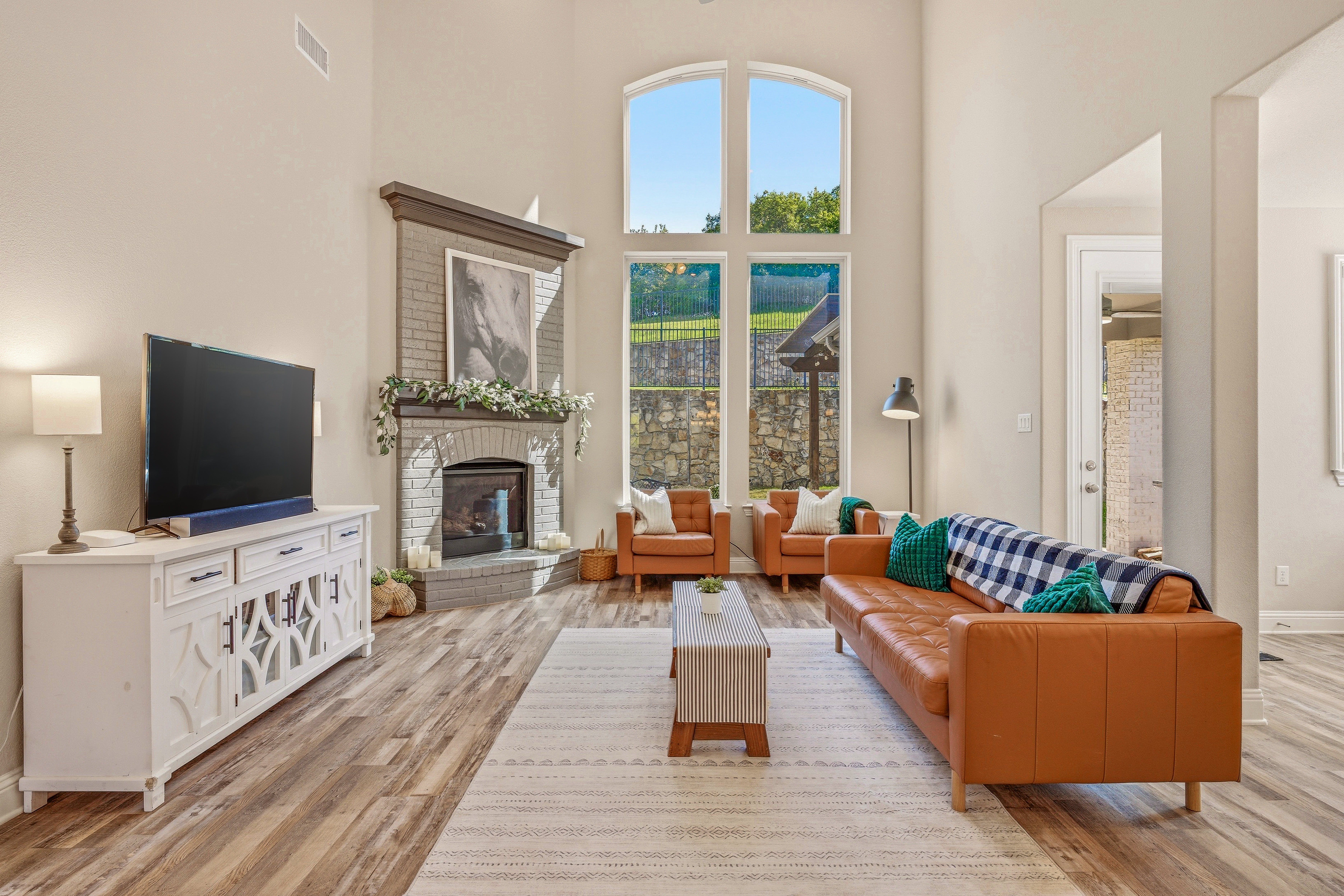 ALEDO ISD! Stunning Highland Homes build on one of the most private lots in Walsh, with no neighbors on three sides and direct access to neighborhood trails just beyond the backyard. This BETTER THAN NEW home is loaded with upgrades and features a highly sought after layout with 4 bedrooms, a game room, media room, and a versatile flex space, offering incredible functionality for today’s lifestyle. An exceptional opportunity in Walsh Ranch offering one of the most spacious 4 bedroom layouts currently available at this price point. The open concept design features soaring 20 foot ceilings, a gas fireplace, and a huge gourmet kitchen ideal for entertaining. Highlights include an oversized island, upgraded cabinetry and countertops, marble herringbone backsplash, gas cooktop, double ovens, walk in pantry, and a built in buffet with additional storage and wine rack. Plantation shutters throughout and tinted windows provide both privacy and abundant natural light. A flexible downstairs space is perfect for a home office, gym, playroom, or additional living area. The oversized primary suite features a spa like bath with soaking tub, upgraded oversized shower, and generous closet space. Step outside to an extended covered patio with pergola and ceiling fan overlooking a tiered backyard and HOA maintained side yard, creating a true lock and leave lifestyle with enhanced privacy. Additional features include fresh landscaping, stone bordered flower beds, oversized garage, and easy access to Old Weatherford Road. Walsh Ranch amenities include 2 gig internet, front yard maintenance, fitness center, pools, parks, trails, co working space, fishing ponds, and more.