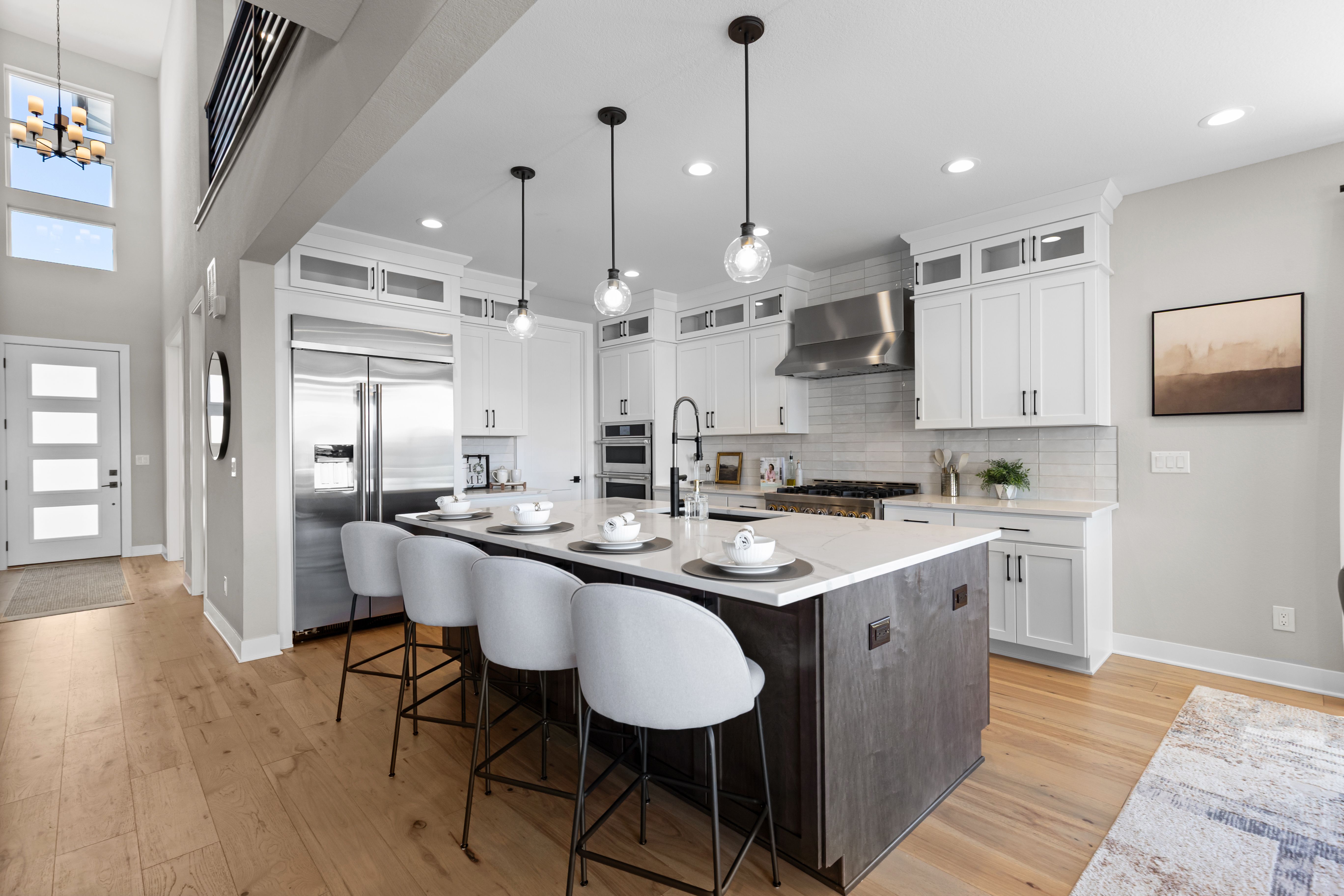 Skip the build time and step straight into 5932 Los Olivas Point standing as the crown jewel of Allison Ranch that is perfectly positioned on a corner cul-de-sac lot with a nearly 1,000 sq. ft. 5-car ‘Garage Mahal,’ offering over 5,600 square feet of Toll Brothers luxury with seamless main-level living in Douglas County. No corners cut. No upgrades skipped. From the dramatic wall of sliding glass doors to a 700+ sq. ft. covered deck made for grilling & al fresco dining, to 8-foot doors throughout, spacious yard and soaring 10-foot ceilings in the unfinished walkout basement—this is the fully loaded version everyone wishes they had built. The main level features a private office framed by front yard views and a beautifully appointed powder bath for guests. The sleek, refined kitchen features stainless steel appliances, gleaming quartz countertops, an expansive walk-in pantry & flows seamlessly into the great room, where a statement fireplace adds warmth and architectural presence while the dining area offers direct access to the deck creating the perfect setting for effortless indoor-outdoor entertaining. This home features a privately positioned primary suite entrance designed for true separation from the main living spaces and is complemented by a luxurious five-piece en-suite bath featuring a dual “car-wash” style shower that feels straight out of a high-end spa—alongside a massive walk-in closet designed to impress. The wide, upgraded staircase takes you to the cozy loft that is the perfect retreat for movie nights, reading, or quiet moments. The private guest suite features its own ensuite bath, along with two additional bedrooms connected by a Jack-and-Jill bathroom—ideal for both comfort and convenience. From resort-style amenities to top-rated Douglas County schools, this 2024 new build is more than a home—it’s a lifestyle you’ll love coming home to.
