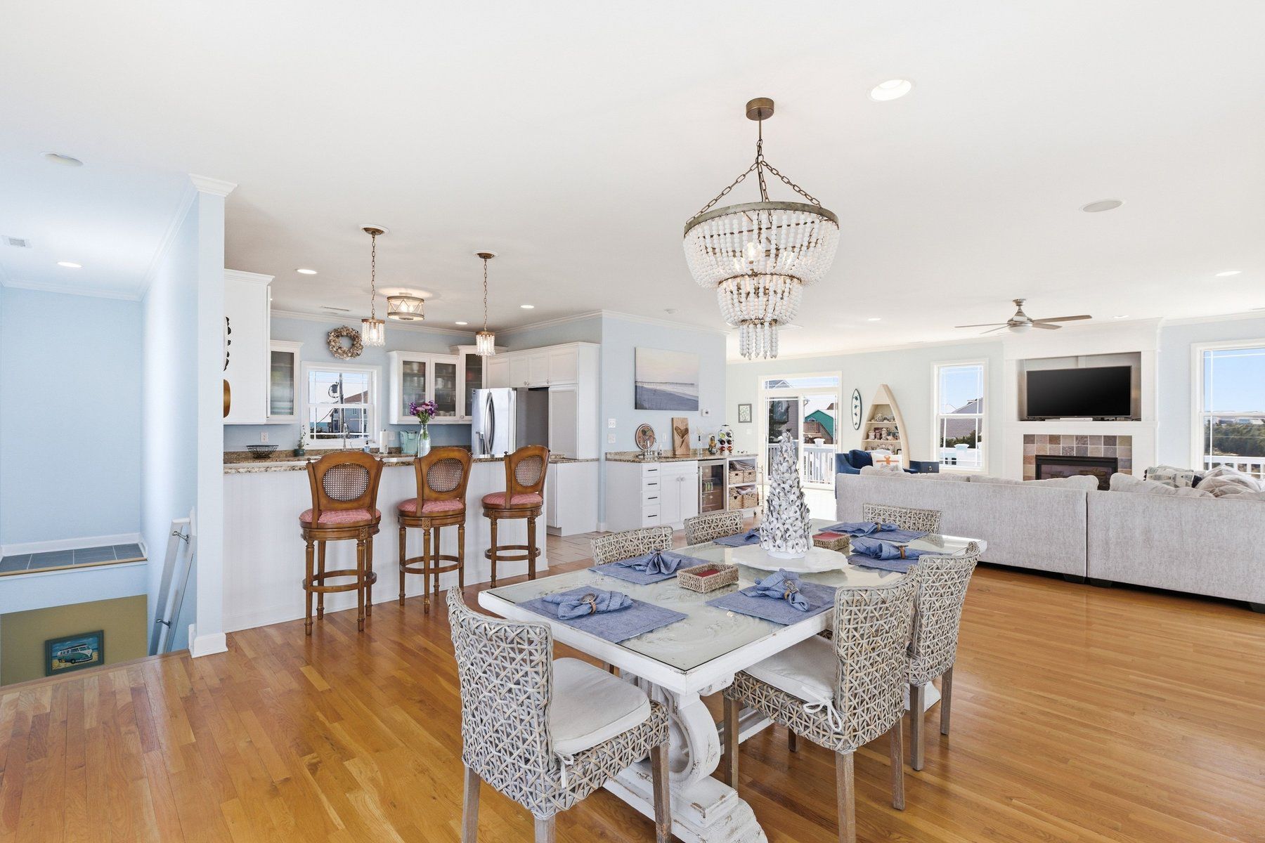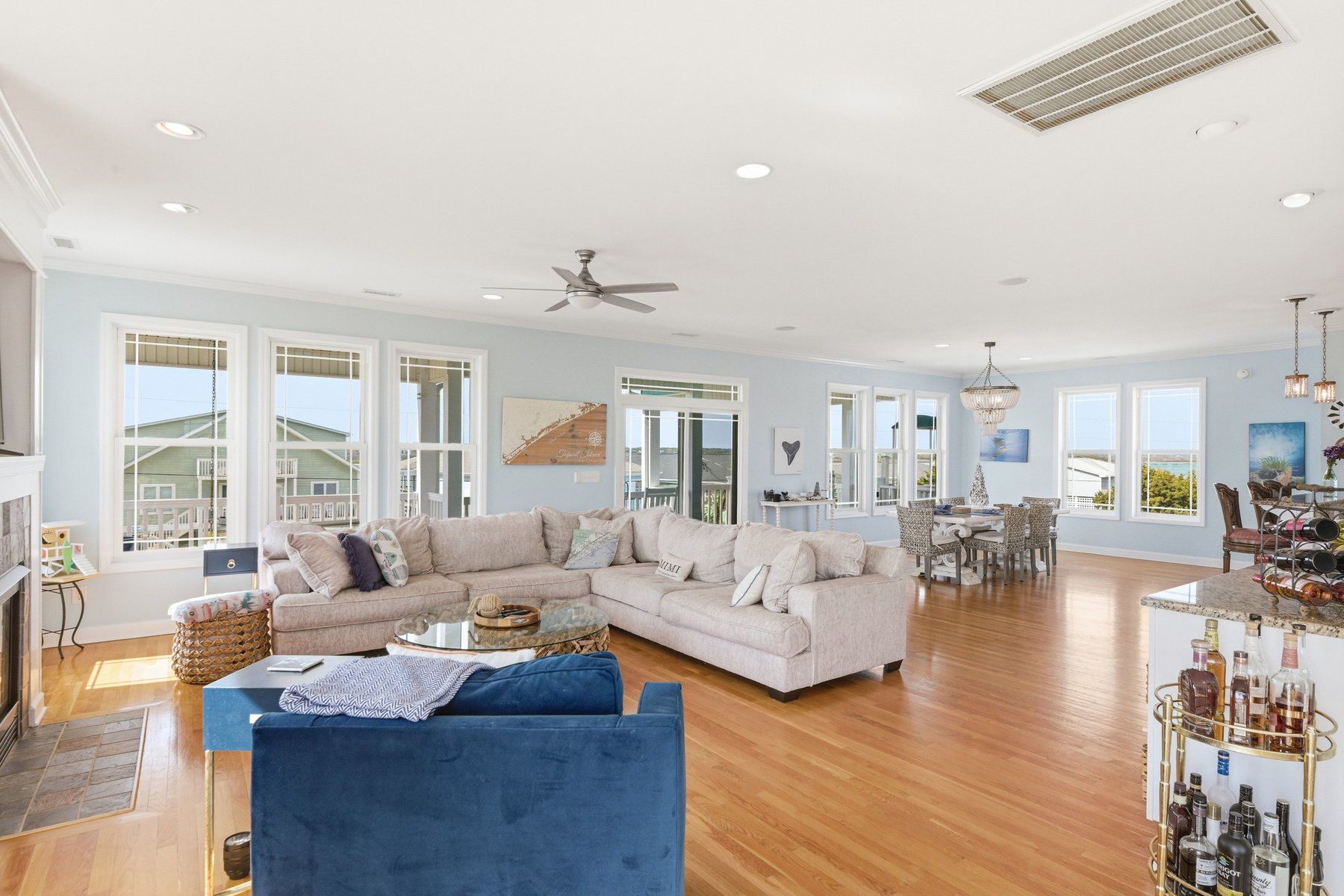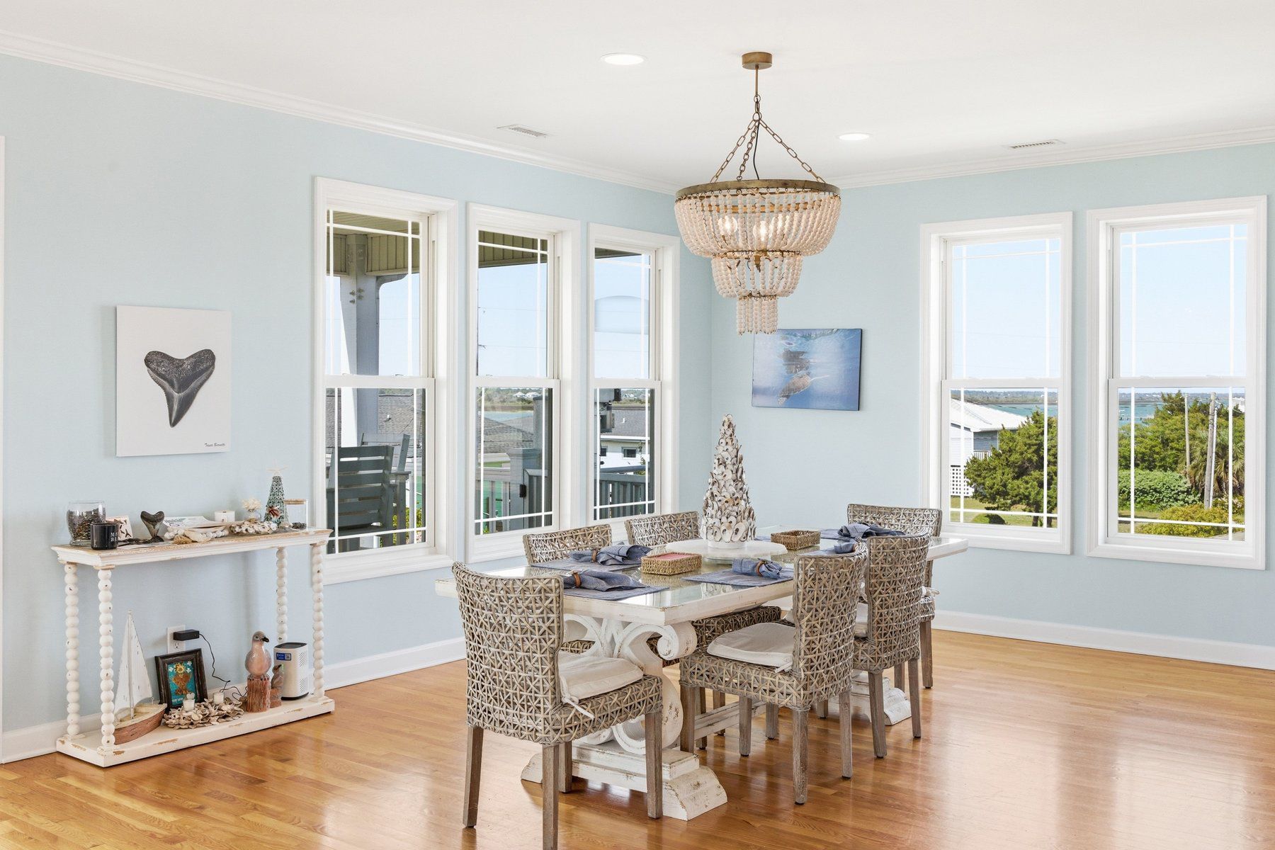 Discover coastal serenity at 1417 Carolina Blvd, a beautifully upgraded 3-bedroom, 3-bath retreat on a peaceful, quiet street in desirable Topsail Beach. Breathtaking sound and water views captivate from every angle, perfectly complementing the light-filled open floor plan that seamlessly blends living, dining, and kitchen spaces for effortless entertaining. Potential for additional sleeping or office space on top living floor with one wall internal addition. Expansive covered porches and decks invite year-round outdoor living, ideal for morning coffee overlooking the water or evening gatherings under the stars. Meticulous upgrades throughout--including modern finishes, irrigation system, outdoor shower, and premium touches--elevate this home to turnkey luxury, all just moments from beach and sound access and a short bike or golf cart ride to the charming Topsail village for shopping, entertainment and dining. New water heater, beverage frig, freshly painted, new washer/dryer and 2024 roof make this relatively maintenance free in the near term. With its ample parking, cargo lift, ground floor workshop and conditioned storage areas plus the prime location, this property offers the ultimate blend of tranquility and convenience--perfect for a personal coastal haven or savvy investment with strong rental appeal.