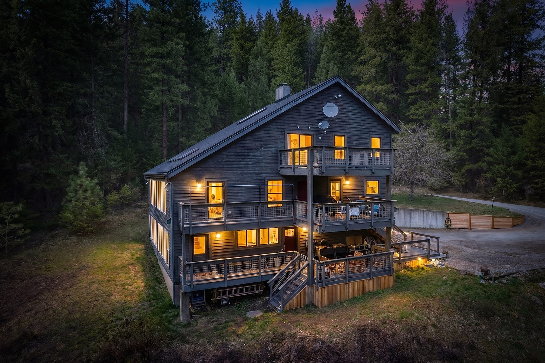 Nestled on 9.47 private, wooded acres in Cougar Estatesjust 10 minutes from downtown Coeur dAlene Cougar House blends western charm with thoughtful modern upgrades. Designed with a southwest orientation for abundant natural light, the home features an indoor greenhouse, inviting sunroom, updated kitchen and bath, warm wood floors, skylights, and expansive Andersen windows. Recent improvements include a new roof, heat pump, and A/C, while three Trex decks create seamless indoor-outdoor living. The tri-level layout offers character throughout with cozy nooks, built-ins, and flexible living spaces. Outside, the property is ideal for self-sufficient living with a large deer-fenced garden, mature fruit trees and grapevines, chicken coop, multiple sheds, a 20kW diesel generator, and dedicated fuel storage. Water is supported by both a community system and private well, plus two cisterns for home and fire use. A subterranean cool room adds even more versatility. Rare N.Idaho retreat offering.