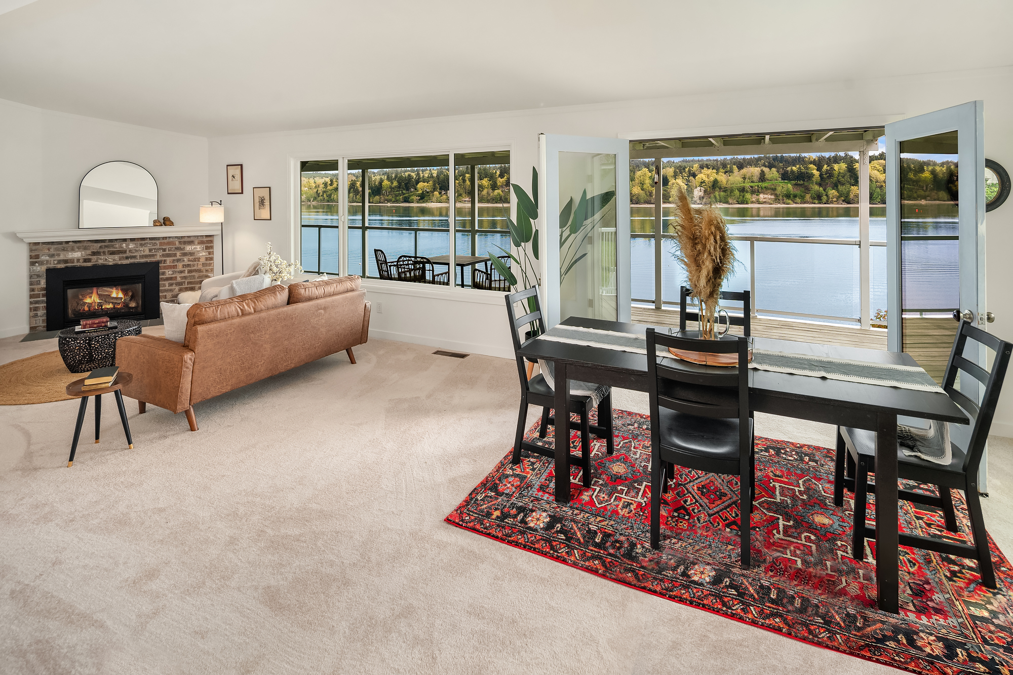 Coveted Burton Loop waterfront on Vashon Island, never before on market! Original homestead featuring two homes (2145sf & 730sf), two garages, and a large shop—rare flexibility for multi-gen living, studio use, or potential for income-production. Southeast-facing orientation offers peaceful mornings filled with marine life and birdsong. Tucked away in the protected harbor, boaters and water enthusiasts can enjoy an exceptionally rare, grandfathered-in dock plus permitted buoy coupled to 130ft of waterfront with rock bulkhead. Expansive wrap-around decks and outdoor firepit invite year-round enjoyment. Recent updates include new roofs, interior paint, carpet, gas furnace, and water heater. Main house primary bedroom offers grand windows giving full morning light and a partially finished basement is ready for your final vision of expansion. Minutes to Harbor Mercantile, Burton Coffee Stand, and Quartermaster Marina. Truly a unique opportunity to own legacy waterfront with unmatched flexibility, function, and enduring appeal.