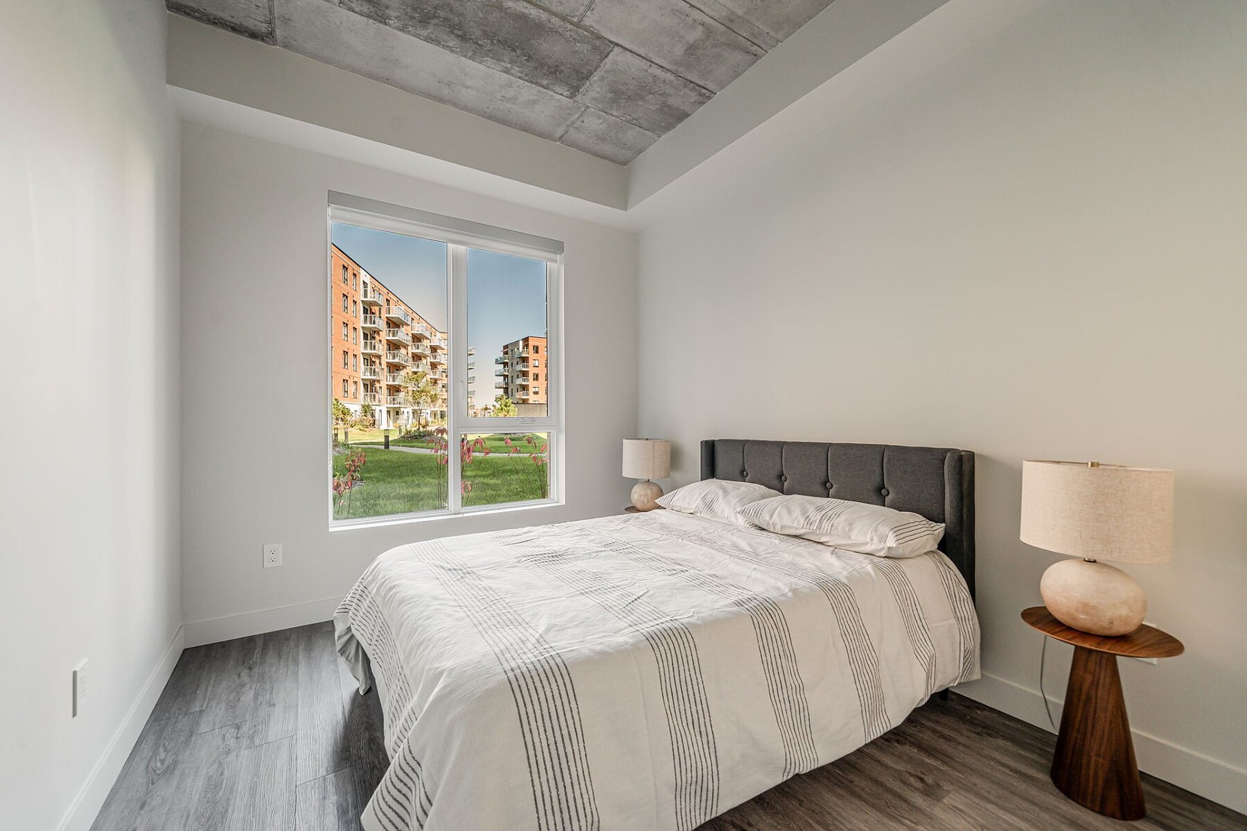 PROMOTION: 1 to 2 additional months of occupancy -- subject to conditions -- New apartment for rent in Ville Saint-Laurent. Offering 2 bedrooms and 1 bathroom, this bright unit stands out with its space-optimized kitchen, high ceilings, and practical layout. The Noria project offers an all-inclusive package with appliances, services, and window coverings. Indoor parking ($), EV charging stations, bike storage, gym, common areas, and a landscaped courtyard with a pool. Close to Du Collège metro station, with direct bus service to downtown and nearby essential services. Other units available (2-bedroom and 3-bedroom).