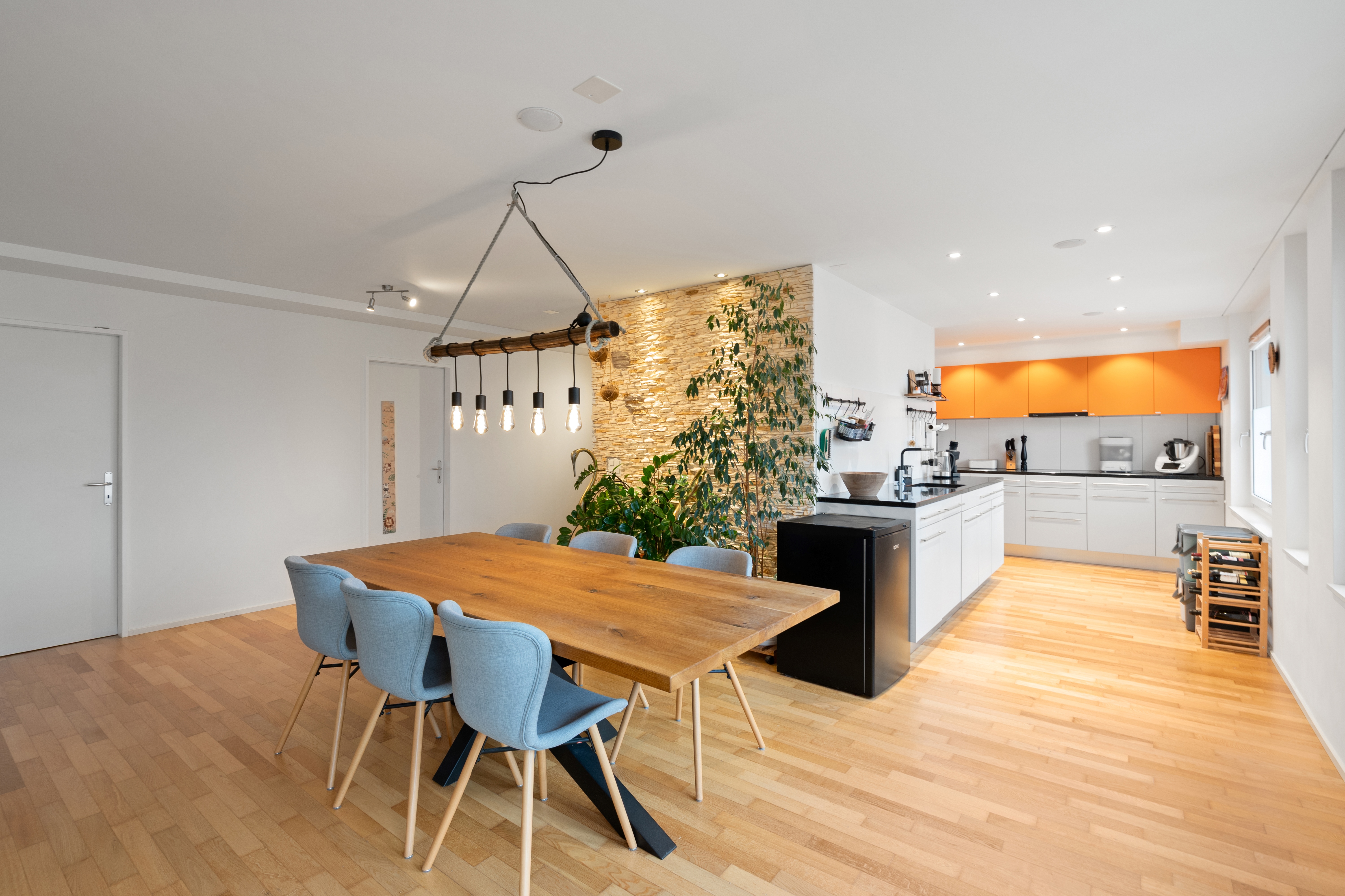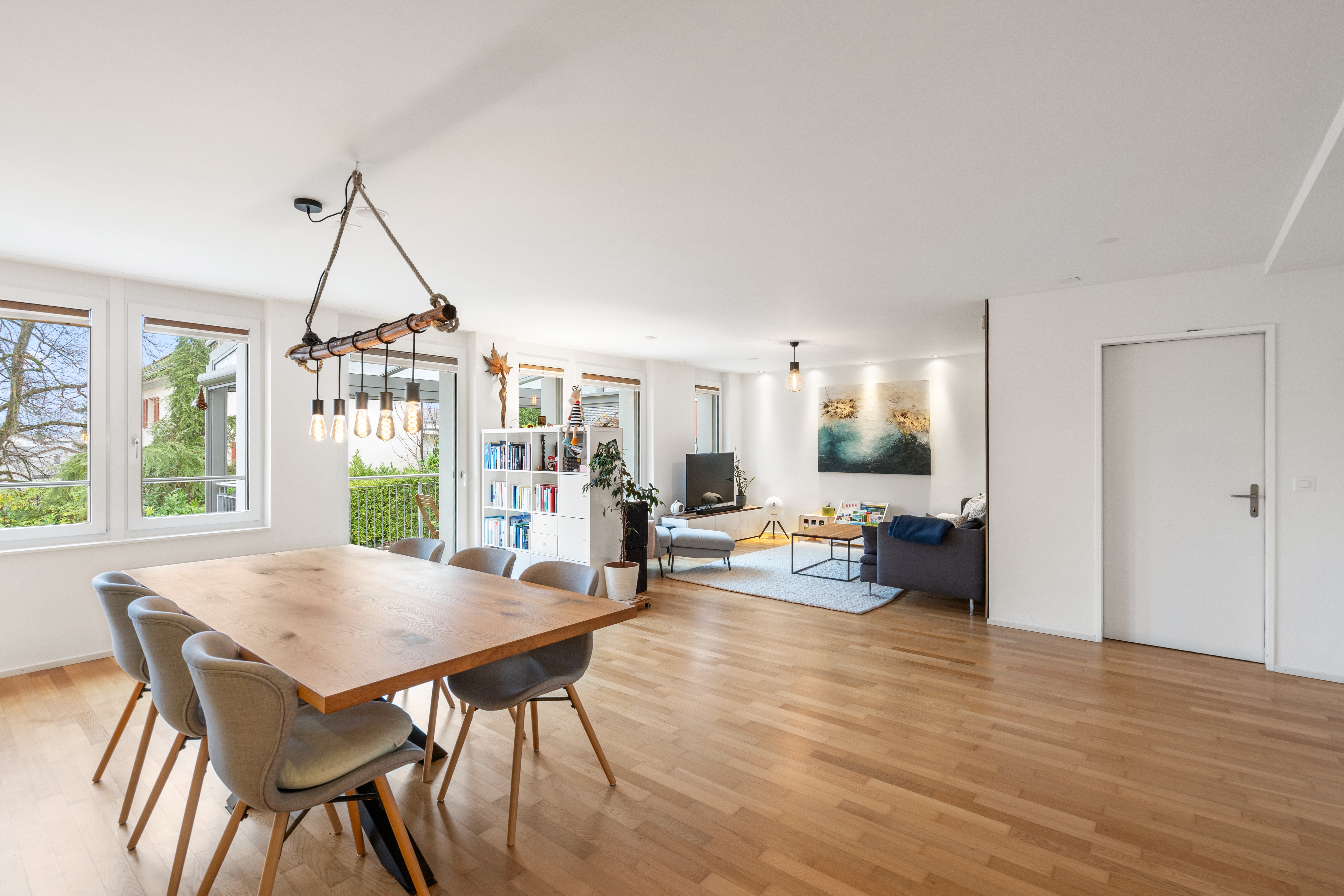 5.5-Room Condominium with High-End FinishesIn a central location in Schlieren, this 5.5-room apartment impressively combines style and modern living comfort. The building, formerly a printing house, was meticulously converted into a residential property in 2012. Upon entering the apartment, a spacious, open floor plan unfolds, enhanced by soaring ceilings and large windows that create a unique sense of space. The light-filled living areas feel inviting and lend the apartment an elegant, contemporary ambiance. High-quality finishes, stylish details, and a clear architectural line complete the sophisticated materialization.A standout feature is the idyllic balcony, offering a peaceful, relaxing oasis in the urban environment. Perfect for a leisurely breakfast or cozy evening moments, this outdoor space invites you to linger.With two tastefully appointed bathrooms and generously sized rooms, the apartment provides comfort and flexibility. A home for those who wish to enjoy spaciousness, design, and quality at their finest.