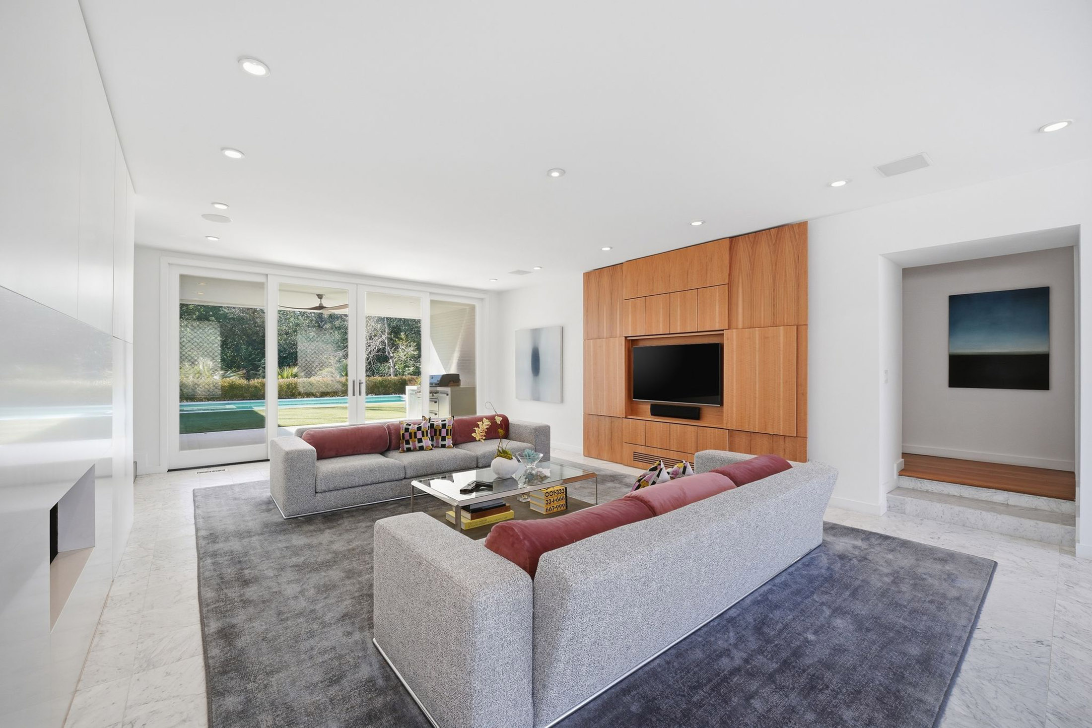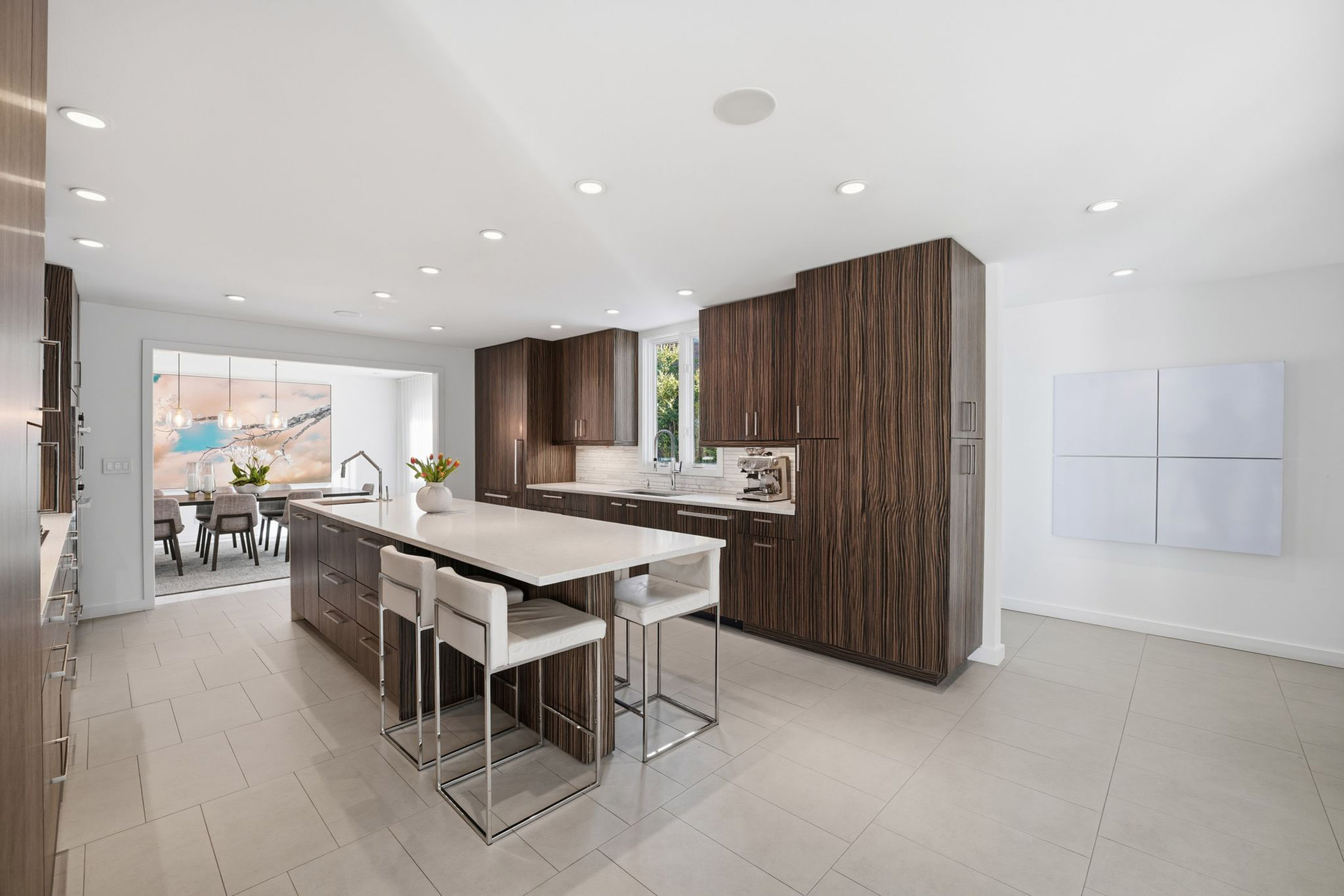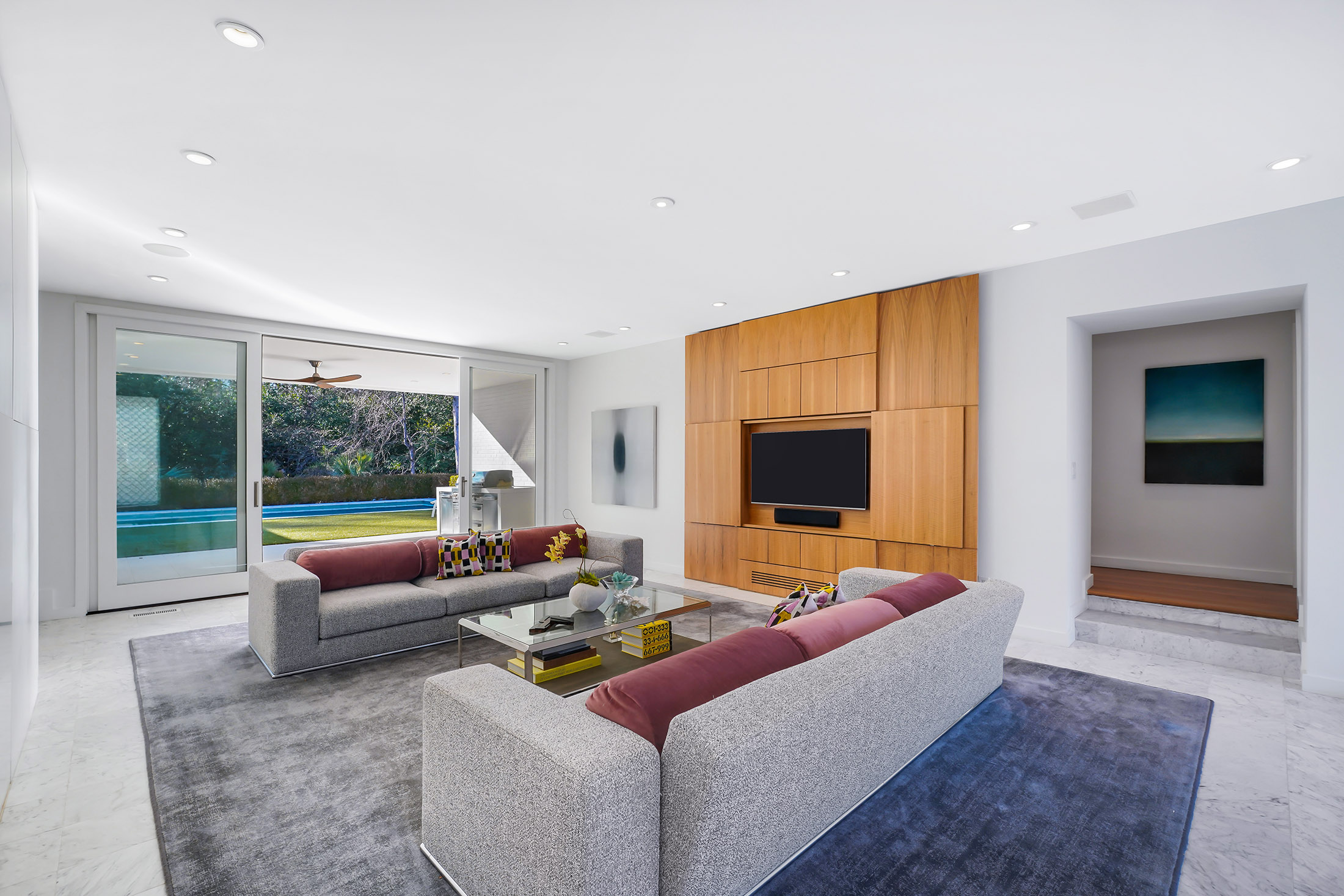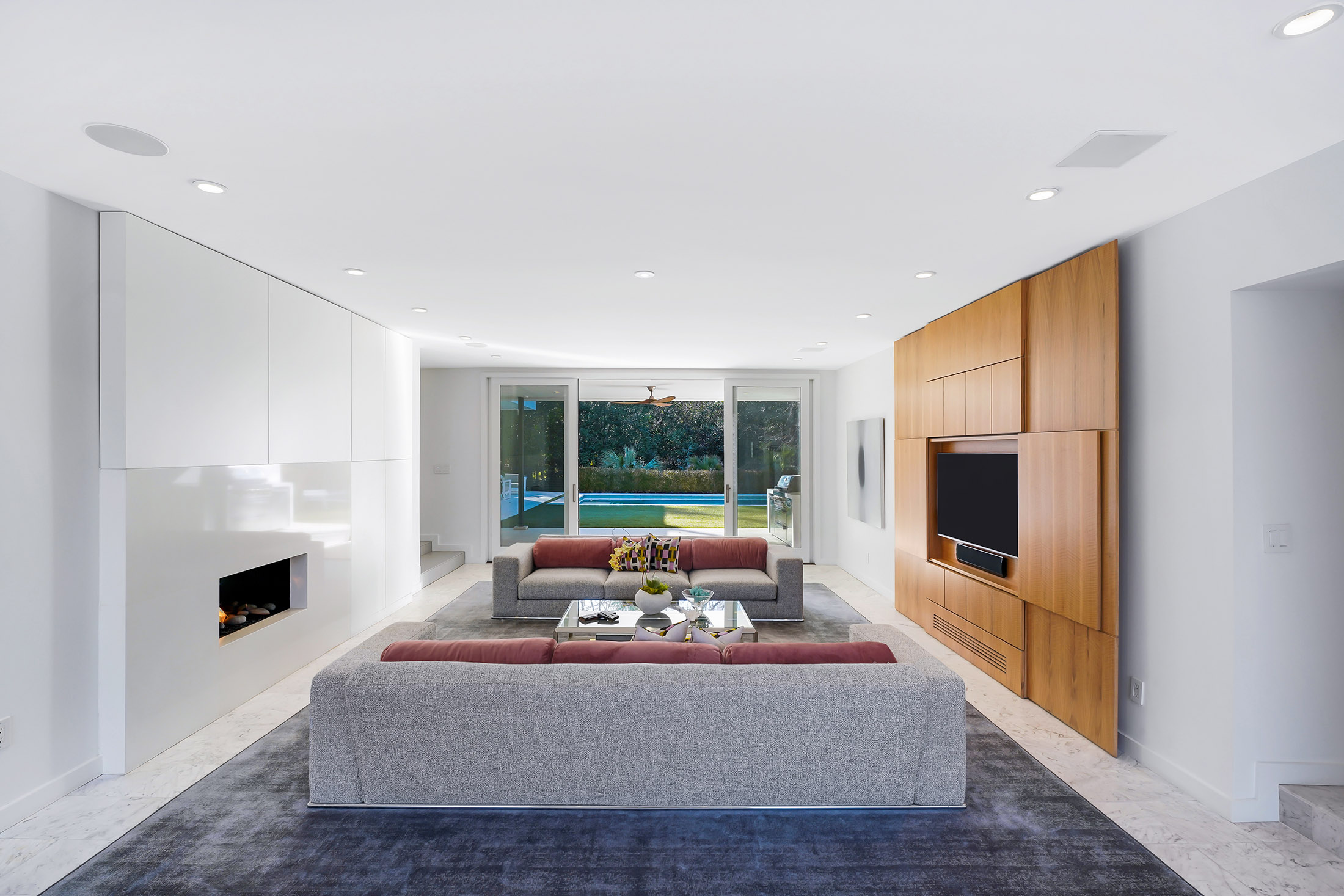 Magazine-worthy and masterfully reimagined, this mid-century modern resort retreat sits in the heart of Morningside, offering a rare fusion of architectural integrity, luxury craftsmanship, and Palm Springs-inspired indoor/outdoor living. Taken down to the studs and completely rebuilt with new structural systems, this all-brick residence has been thoughtfully expanded to create a seamless, light-filled sanctuary. Walls of glass and expansive casement windows flood the open-concept living spaces with natural light, all of which are oriented toward a private, resort-style backyard designed for year-round enjoyment. At the center of the home, a chef-caliber kitchen showcases custom cabinetry with oversized drawers and bookmatched detailing, paired with a premium appliance suite including Thermador refrigeration, Miele ovens and dishwasher, and a Sub-Zero beverage center. Every finish has been curated for both beauty and performance. Sliding glass doors dissolve the boundary between indoors and out, opening to an extraordinary 1,300+ square-foot patio, over 1,100 square feet of covered space, overlooking a pristine pool with customizable lighting, lush, maintenance-free turf, and a fully engineered drainage system. Integrated Sonos audio, outdoor speakers, and smart-controlled lighting create an effortless entertaining experience. The primary suite is a true retreat, overlooking the pool and featuring a spa-inspired bath with heated floors, a steam and rain shower, a curbless entry, a Kohler soaking tub, Duravit sinks, a heated towel rack, and a custom floating walnut vanity. A bespoke closet completes the suite. Designed for both relaxation and performance, the lower level functions as a true extension of the home, featuring an acoustically engineered media room with Martin Logan speakers and a high-end projection system, beverage station, and two dedicated fitness studios, one for strength and yoga, the other for cycling and cardio. Modern living is elevated by fully integrated smart home technology, including Control4 lighting, whole-home Sonos audio, built-in surround sound, and commercial-grade hardwired Wi-Fi with gigabit-speed capability and Ethernet connectivity throughout. Additional highlights continue the home’s commitment to thoughtful design and efficiency, including foam insulation and high-performance systems throughout, a tankless water heater paired with dual water meters, and a fully integrated irrigation system serving both the front and rear grounds. Everyday functionality is elevated with a custom-designed laundry space featuring dedicated pool towel storage and a swimwear drying station, while built-in walnut shelving and cohesive designer lighting carry the home’s refined aesthetic throughout. Even behind the walls, meticulous attention is evident in concealed HVAC returns and carefully planned infrastructure that support both form and function. Every detail of this home has been intentionally designed to deliver privacy, efficiency, and an elevated everyday living experience, resulting in a timeless turnkey residence.
