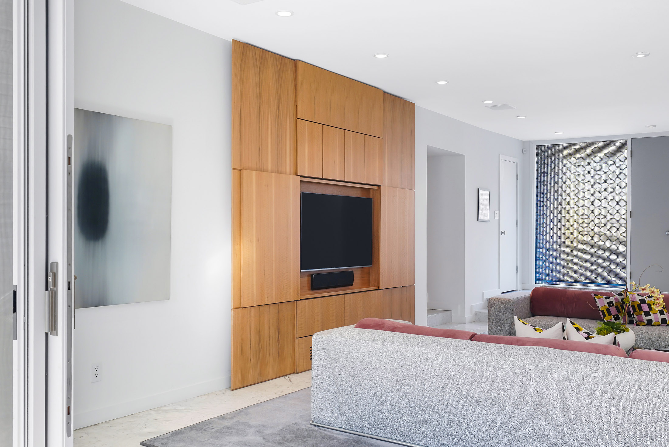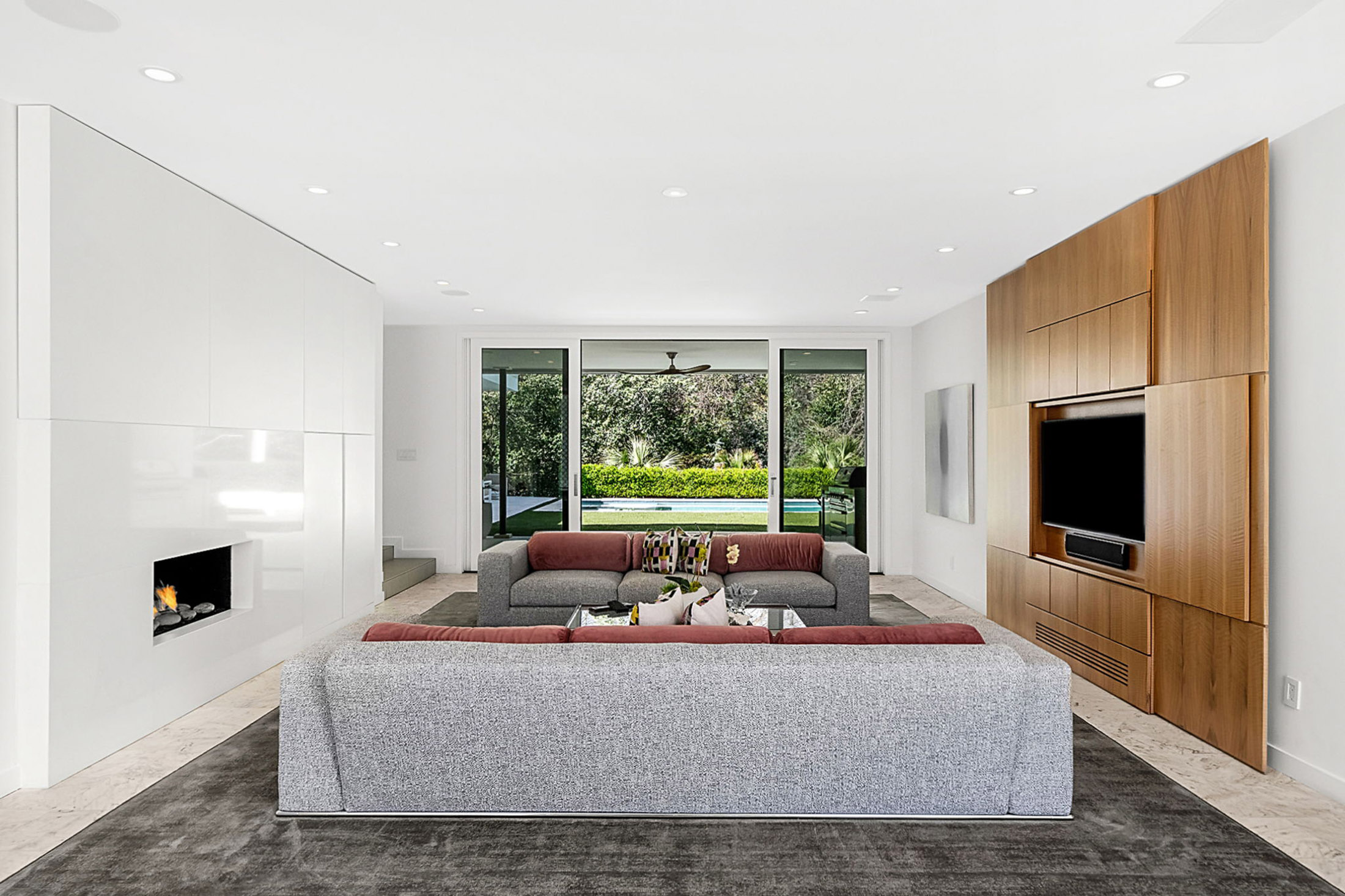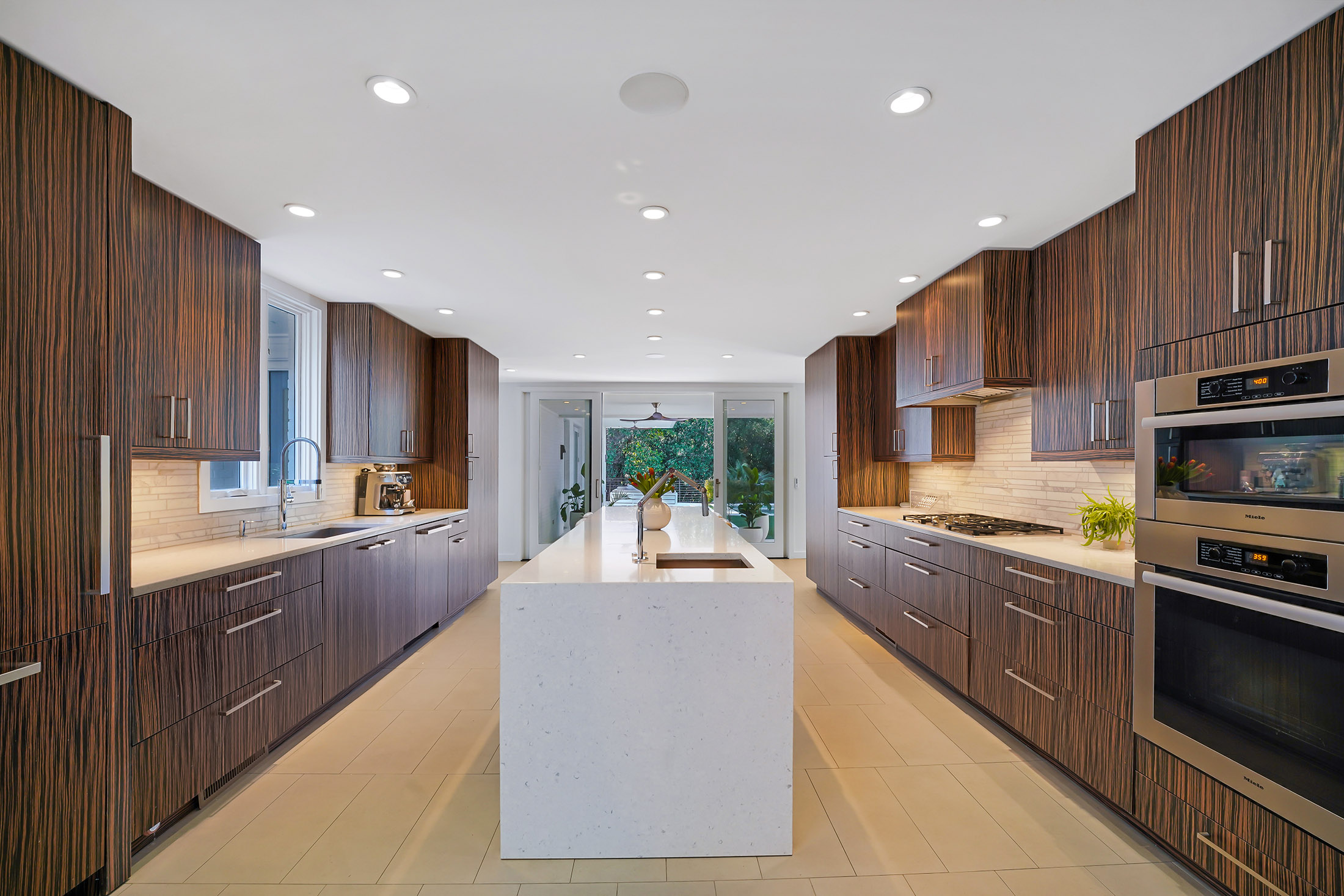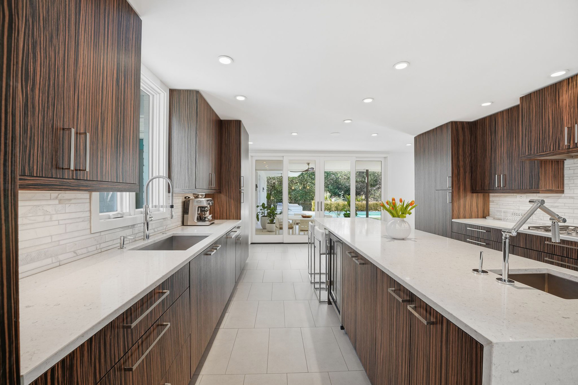 Magazine-worthy and masterfully reimagined, this mid-century modern resort retreat sits in the heart of Morningside, offering a rare fusion of architectural integrity, luxury craftsmanship, and Palm Springs-inspired indoor/outdoor living. Taken down to the studs and completely rebuilt with new structural systems, this all-brick residence has been thoughtfully expanded to create a seamless, light-filled sanctuary. Walls of glass and expansive casement windows flood the open-concept living spaces with natural light, all of which are oriented toward a private, resort-style backyard designed for year-round enjoyment. At the center of the home, a chef-caliber kitchen showcases custom cabinetry with oversized drawers and bookmatched detailing, paired with a premium appliance suite including Thermador refrigeration, Miele ovens and dishwasher, and a Sub-Zero beverage center. Every finish has been curated for both beauty and performance. Sliding glass doors dissolve the boundary between indoors and out, opening to an extraordinary 1,300+ square-foot patio, over 1,100 square feet of covered space, overlooking a pristine pool with customizable lighting, lush, maintenance-free turf, and a fully engineered drainage system. Integrated Sonos audio, outdoor speakers, and smart-controlled lighting create an effortless entertaining experience. The primary suite is a true retreat, overlooking the pool and featuring a spa-inspired bath with heated floors, a steam and rain shower, a curbless entry, a Kohler soaking tub, Duravit sinks, a heated towel rack, and a custom floating walnut vanity. A bespoke closet completes the suite. Designed for both relaxation and performance, the lower level functions as a true extension of the home, featuring an acoustically engineered media room with Martin Logan speakers and a high-end projection system, beverage station, and two dedicated fitness studios, one for strength and yoga, the other for cycling and cardio. Modern living is elevated by fully integrated smart home technology, including Control4 lighting, whole-home Sonos audio, built-in surround sound, and commercial-grade hardwired Wi-Fi with gigabit-speed capability and Ethernet connectivity throughout. Additional highlights continue the home’s commitment to thoughtful design and efficiency, including foam insulation and high-performance systems throughout, a tankless water heater paired with dual water meters, and a fully integrated irrigation system serving both the front and rear grounds. Everyday functionality is elevated with a custom-designed laundry space featuring dedicated pool towel storage and a swimwear drying station, while built-in walnut shelving and cohesive designer lighting carry the home’s refined aesthetic throughout. Even behind the walls, meticulous attention is evident in concealed HVAC returns and carefully planned infrastructure that support both form and function. Every detail of this home has been intentionally designed to deliver privacy, efficiency, and an elevated everyday living experience, resulting in a timeless turnkey residence.
