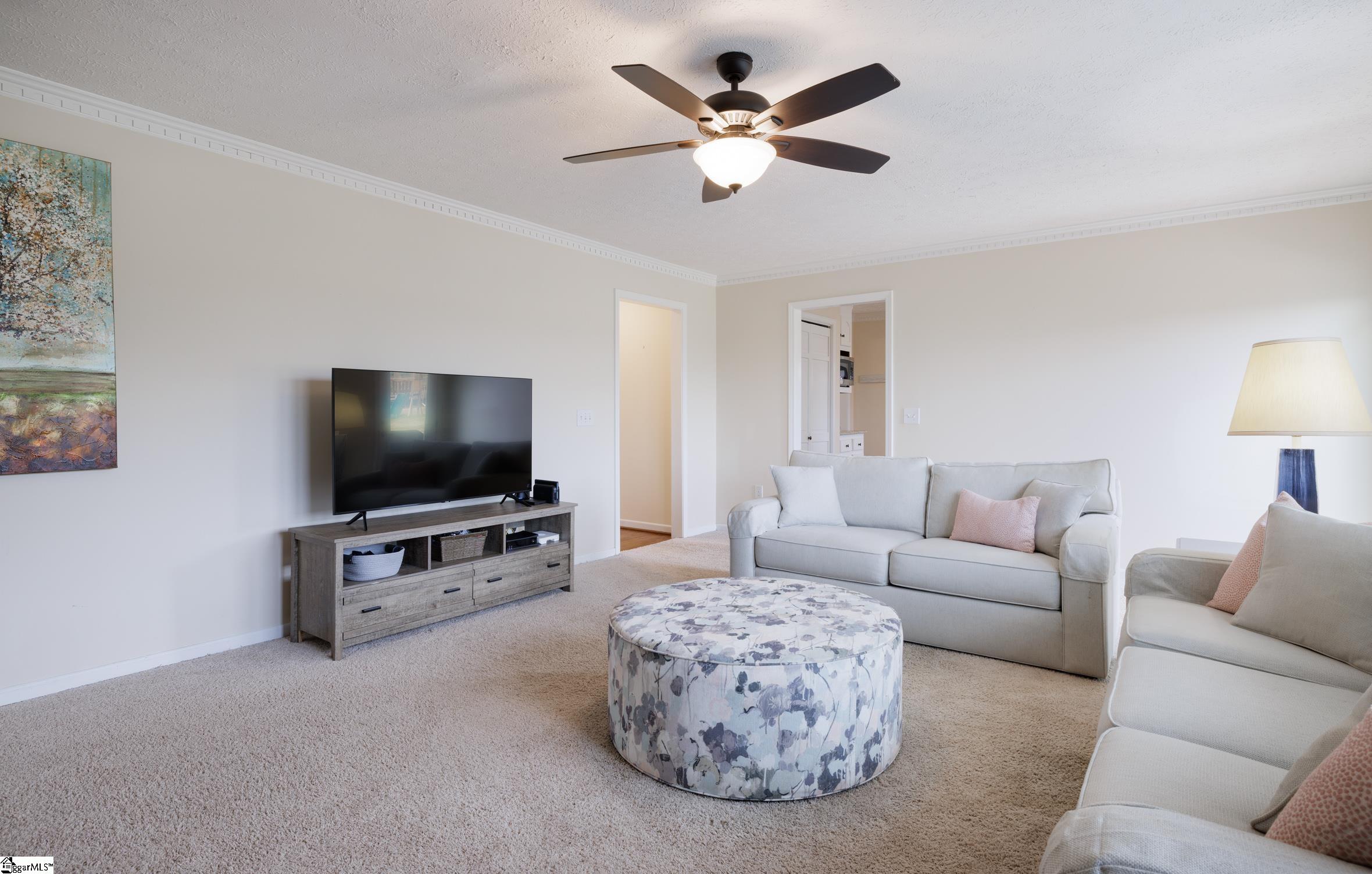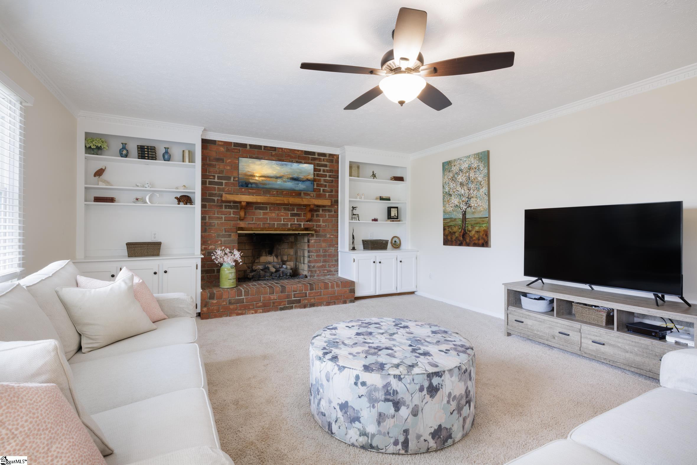 Established Community. Convenient Location. Flexible Floor Plan. These are just a few ways to describe this brick home in the well-regarded community of Roper Mountain Estates. If you're looking for a home with custom features and flexible touches then this is it. Starting with the downstairs living room or ideal home office/study, this space affords many options. The Great Room features boundless space to gather with family & friends along with a center gas log fireplace and built-ins to display all of your favorite things. The nearby kitchen showcases a large pantry, an organizational desk station, a well-appointed kitchen and a large breakfast area with views of the deck and fully fenced rear grounds featuring a three zone irrigation system. For guests, there is a large half bathroom with an updated vanity and finishes. vanity. The laundry room, featuring new flooring, is also on the main level and offers ample storage space. There is a front AND rear staircase. The rear staircase leads to the sprawling bonus room and 4th bedroom. Or these spaces could be reversed for an awesome teen suite! From the upstairs staircase you will find the primary suite with two closets, a separate tub and shower, a vanity with granite countertops and two sinks as well as tiled flooring. There are two additional bedrooms and a large bathroom with a tub/shower and two sinks at the vanity. New windows installed in 2025. Zoned for award winning schools including Oakveiw Elem, Beck Academy and JL Mann High School, this community boasts a robust amenity package including a clubhouse, pool, tennis courts, basketball court and an active HOA. * Some photos virtually staged.