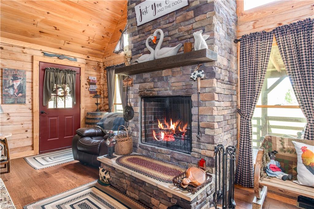 Set on 9.59 acres, this log home offers a private, peaceful setting with room to spread out. Inside, you will find an open-concept layout featuring vaulted ceilings and a stunning floor-to-ceiling wood-burning fireplace in the main living area. The galley kitchen flows easily into the dining and living spaces, creating a comfortable and functional layout. The home offers two bedrooms plus a loft currently used as a third bedroom, along with an additional room that provides flexible space with a convenient laundry closet. The spacious primary bedroom is a true retreat, and the primary bath features a beautiful clawfoot tub. Outside of the home, there is even more to enjoy! There is a large front porch, relax by the fire pit, the above-ground pool and hot tub. The open land offers endless possibilities for recreation, gardening and animals. Don't forget the detached 2-car log garage! If you've been searching for a log home with acreage and a true country feel, this property delivers.