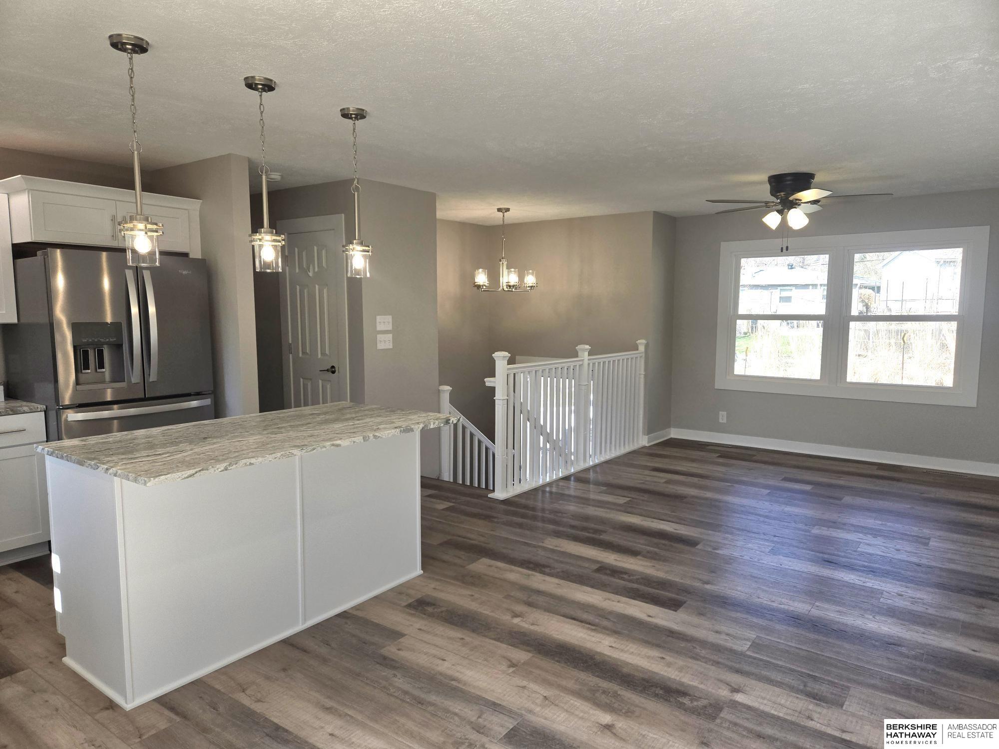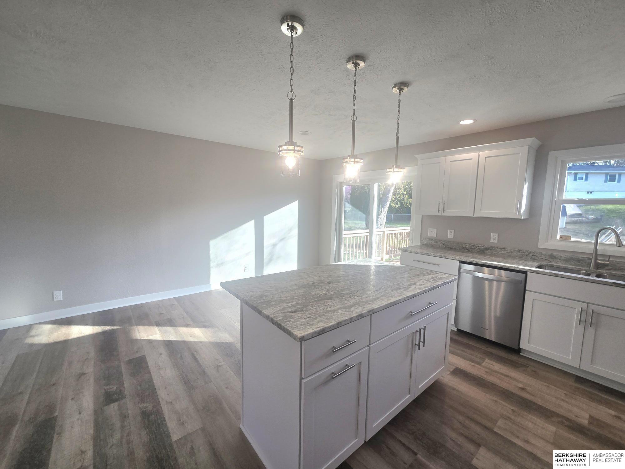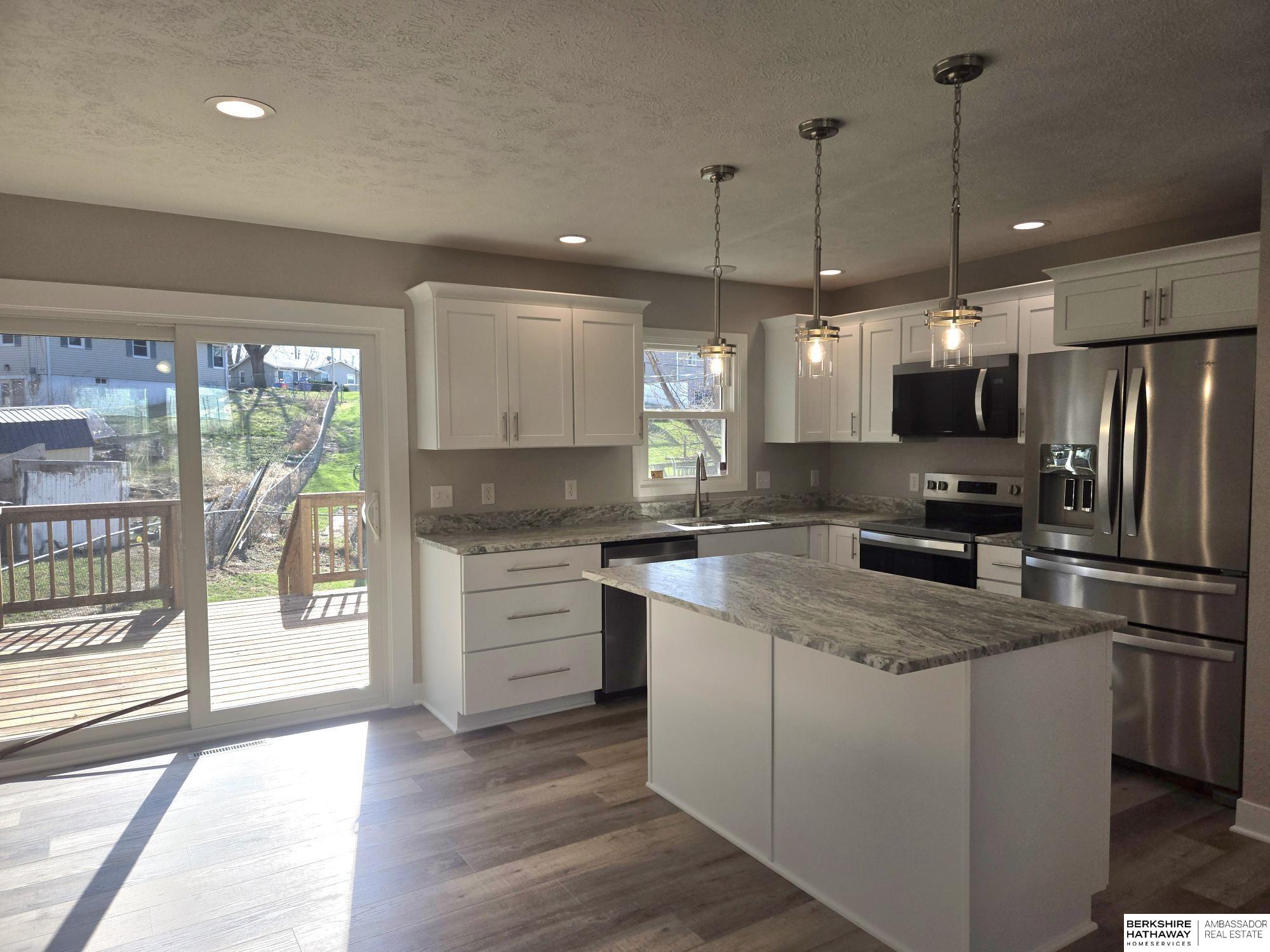 Completely remodeled top-to-bottom split-entry! Stunning 3-bedroom home features a brand-new kitchen with quartz countertops, pendant lighting, crisp white cabinetry& CENTER ISLAND. stainless steel Whirlpool appliance package. Beautiful wood laminate flooring flows through the main living areas, with spacious living/dining layout / patio door opening to a large rear deck - perfect for entertaining. 3 generously sized bedrooms offer new carpet /ceiling fans, along with a full bath featuring all new finishes. Fresh throughout /new doors, flooring, trim, cabinetry, and hardware. Major updates include newer furnace, A/C, and roof. Low-maintenance vinyl siding adds to the exterior appeal. Lower level features a large rec room, new carpet & luxury vinyl flooring - ideal living/flex space. True cream puff inside and out! Convenient location within walking distance to schools, parks, pool, dining, and everyone's favorite Dairy Queen! 10 minutes south of METRO! Hurry this one wont LAST!!