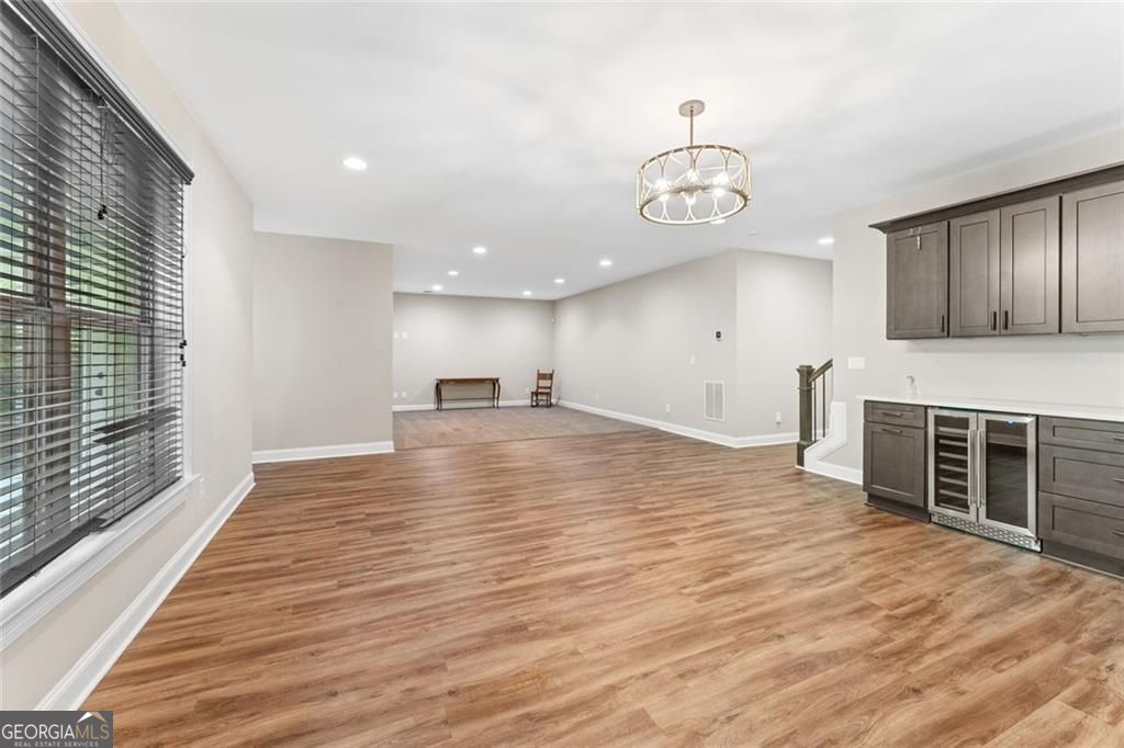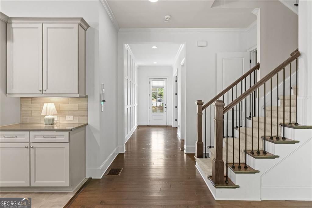 Experience a rare blend of sophistication, space, and effortless living in this exceptional luxury townhome, ideally situated within the highly coveted Harlow community. Designed for those seeking to simplify without compromise, this residence offers the ease of low-maintenance living paired with the scale and presence of a single-family home-highlighted by its remarkable 40-foot width and thoughtfully curated interiors. From the moment you arrive, the welcoming front porch sets a tone of relaxed elegance. Inside, the main level unfolds into a sunlit, open-concept living space designed for both everyday comfort and elevated entertaining. A flexible office or guest suite with a full bath offers versatility, while the expansive great room, anchored by a custom fireplace with built-in bookcases and cabinetry, creates a warm and inviting gathering space. The dining area-graciously sized to host 12 or more-flows seamlessly into a chef-inspired kitchen that is as functional as it is beautiful. Here, a striking marble and reclaimed wood-accented island, Blanco sink, and premium KitchenAid appliances-including a recently updated oven/microwave combo-are complemented by abundant light gray Peachtree cabinetry and an extraordinary walk-in "fantasy pantry." Just beyond, an upgraded drop zone connects effortlessly to the garage, enhancing daily convenience. Step outside to the covered veranda, where indoor and outdoor living blend seamlessly-perfect for morning coffee, evening wine, or hosting friends in a private, serene setting. Upstairs, a collection of generously sized bedrooms provides comfort and flexibility, including a luxurious primary suite designed as a true retreat. The spa-inspired bath showcases quartz finishes, elegant tilework, and a seamless glass shower, while the custom-designed closet delivers both beauty and exceptional organization. Plush new carpeting throughout the upper level and stairways adds a fresh, refined feel, and the well-appointed laundry room-with custom cabinetry, sink, and quartz counters-elevates everyday living. The terrace level transforms the home into an entertainer's dream, featuring a spacious media and lounge area with custom ash-gray cabinetry, quartz countertops, beverage refrigeration, a sink, and designer lighting. A thoughtfully completed lower-level expansion adds a private bedroom, closet, and upgraded full bath-ideal for guests or multigenerational living. Set on a premium lot, the home offers an oversized fenced yard with tranquil wooded views-an uncommon and highly desirable feature that enhances both privacy and livability. Beyond its beauty, this residence has been meticulously maintained and extensively improved, offering true peace of mind. Significant investments include a full HVAC system replacement across all levels, updated kitchen and dining flooring, new upper-level carpeting, enhanced garage storage, and key infrastructure upgrades such as sewer line and water heater expansion tank replacements-ensuring both comfort and long-term reliability. Harlow delivers a lifestyle that is simply unmatched, with resort-style amenities including a concierge and social director, two pools, a stunning clubhouse, tennis courts, walking trails, gathering spaces, and two dog parks-with gated entry coming soon. All of this, paired with exterior maintenance, allows you to focus on enjoying life rather than managing it. Ideally located just minutes from downtown Roswell, downtown Alpharetta, and GA-400 (Exit 8), this home offers the perfect balance of convenience, community, and elevated living-where every detail has been thoughtfully designed to enhance the way you live.